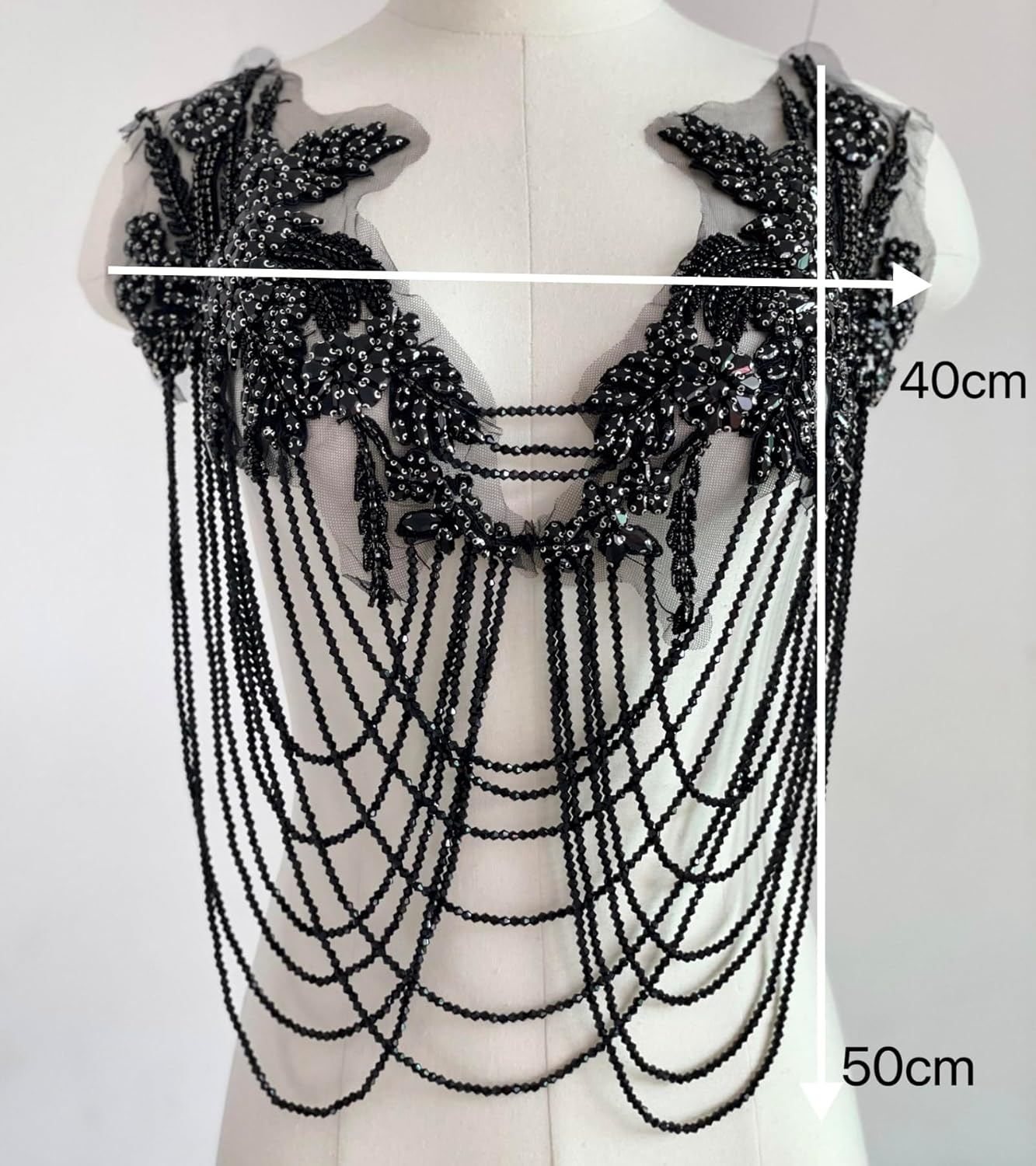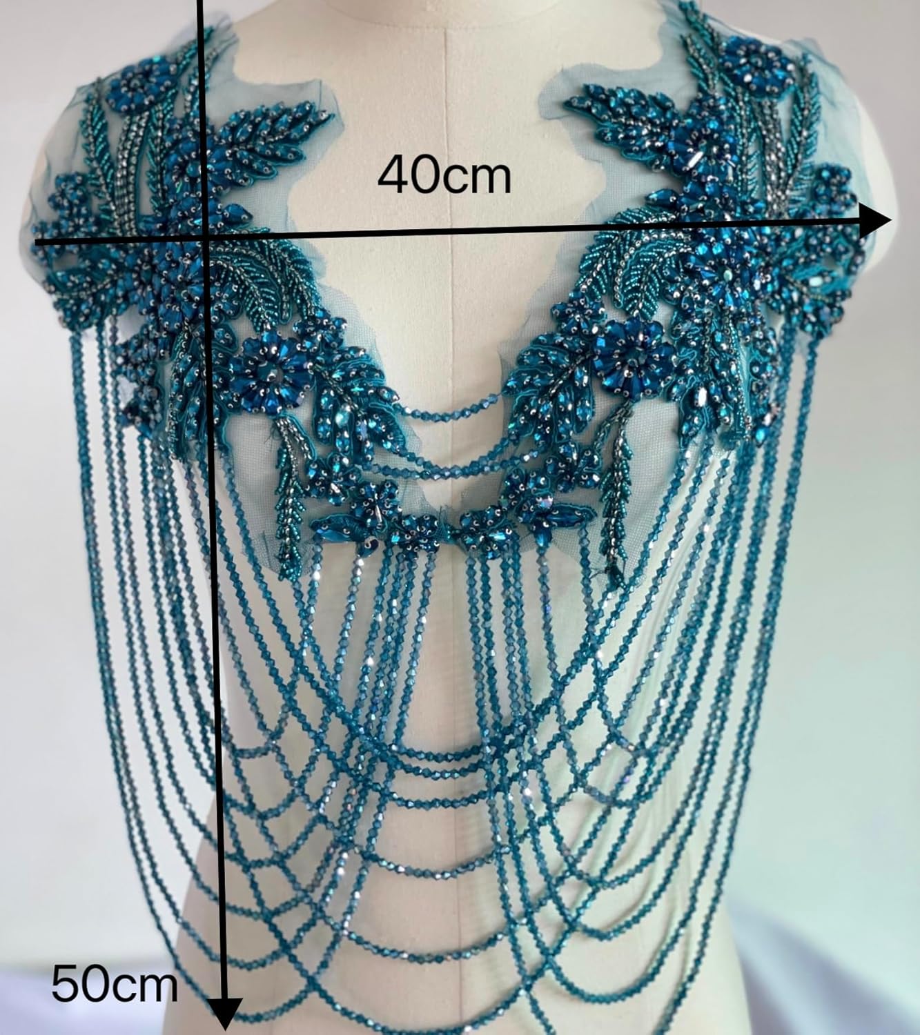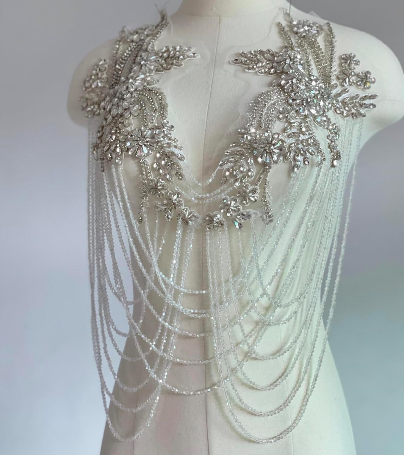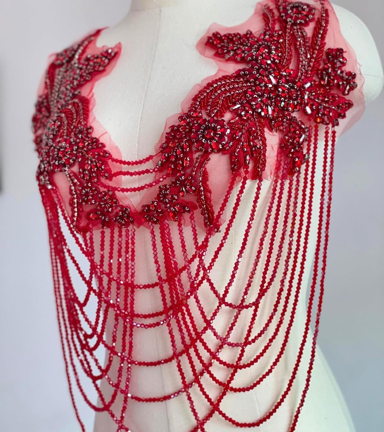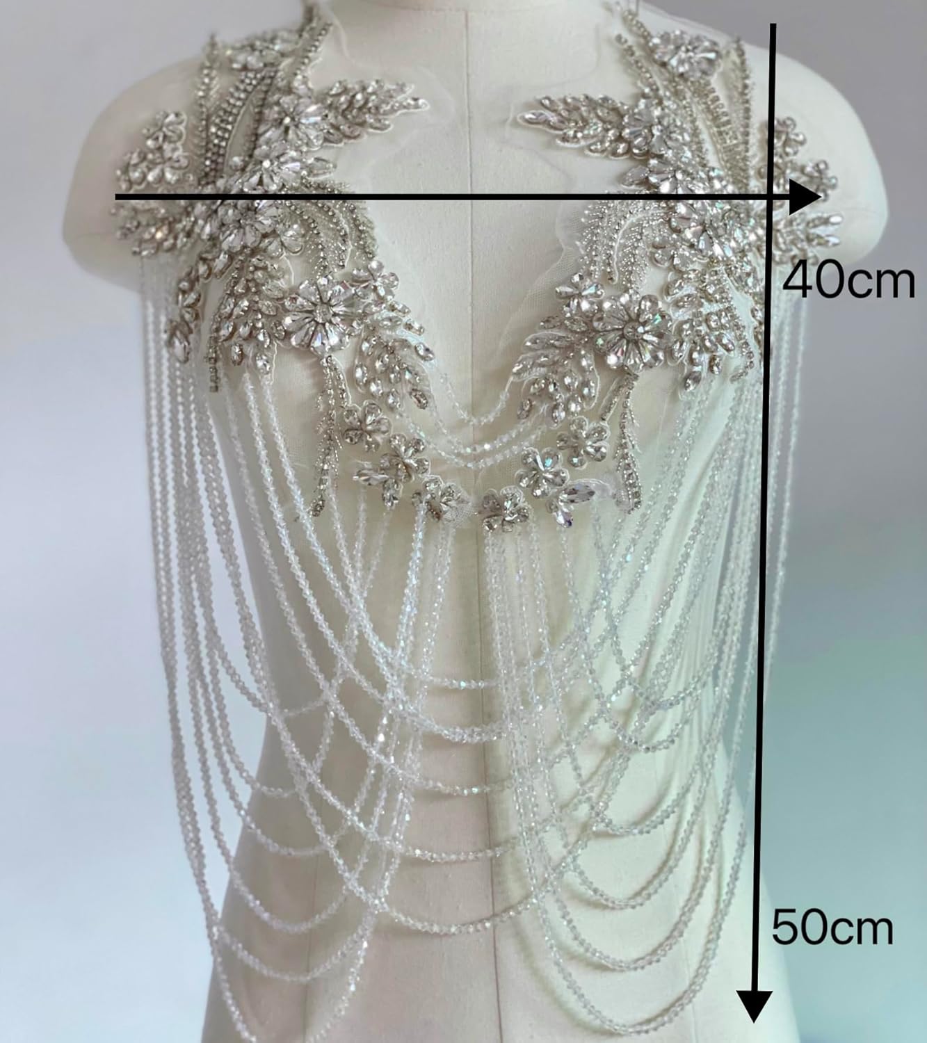 Handmade Tassel Rhinestone Applique,Rhinestone Bodice Applique, Rhinestone Applique for Dress Wedding Clothing Accessory Applique、Patch (Pink)
