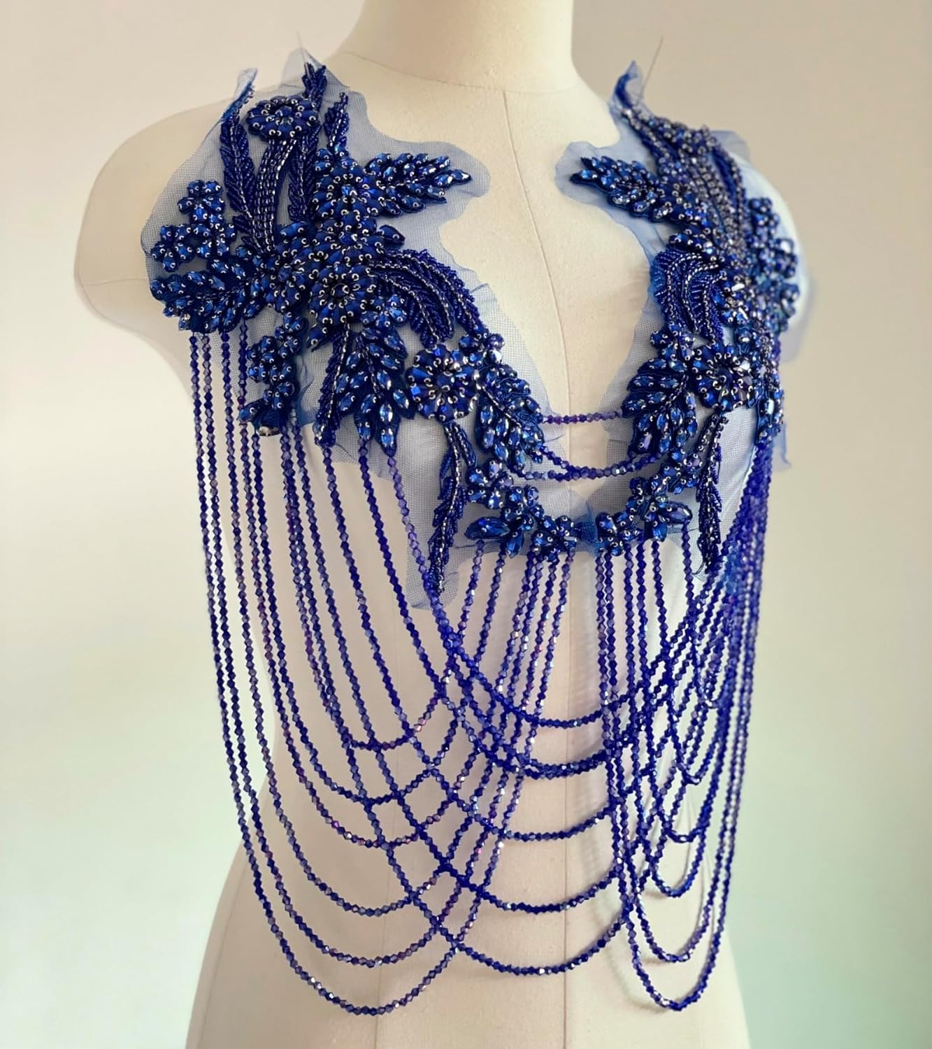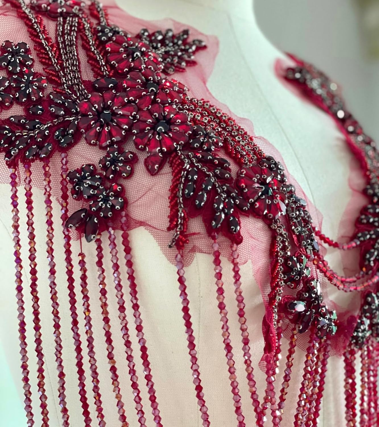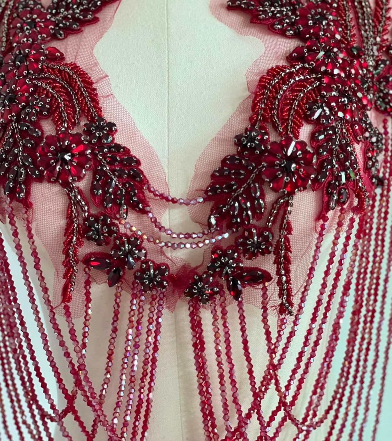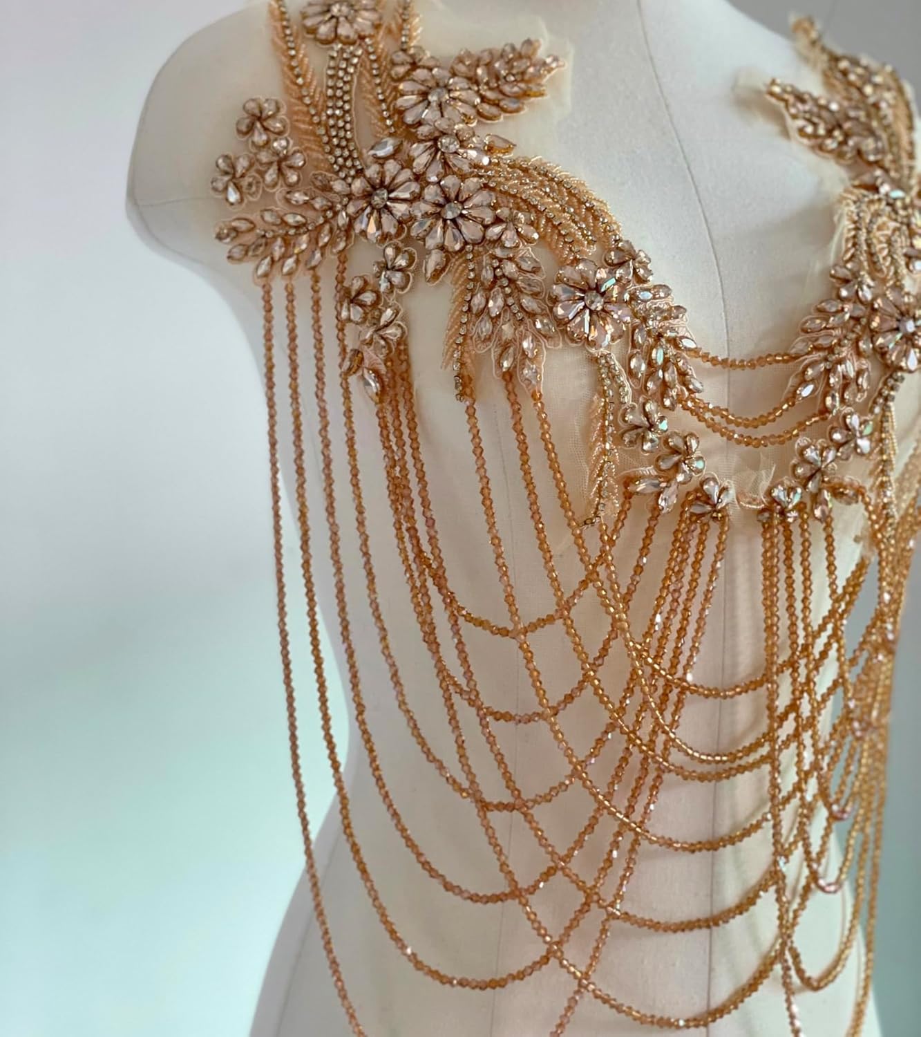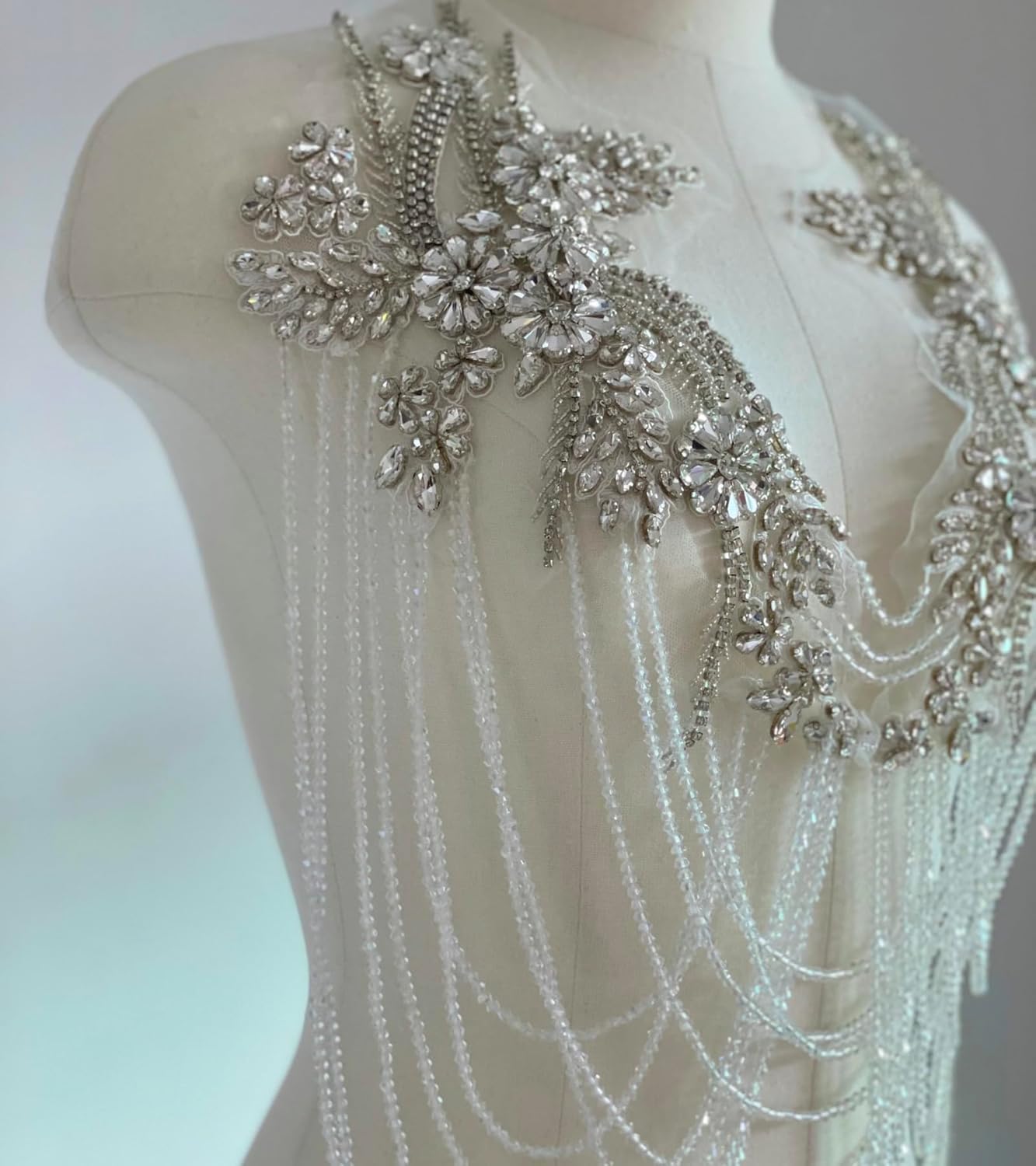 Handmade Tassel Rhinestone Applique,Rhinestone Bodice Applique, Rhinestone Applique for Dress Wedding Clothing Accessory Applique、Patch (Pink)