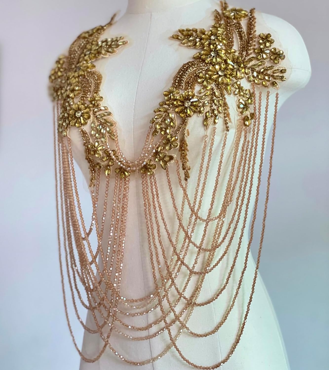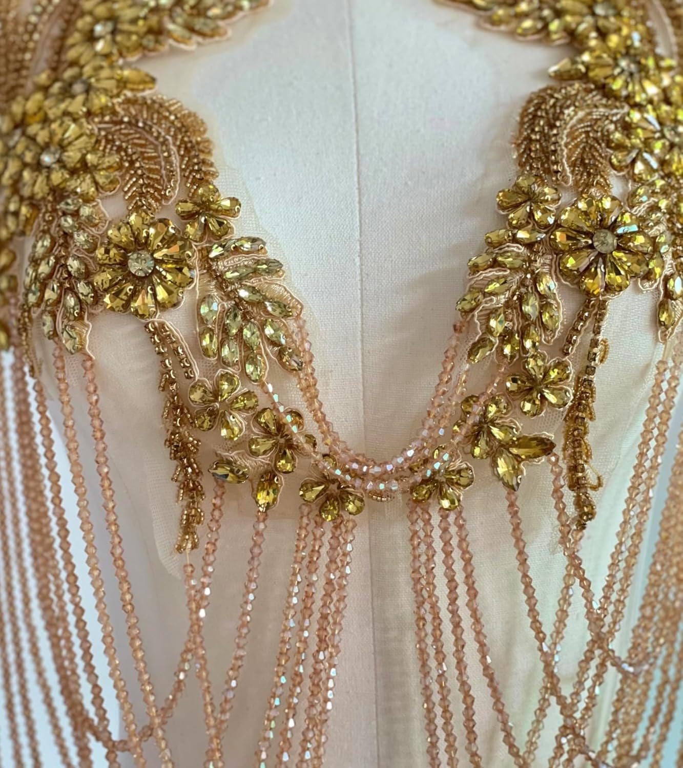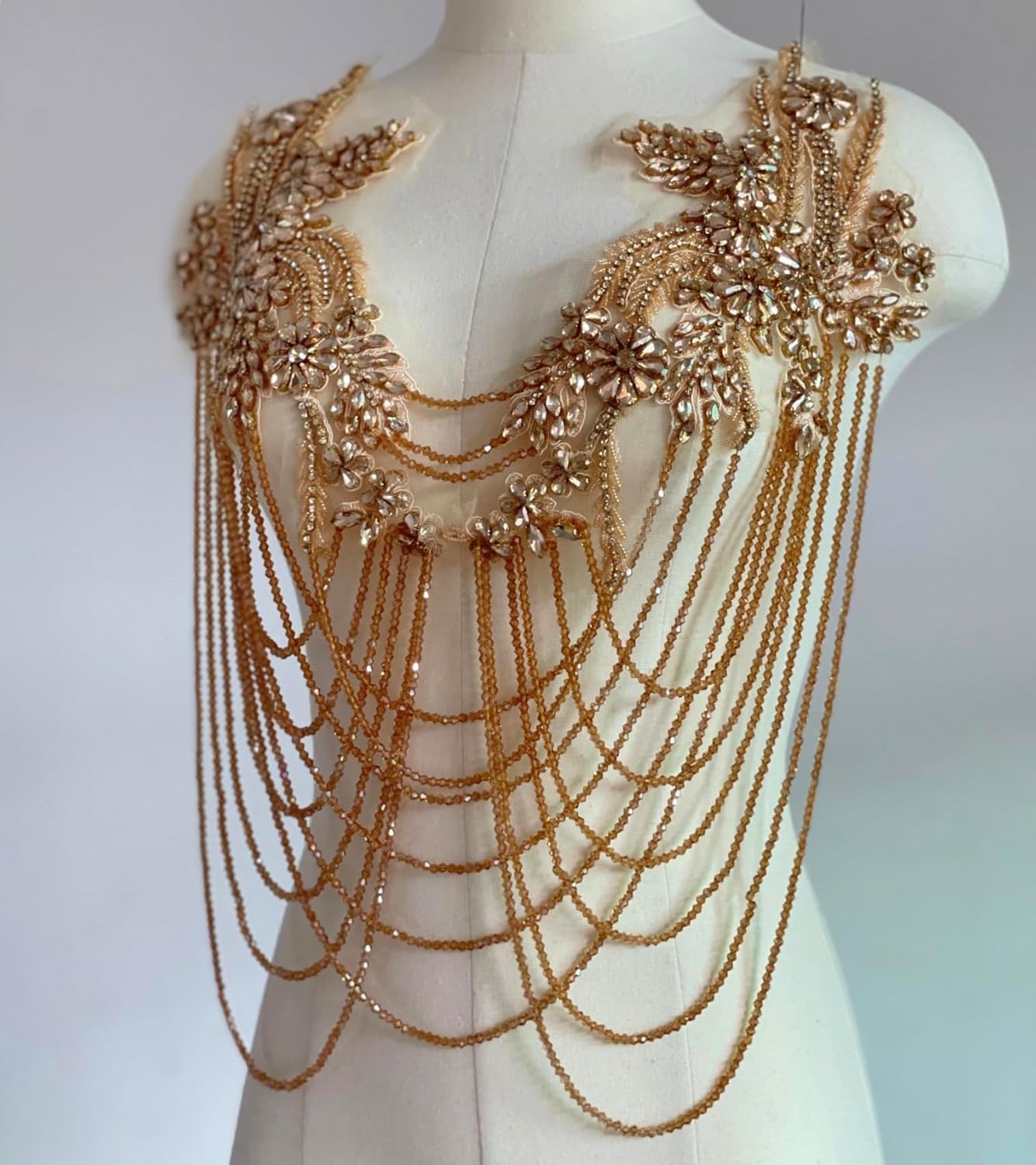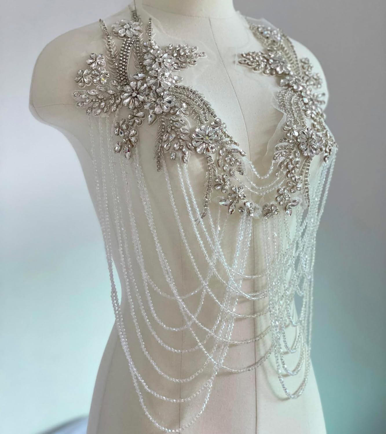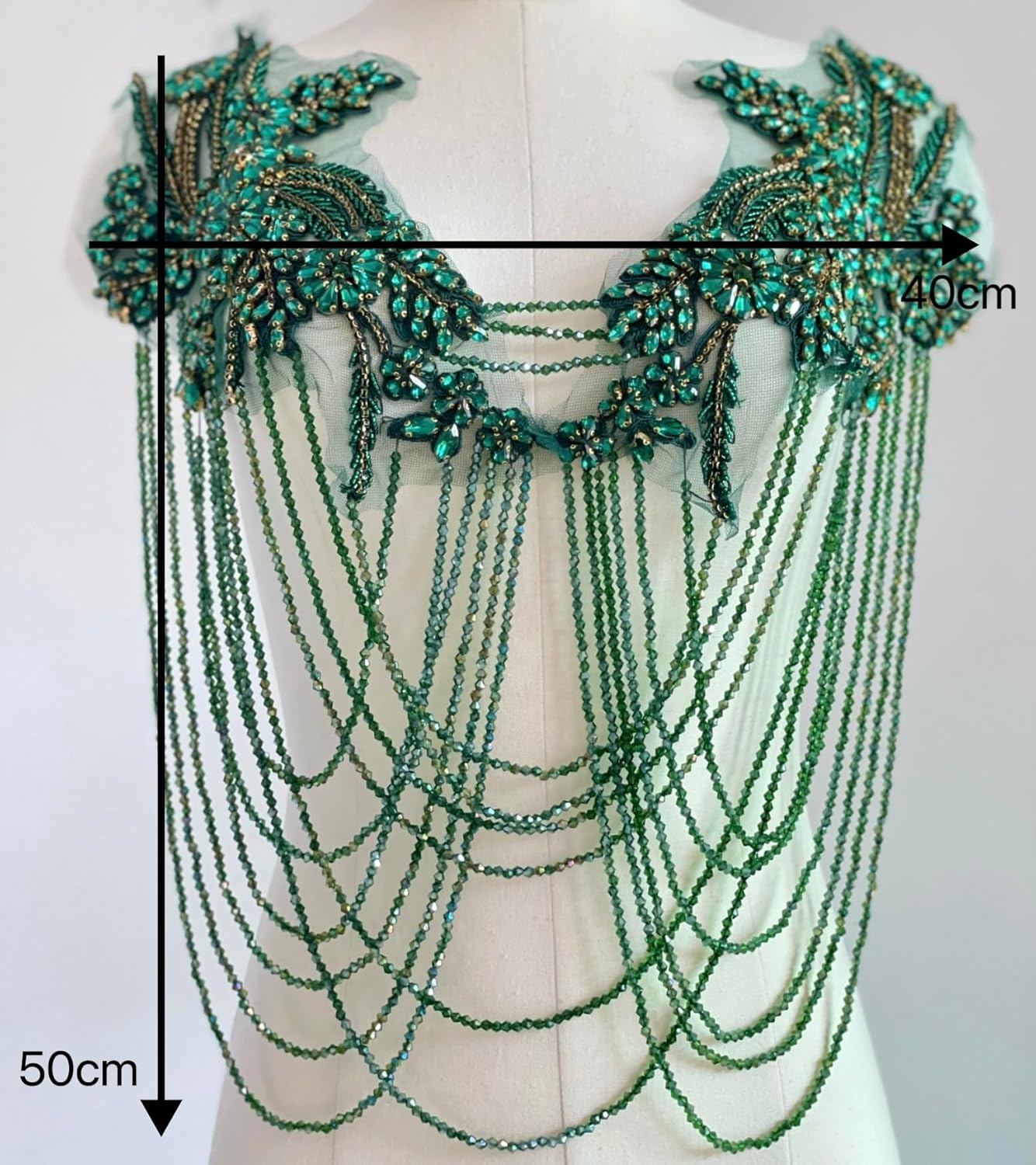 Handmade Tassel Rhinestone Applique,Rhinestone Bodice Applique, Rhinestone Applique for Dress Wedding Clothing Accessory Applique、Patch (Pink)