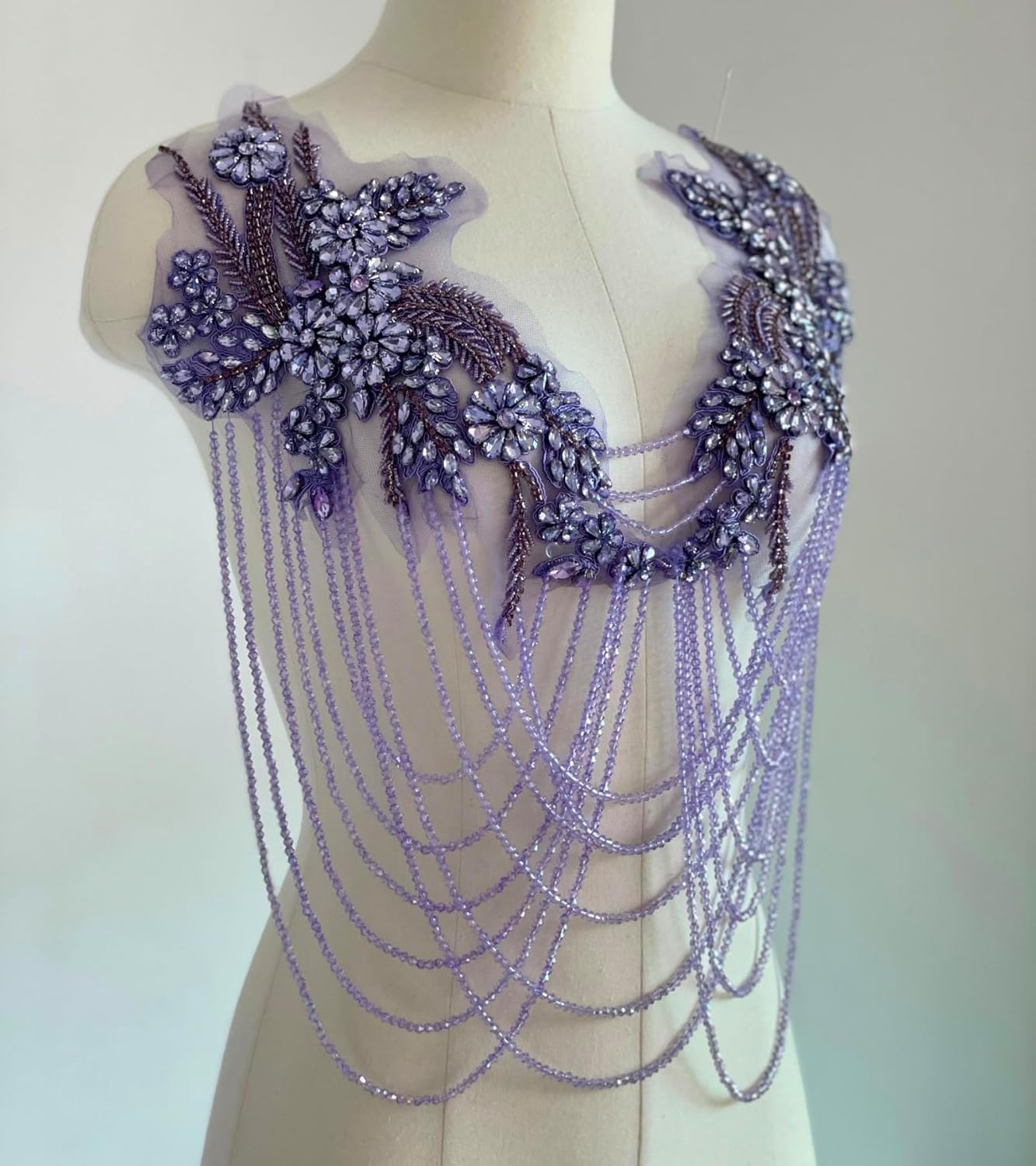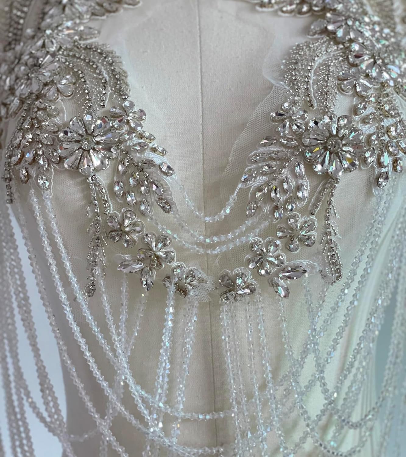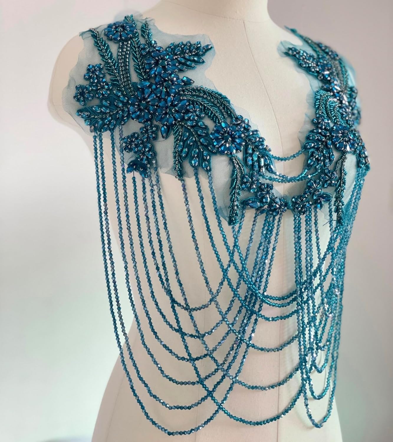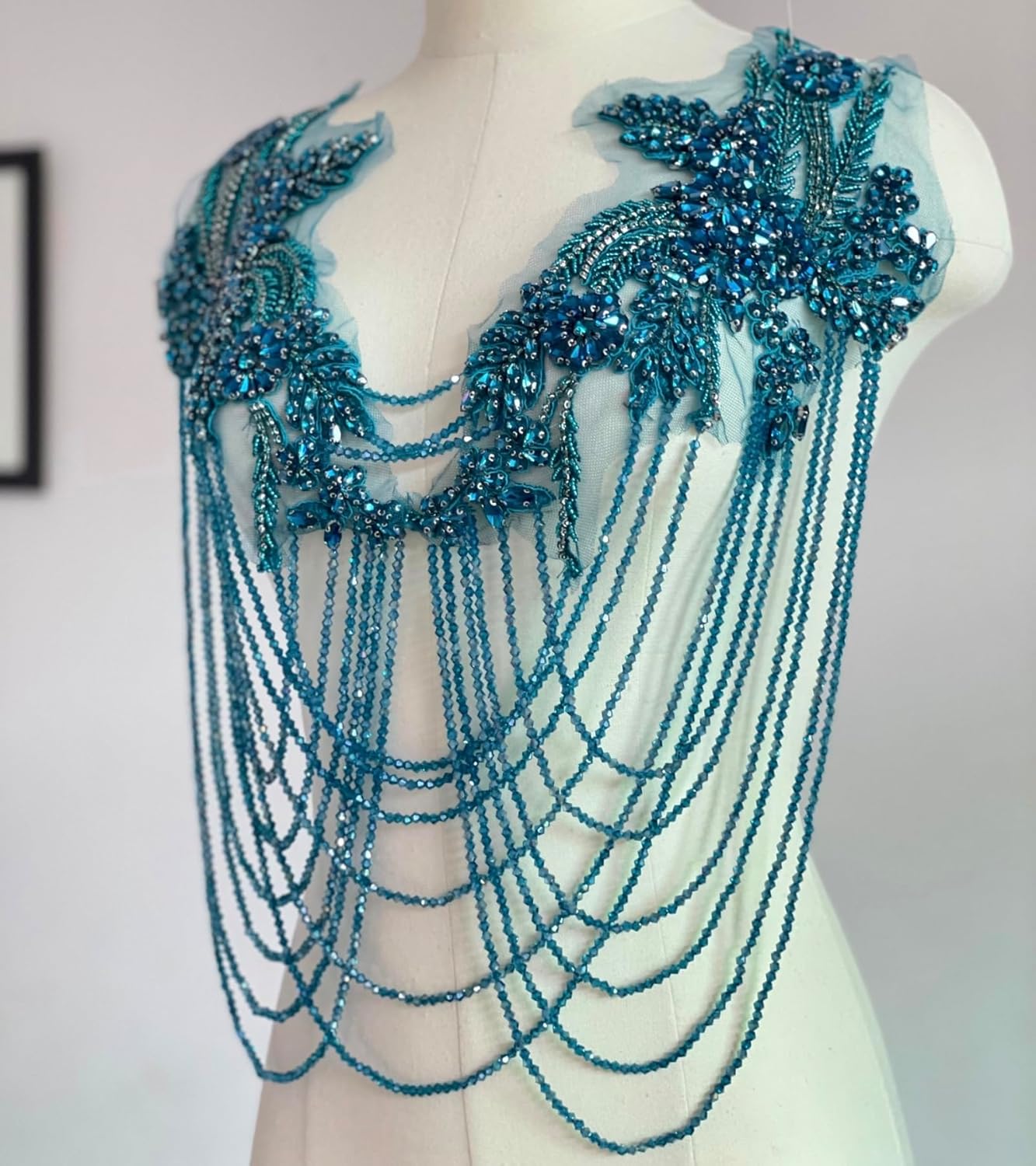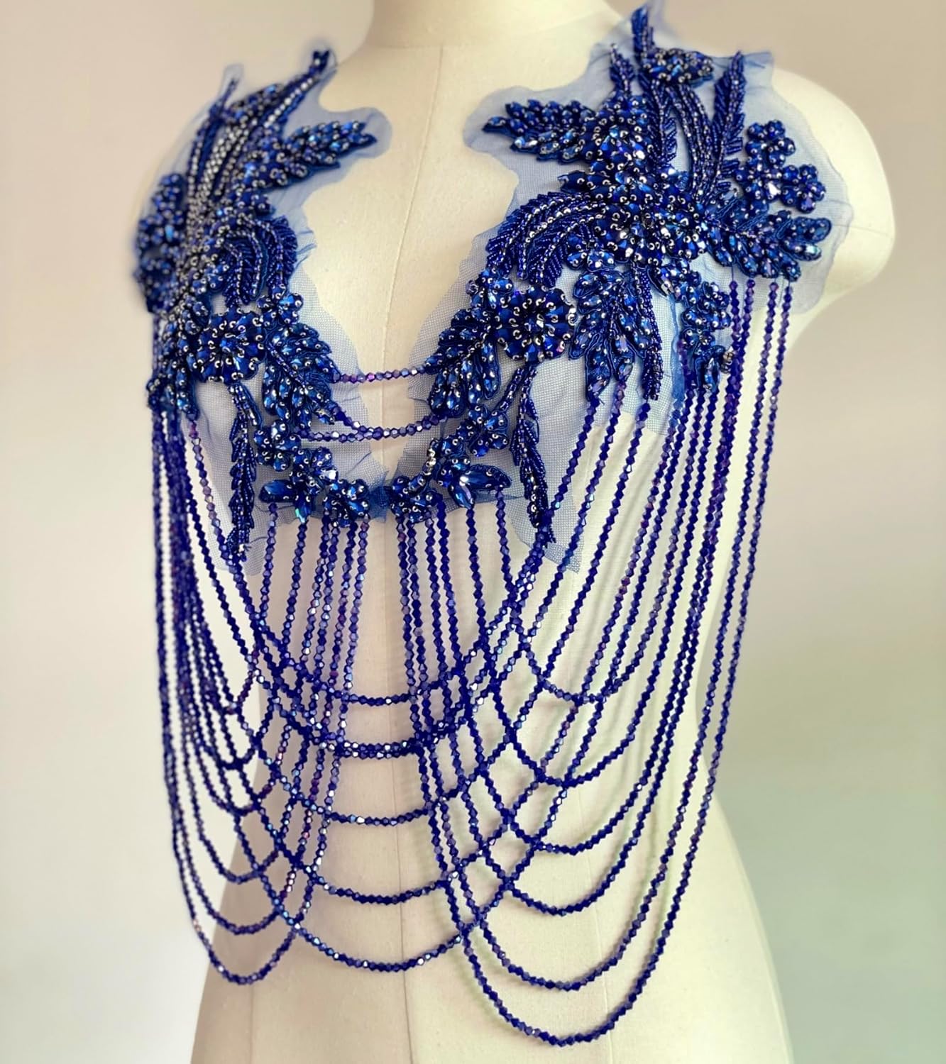 Handmade Tassel Rhinestone Applique,Rhinestone Bodice Applique, Rhinestone Applique for Dress Wedding Clothing Accessory Applique、Patch (Pink)
