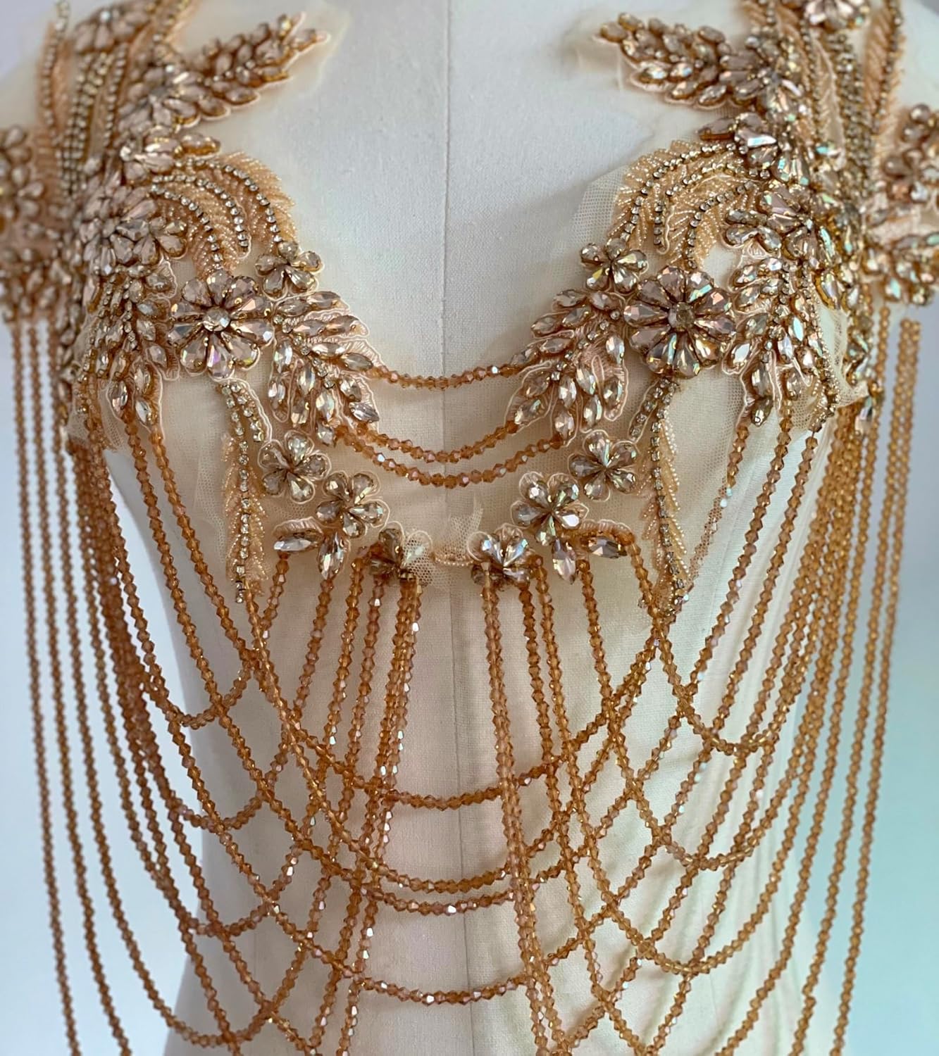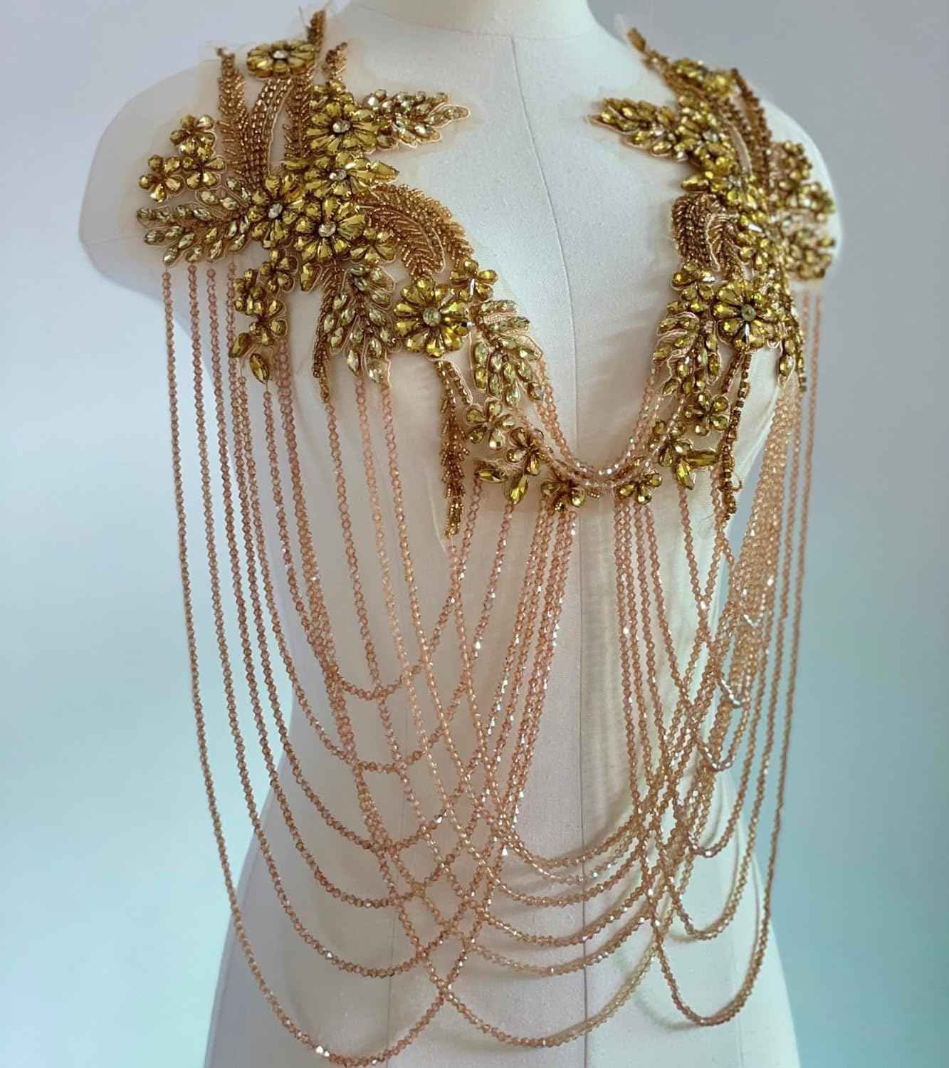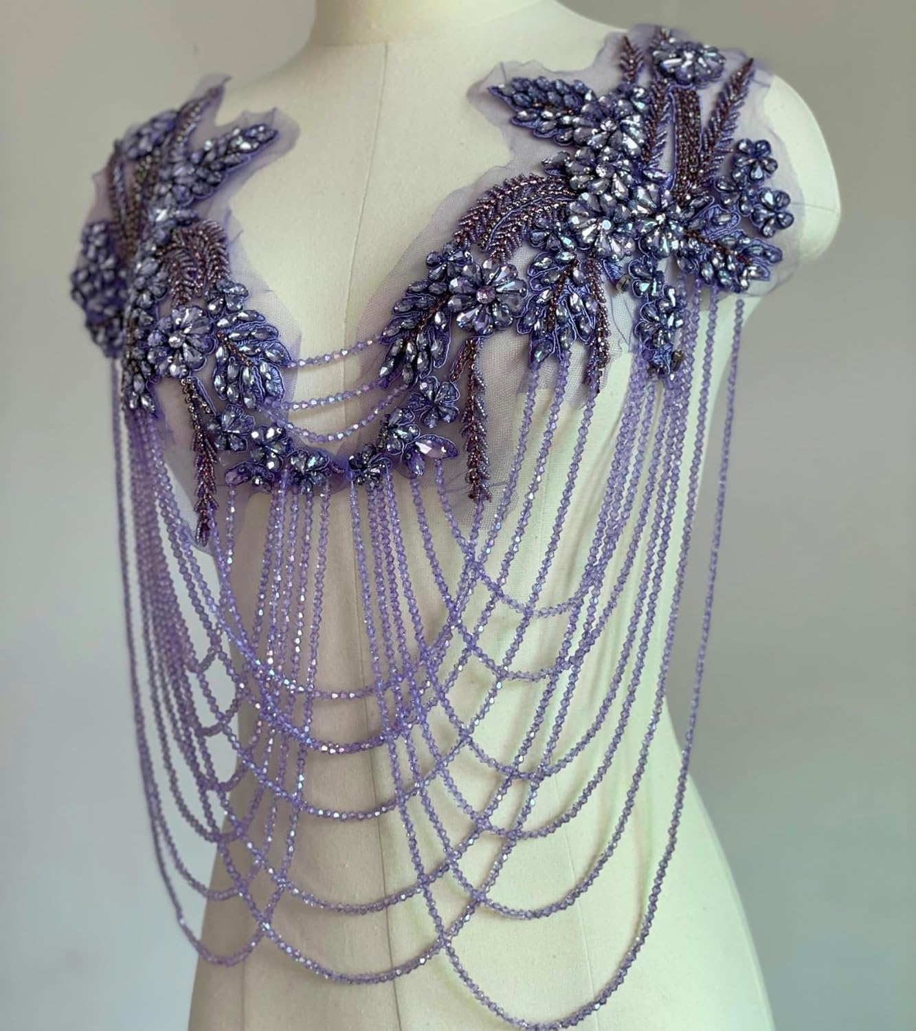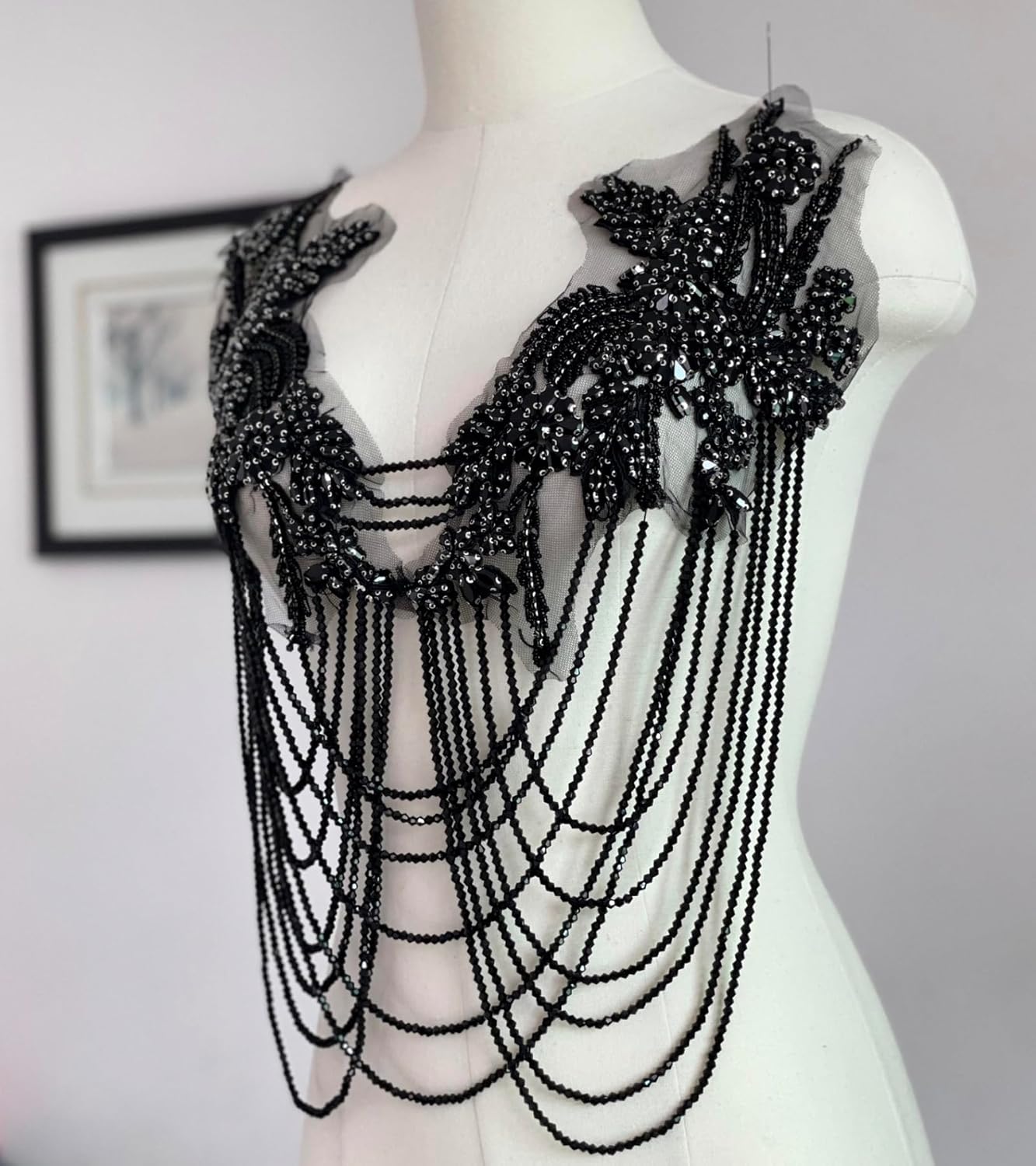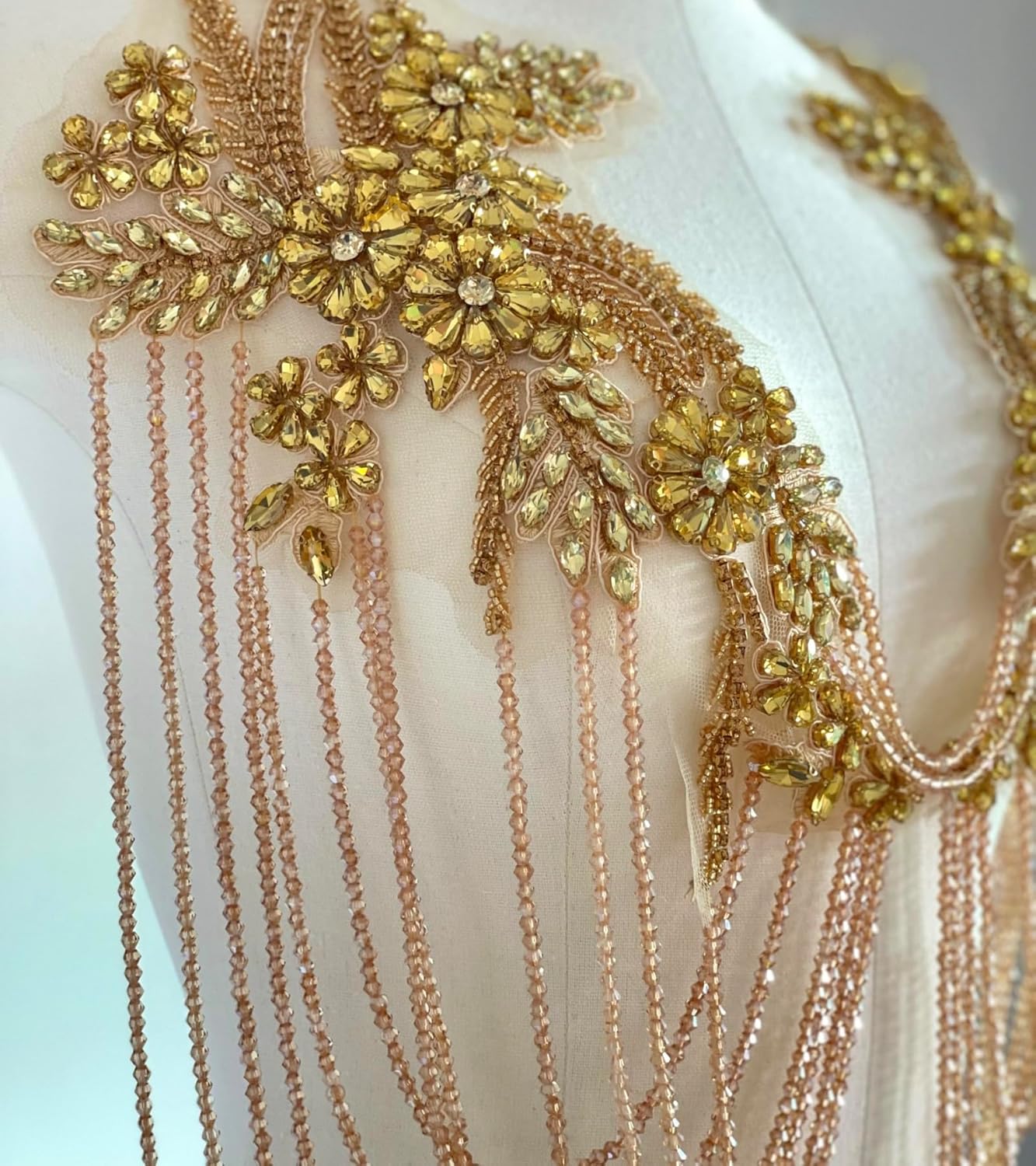 Handmade Tassel Rhinestone Applique,Rhinestone Bodice Applique, Rhinestone Applique for Dress Wedding Clothing Accessory Applique、Patch (Pink)