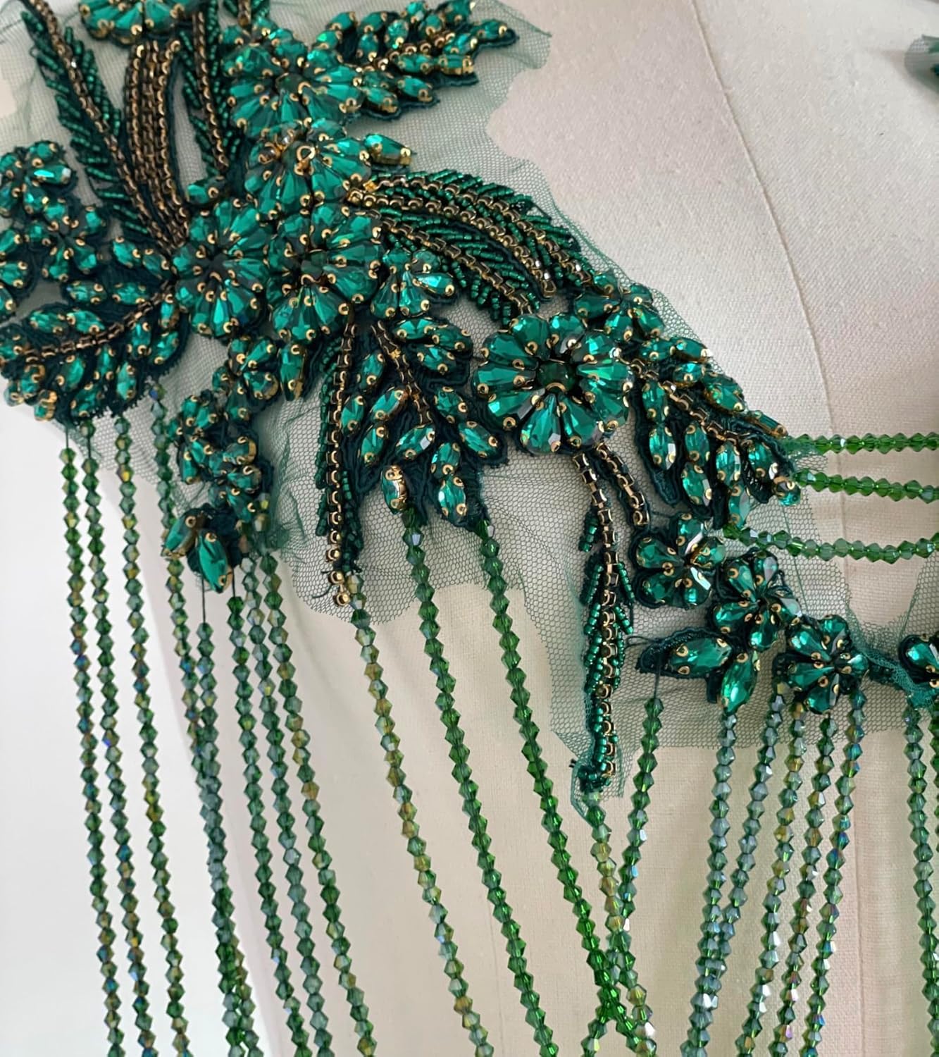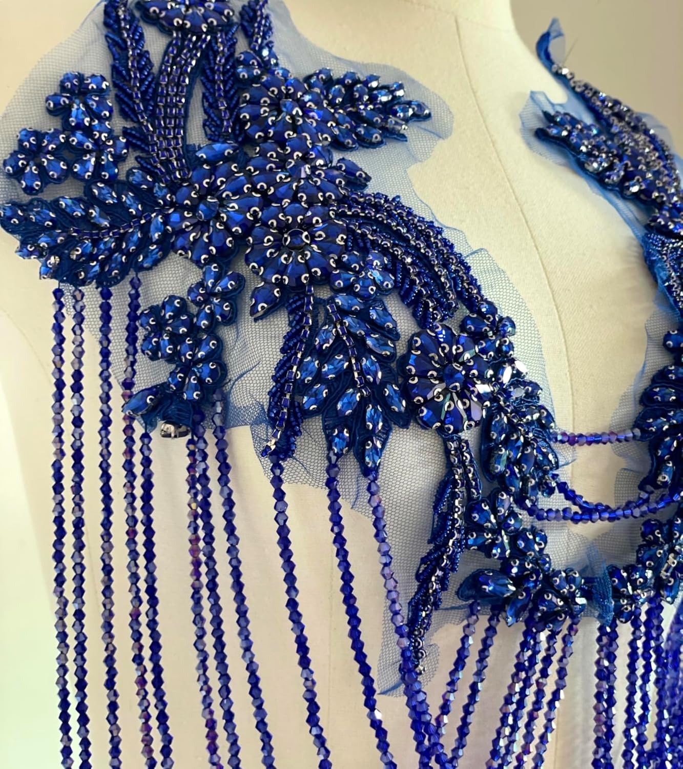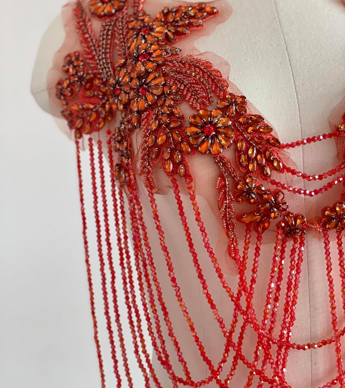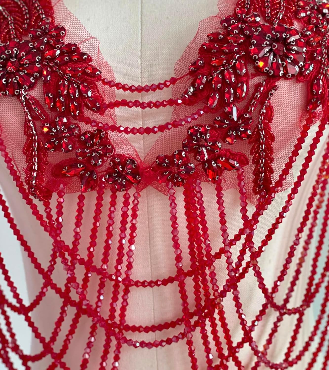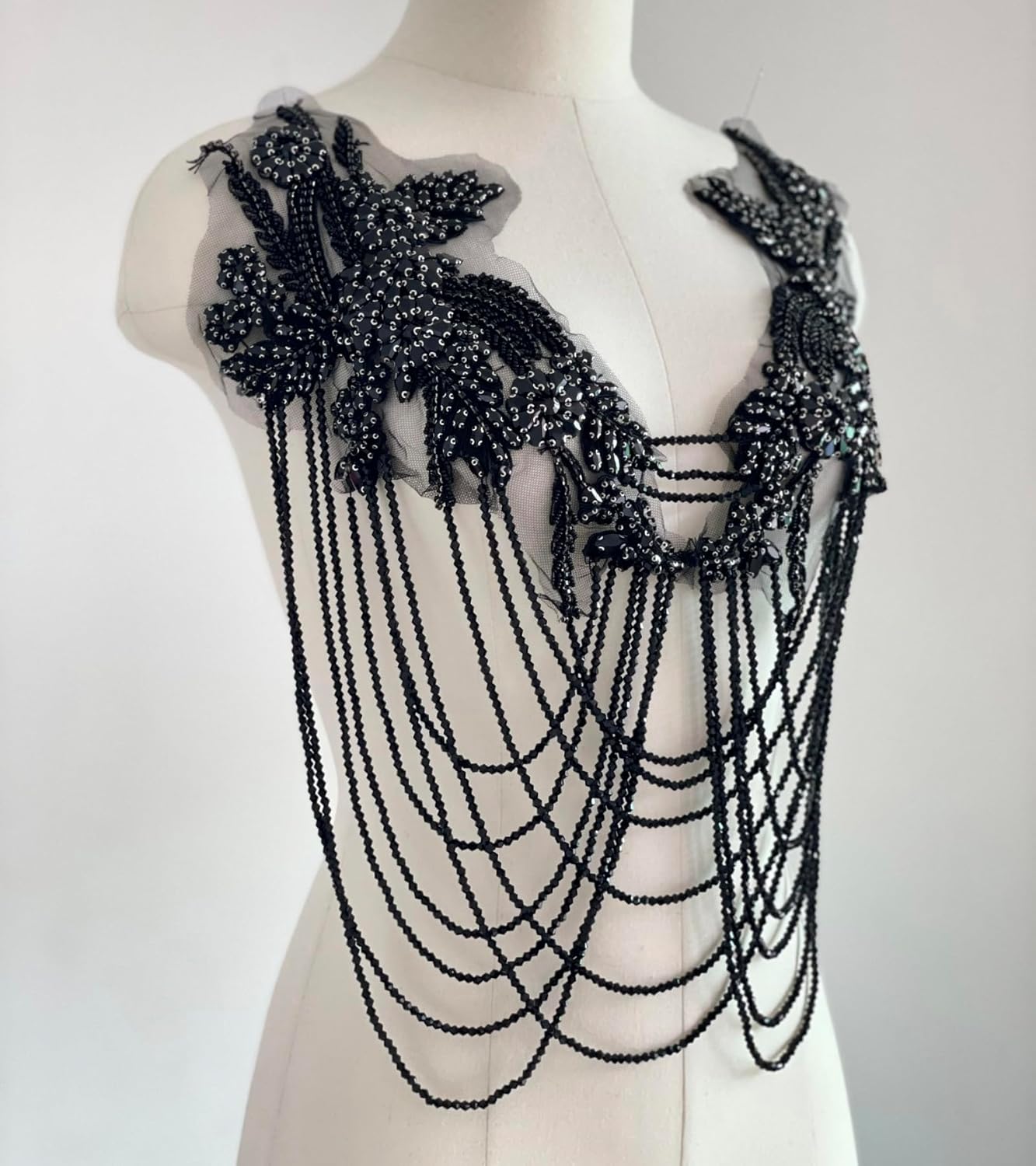Handmade Tassel Rhinestone Applique,Rhinestone Bodice Applique, Rhinestone Applique for Dress Wedding Clothing Accessory Applique、Patch (Pink)