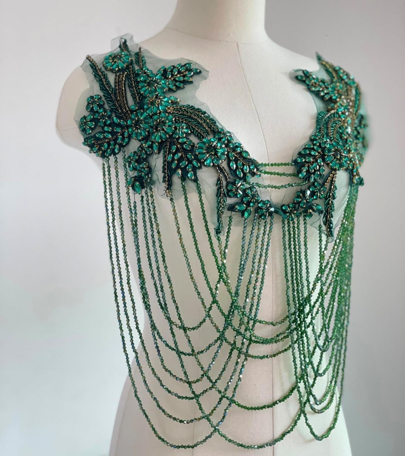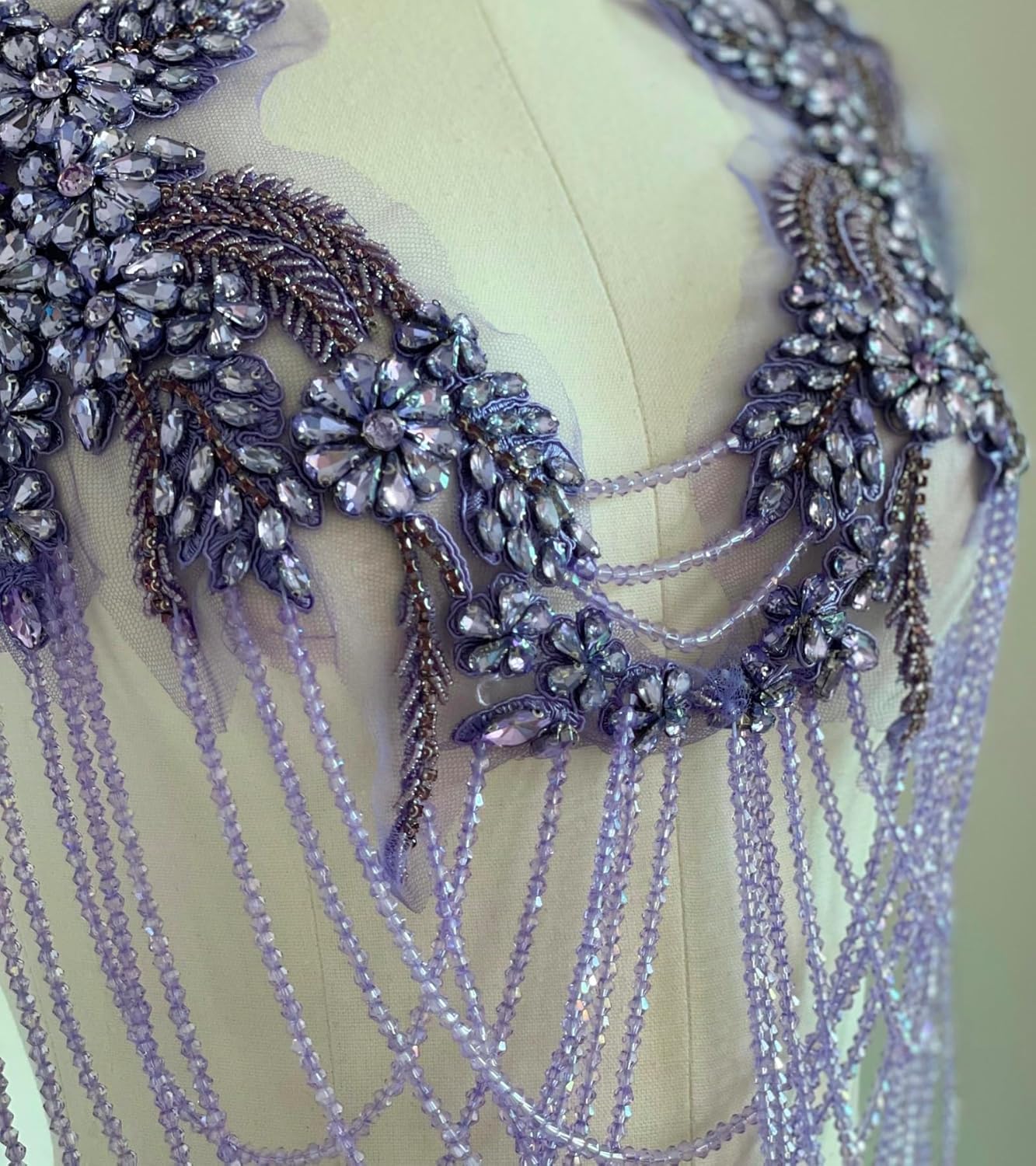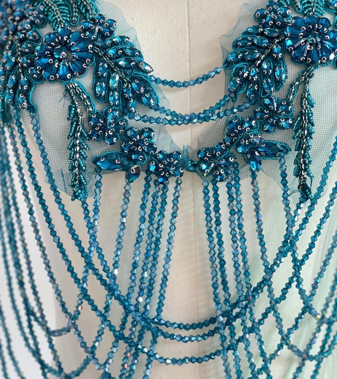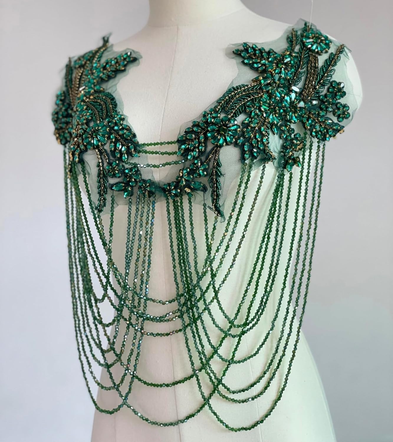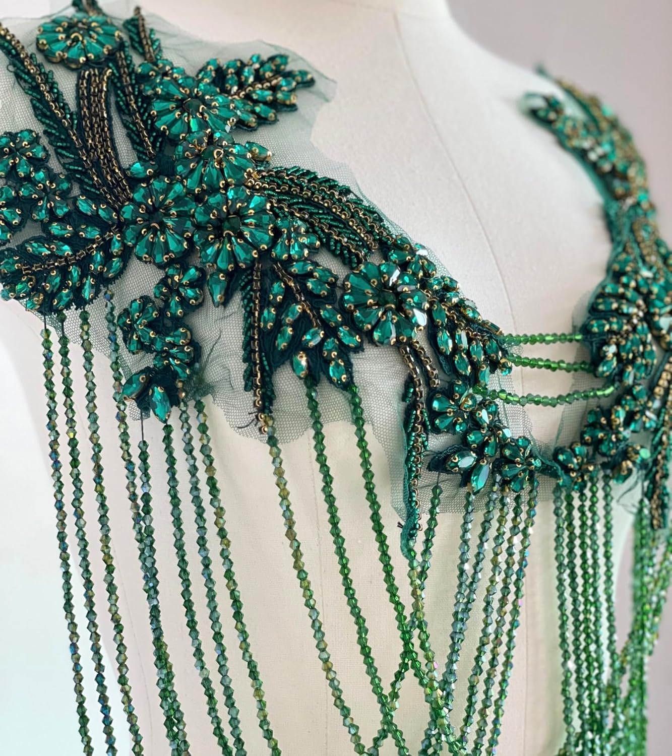 Handmade Tassel Rhinestone Applique,Rhinestone Bodice Applique, Rhinestone Applique for Dress Wedding Clothing Accessory Applique、Patch (Pink)