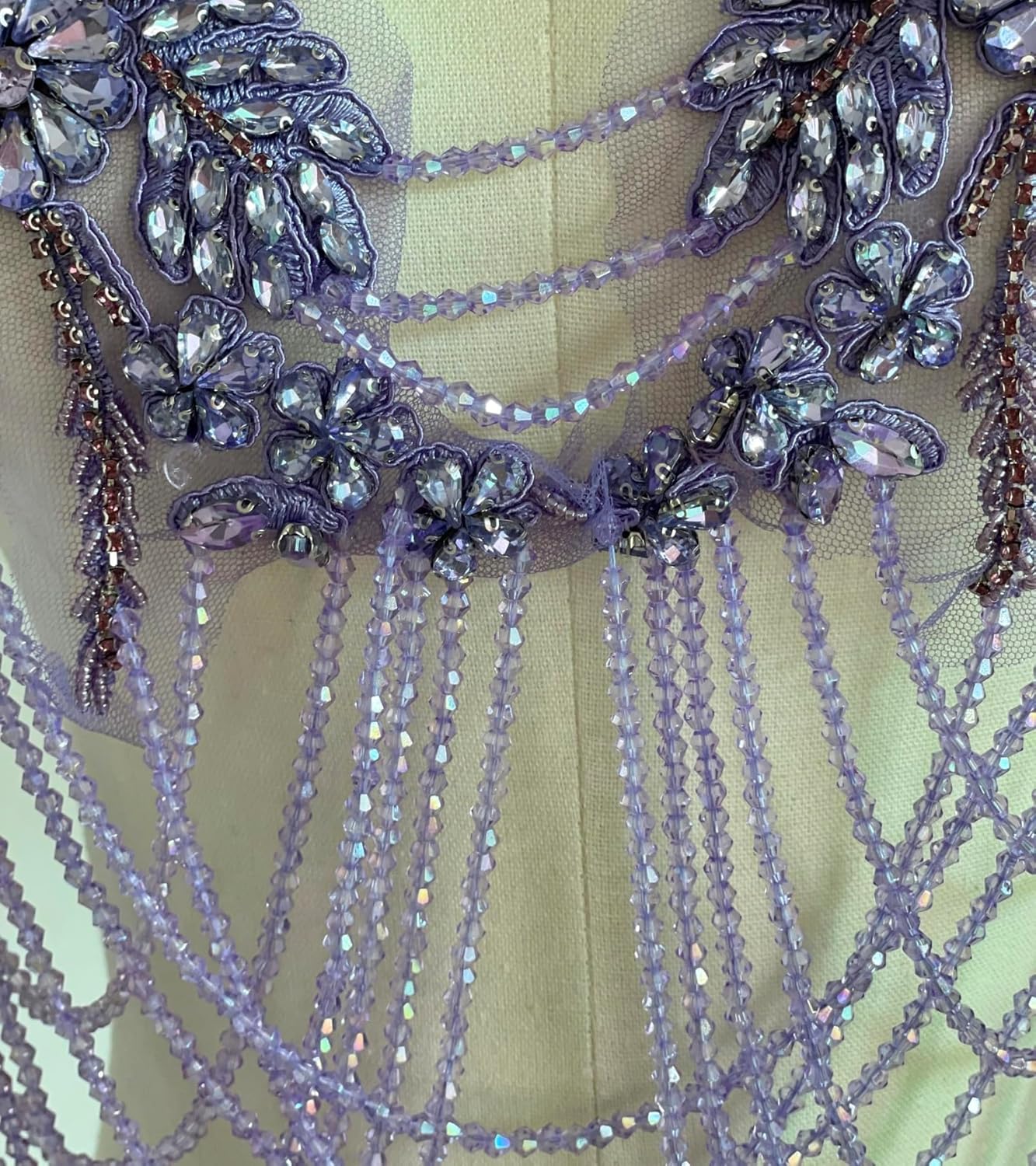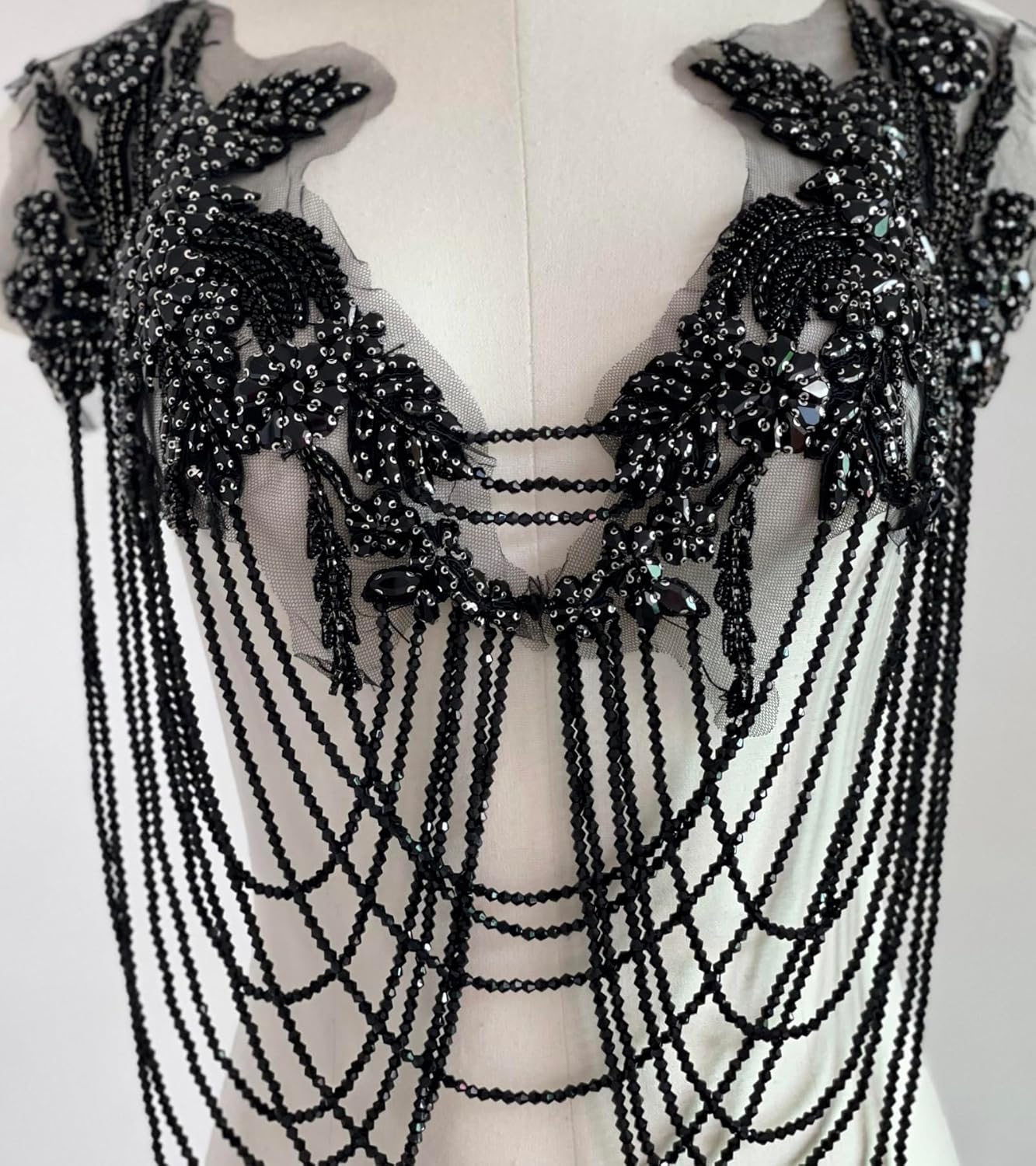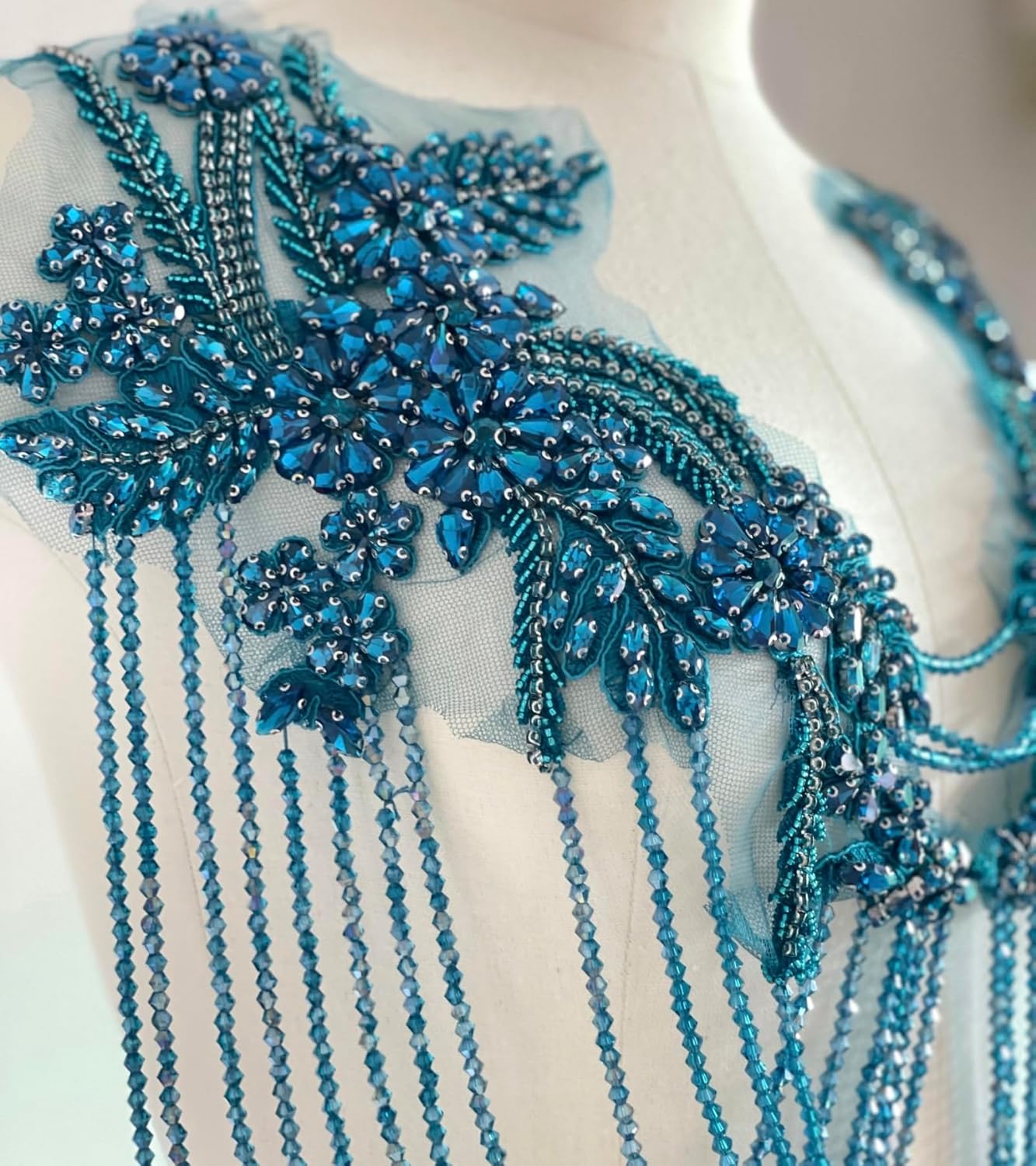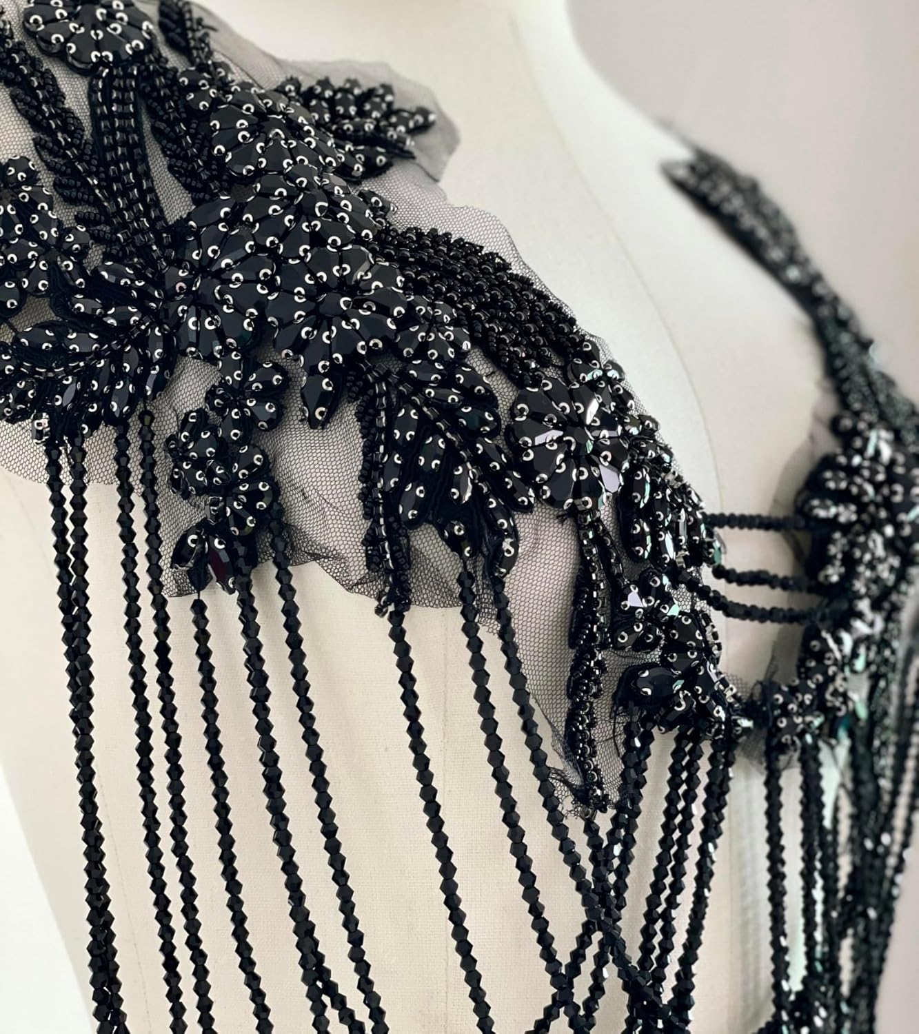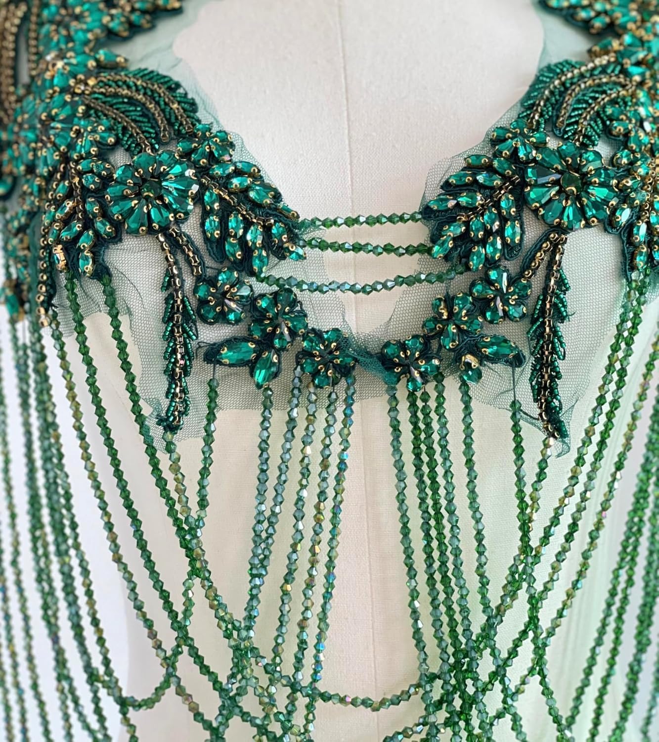 Handmade Tassel Rhinestone Applique,Rhinestone Bodice Applique, Rhinestone Applique for Dress Wedding Clothing Accessory Applique、Patch (Pink)