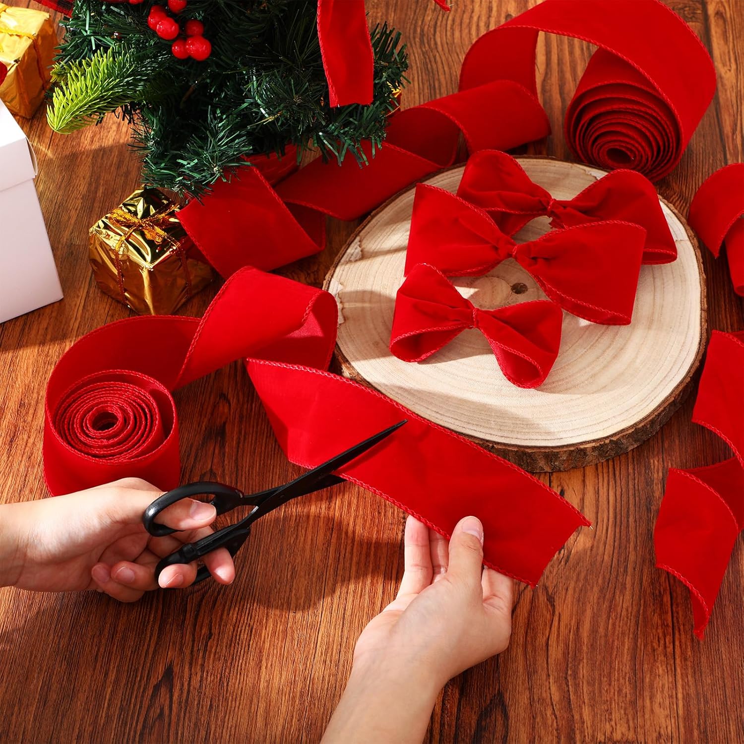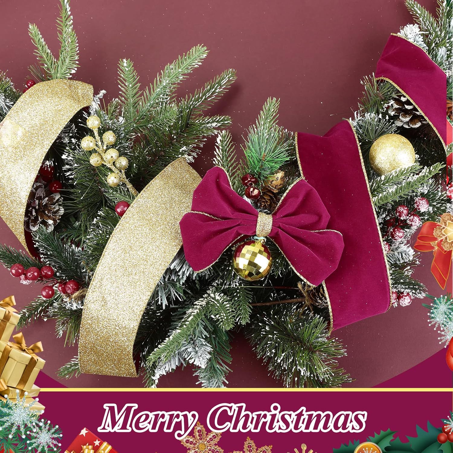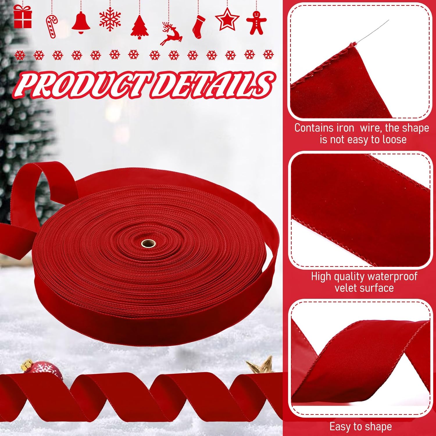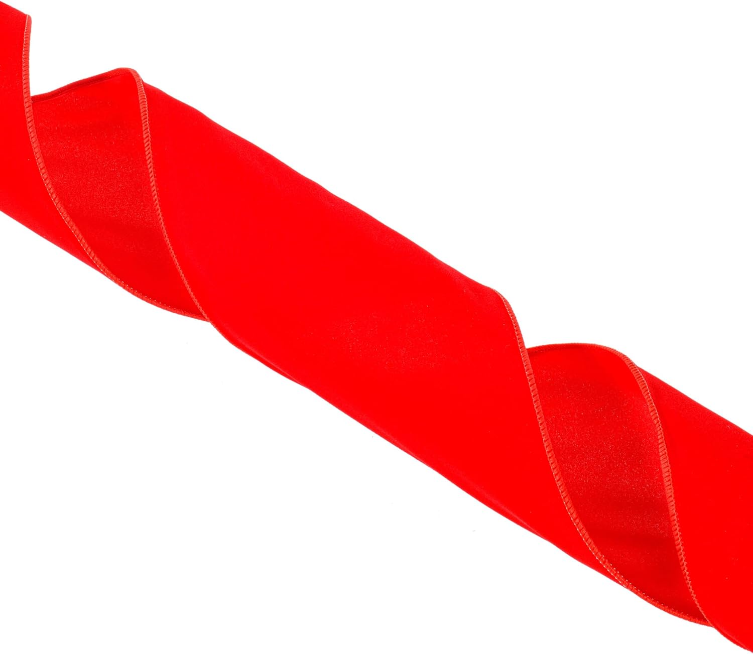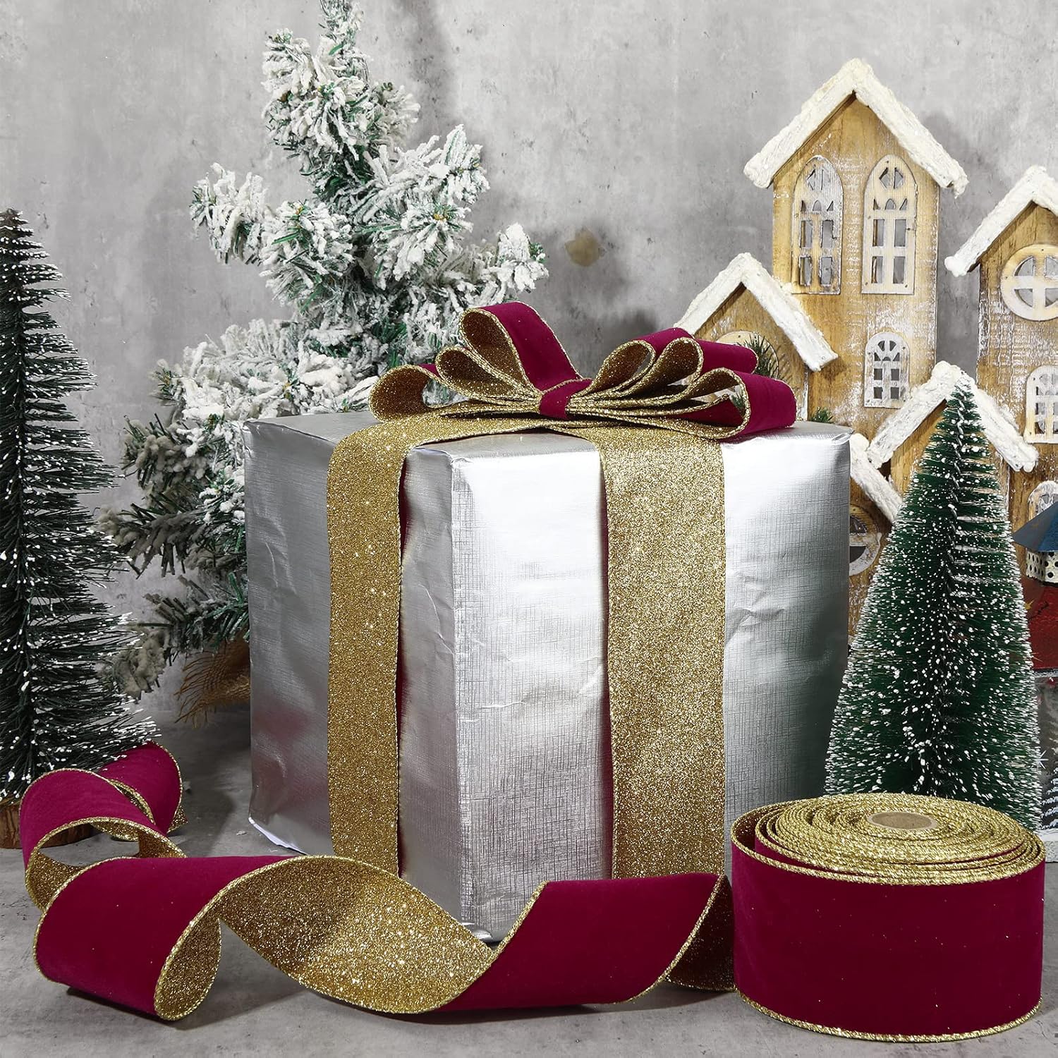 Syhood Christmas Wired Velvet Ribbon with Gold Edge Waterproof Velvet Decoration Ribbon Wrapping for Xmas Wreath Bows Floral Craft Ornaments(2.5 Inch X 300 Yard,Scarlet)