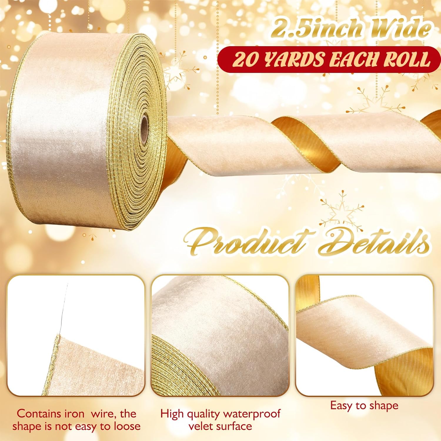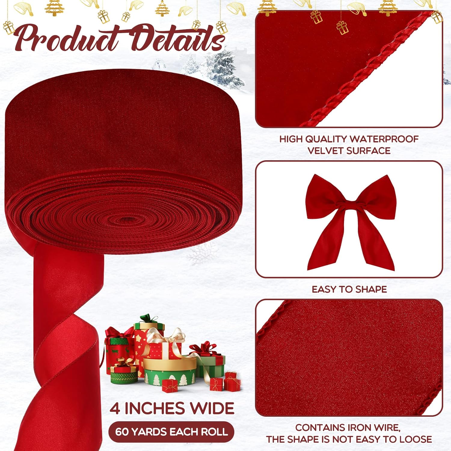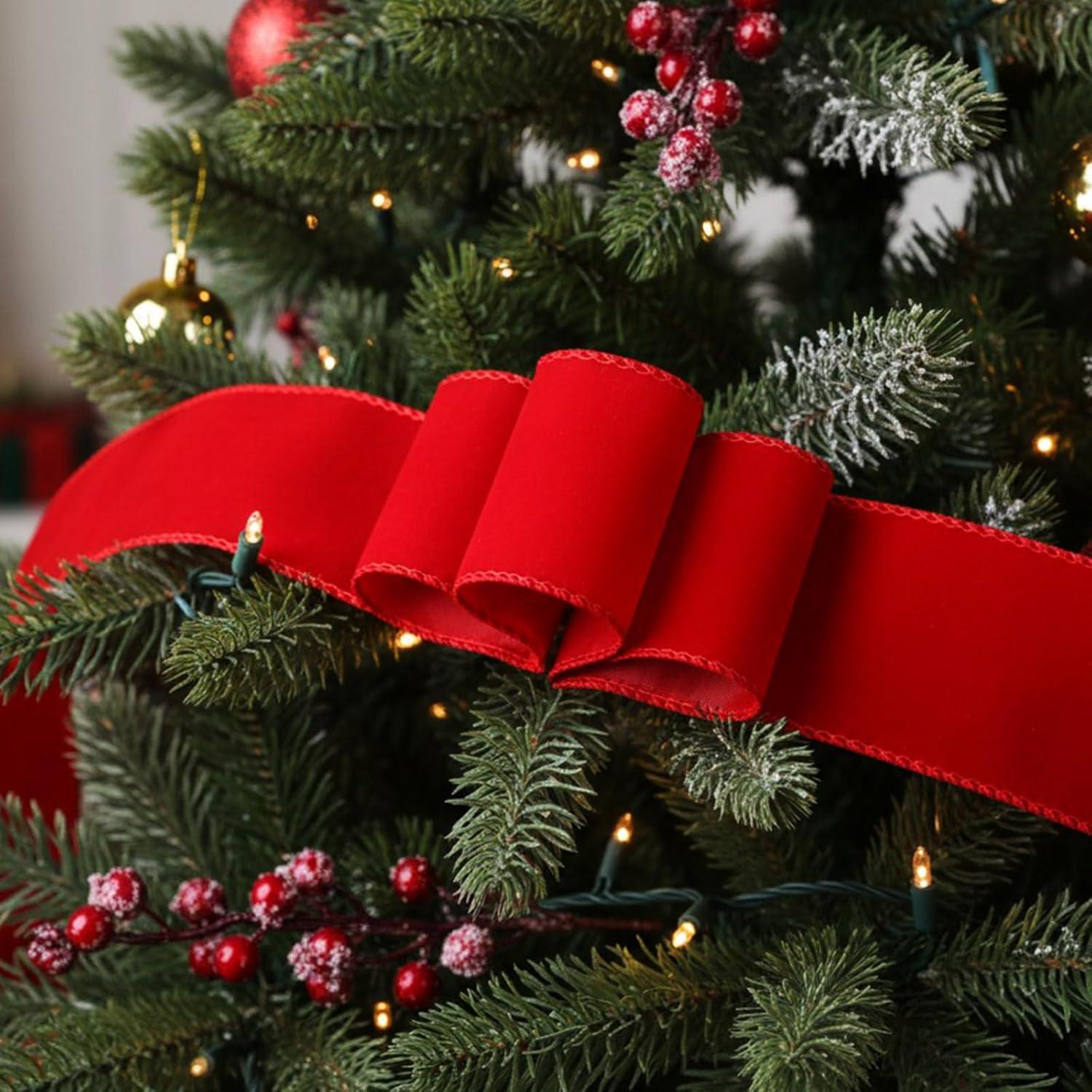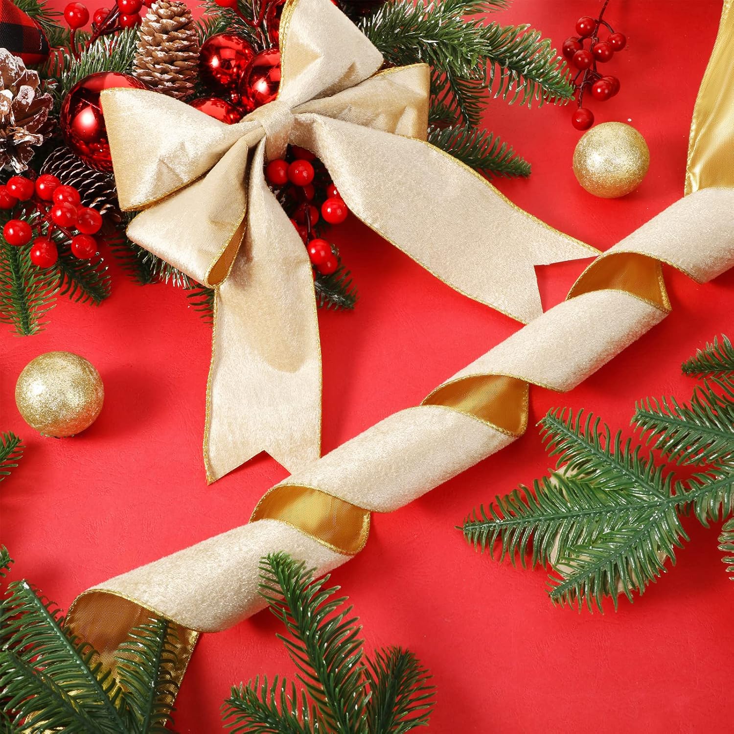 Syhood Christmas Wired Velvet Ribbon with Gold Edge Waterproof Velvet Decoration Ribbon Wrapping for Xmas Wreath Bows Floral Craft Ornaments(2.5 Inch X 300 Yard,Scarlet)