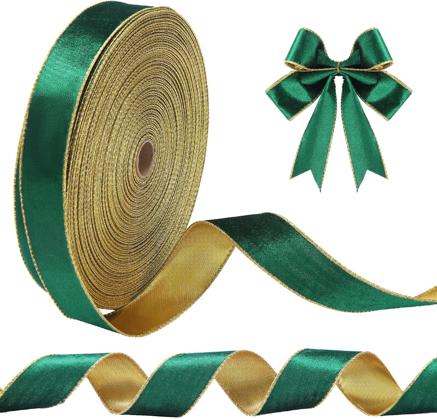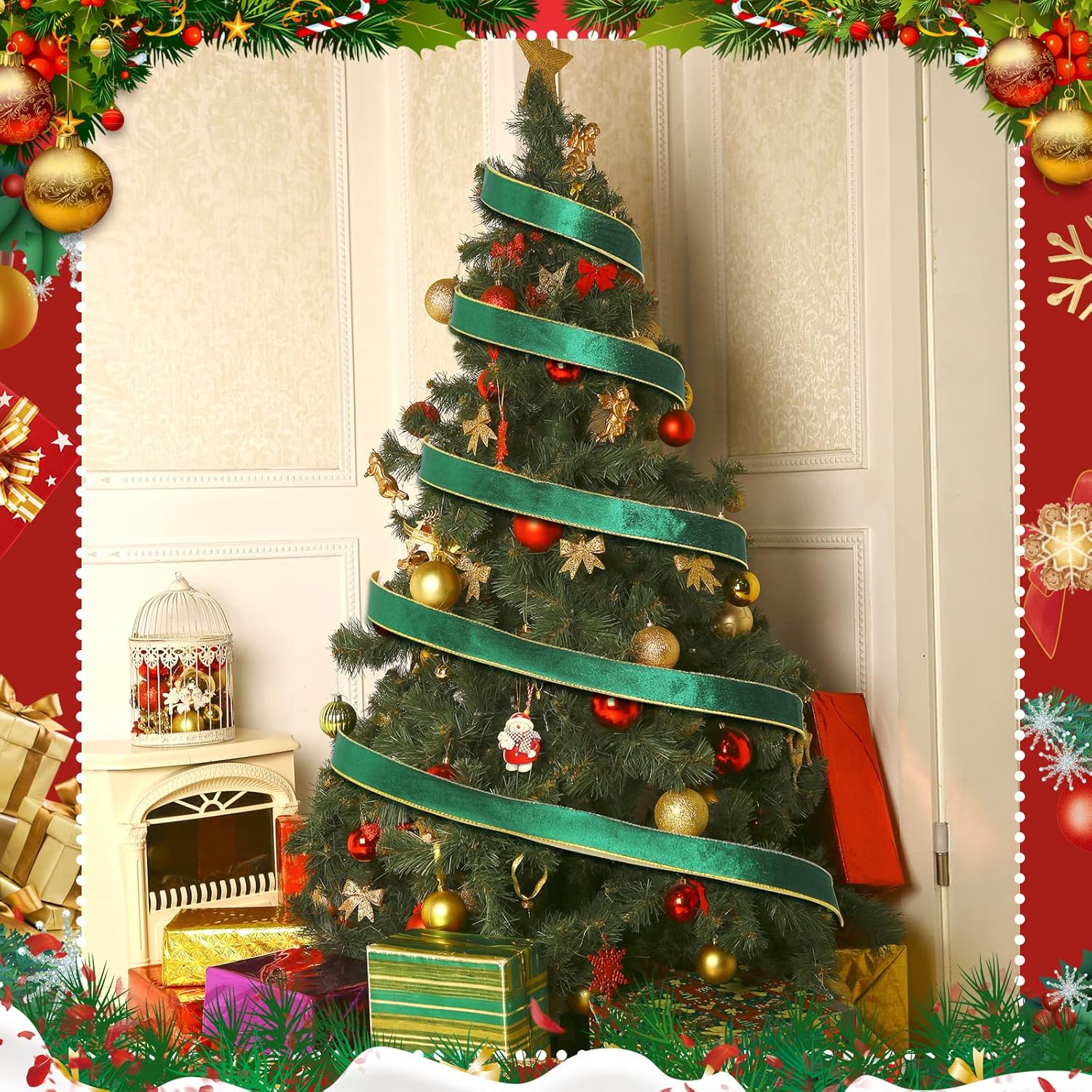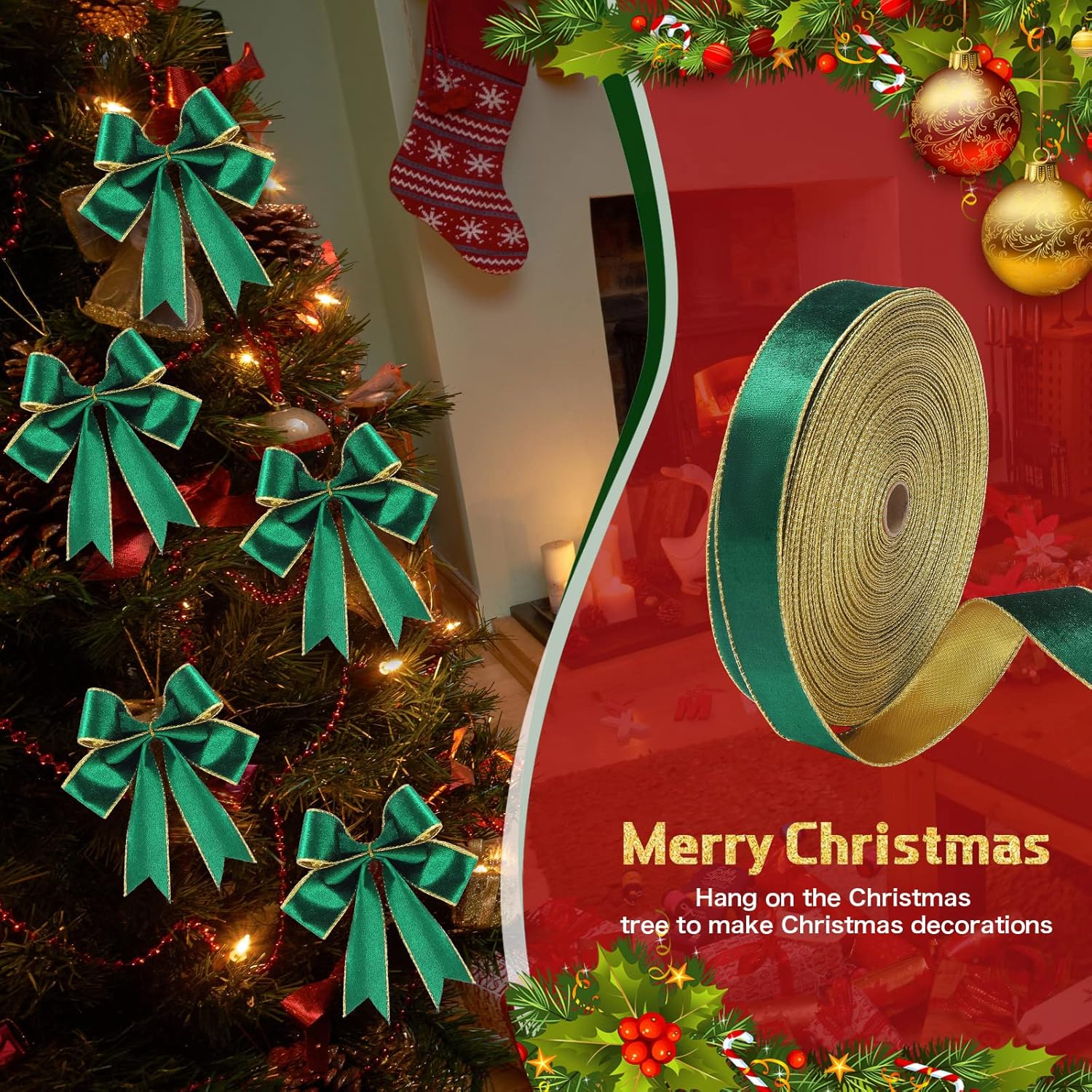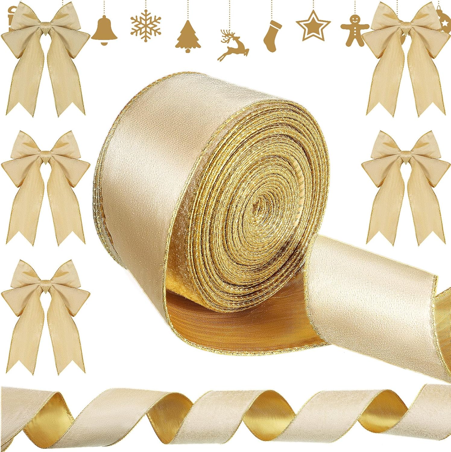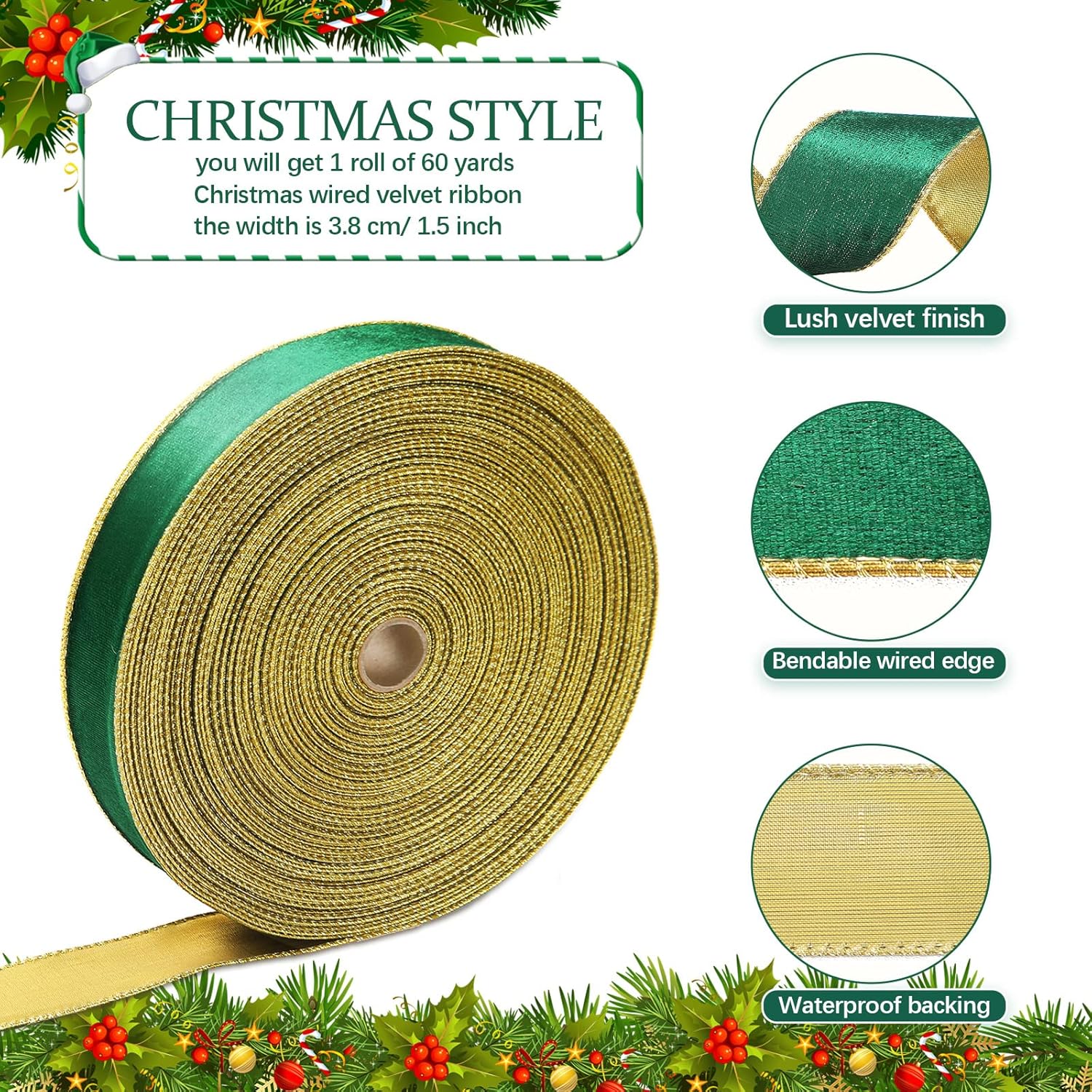 Syhood Christmas Wired Velvet Ribbon with Gold Edge Waterproof Velvet Decoration Ribbon Wrapping for Xmas Wreath Bows Floral Craft Ornaments(2.5 Inch X 300 Yard,Scarlet)