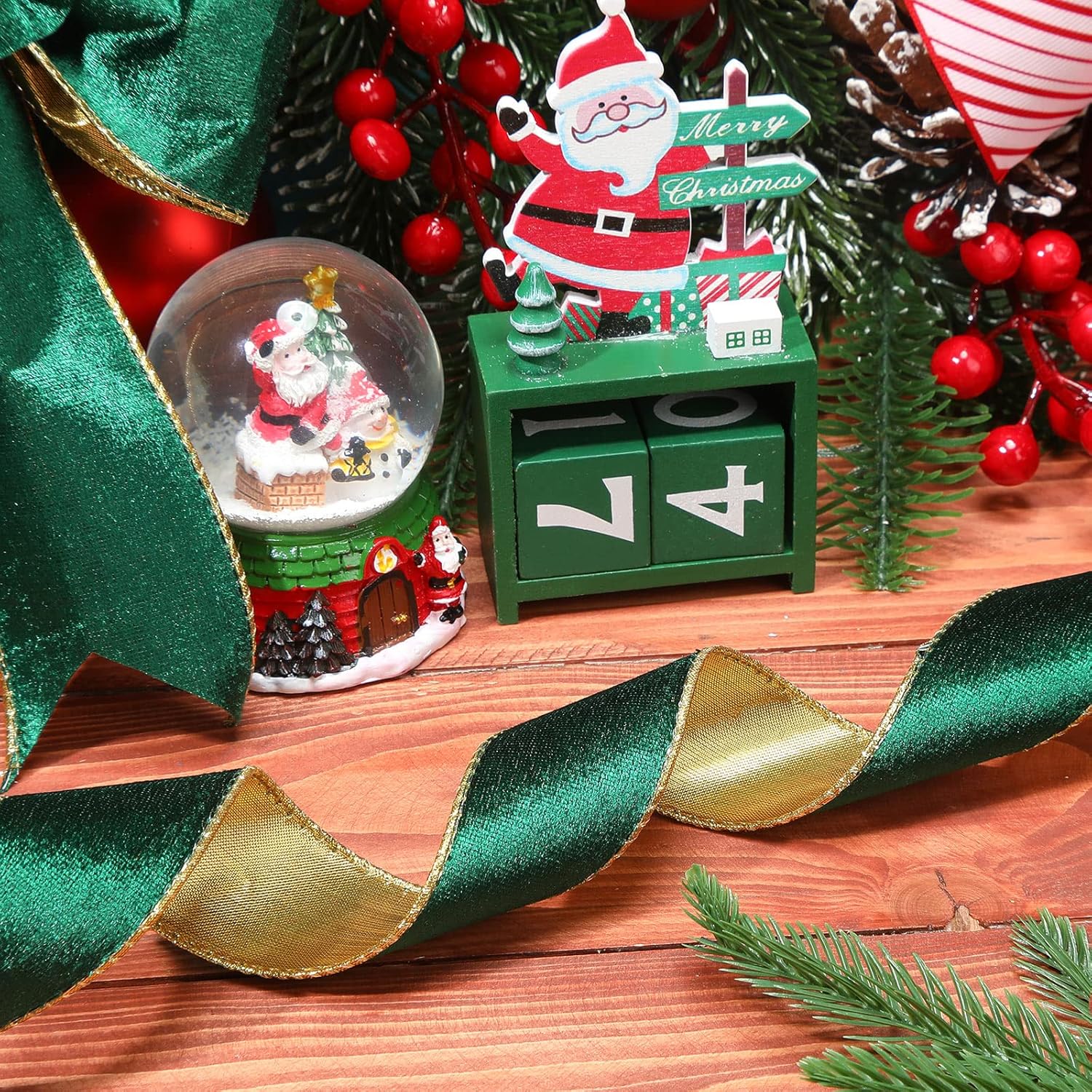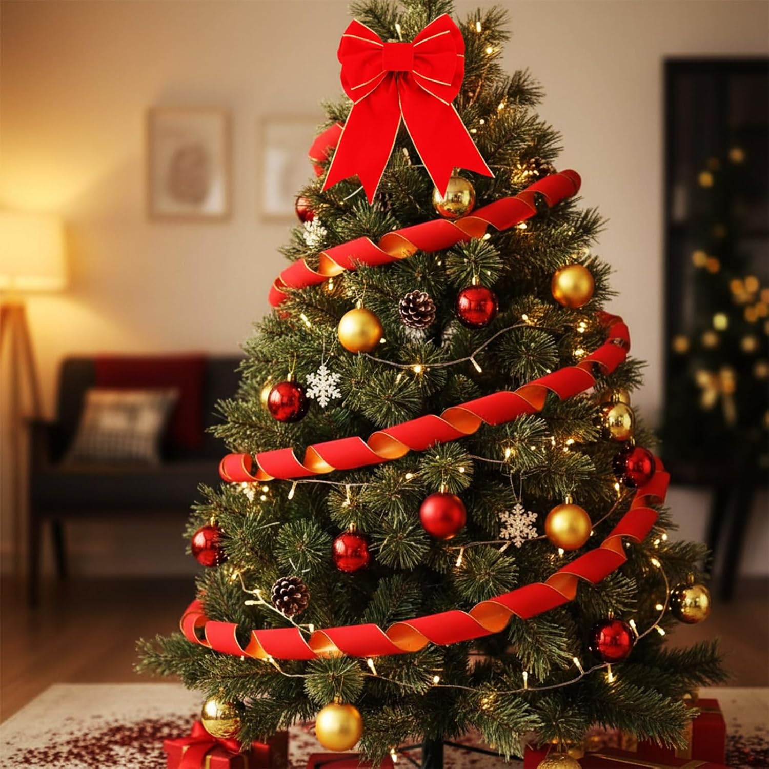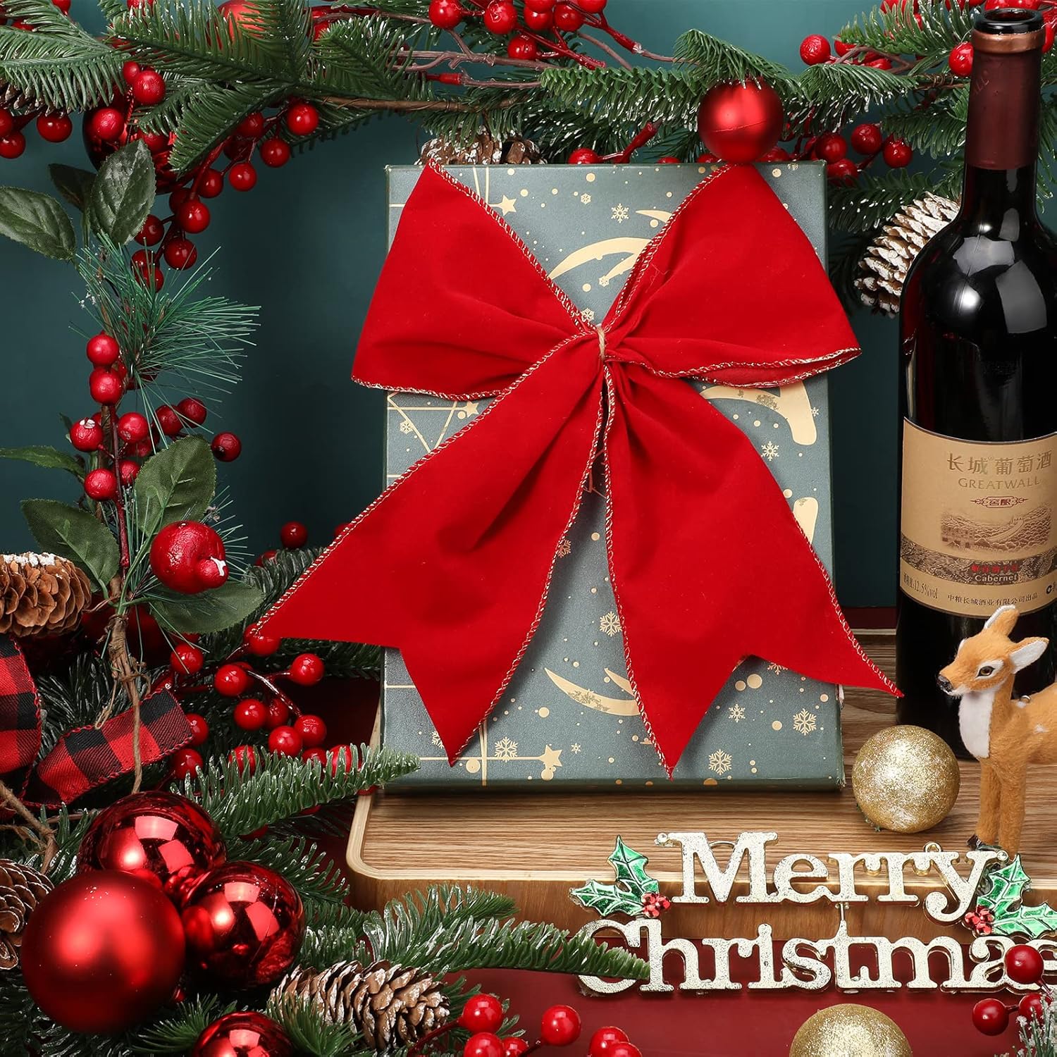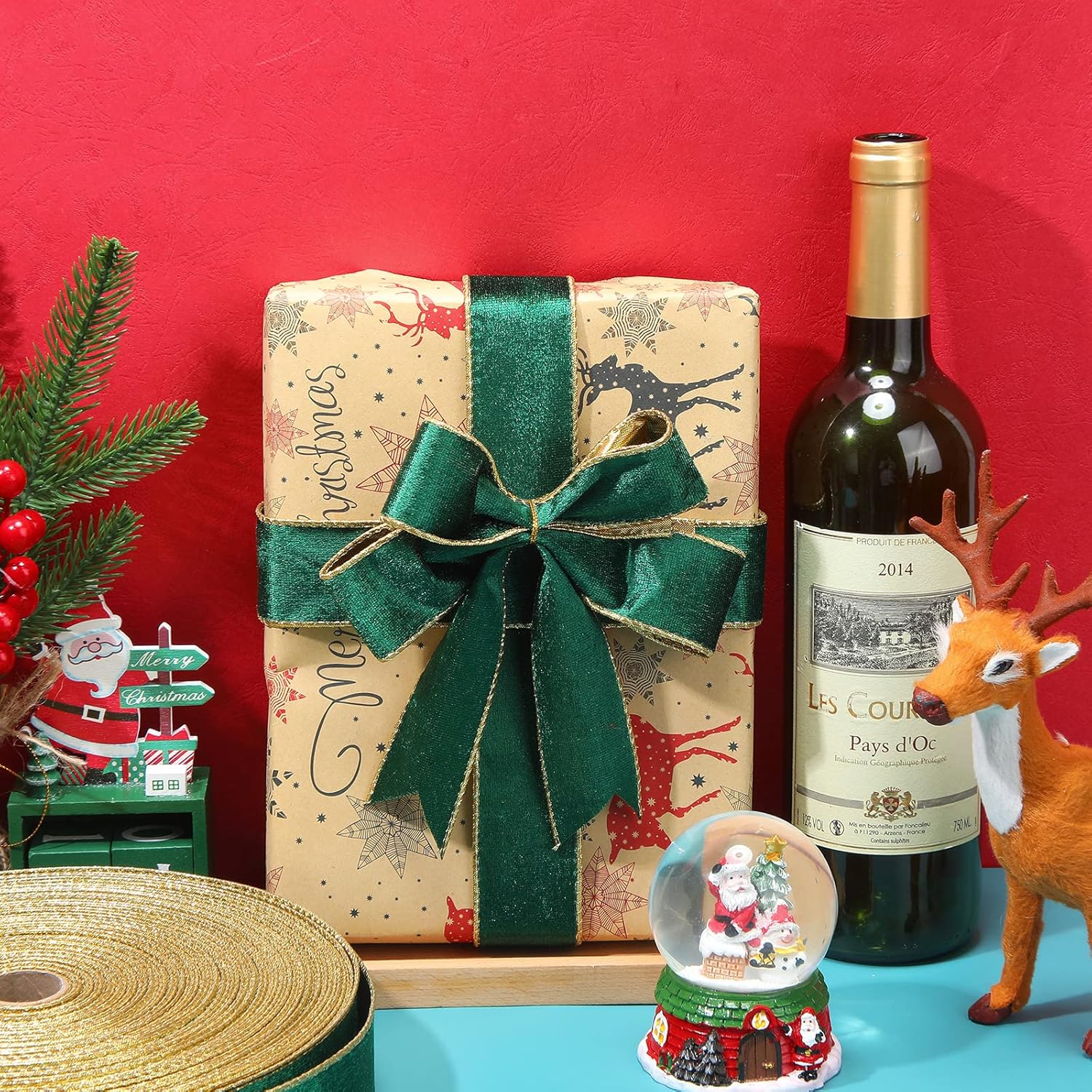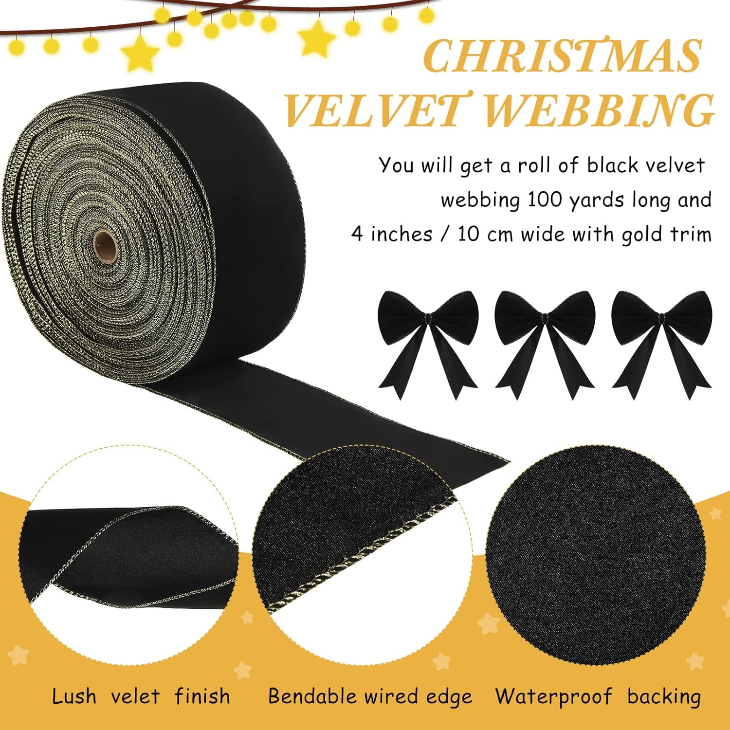 Syhood Christmas Wired Velvet Ribbon with Gold Edge Waterproof Velvet Decoration Ribbon Wrapping for Xmas Wreath Bows Floral Craft Ornaments(2.5 Inch X 300 Yard,Scarlet)