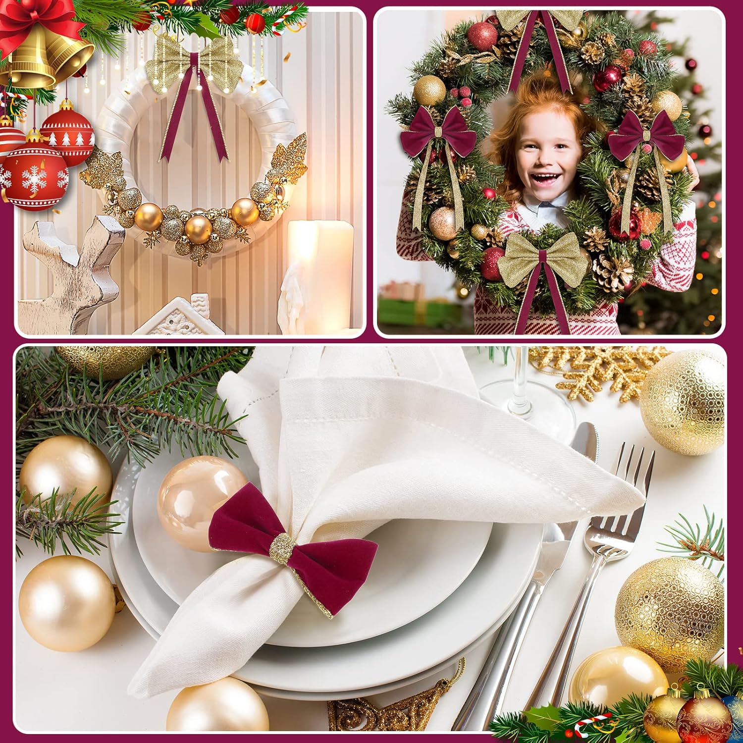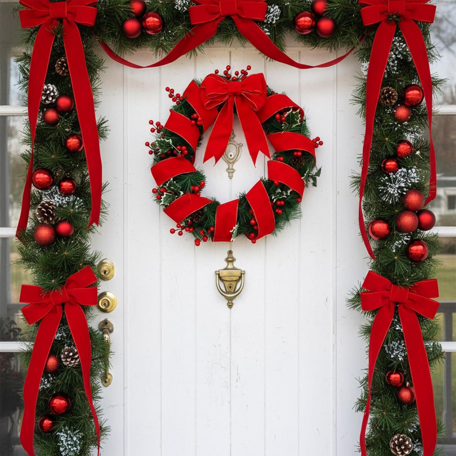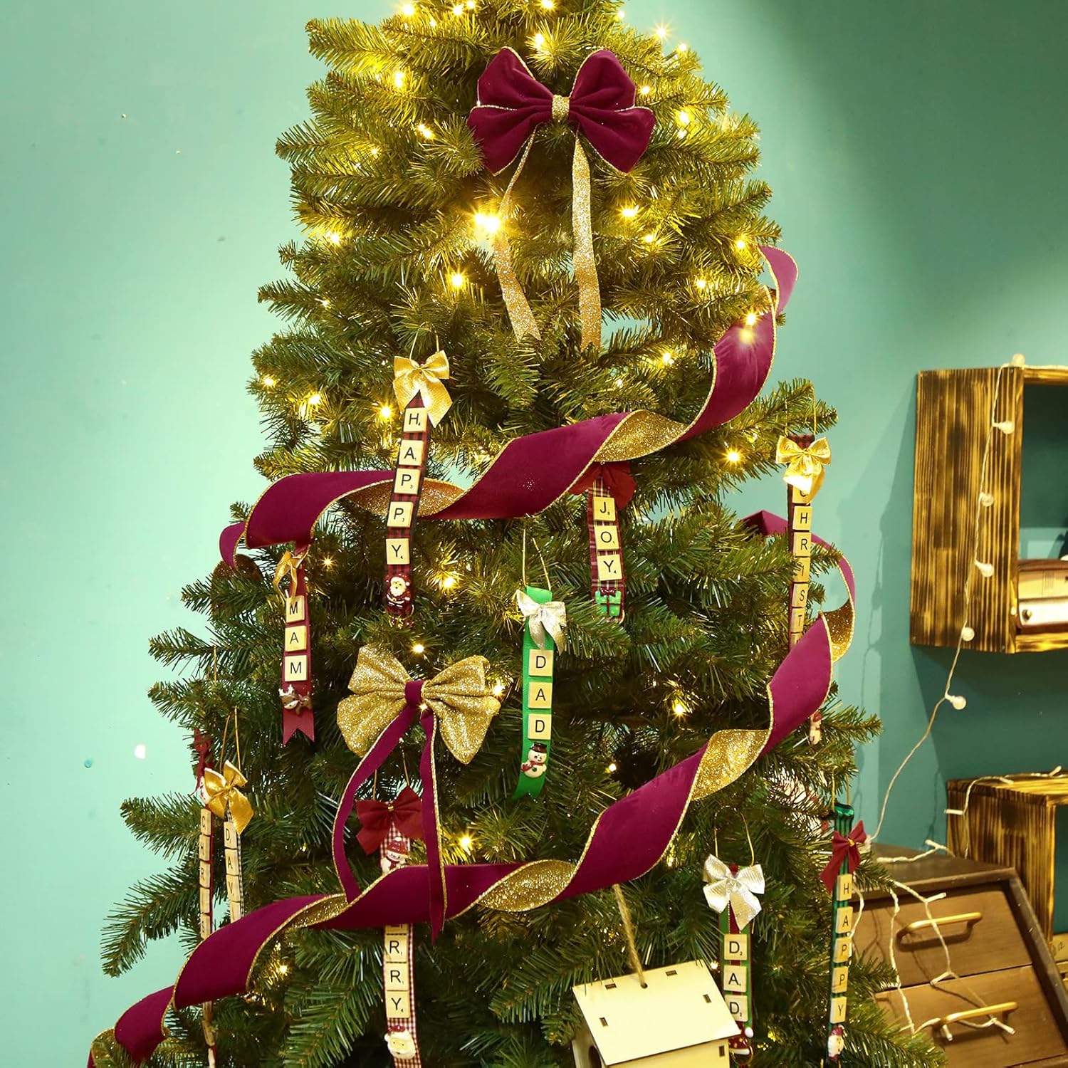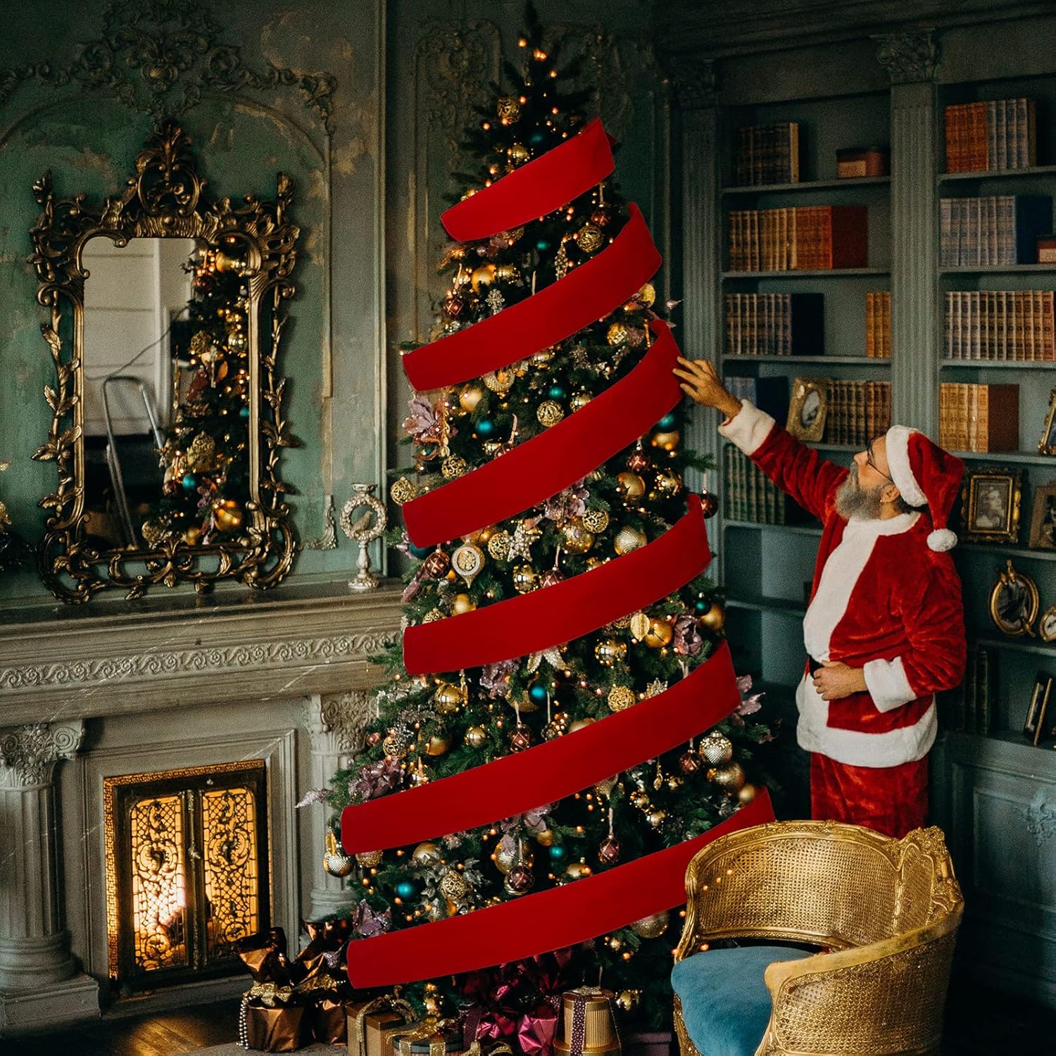Syhood Christmas Wired Velvet Ribbon with Gold Edge Waterproof Velvet Decoration Ribbon Wrapping for Xmas Wreath Bows Floral Craft Ornaments(2.5 Inch X 300 Yard,Scarlet)