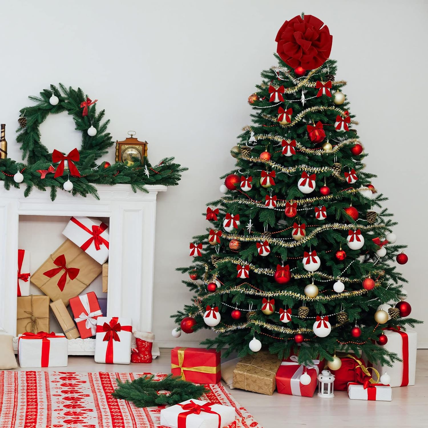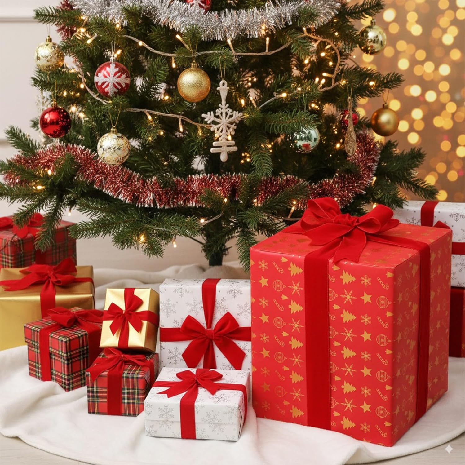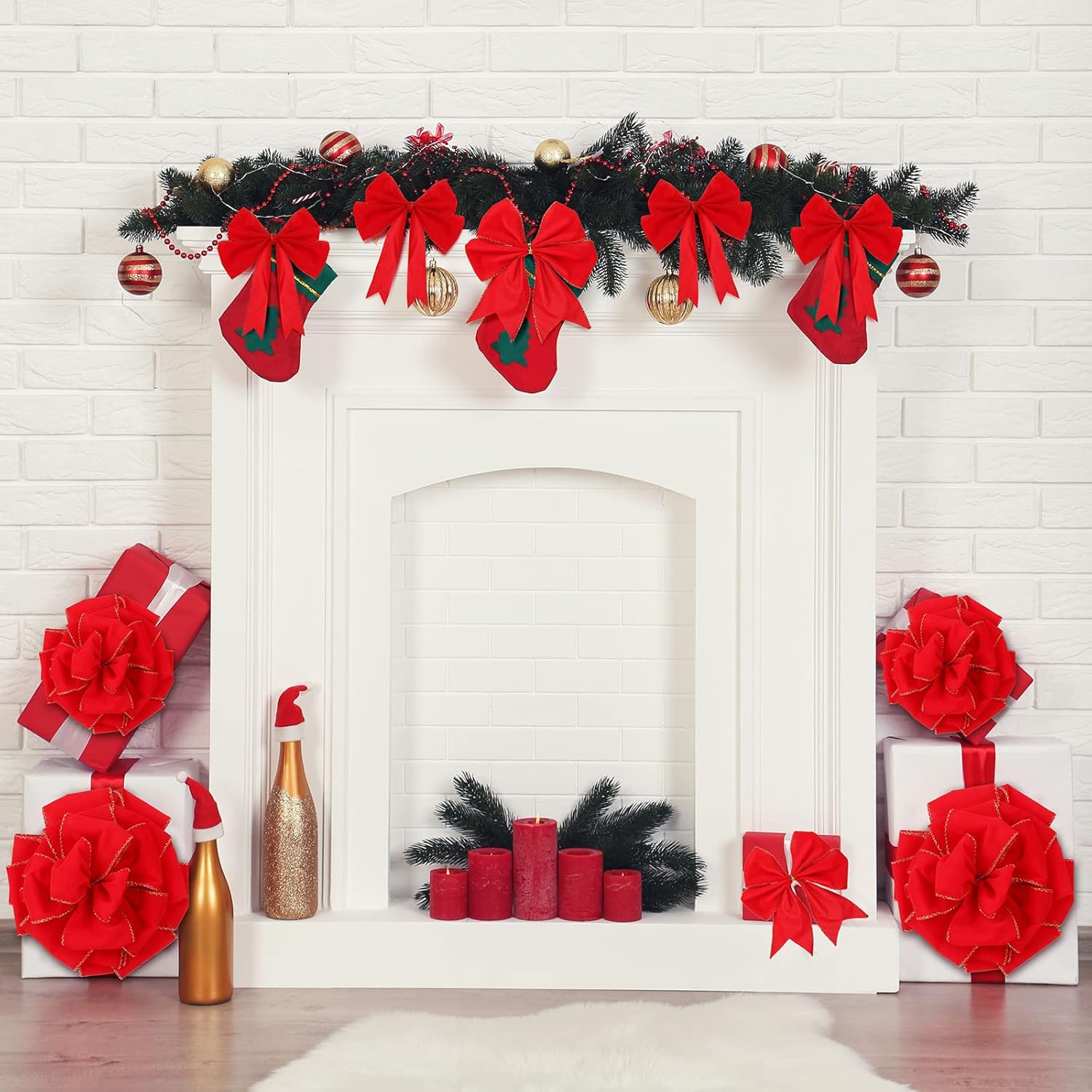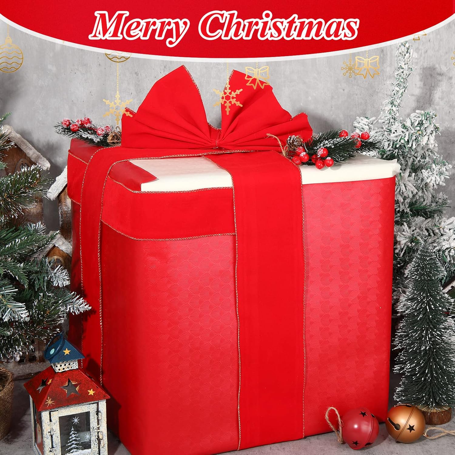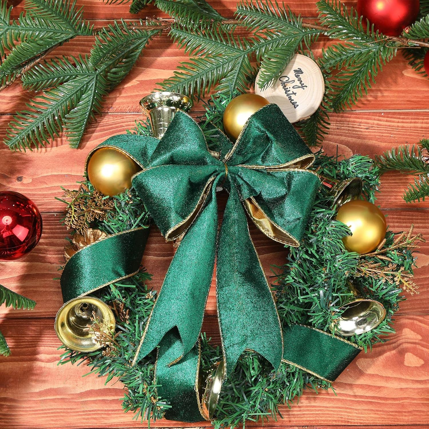 Syhood Christmas Wired Velvet Ribbon with Gold Edge Waterproof Velvet Decoration Ribbon Wrapping for Xmas Wreath Bows Floral Craft Ornaments(2.5 Inch X 300 Yard,Scarlet)