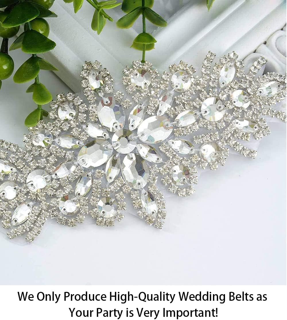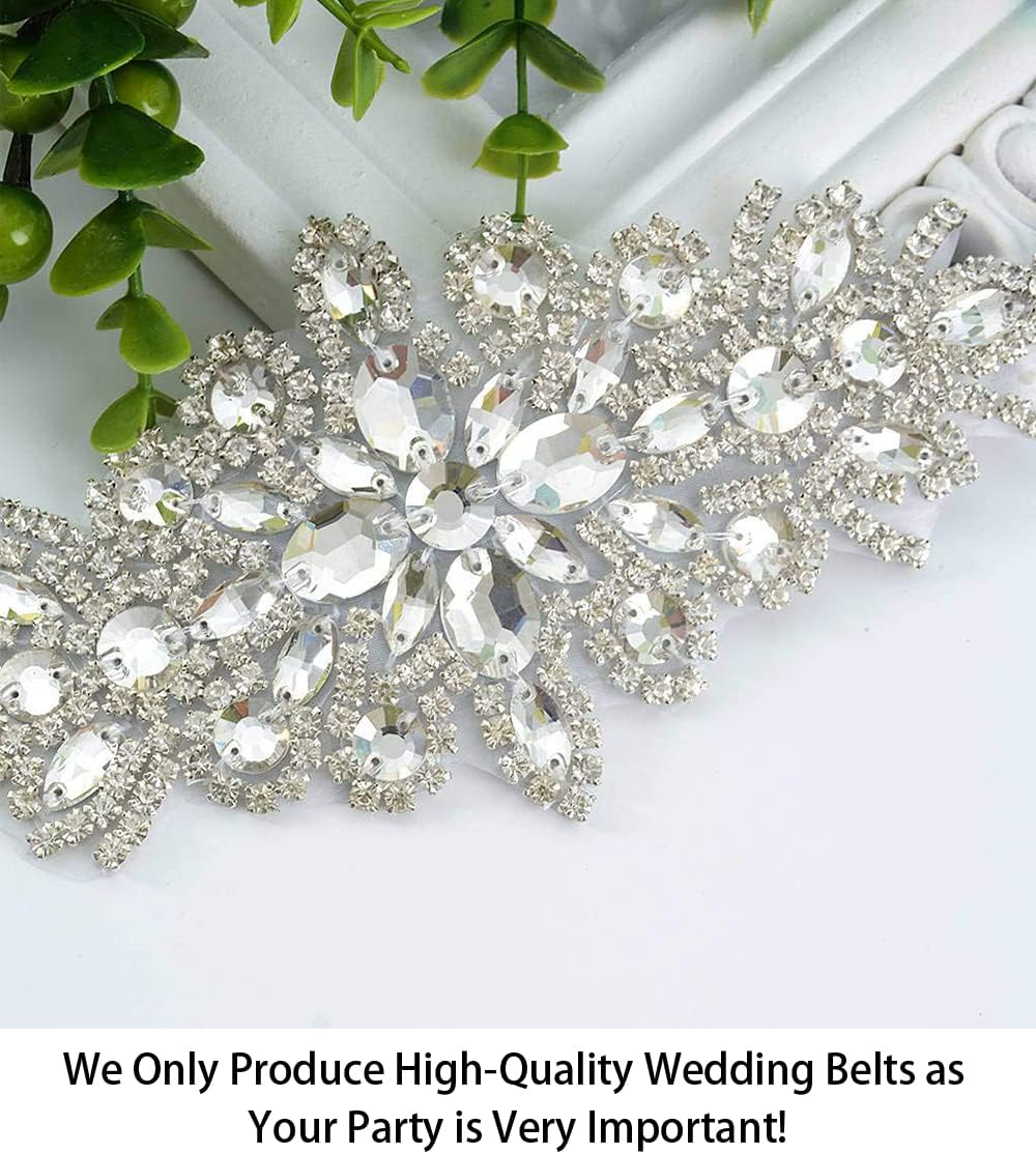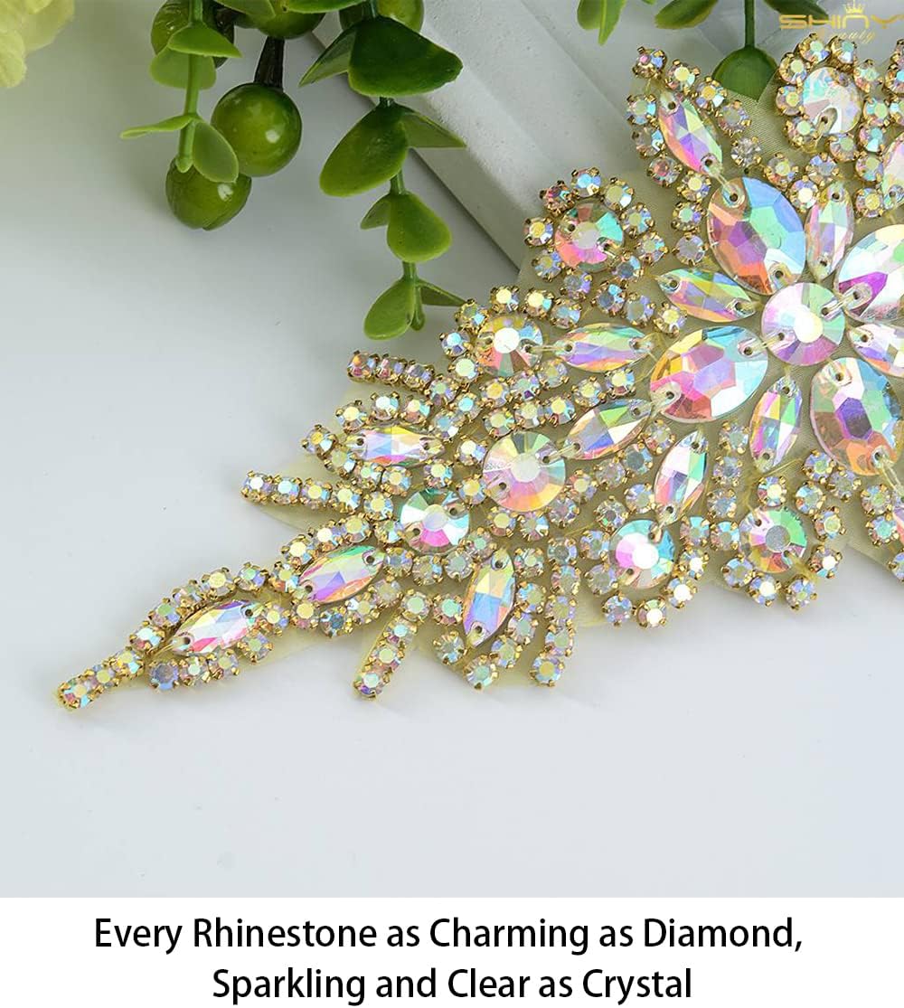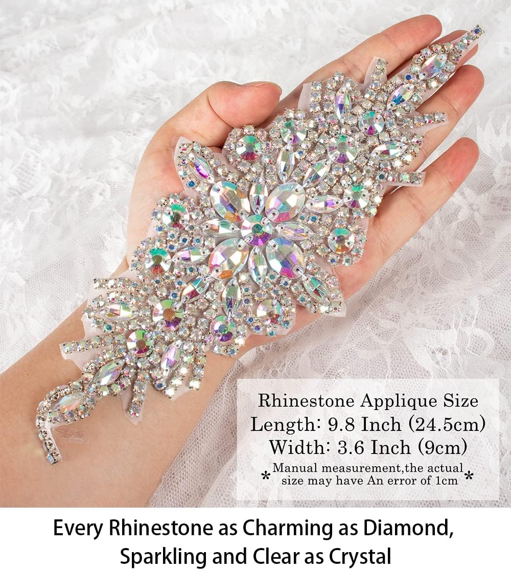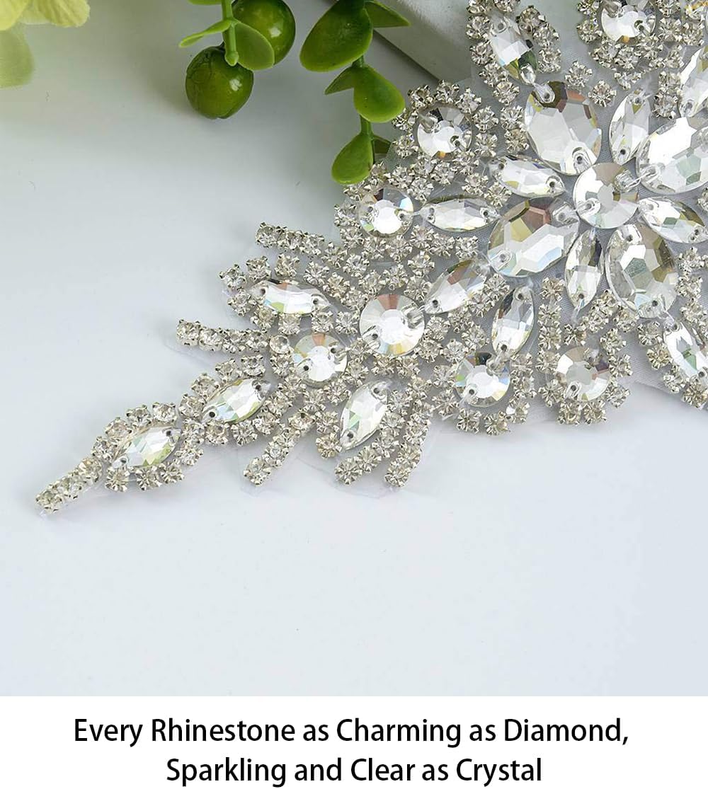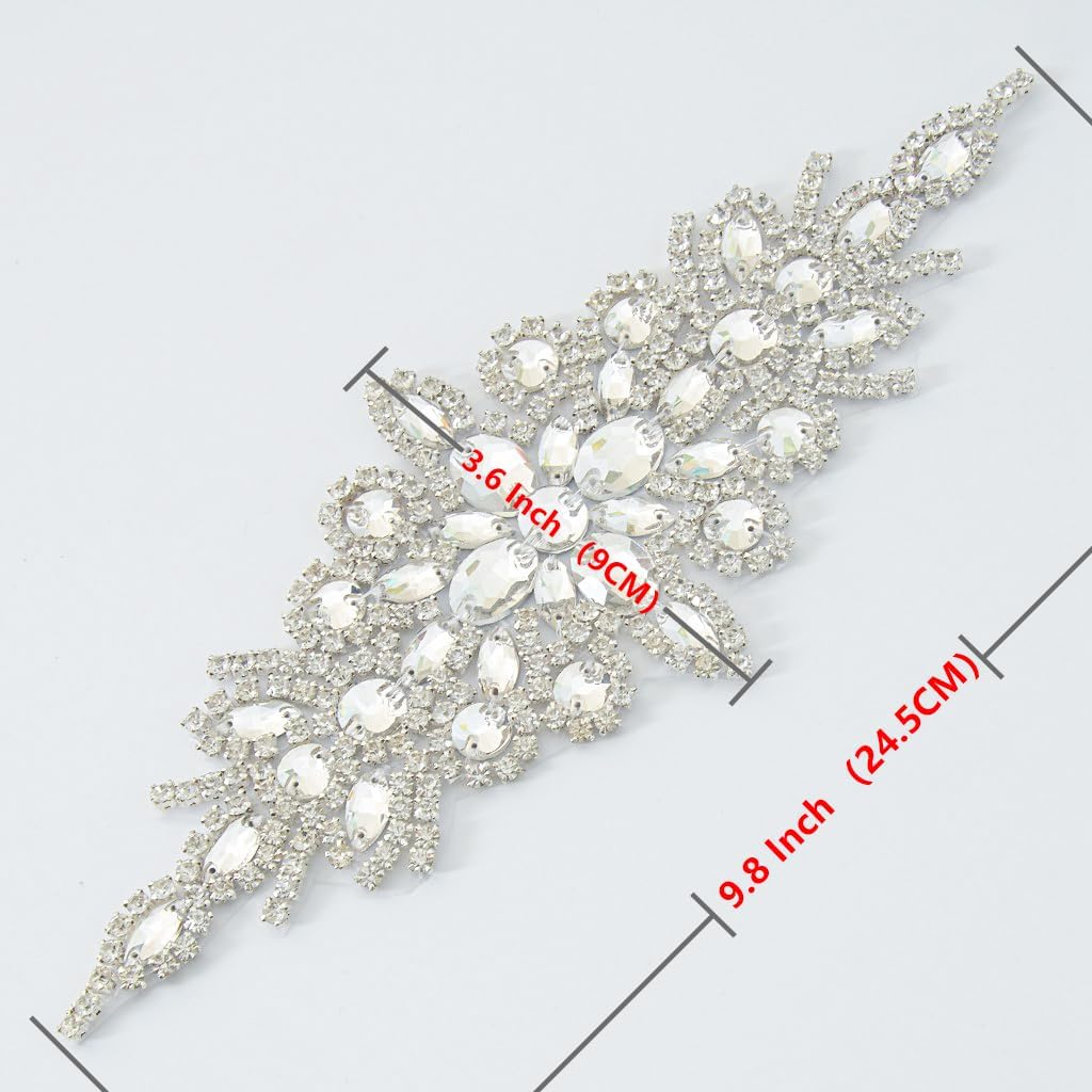 ShiDianYi Pack of 10 Rhinestone Applique, Diamante Applique Big Beaded Crystal Silver Patches Sew on Rhinestones with Stones Wedding Applique-0921