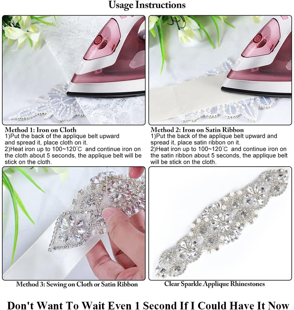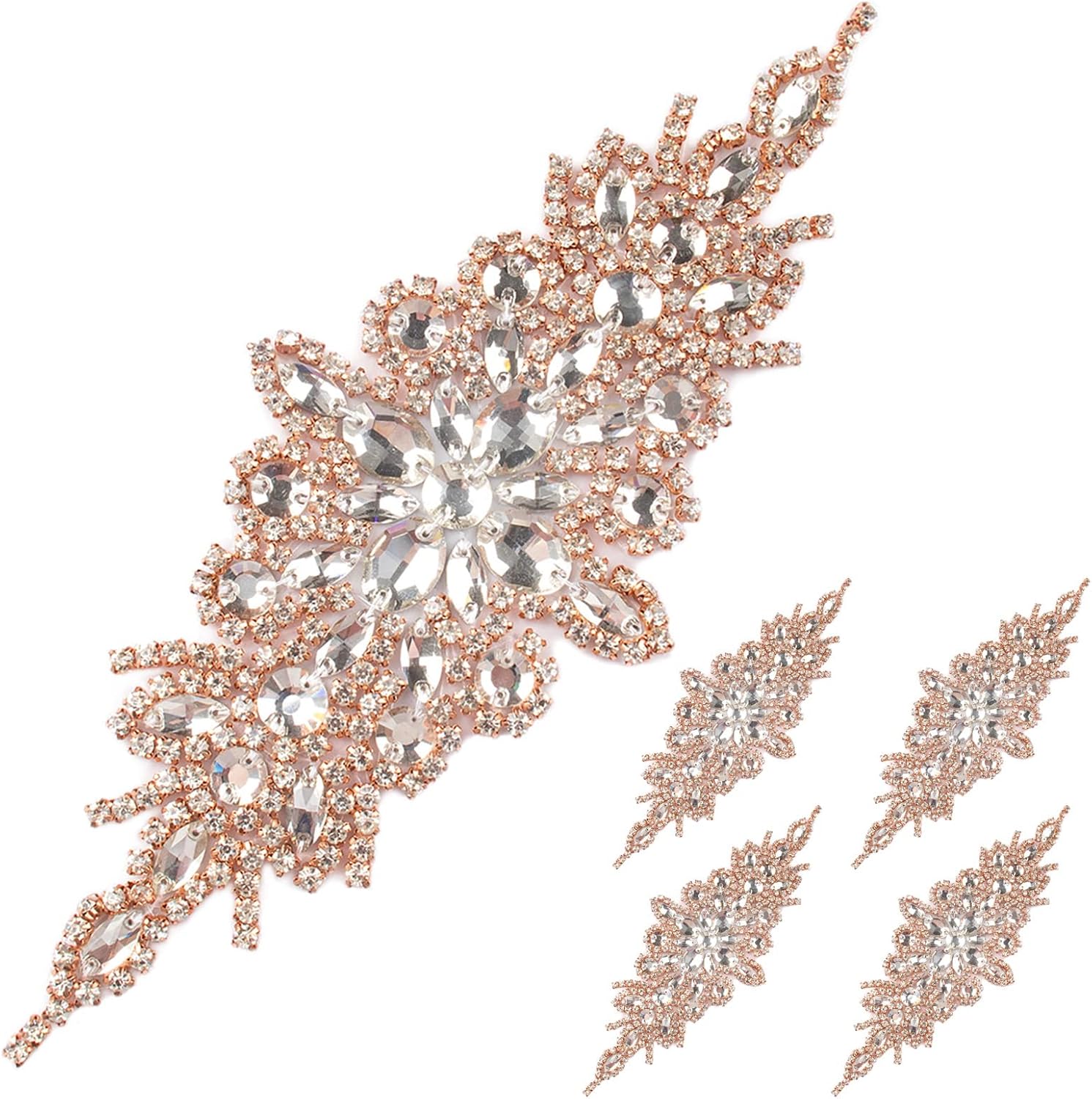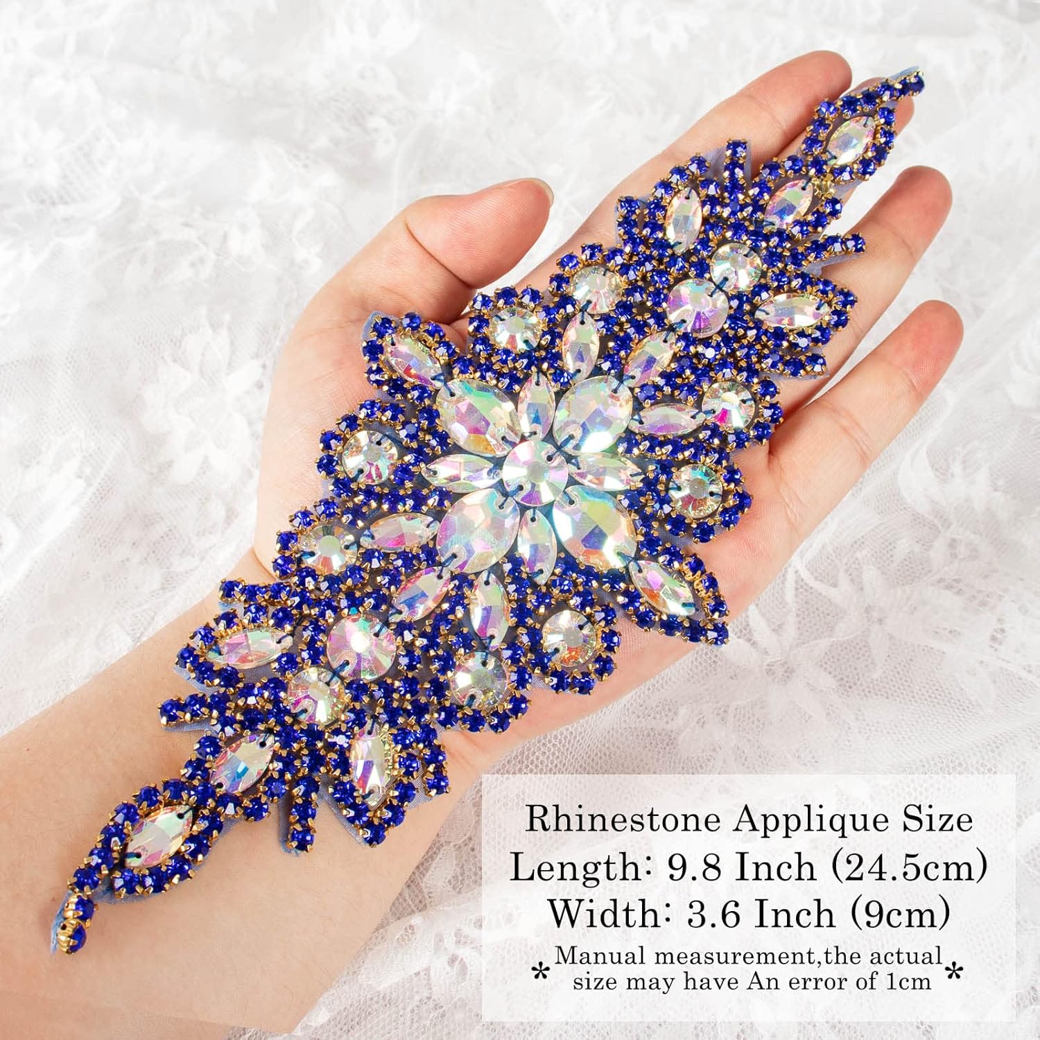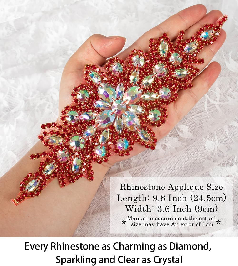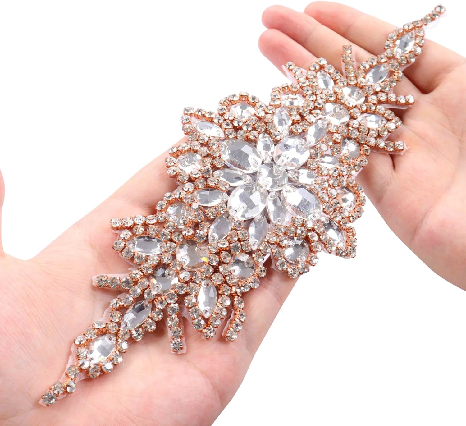ShiDianYi Pack of 10 Rhinestone Applique, Diamante Applique Big Beaded Crystal Silver Patches Sew on Rhinestones with Stones Wedding Applique-0921