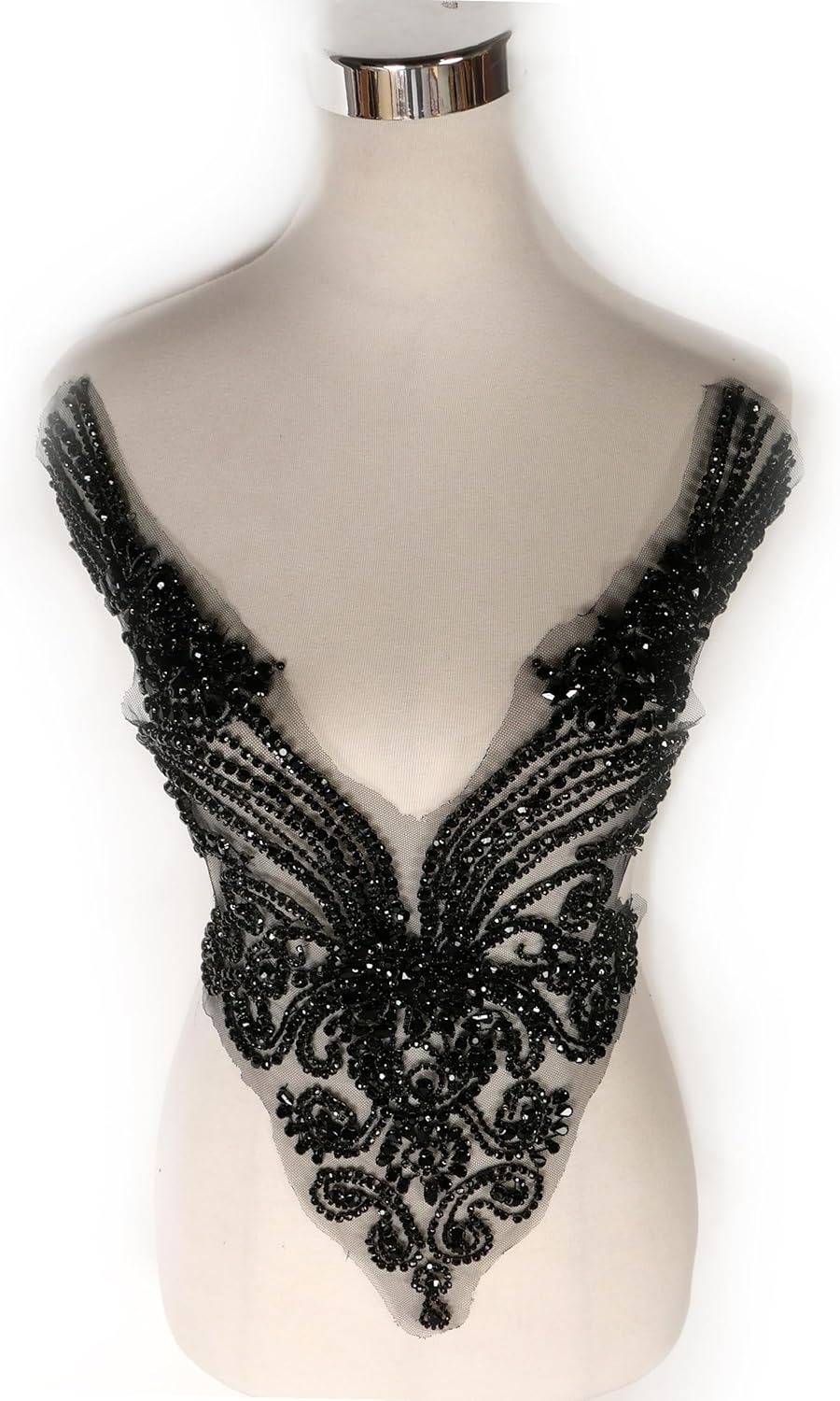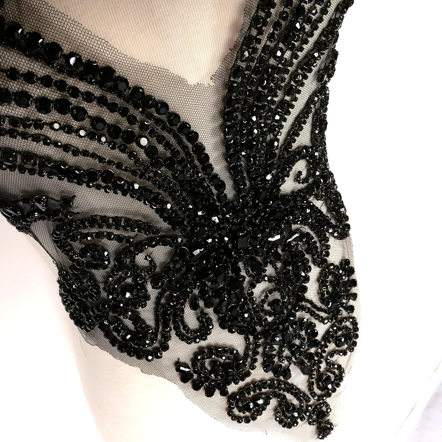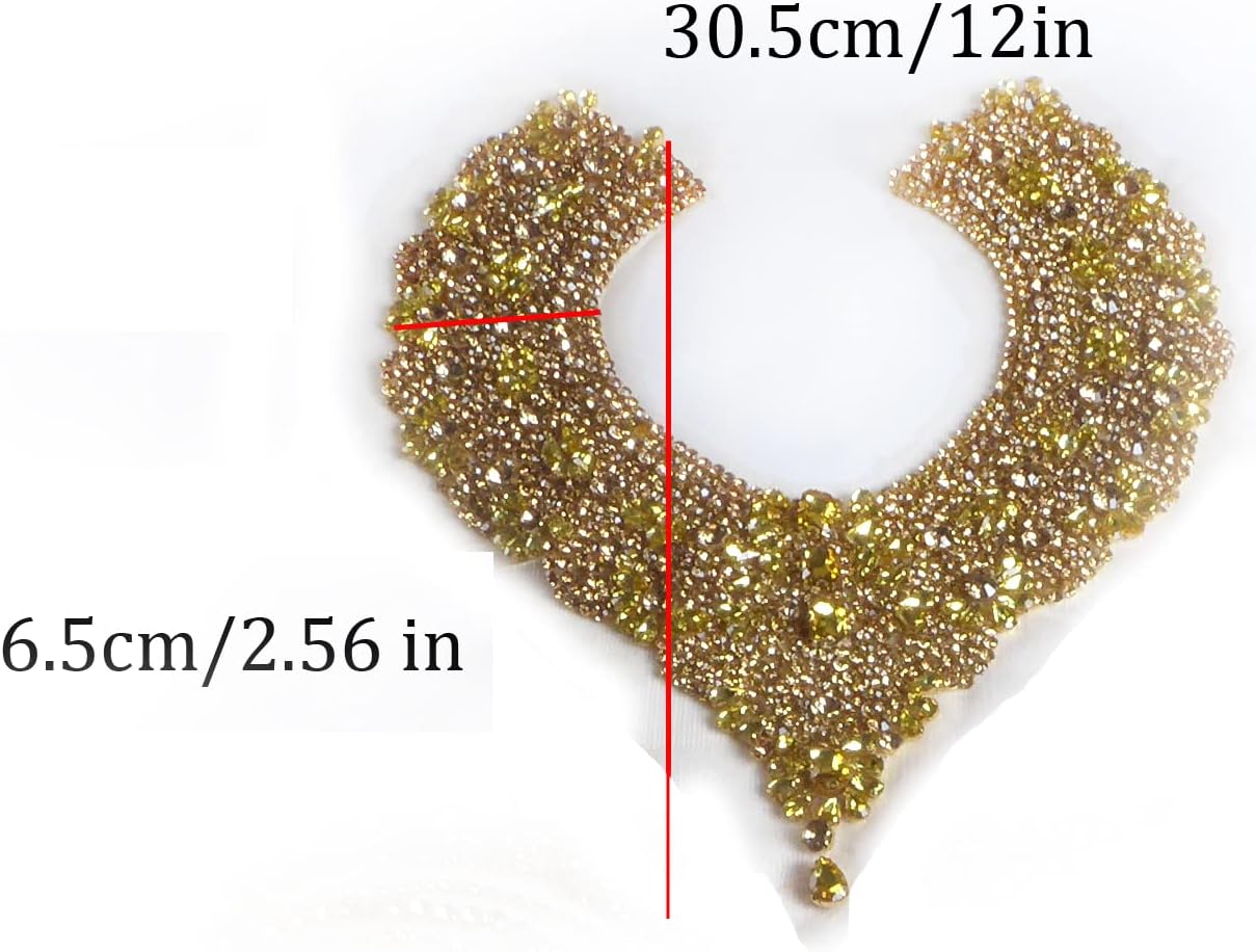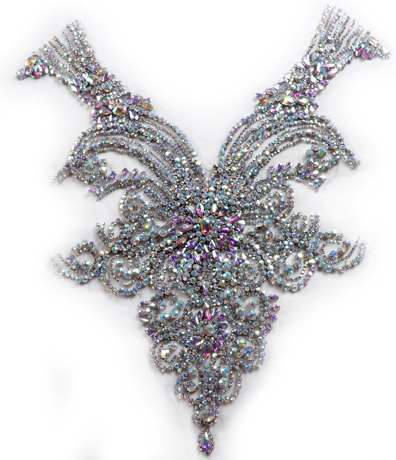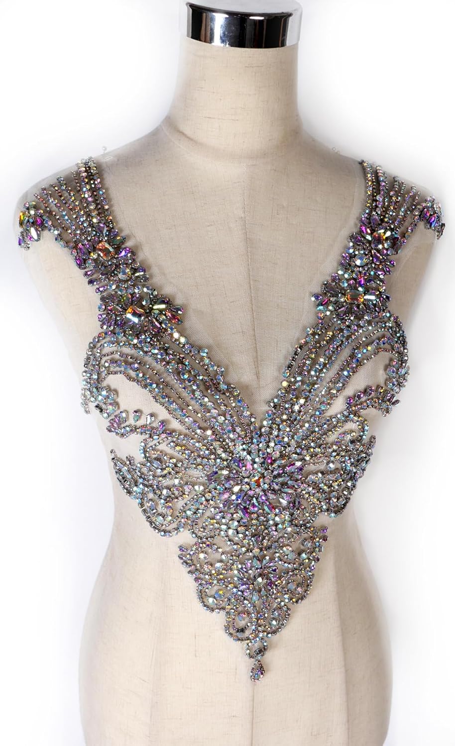 New Gold Silver Rhinestones Bodice and Neck Applique Handmade Glass Crystal Applique Patch for Dress Cloth by Piece (Silver-B)