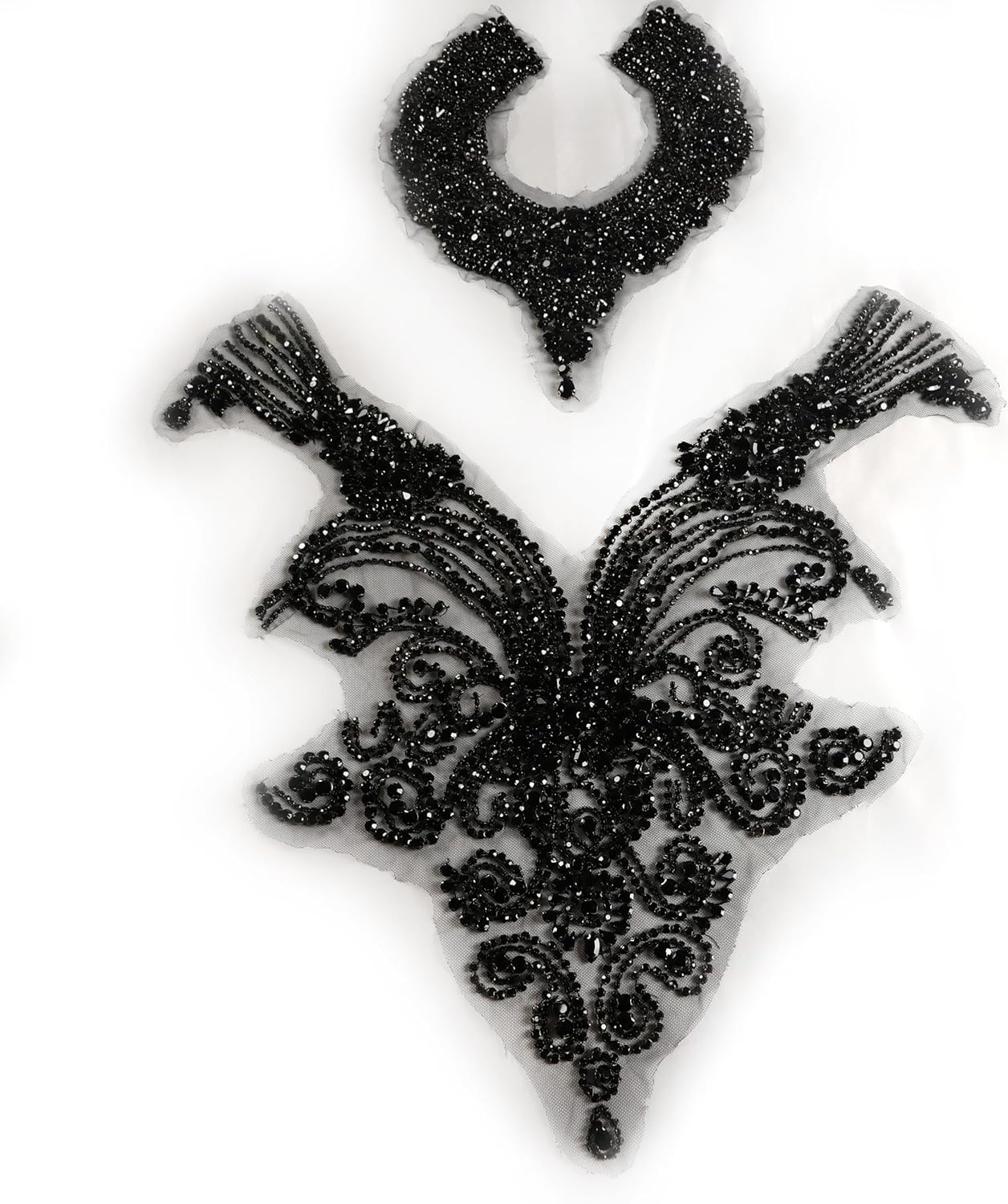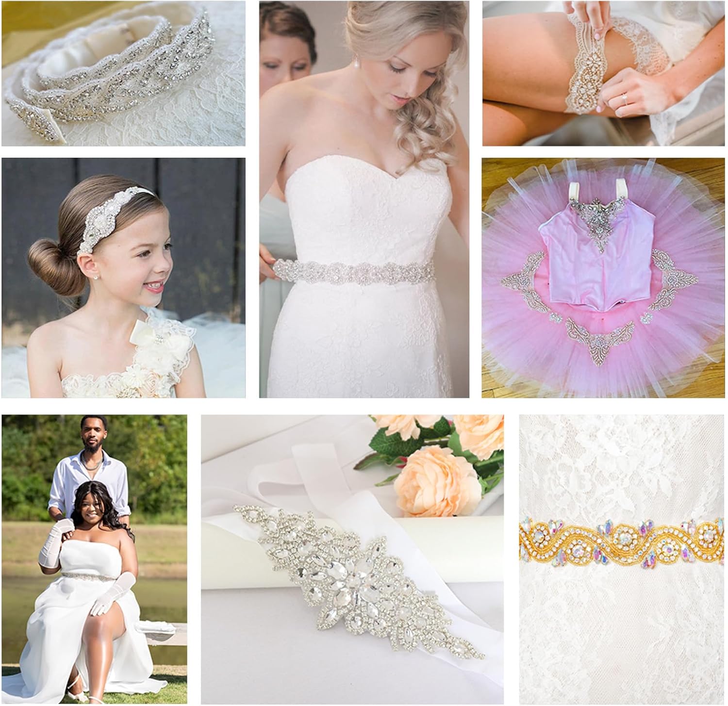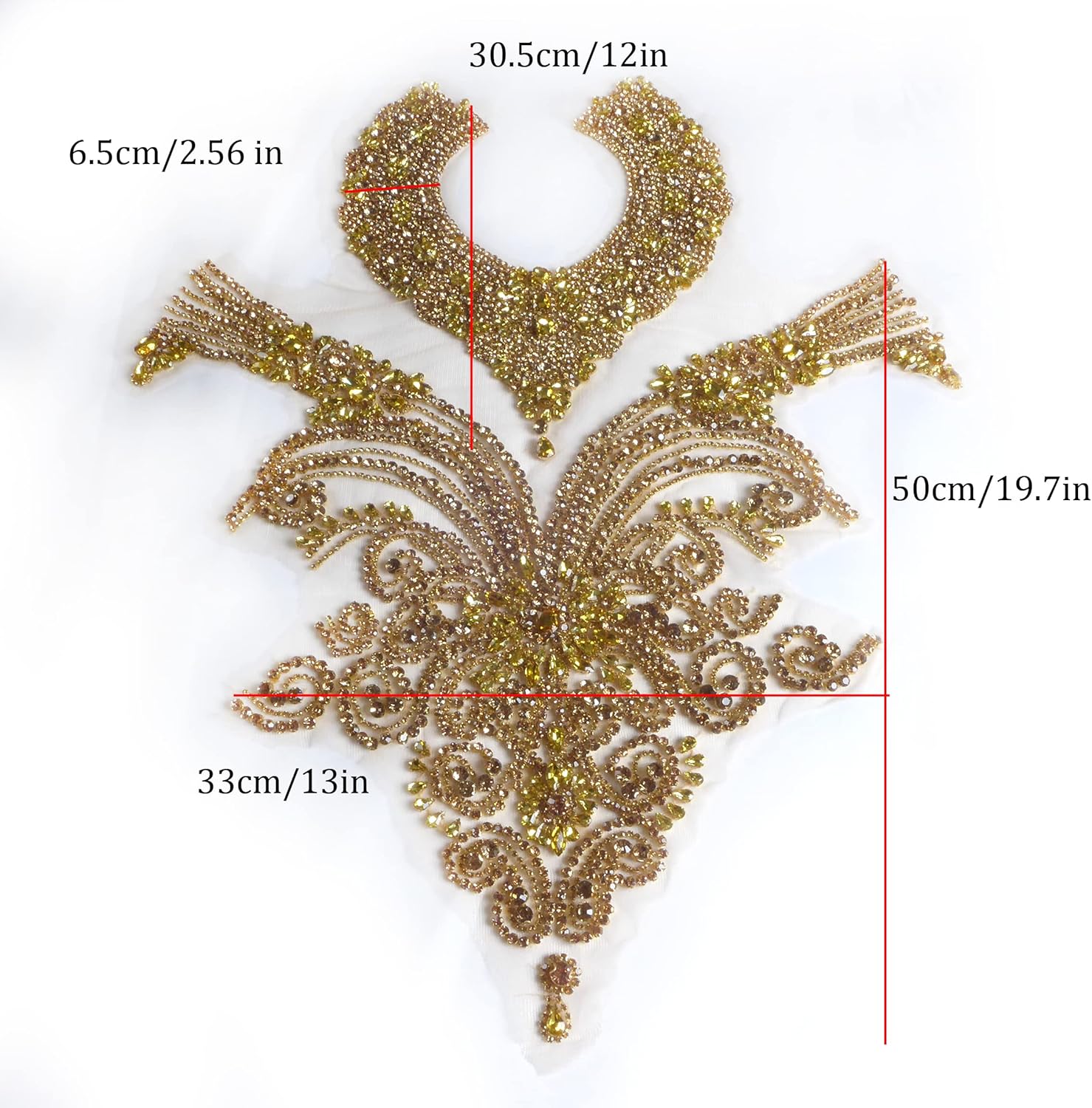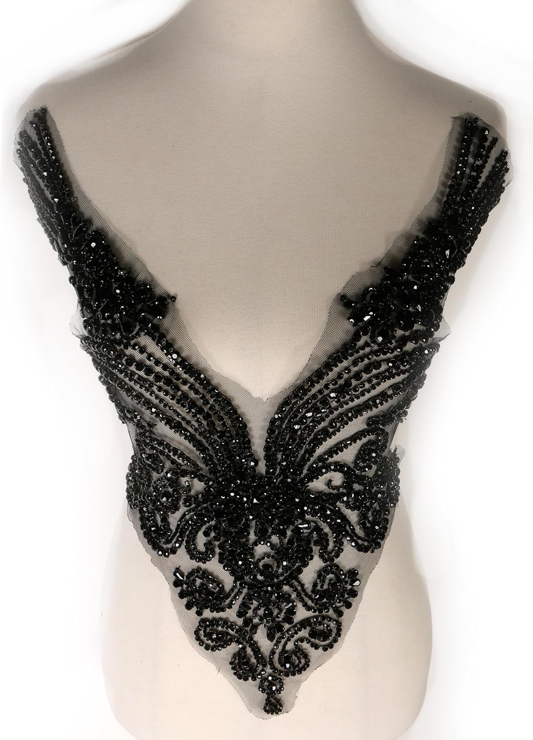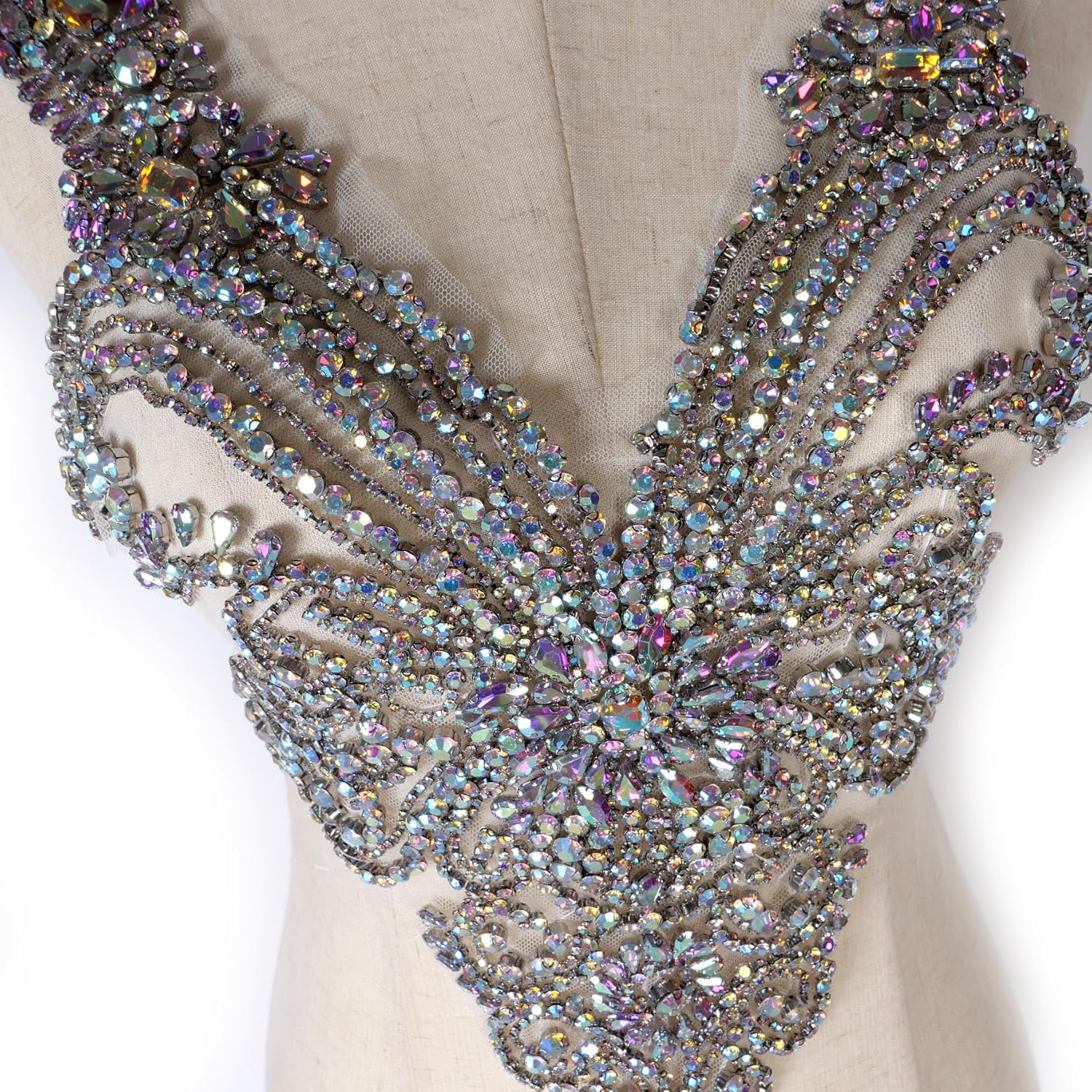 New Gold Silver Rhinestones Bodice and Neck Applique Handmade Glass Crystal Applique Patch for Dress Cloth by Piece (Silver-B)