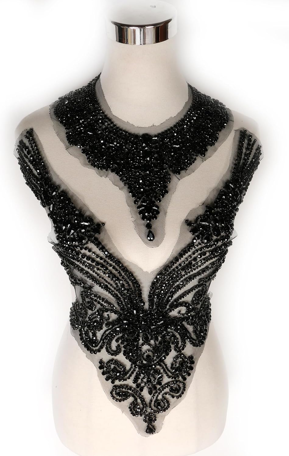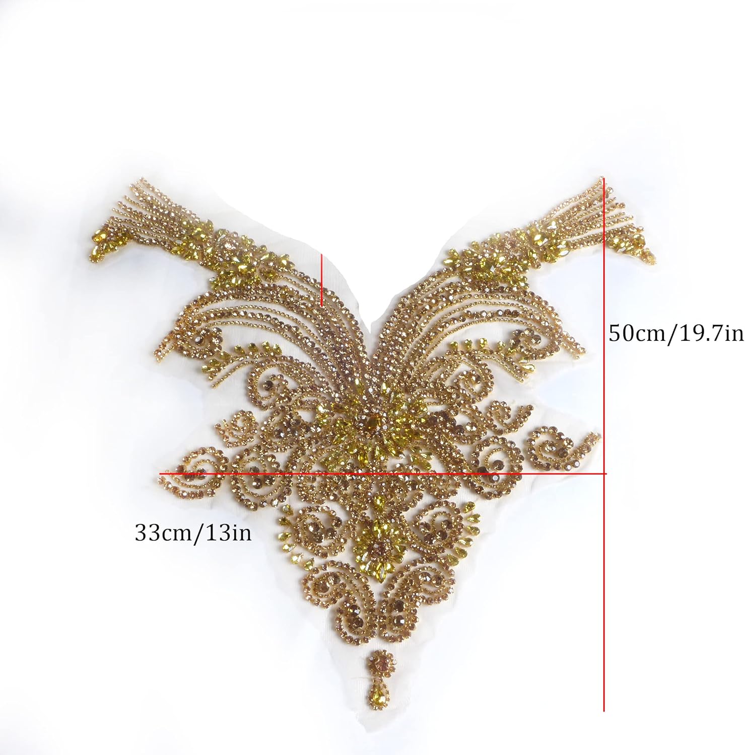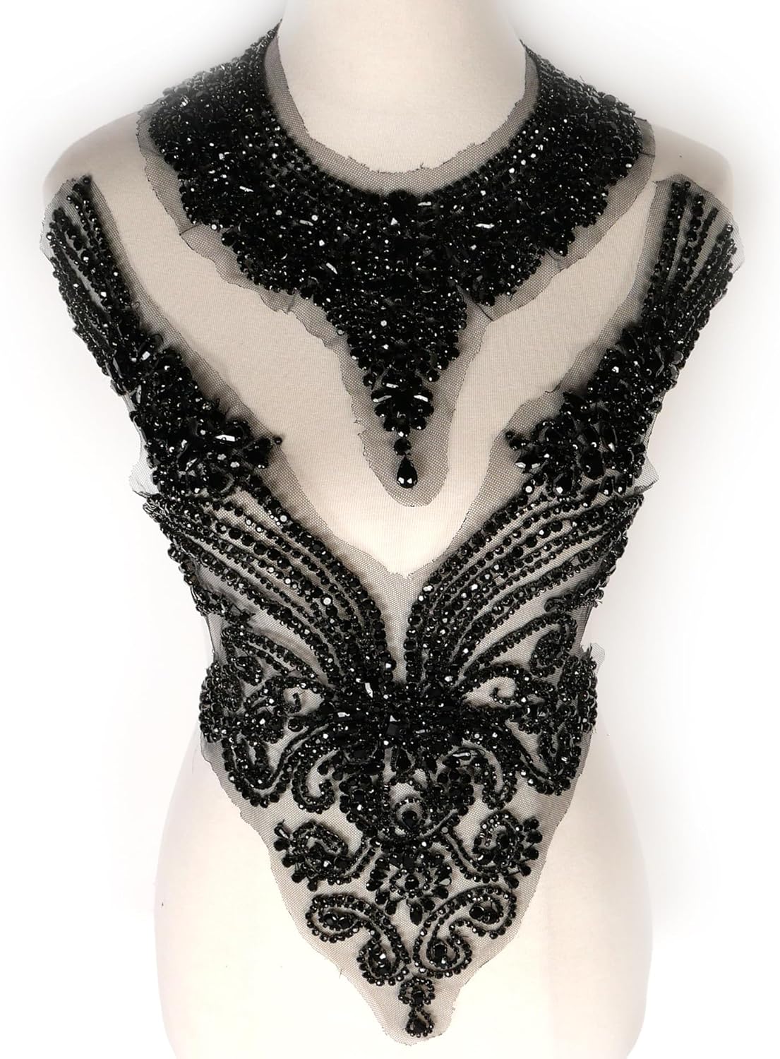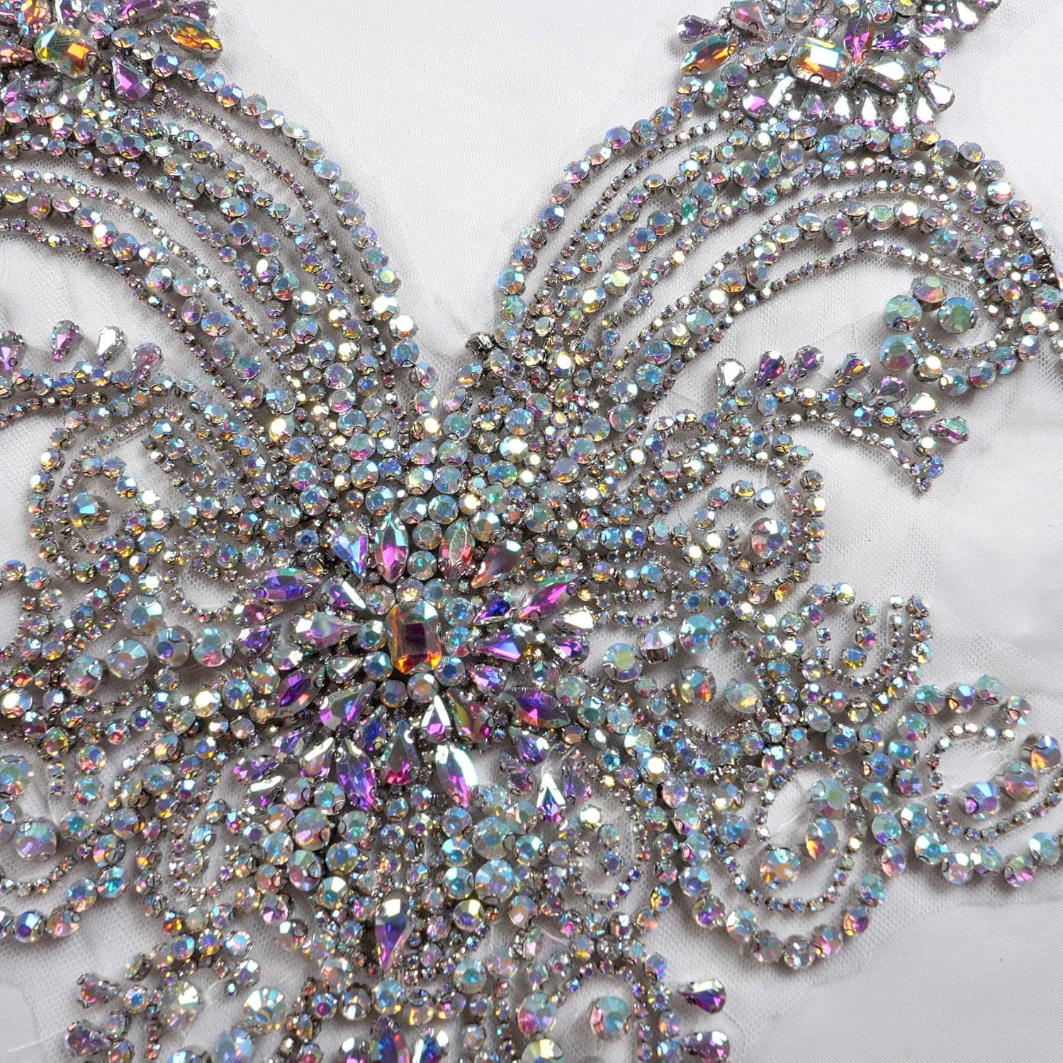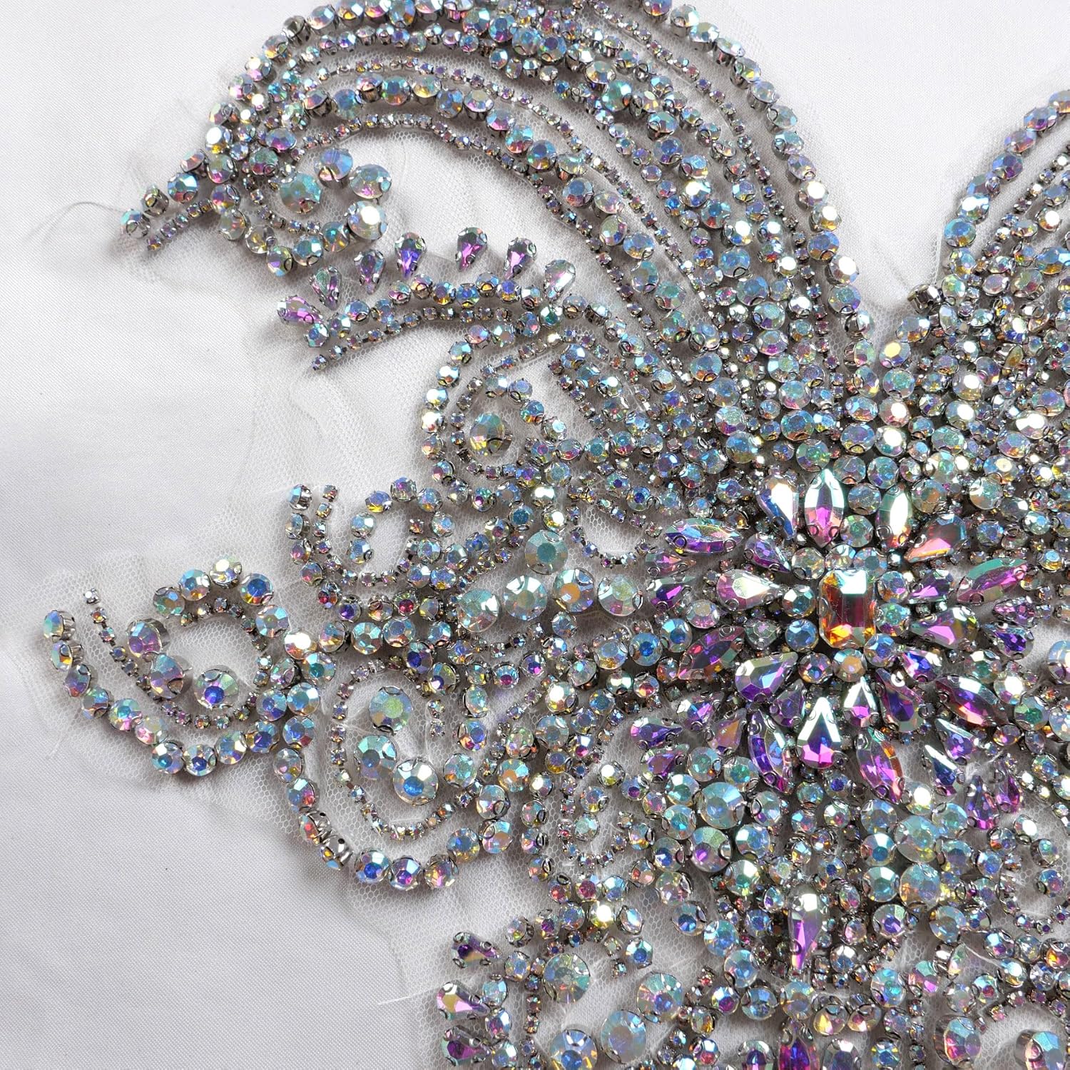 New Gold Silver Rhinestones Bodice and Neck Applique Handmade Glass Crystal Applique Patch for Dress Cloth by Piece (Silver-B)