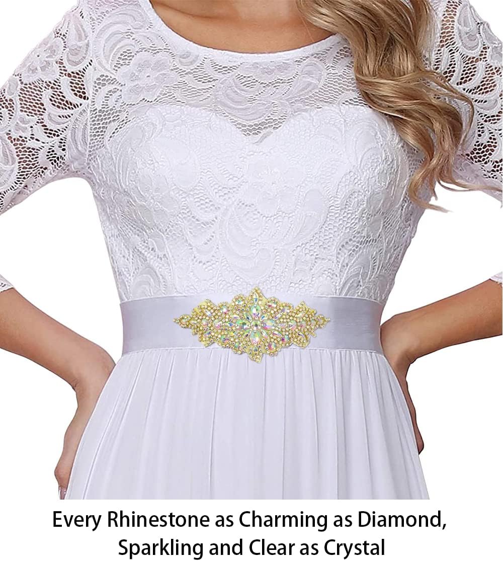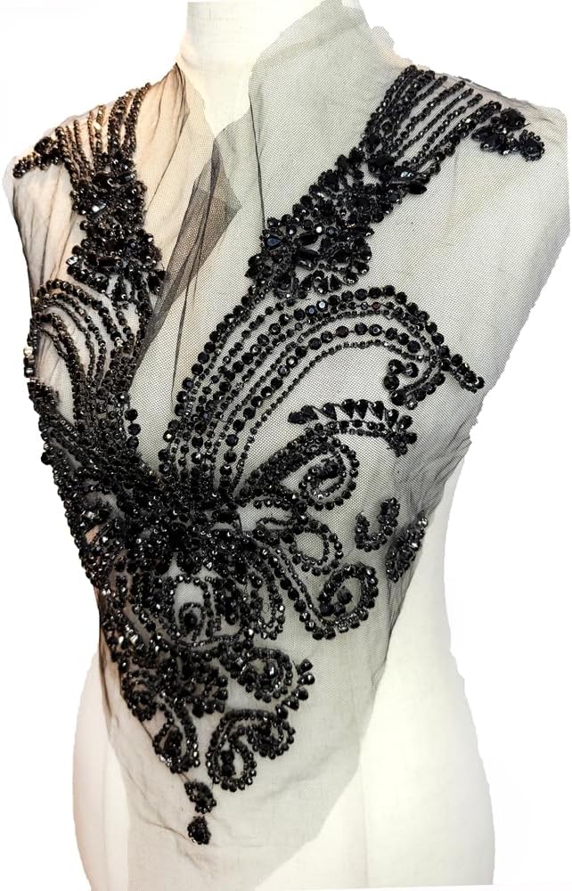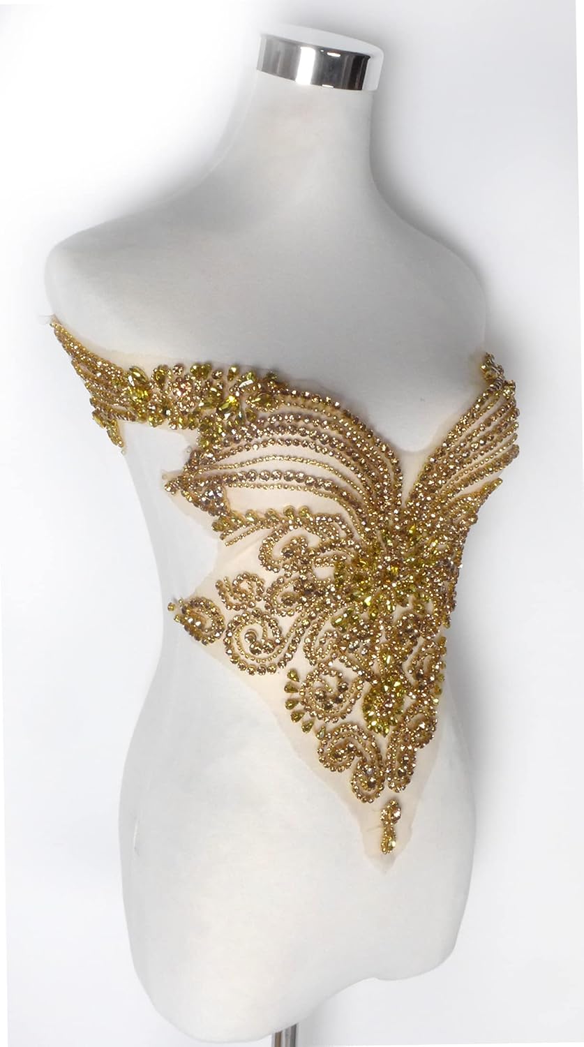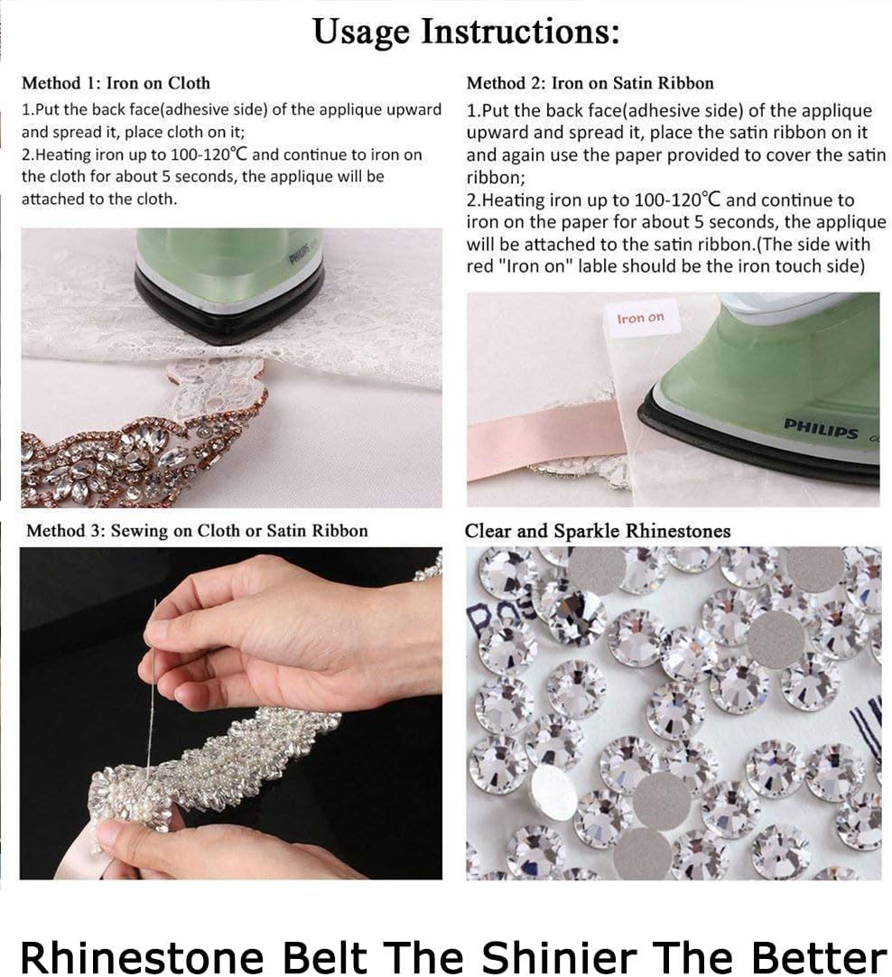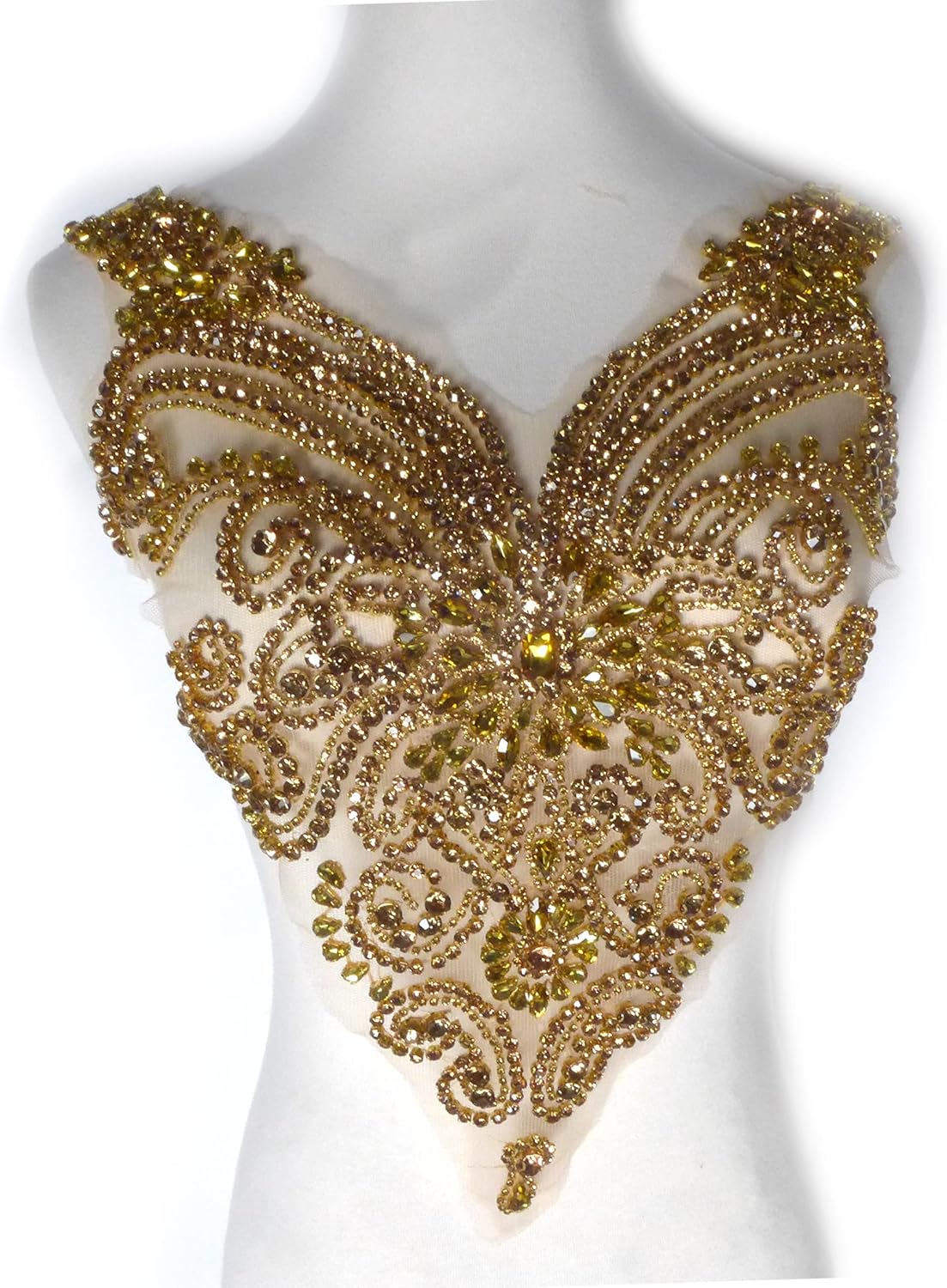 New Gold Silver Rhinestones Bodice and Neck Applique Handmade Glass Crystal Applique Patch for Dress Cloth by Piece (Silver-B)