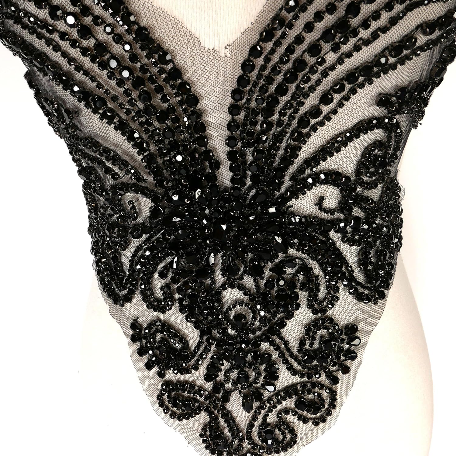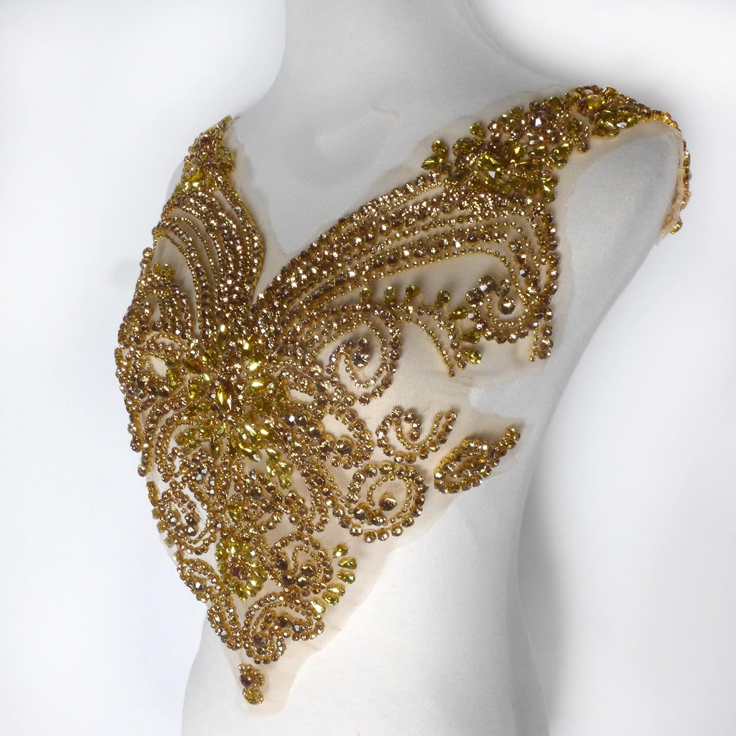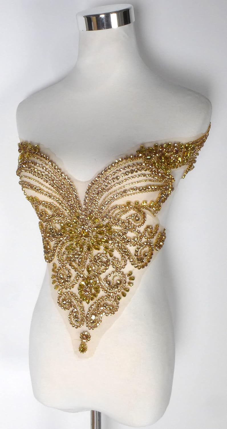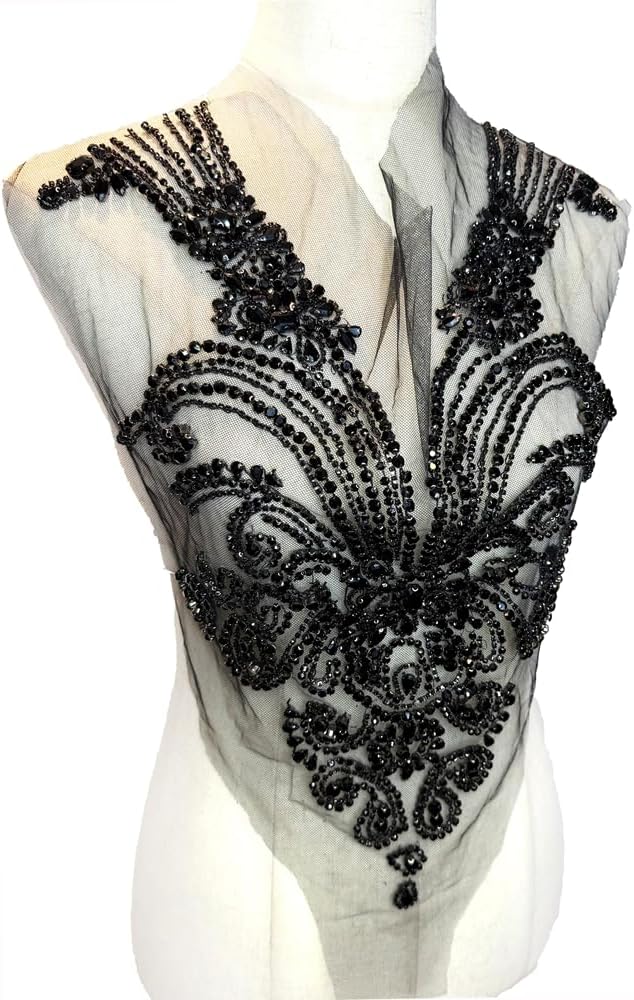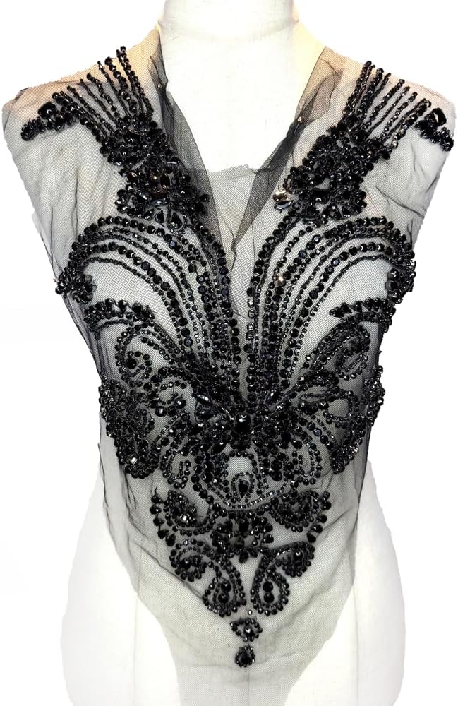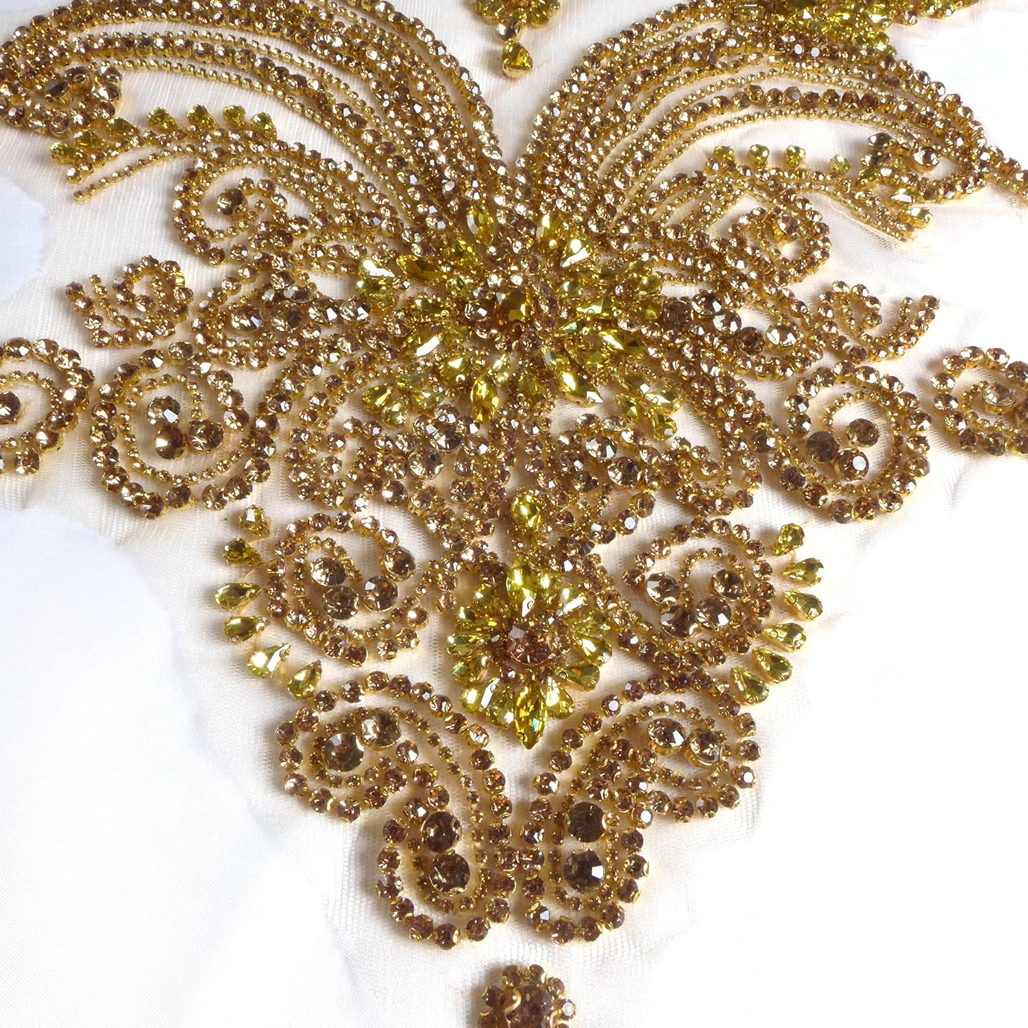 New Gold Silver Rhinestones Bodice and Neck Applique Handmade Glass Crystal Applique Patch for Dress Cloth by Piece (Silver-B)