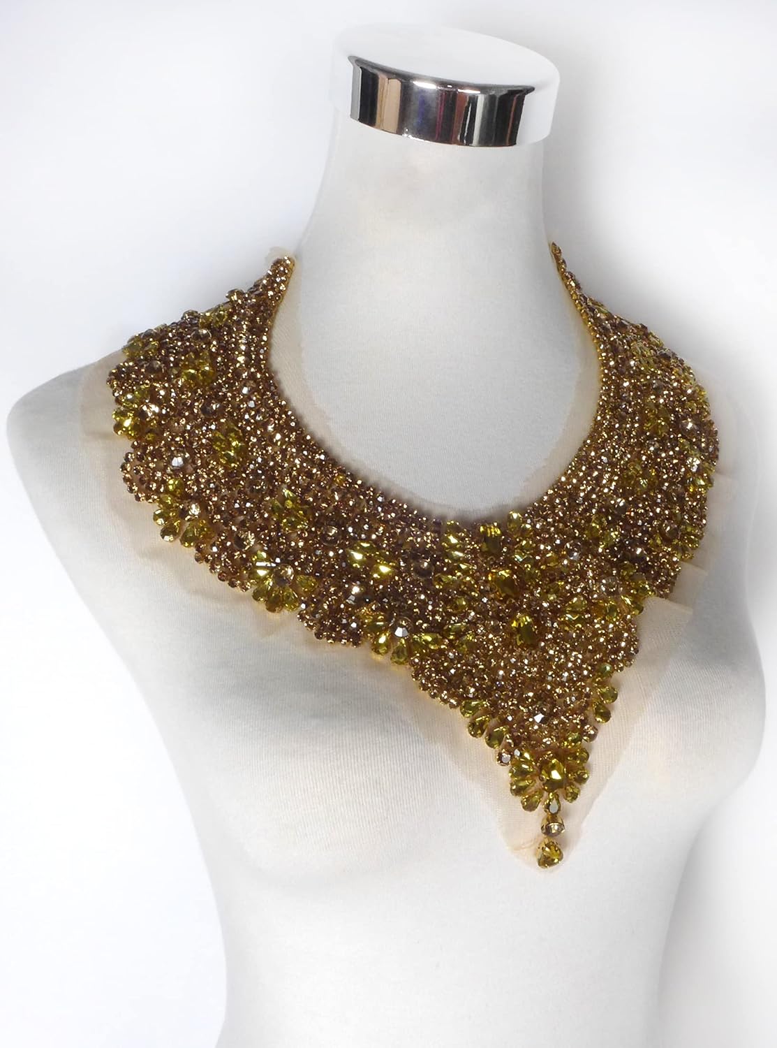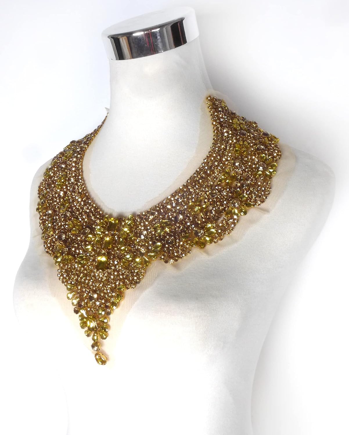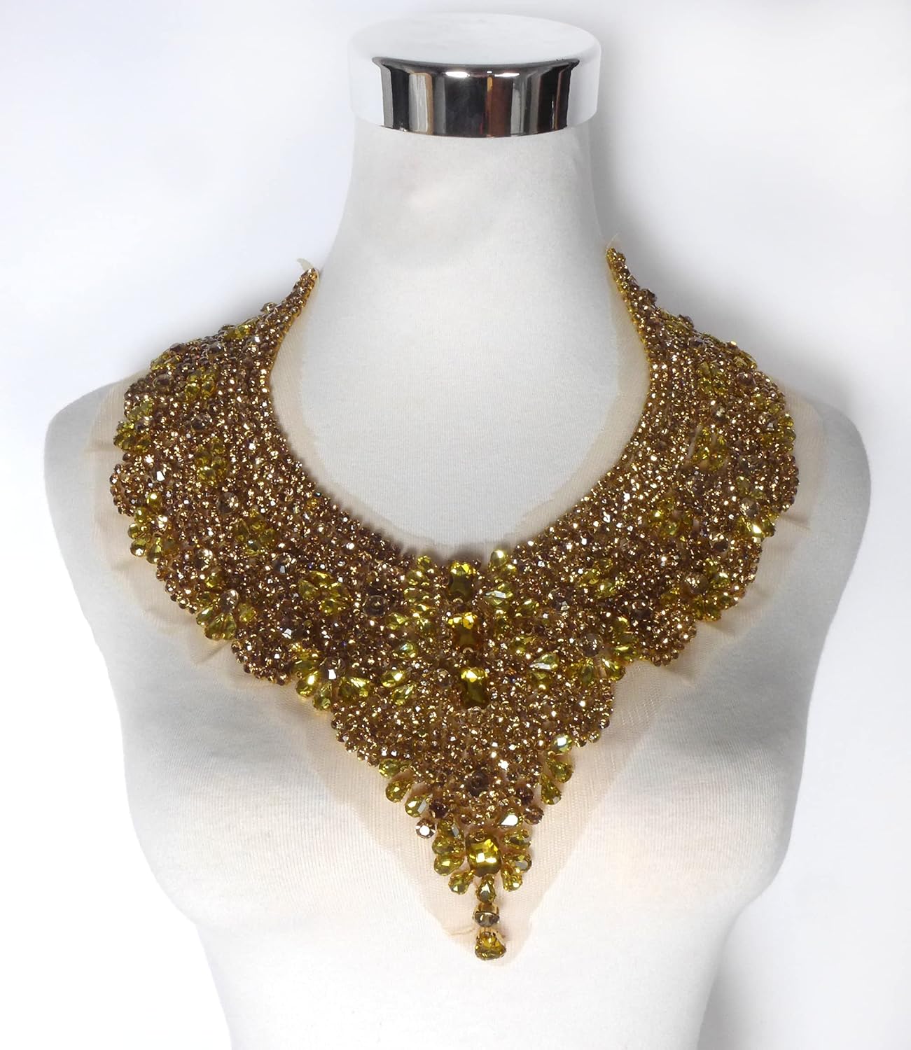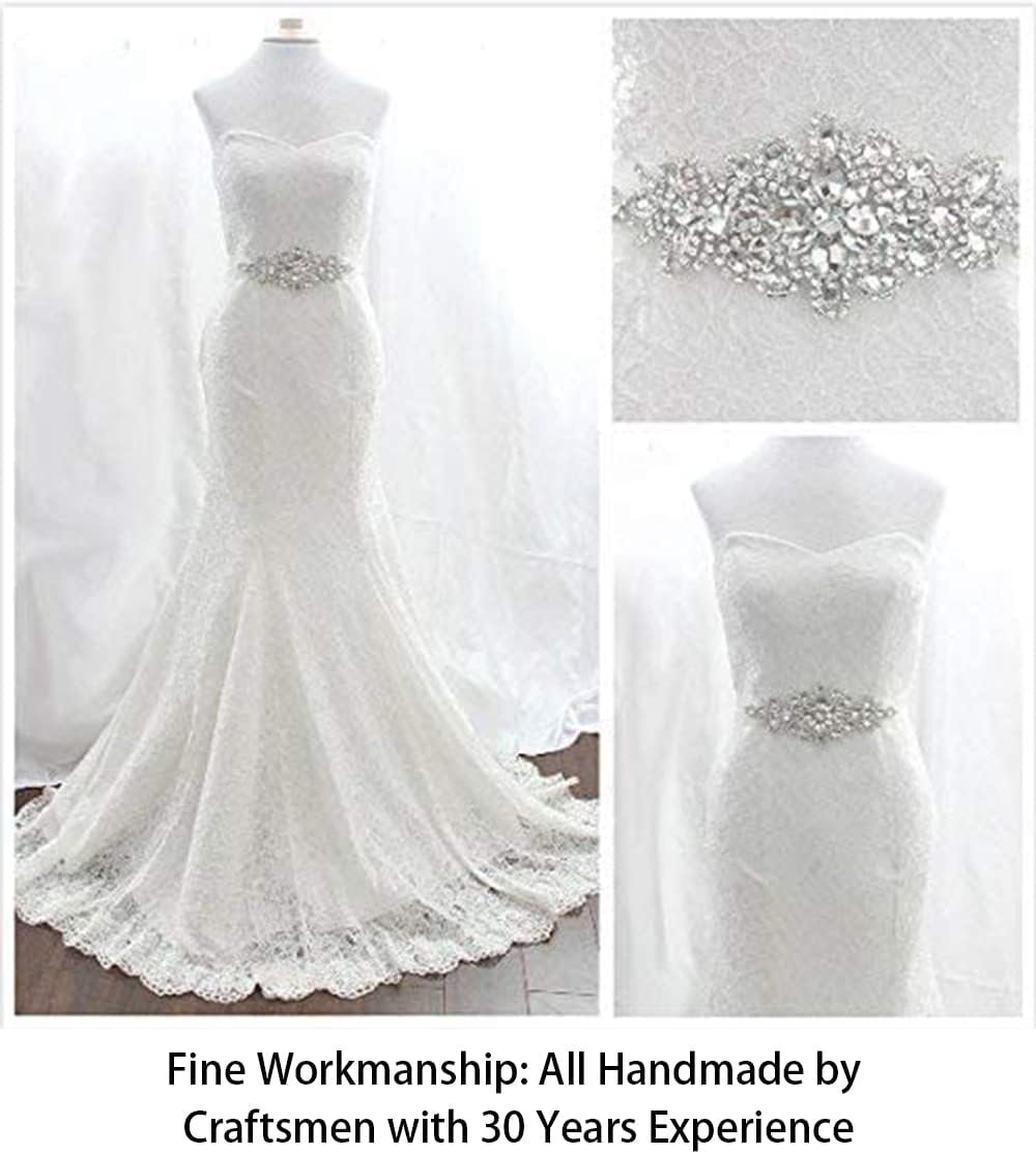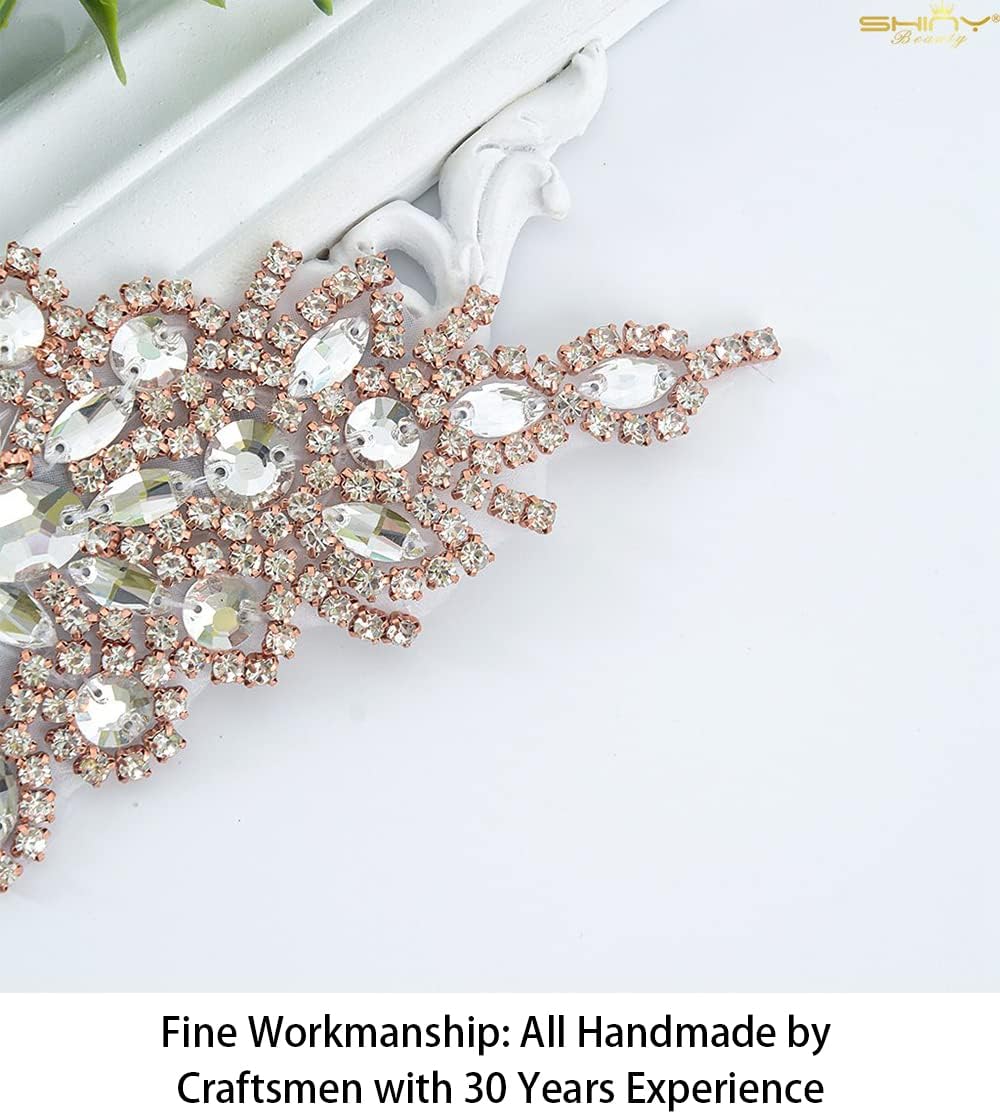 New Gold Silver Rhinestones Bodice and Neck Applique Handmade Glass Crystal Applique Patch for Dress Cloth by Piece (Silver-B)