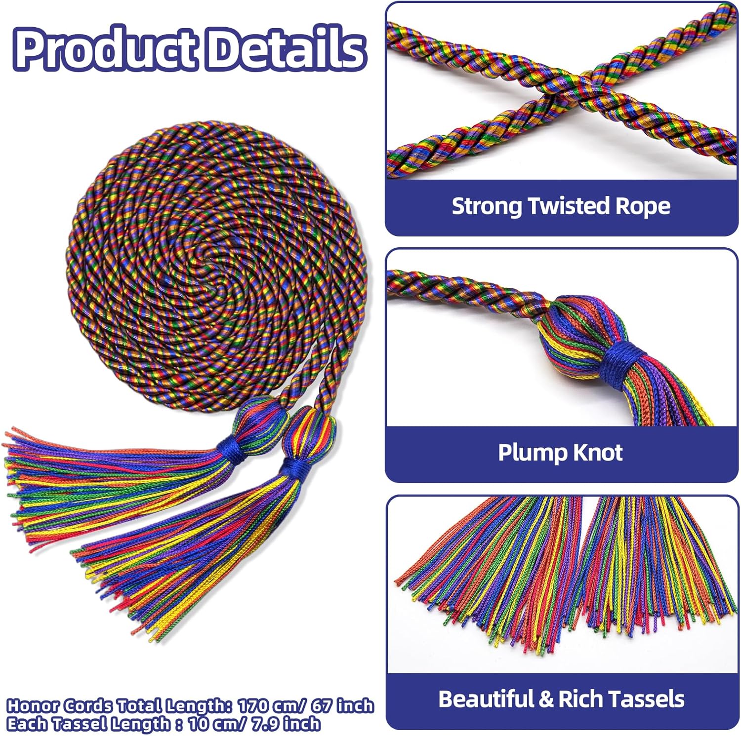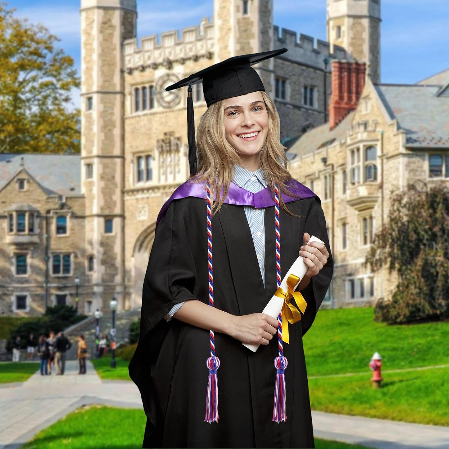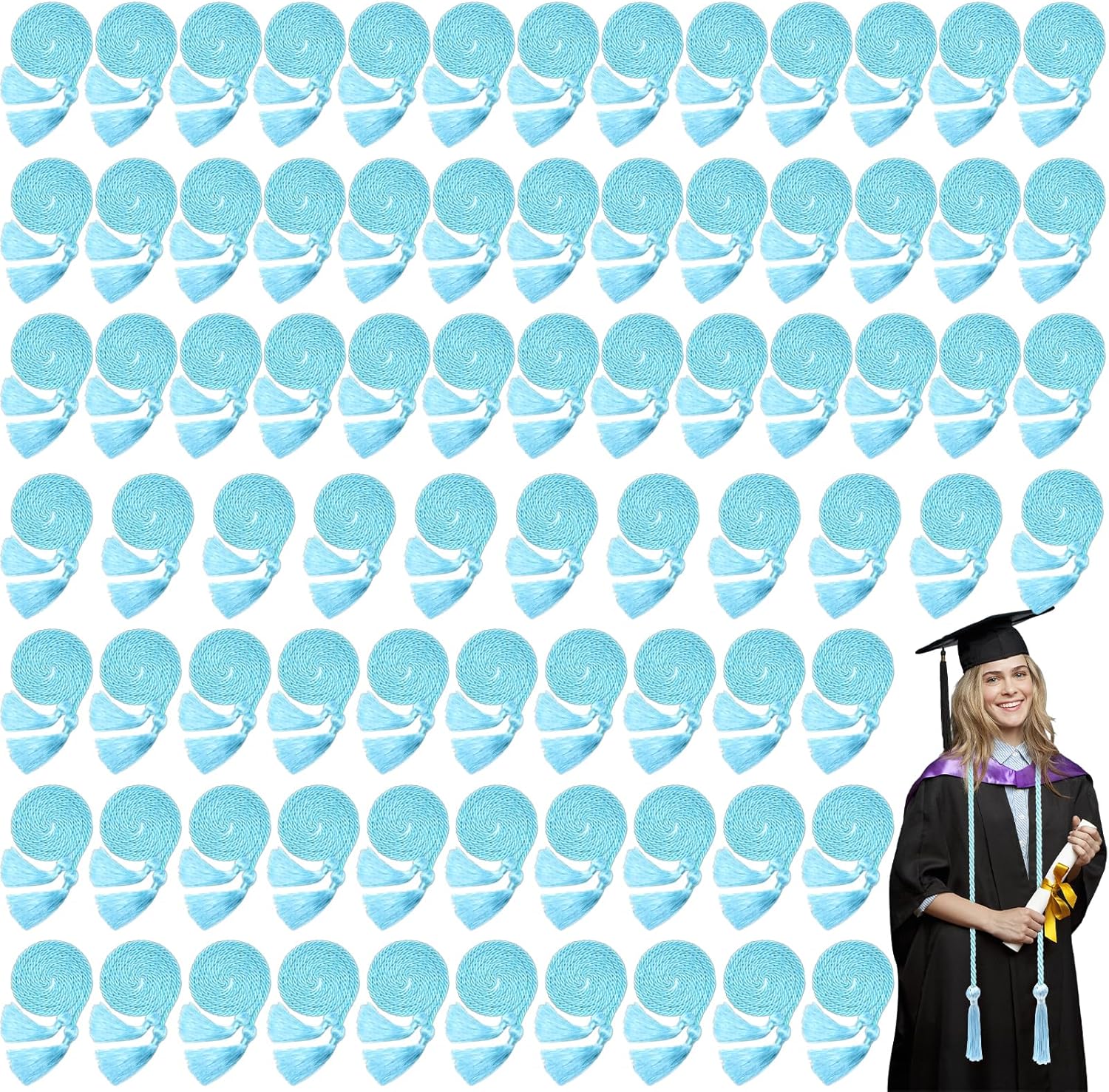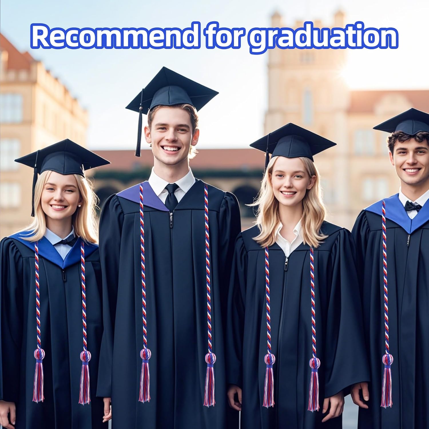 80 Pcs 2025 Graduation Cords 67 Inch Braided Honor Cord with Tassels for College Graduation Students Bachelor Master Doctor Grad Decor(Red Blue with White )