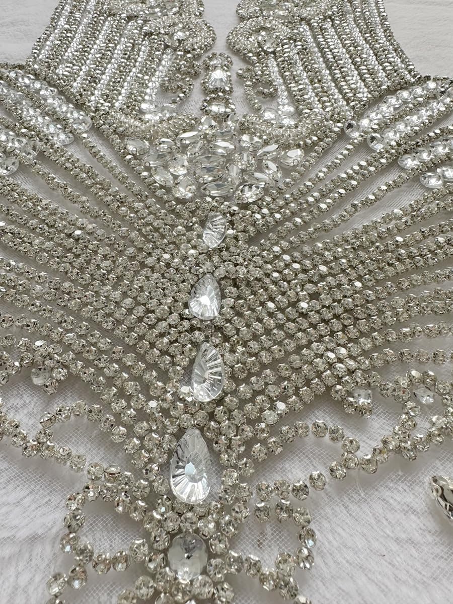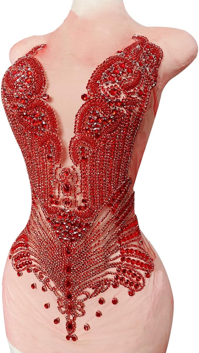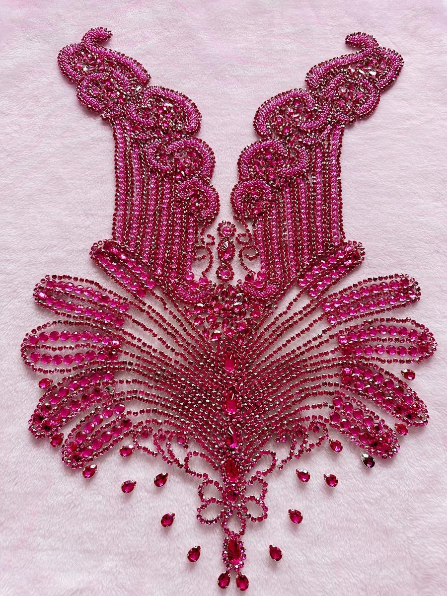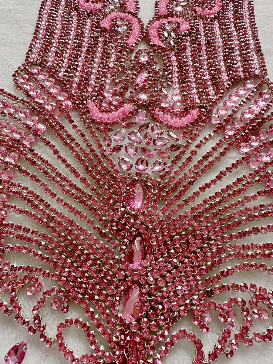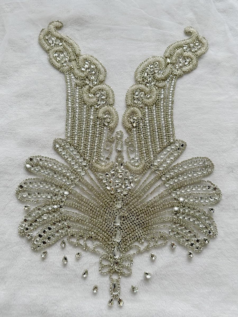 Large Bodice Applique Sequin Rhinestones Fine Appliques Handsewing Crystals and Beads for Dress Clothes Accessories 9.4X23.6inches (Orange)