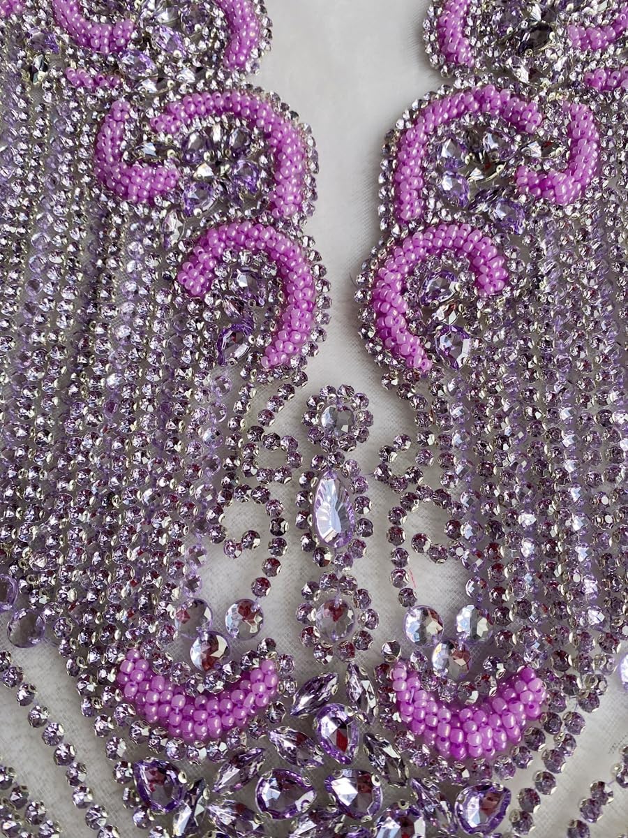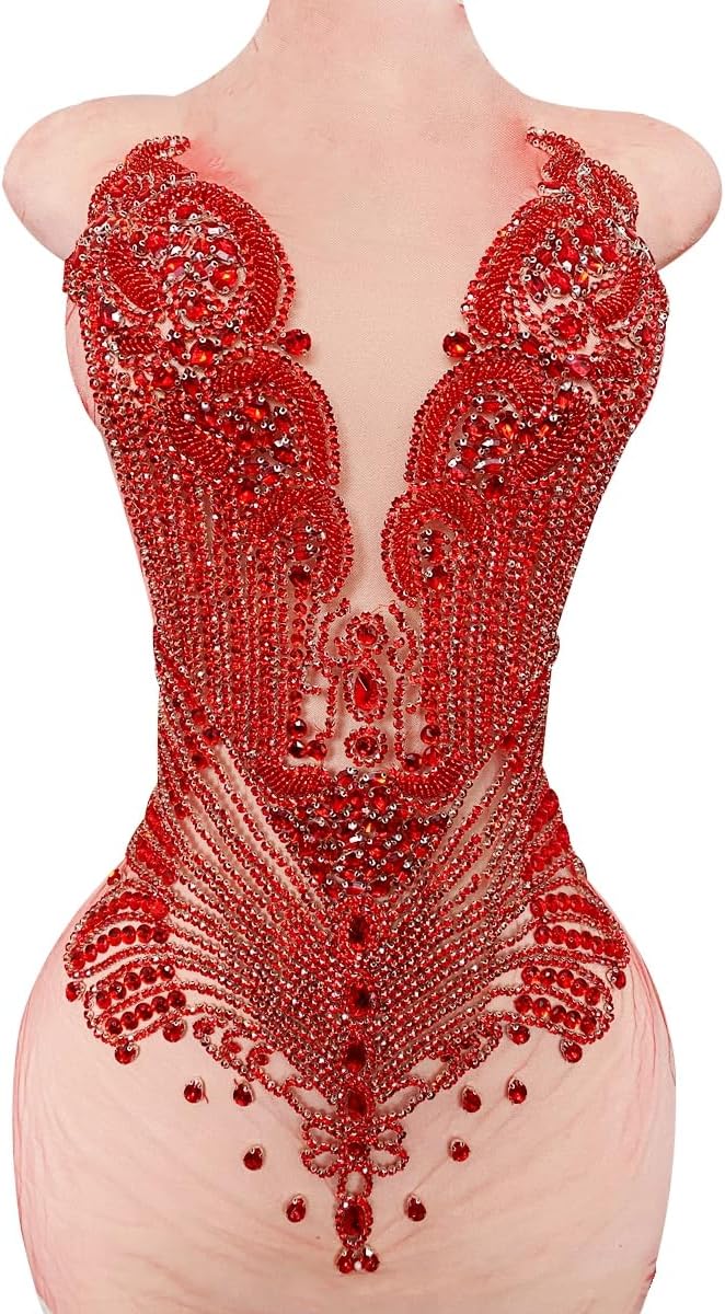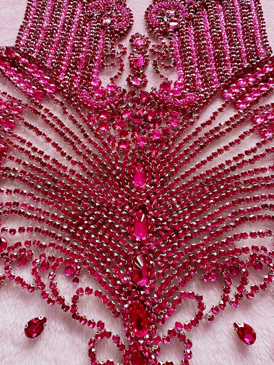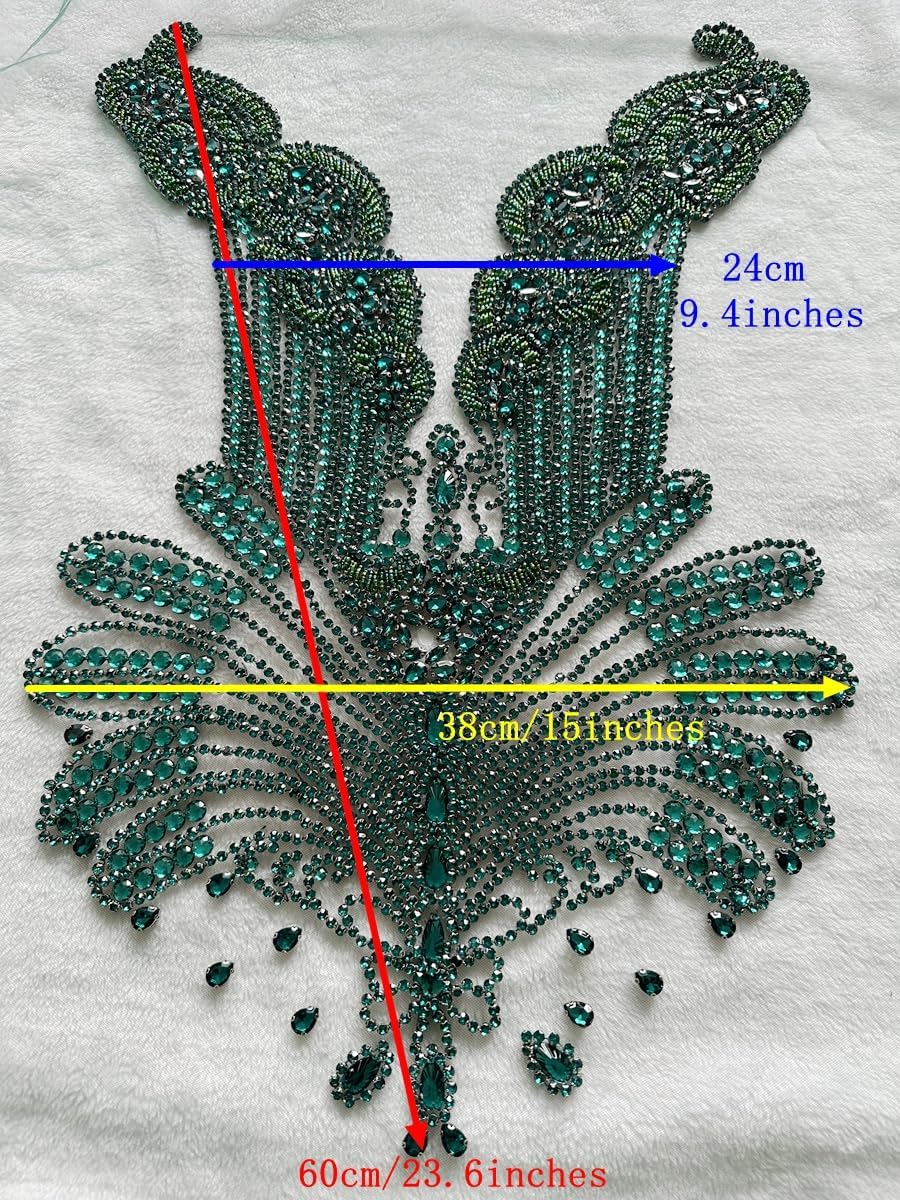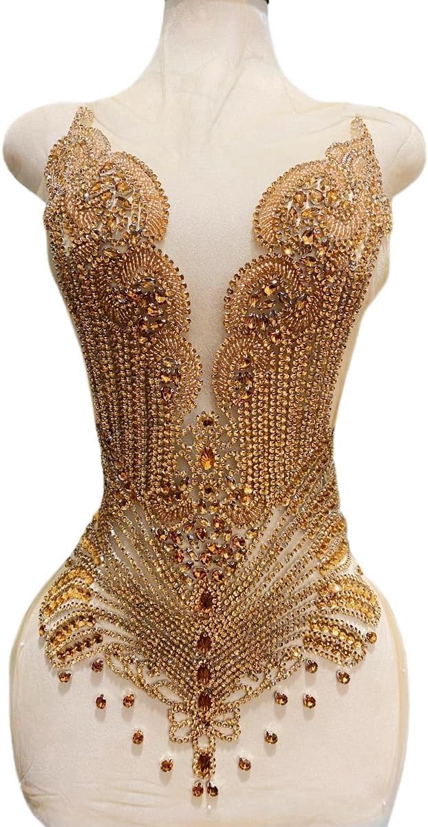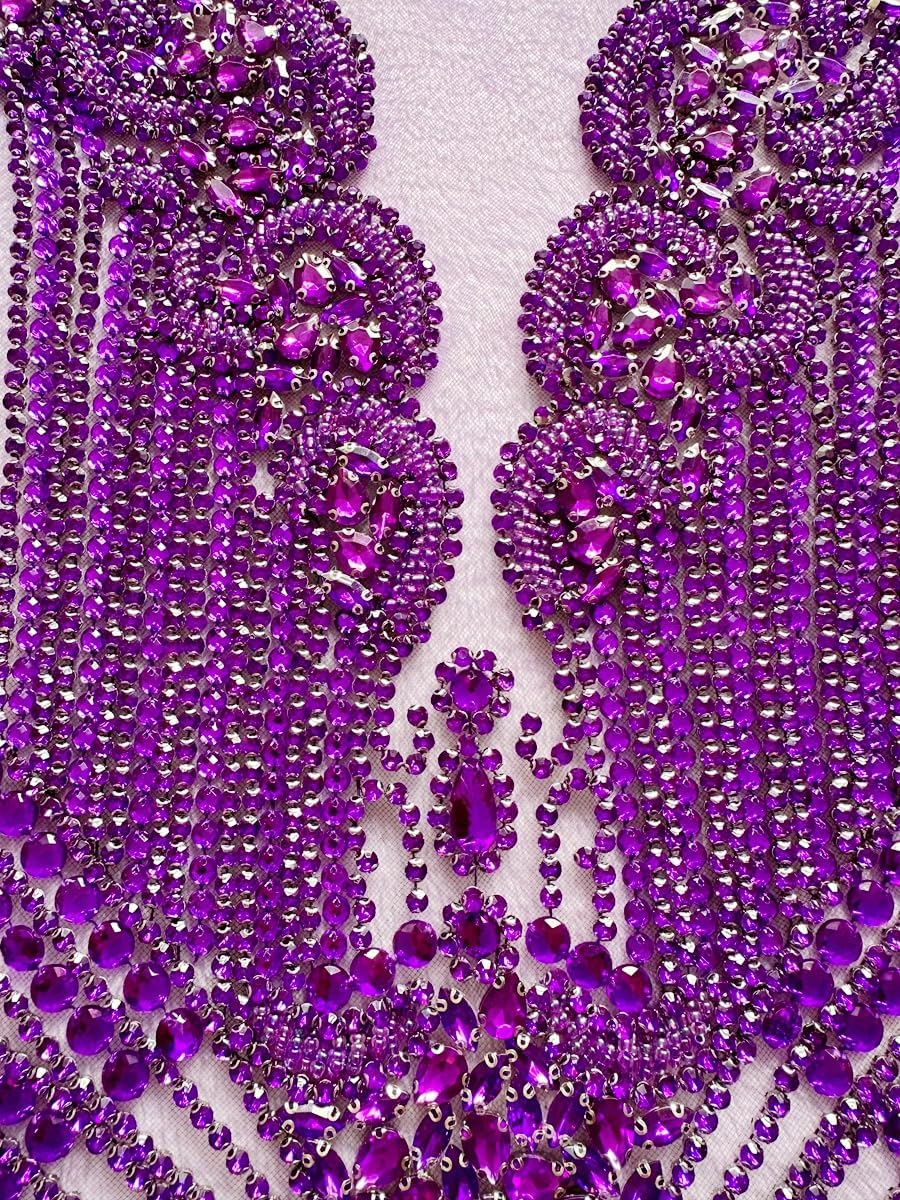 Large Bodice Applique Sequin Rhinestones Fine Appliques Handsewing Crystals and Beads for Dress Clothes Accessories 9.4X23.6inches (Orange)