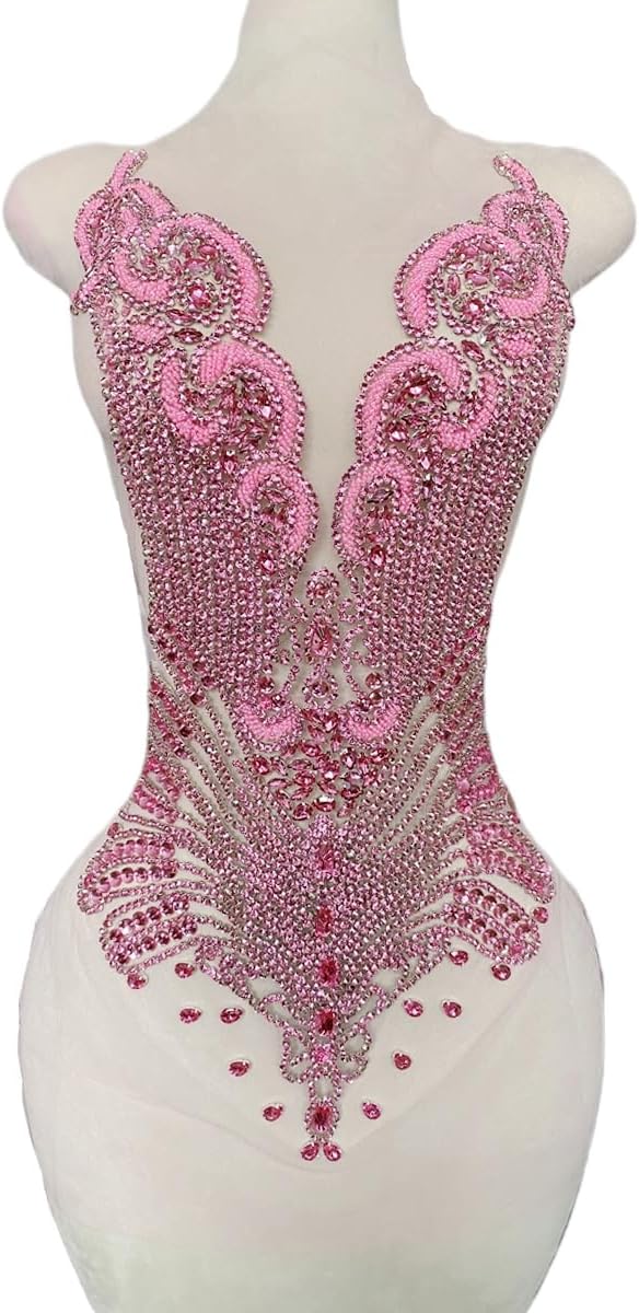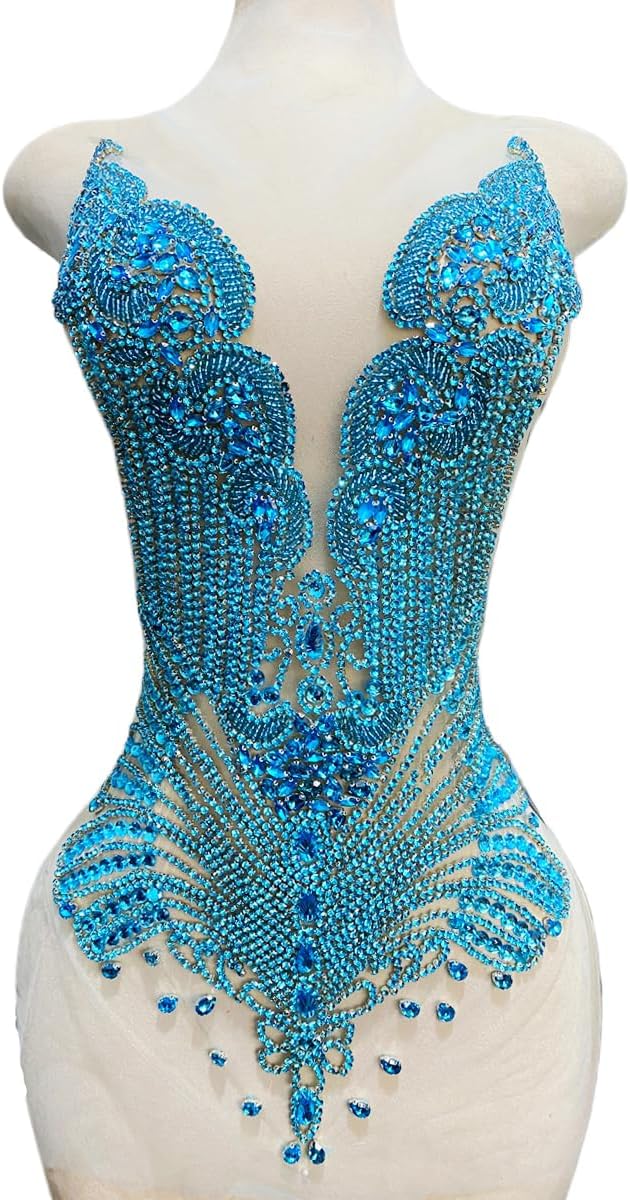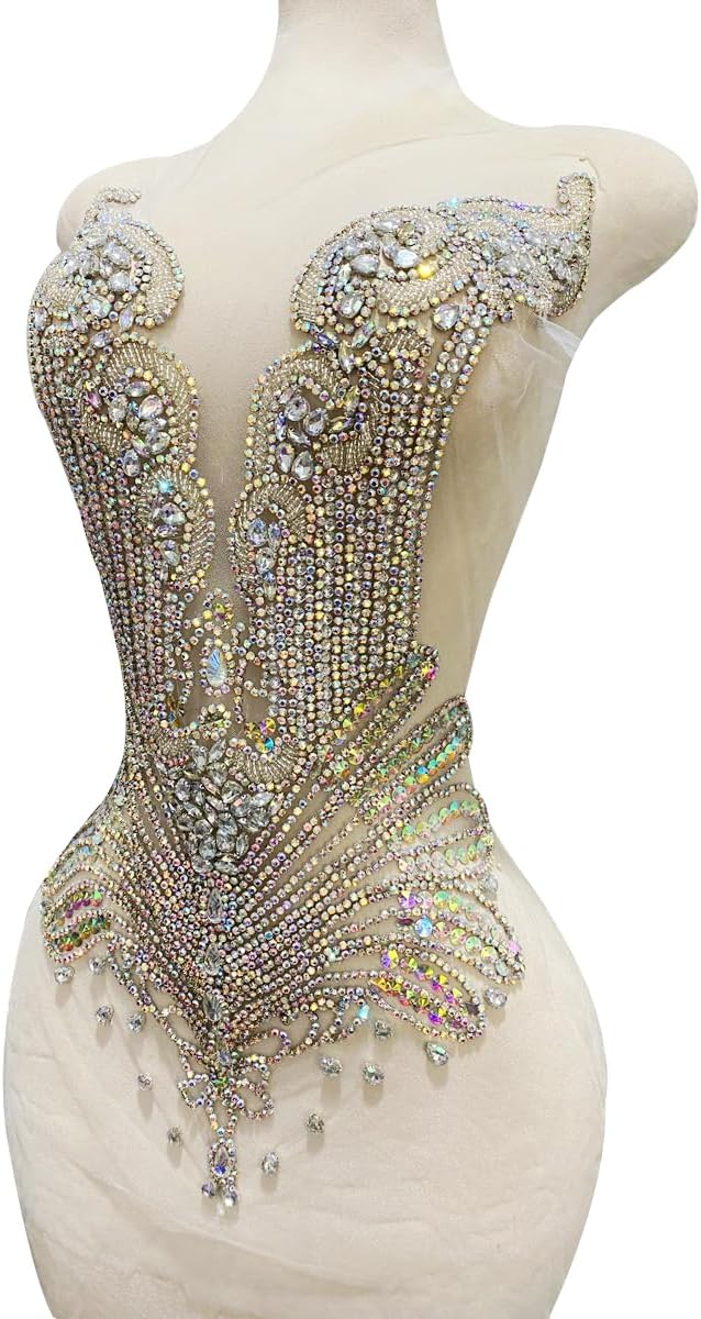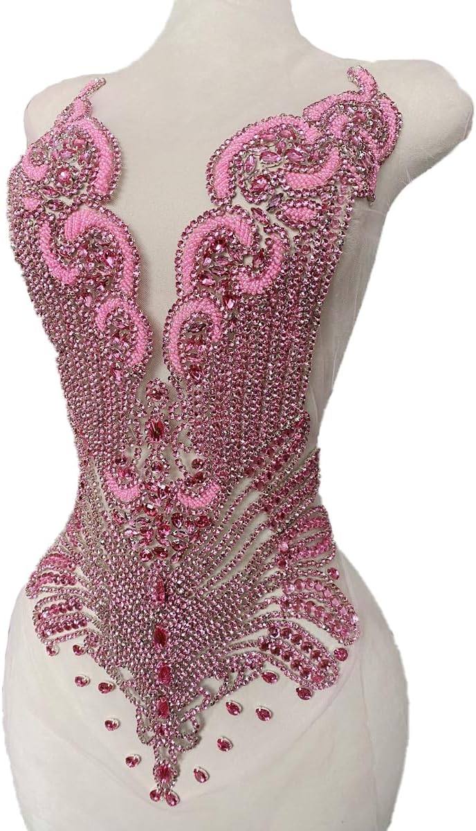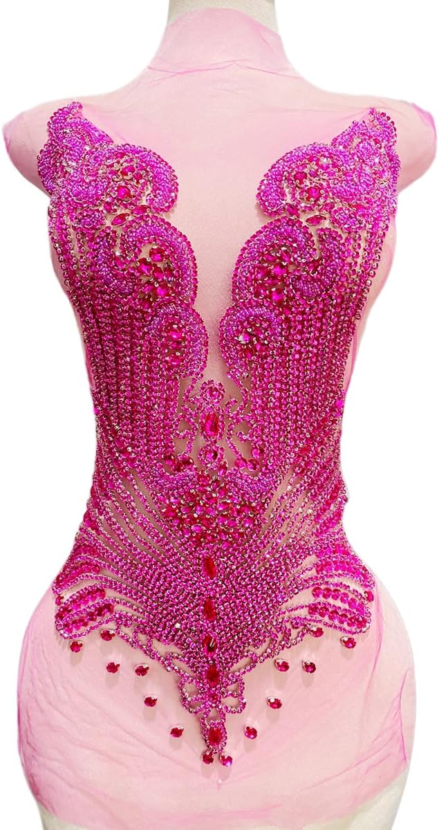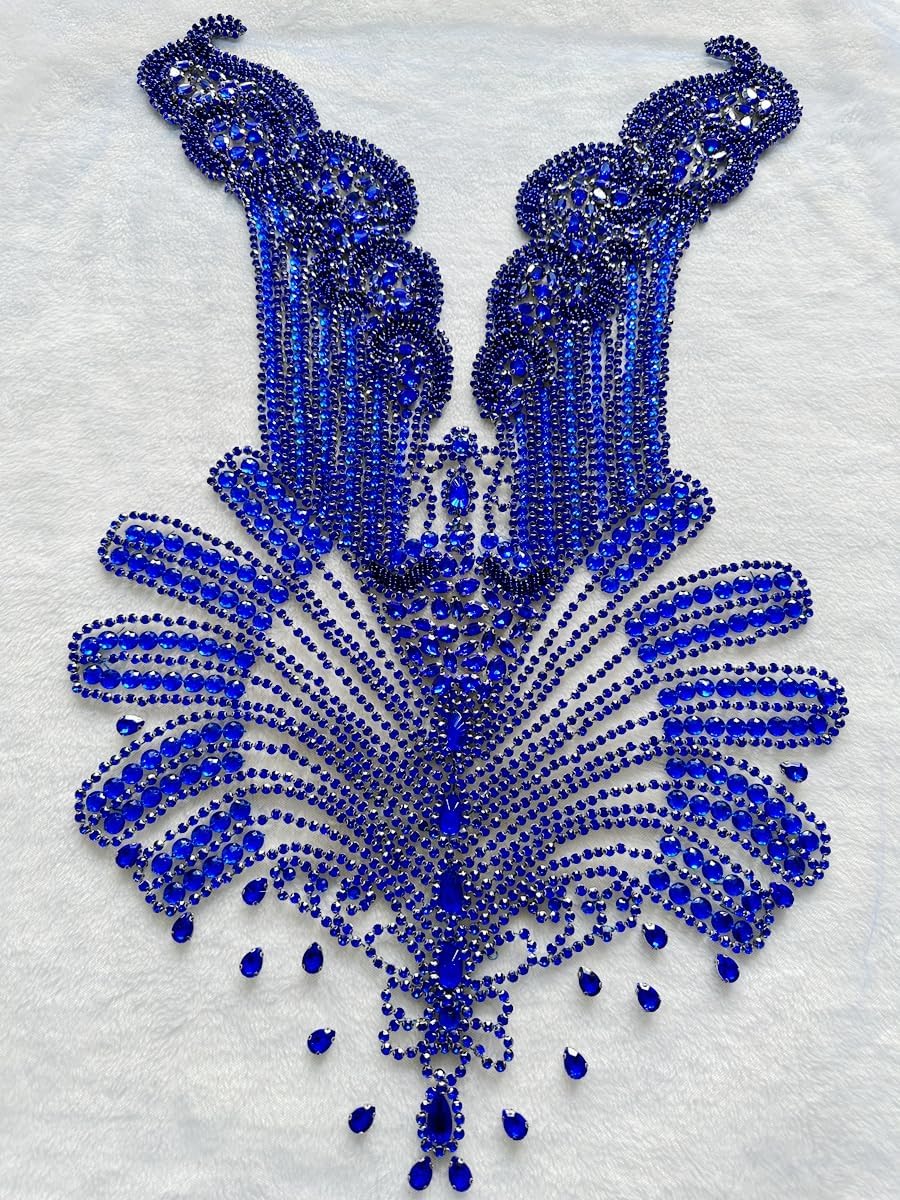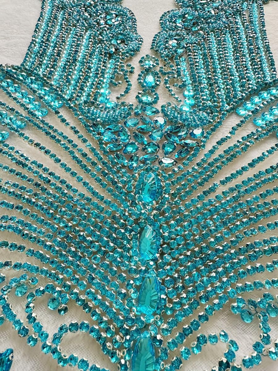 Large Bodice Applique Sequin Rhinestones Fine Appliques Handsewing Crystals and Beads for Dress Clothes Accessories 9.4X23.6inches (Orange)