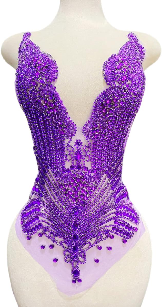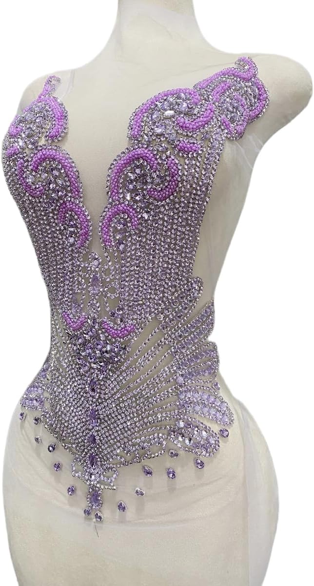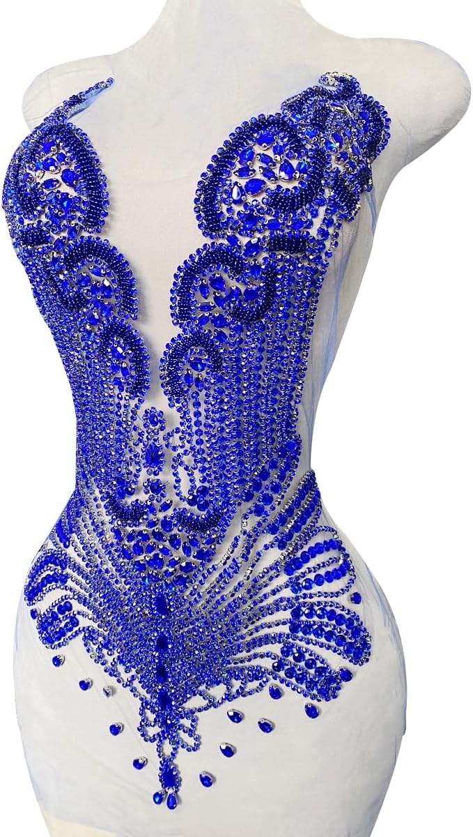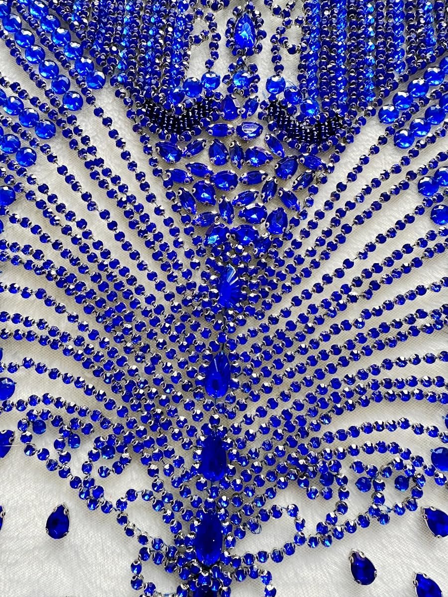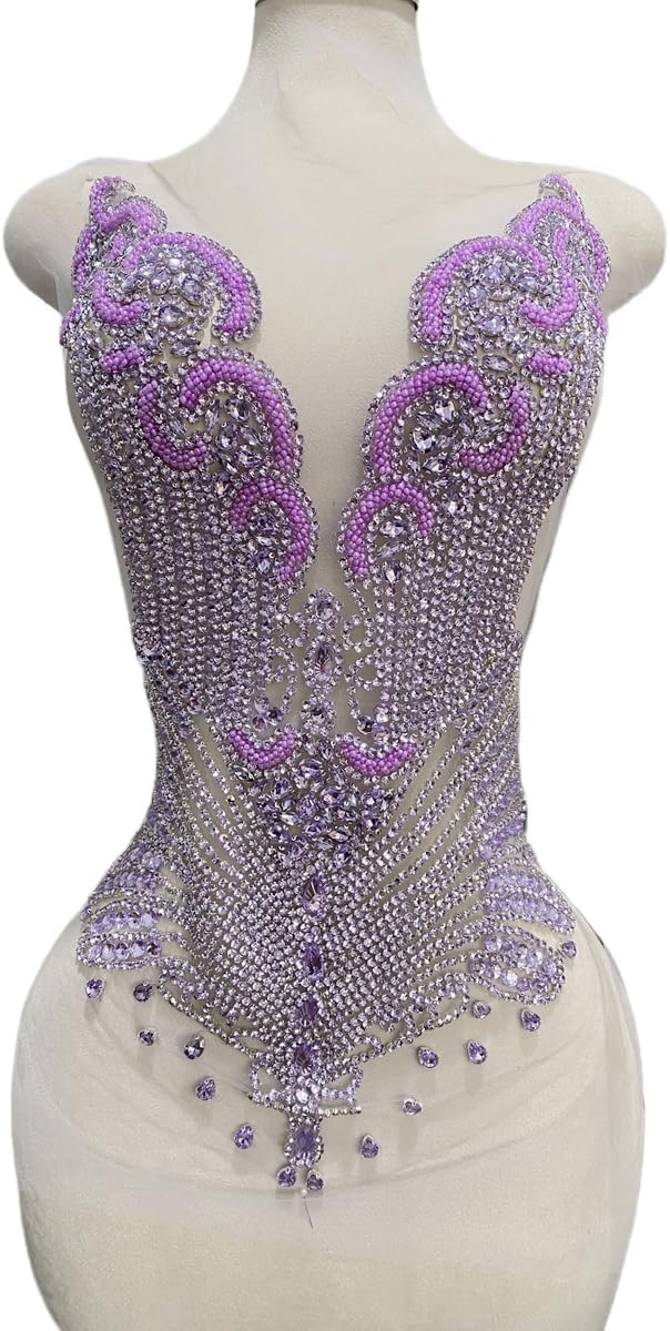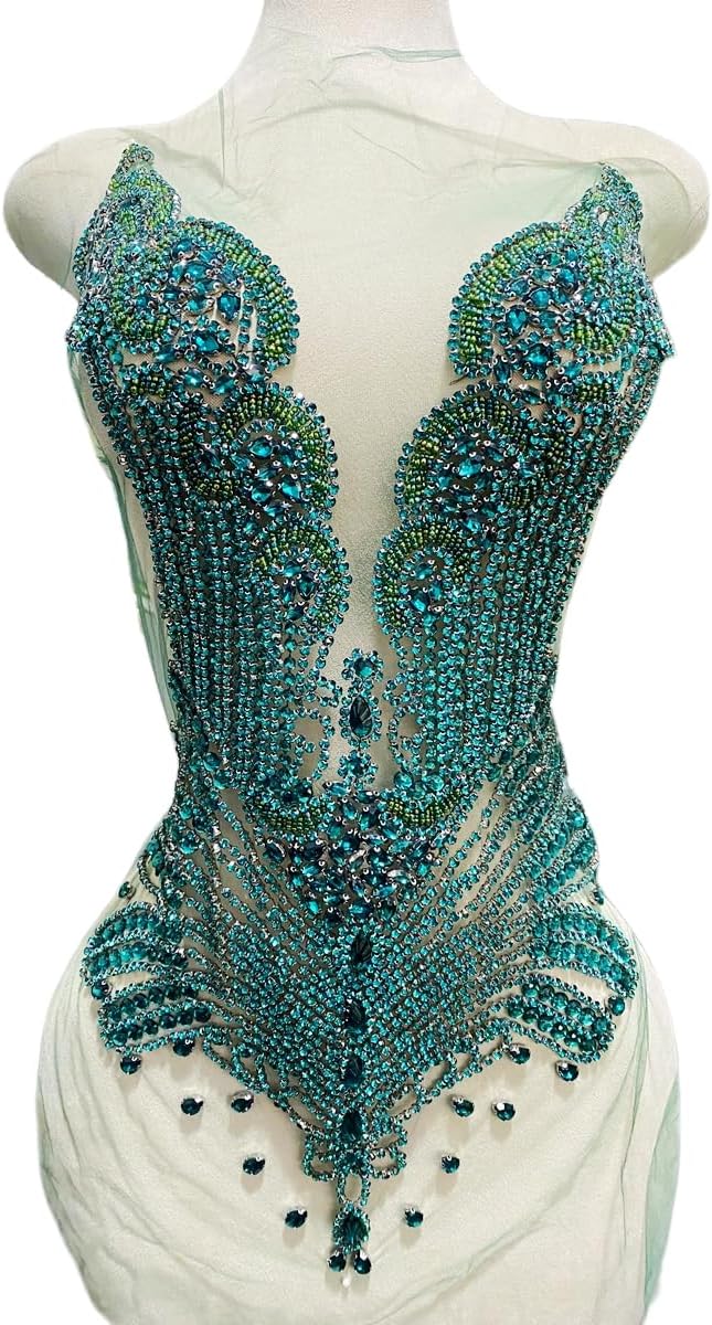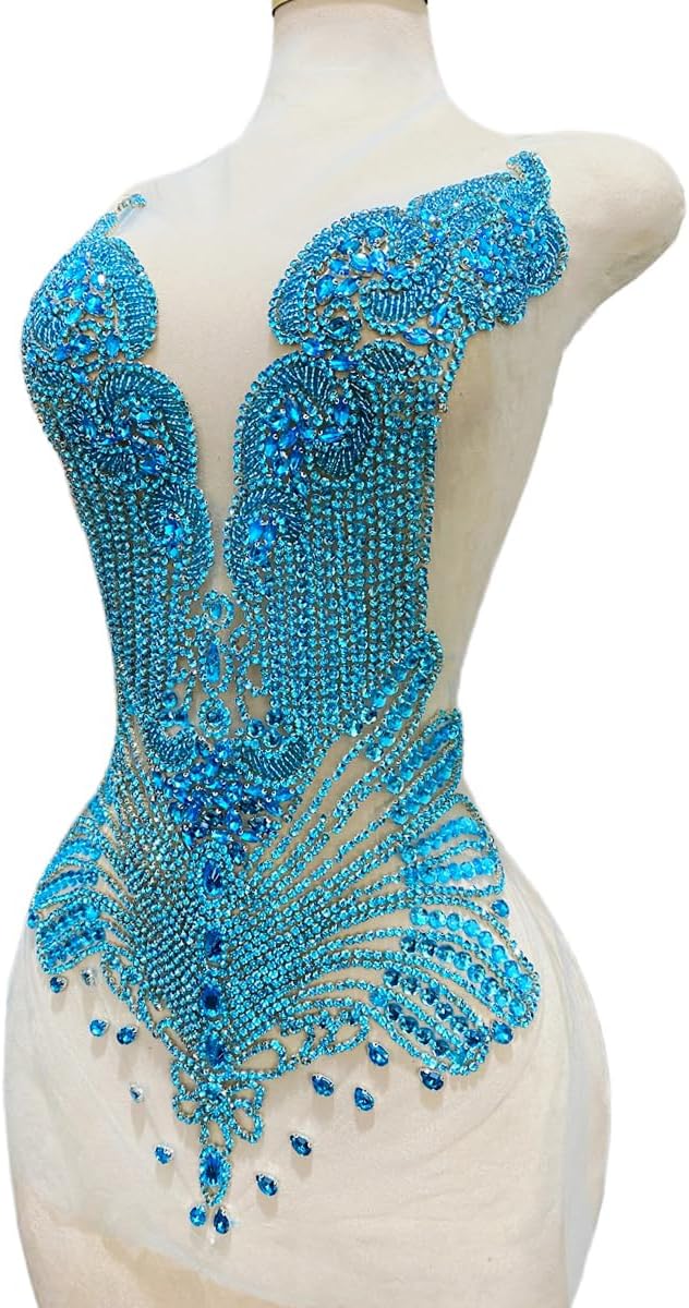 Large Bodice Applique Sequin Rhinestones Fine Appliques Handsewing Crystals and Beads for Dress Clothes Accessories 9.4X23.6inches (Orange)