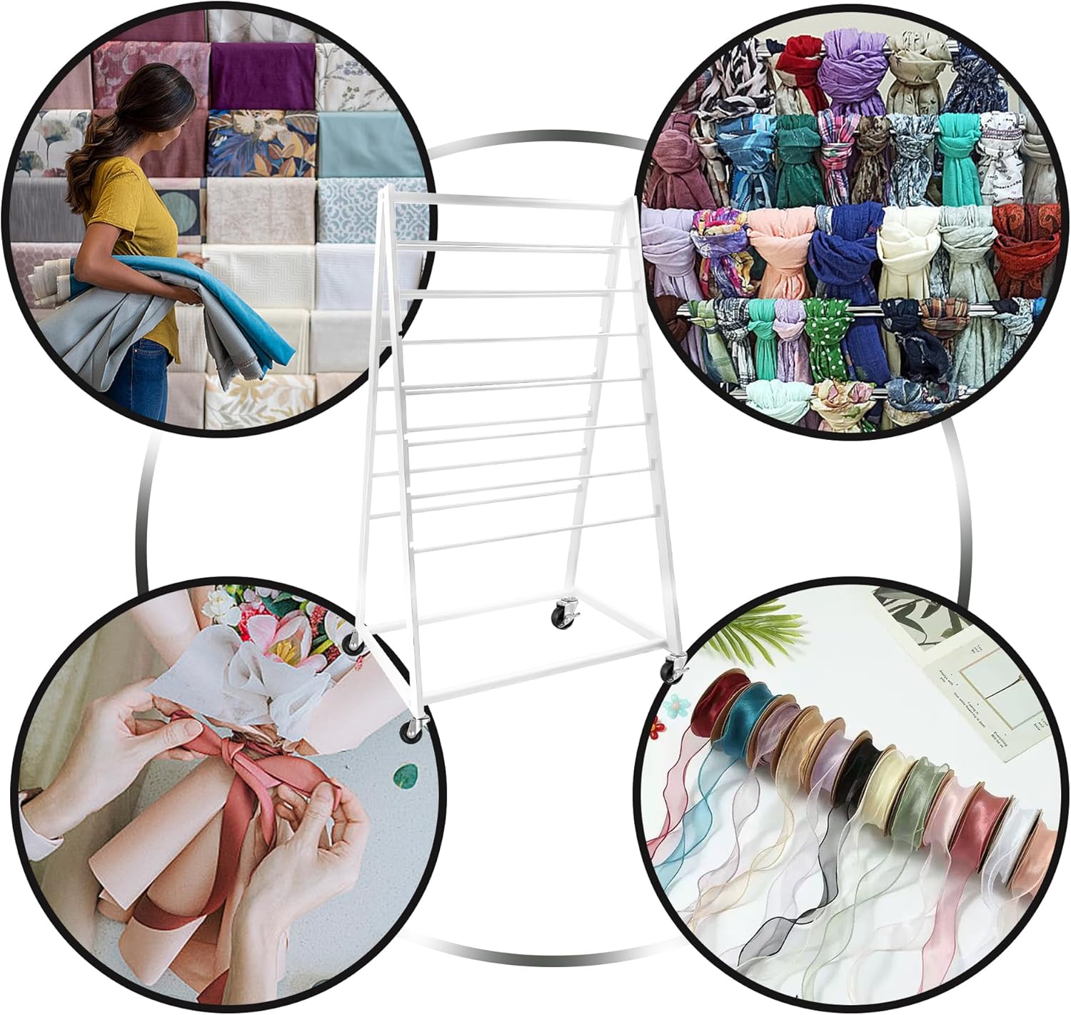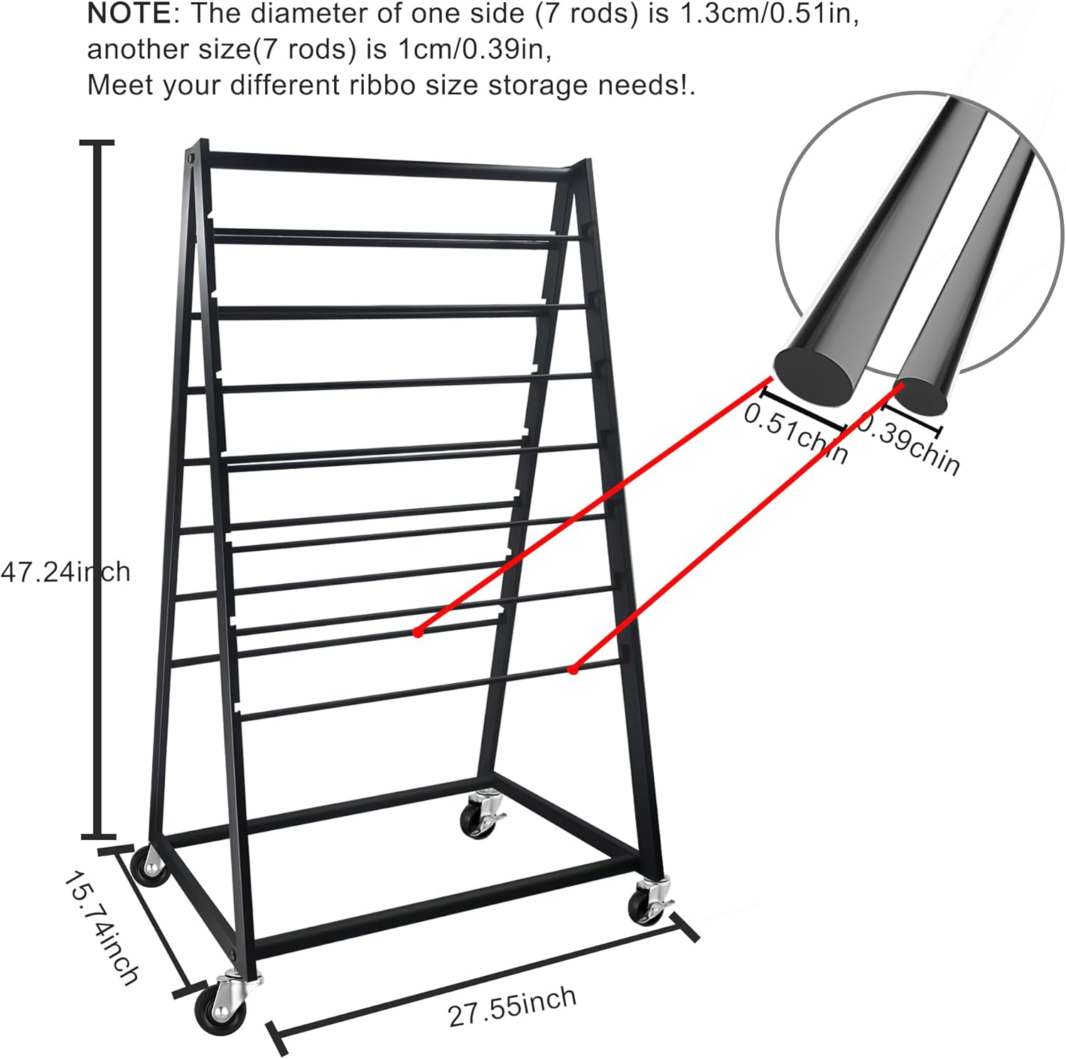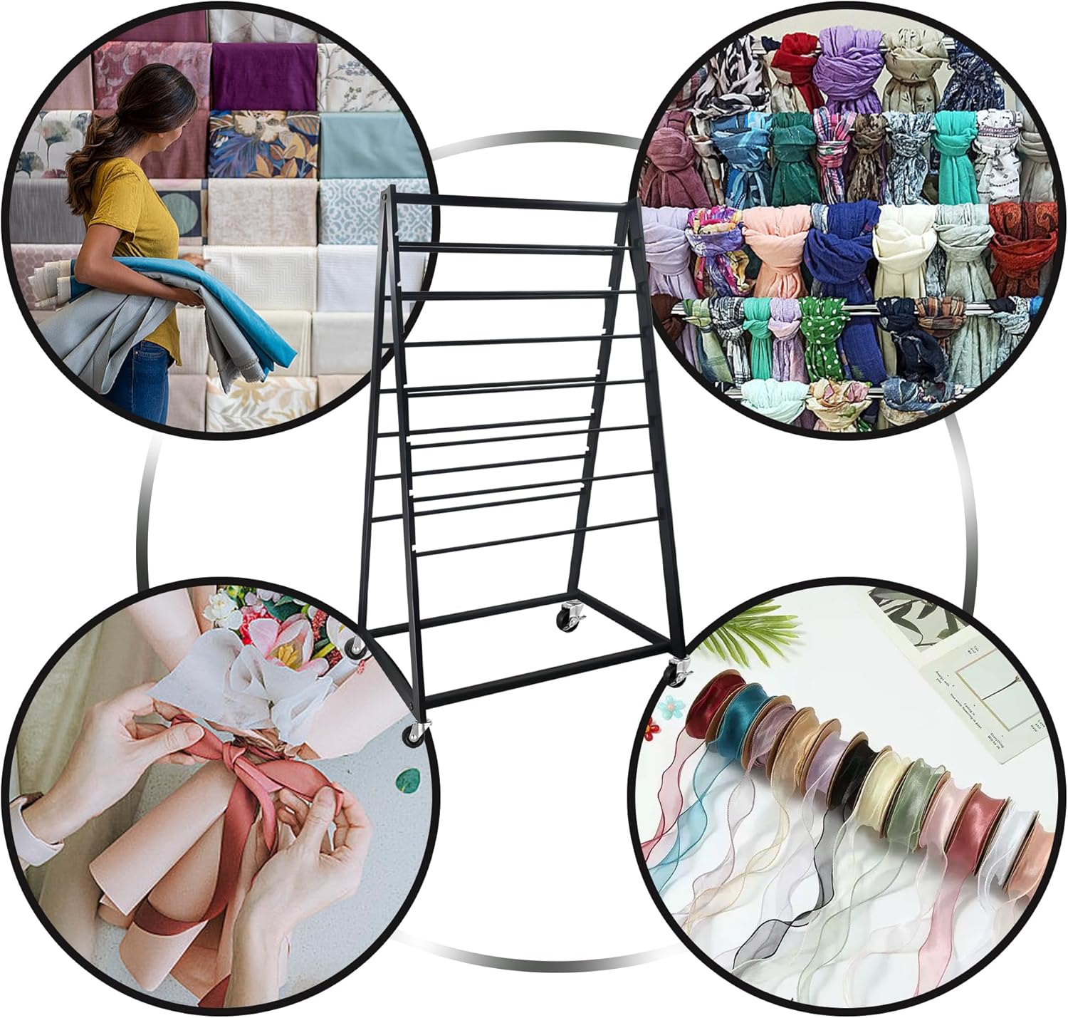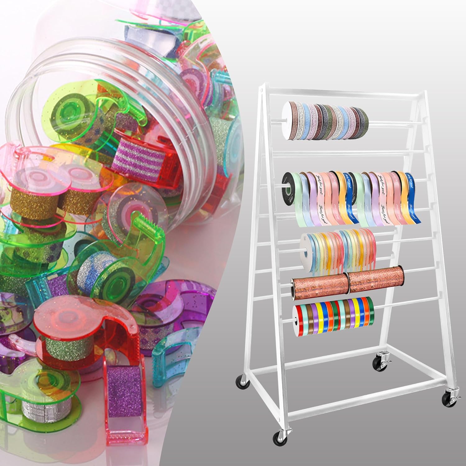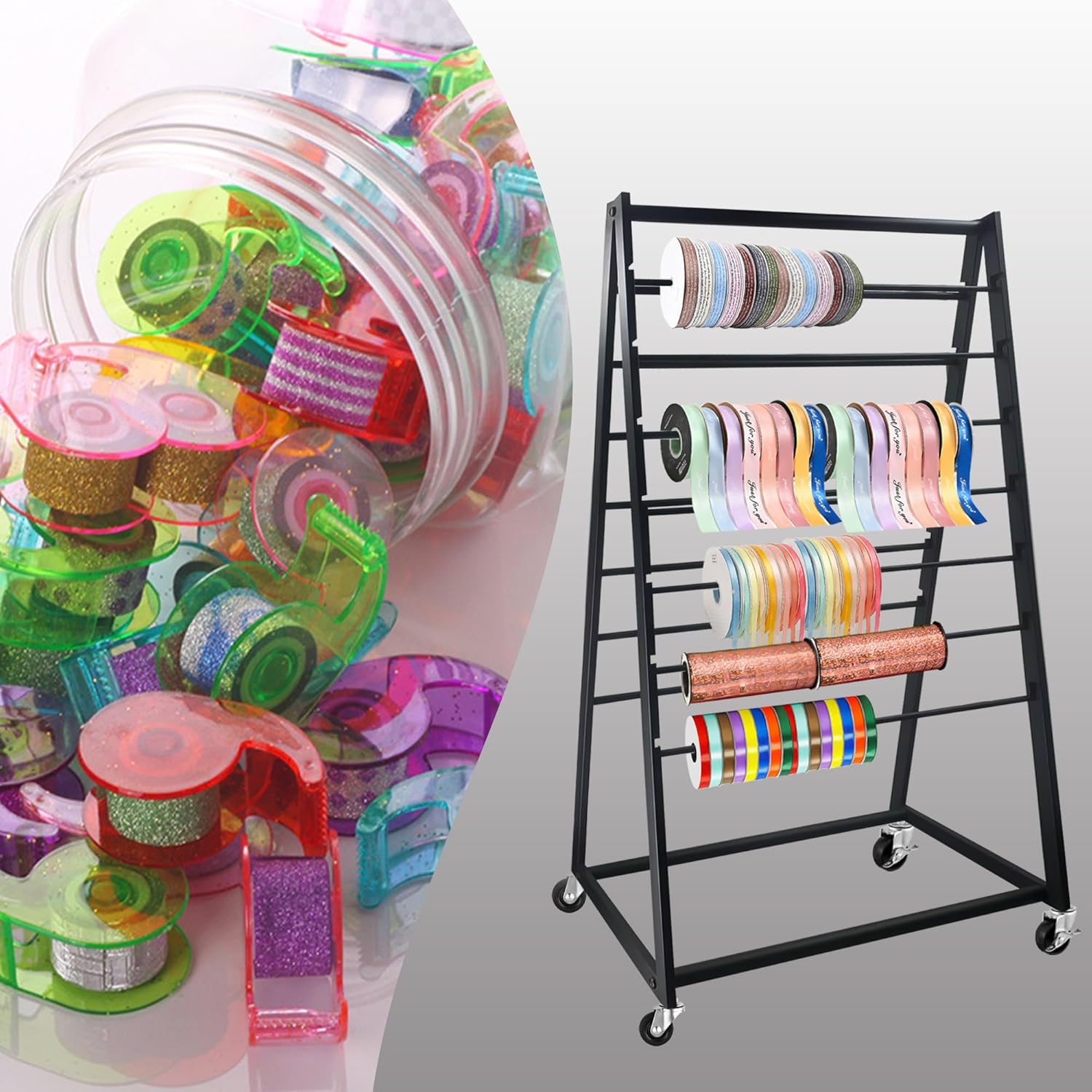 MEILANHUI Ribbon Holder Organizer Rack, 15 Tier Double-Sided Metal Ribbon Organizer Freestanding Movable Ribbon Storage, Large Capacity Ribbon Organizer for Craft Room, Cake Shop, Flower Store - Black