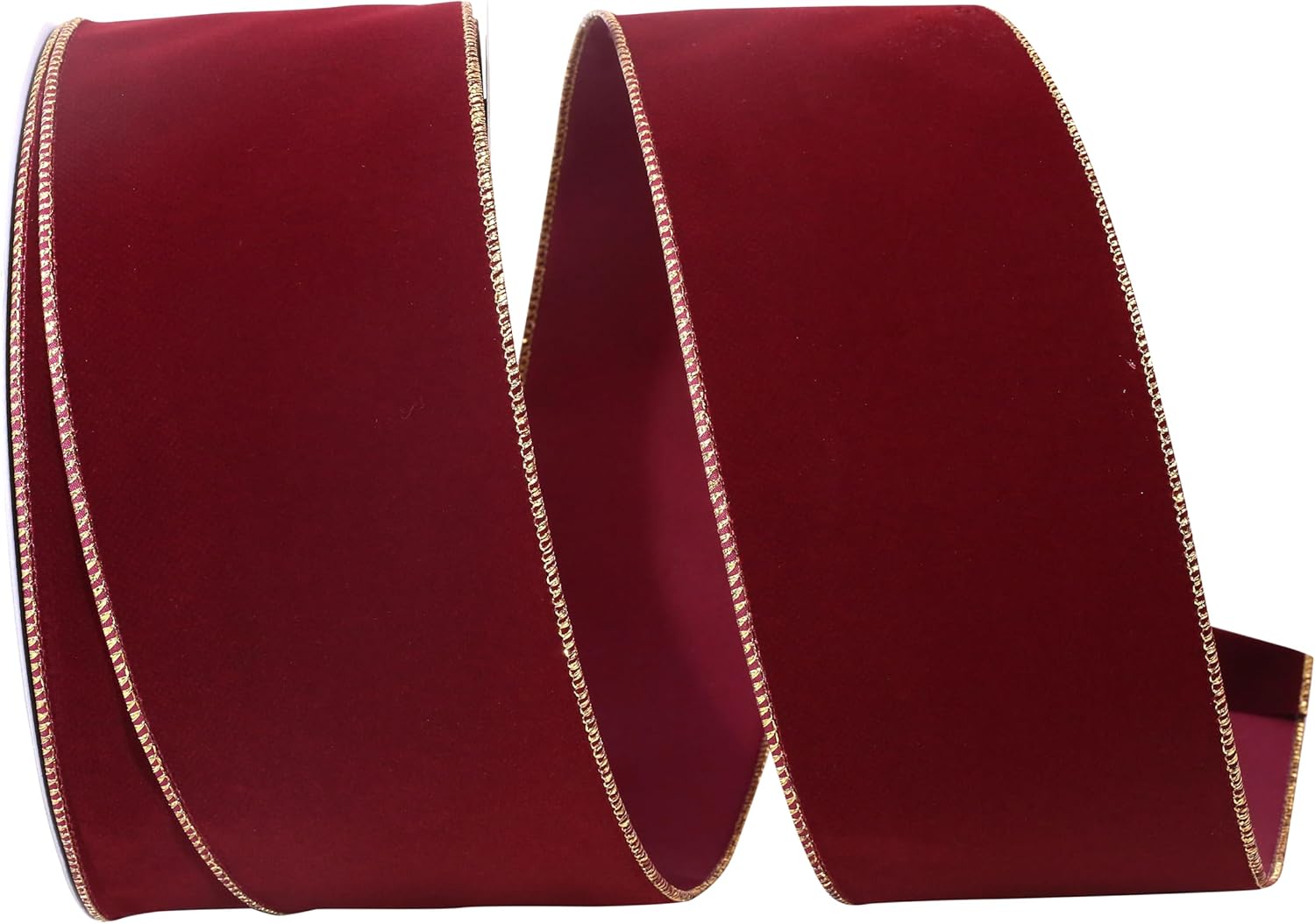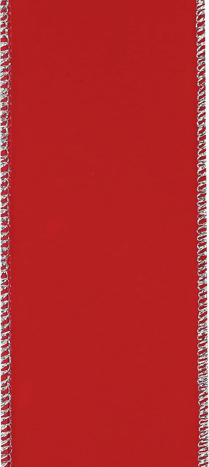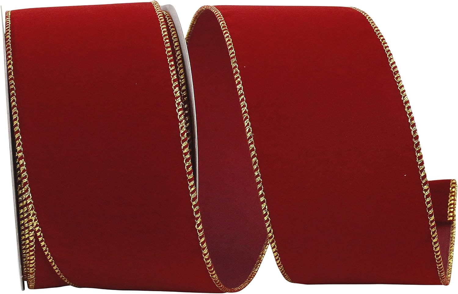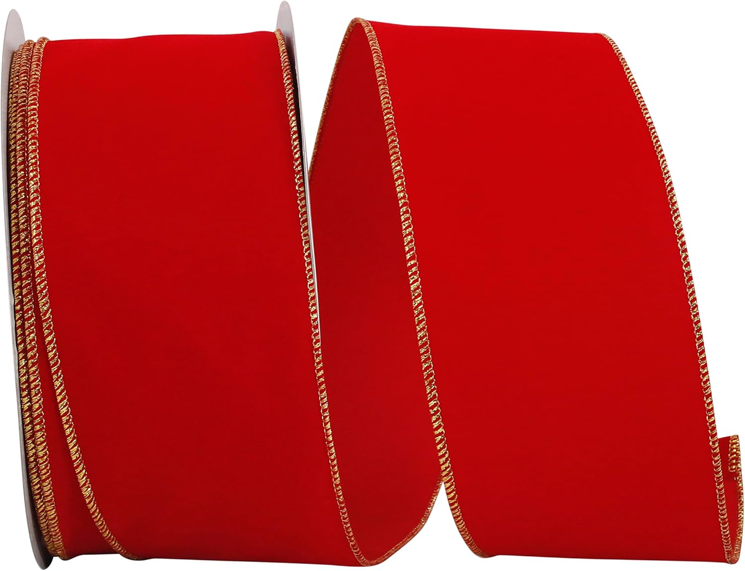 Homeford Velvet Gold Trim Christmas Ribbon Wired Edge, 6-Inch, 50-Yard, Red/Gold