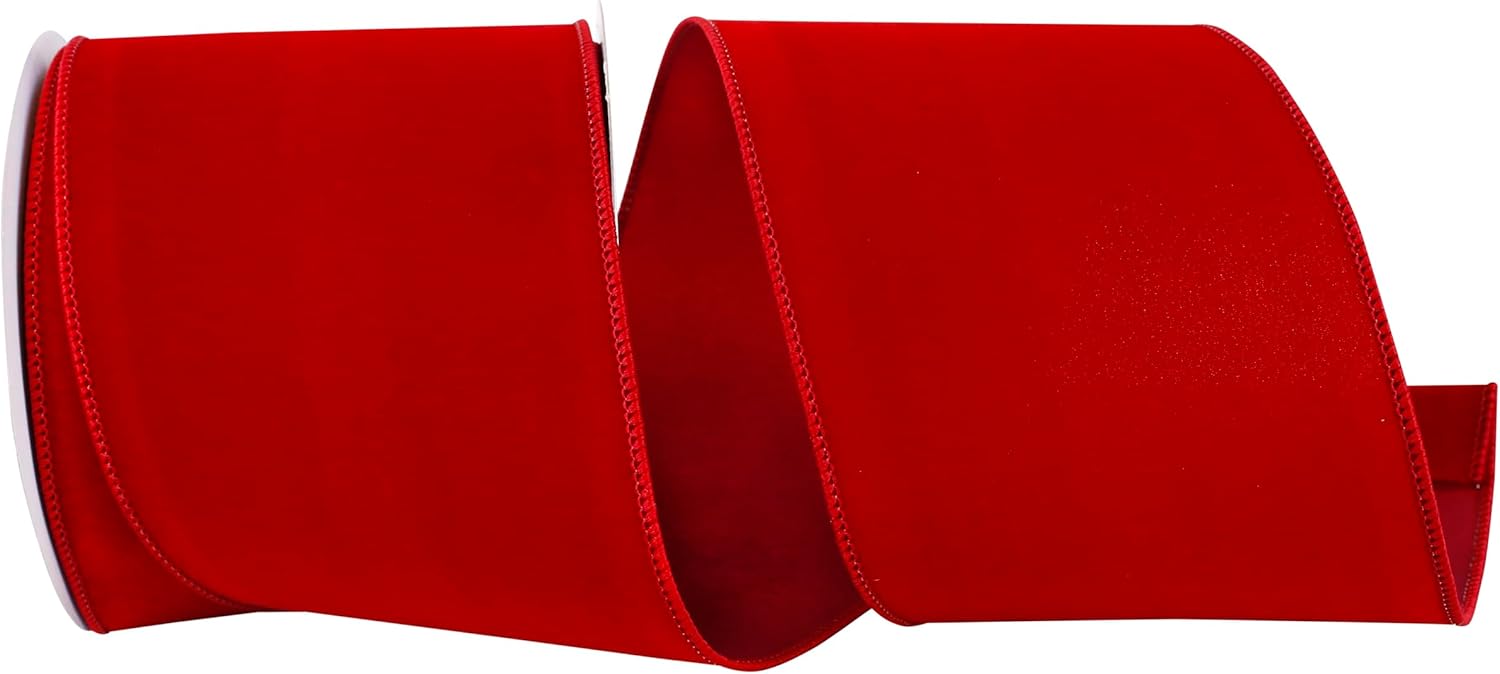 Reliant Ribbon 93894W-994-10D Jeweled Coronation Velvet Plush Gold Backed Wired Edge Ribbon, 4 Inch X 5 Yards, Red/Gold