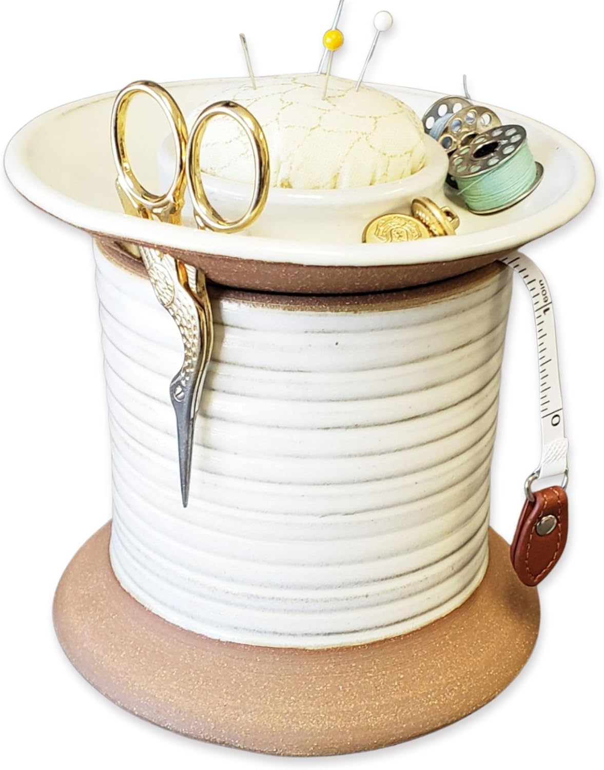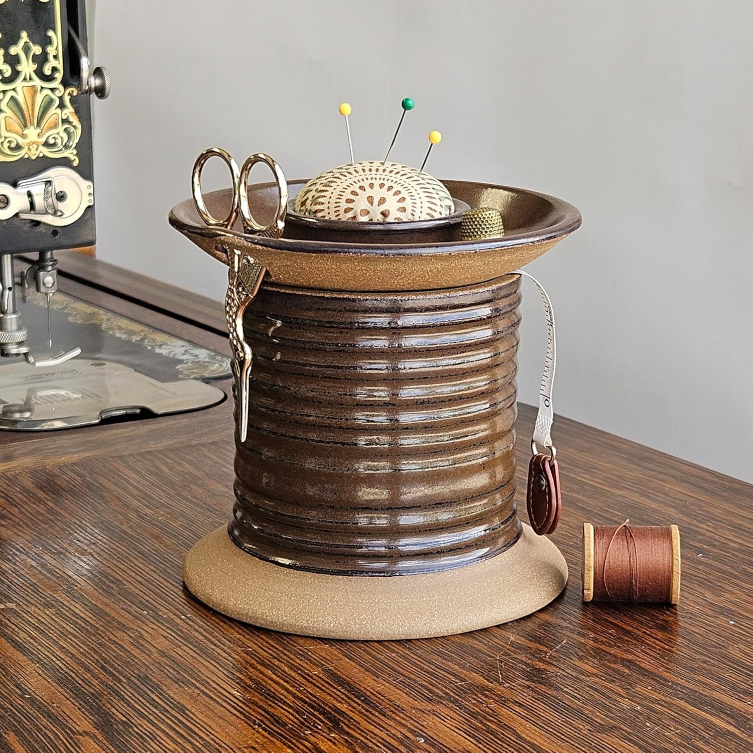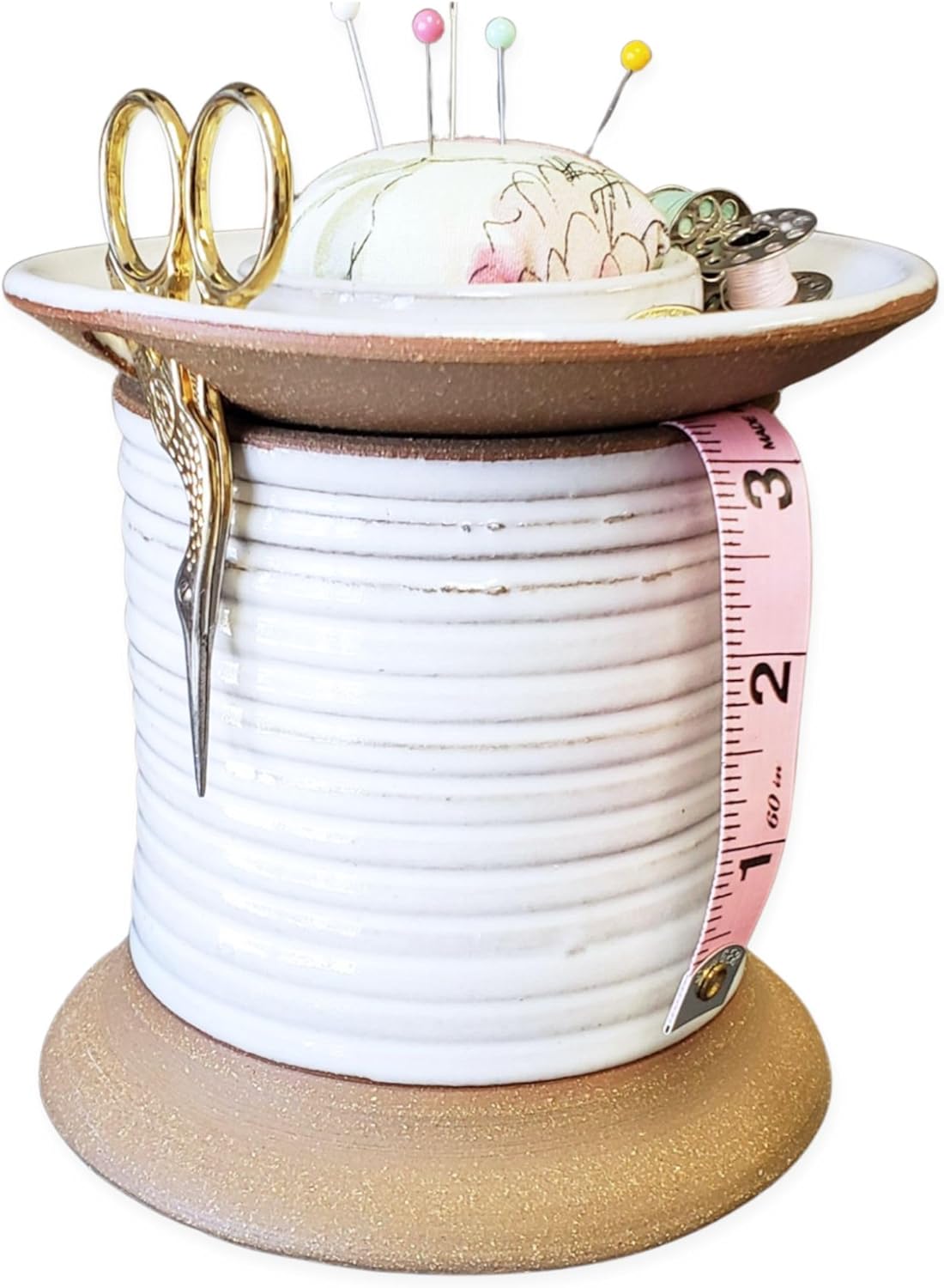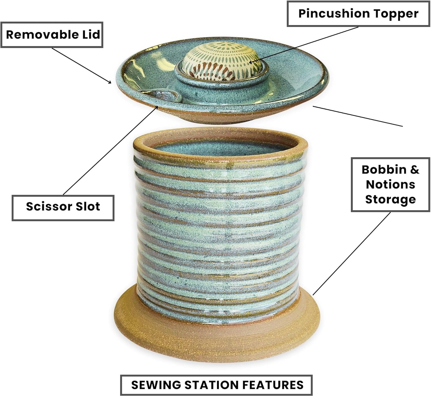 Cute Pin Cushion Jar for Sewing Kit - Unique Holder for Pins Thimbles Scissors Notions - Storage for Old Vintage Décor Aesthetic
