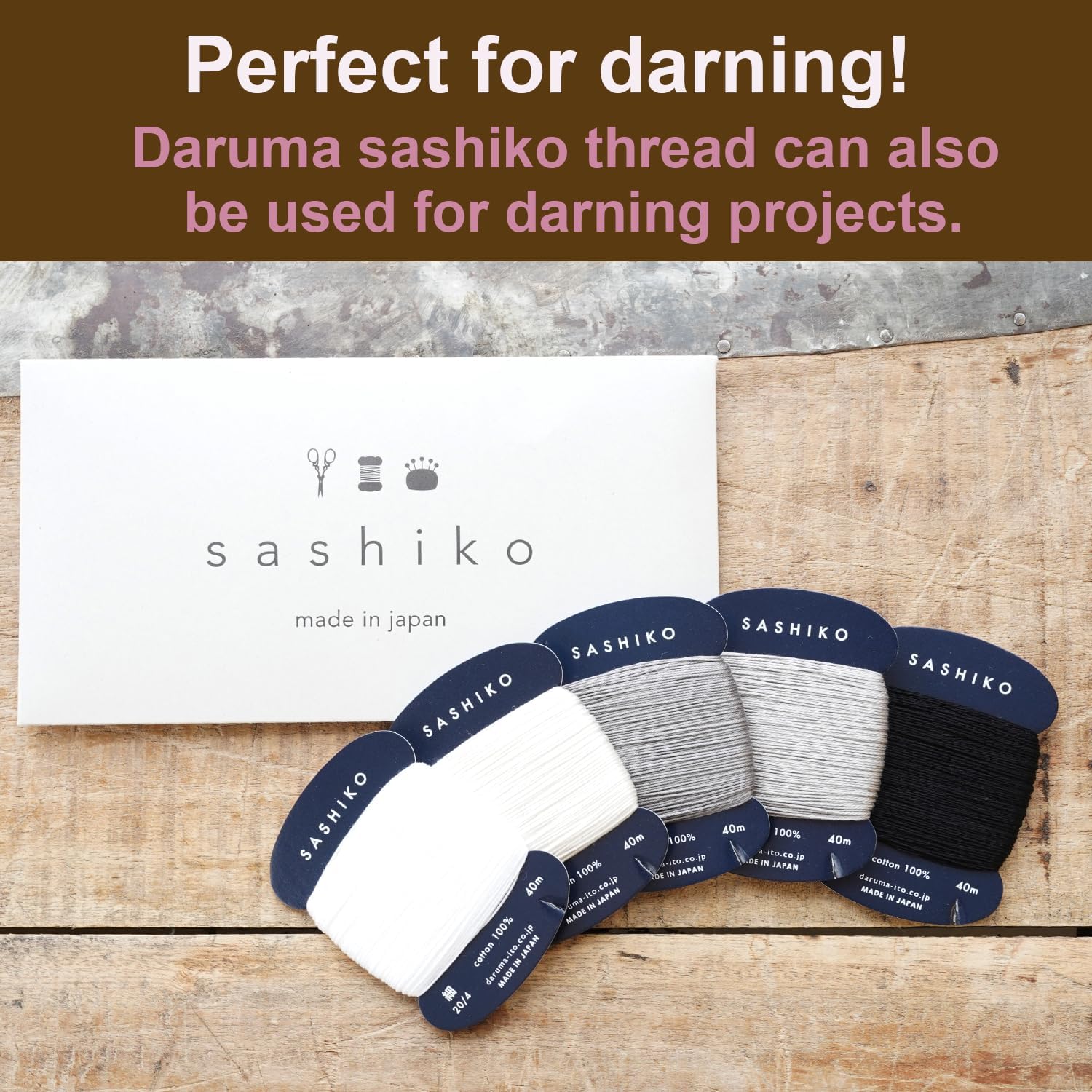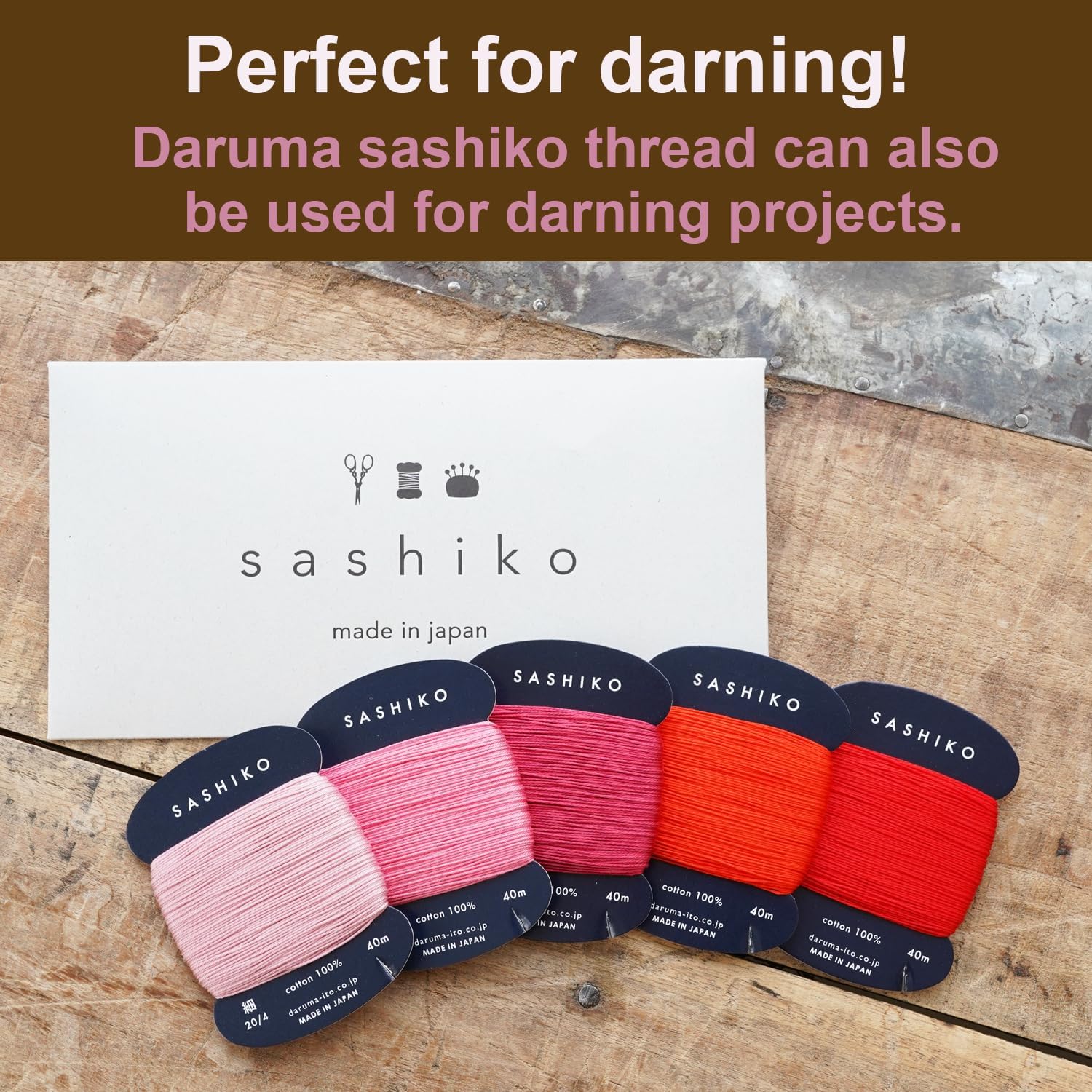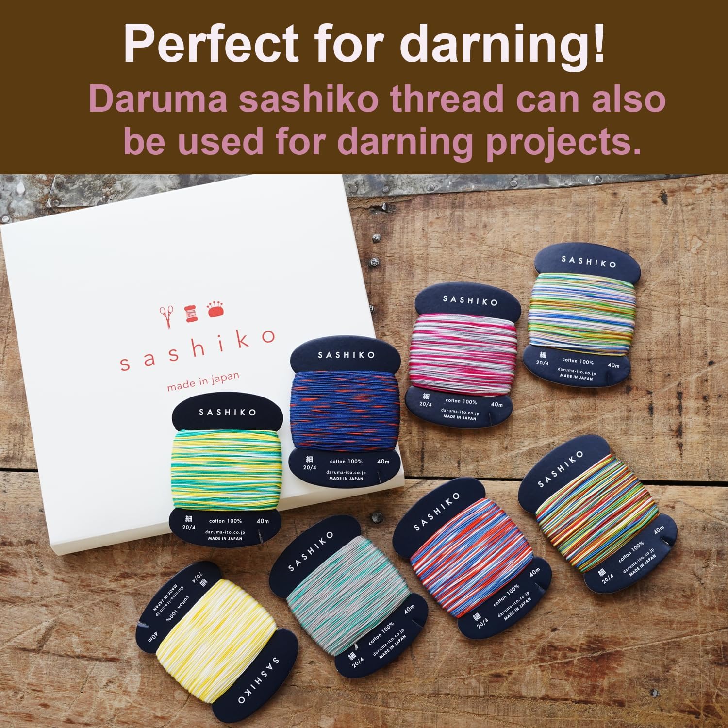 DARUMA Sashiko Thread 100% Cotton Card Type (43.7 yd) x 37 Colors with English Manual and Gift Box, Sewing & Embroidery Value Set (Thin, 37 Colors)
