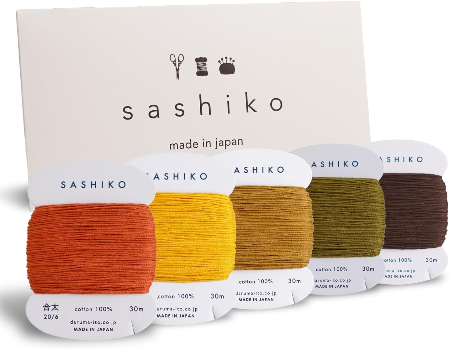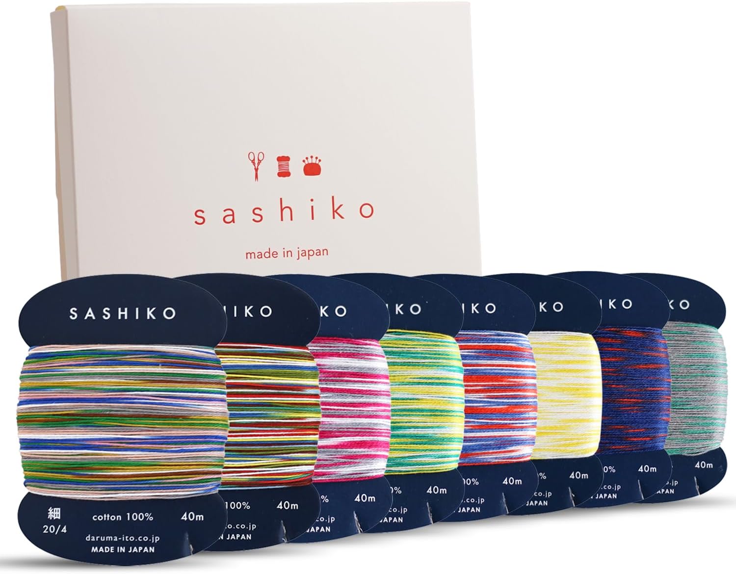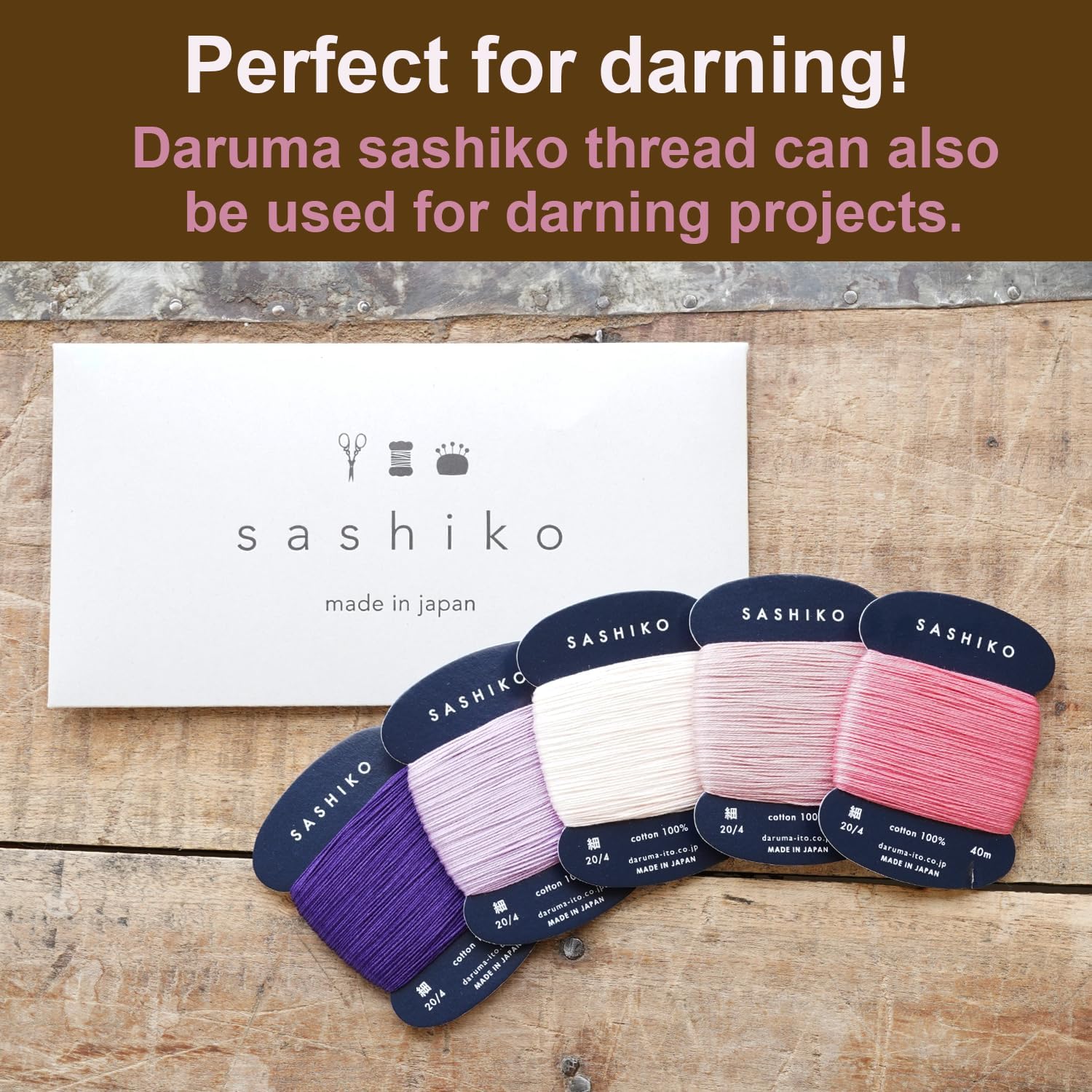 DARUMA Sashiko Thread 100% Cotton Card Type (43.7 yd) x 37 Colors with English Manual and Gift Box, Sewing & Embroidery Value Set (Thin, 37 Colors)