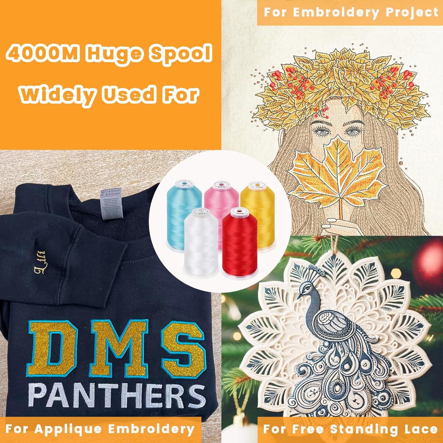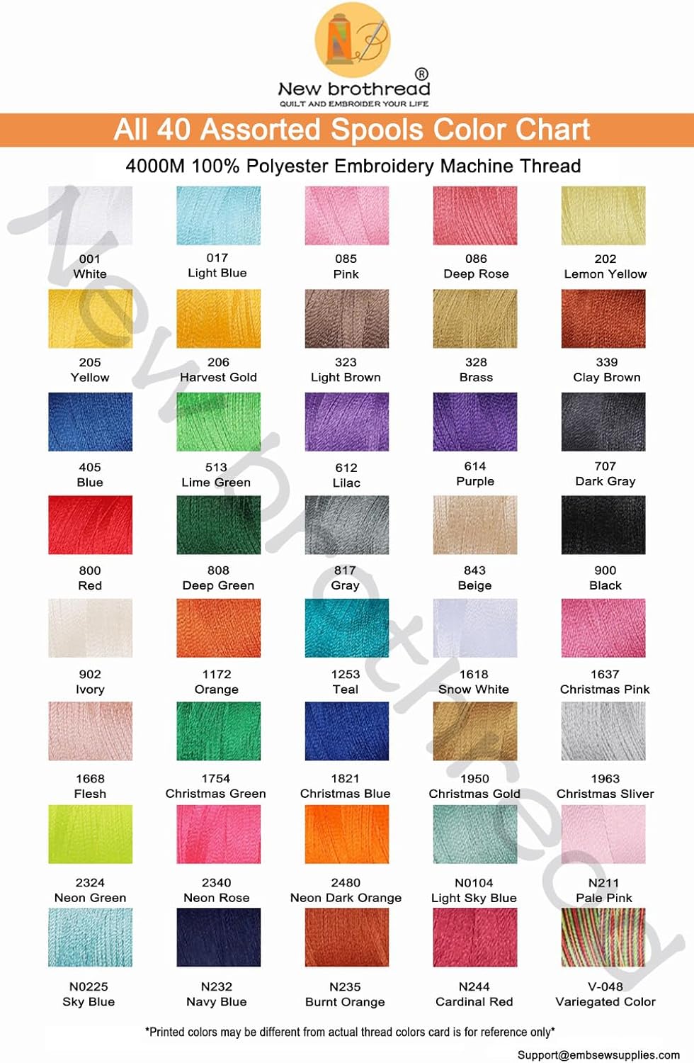 New brothreads – 42 Spools of Huge Spool 4000M(4400Y) Polyester Embroidery Machine Thread for Commercial and Domestic Embroidery Machines