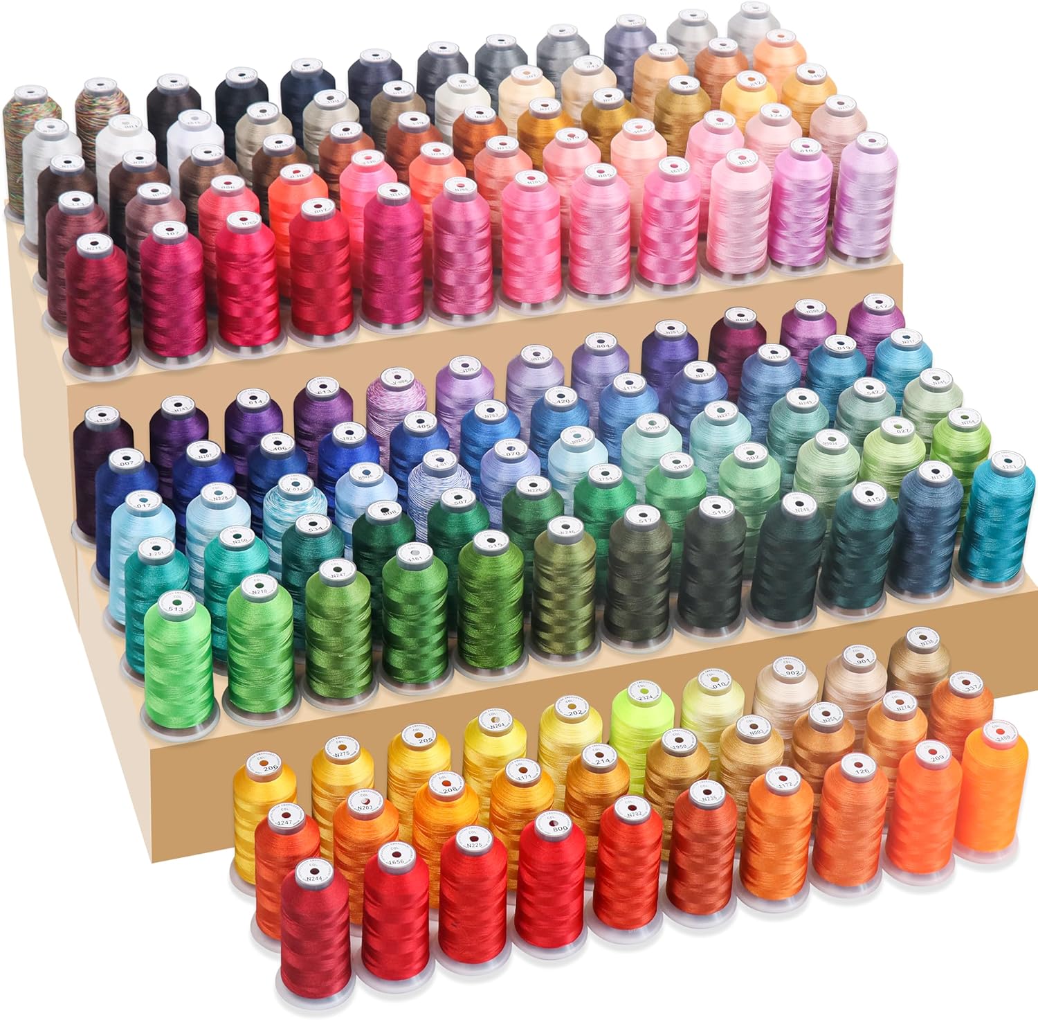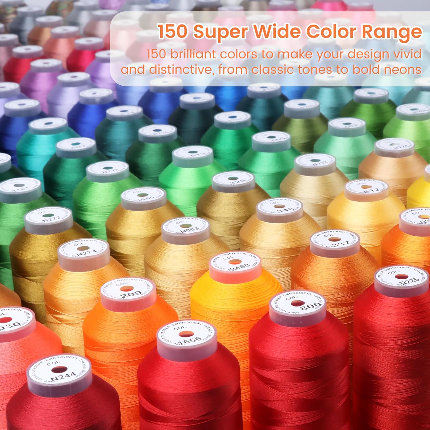 New brothread Mega Kit 150 Colors Compatible with Brother & Janome Polyester Embroidery Machine Thread 40WT 500M/550YD Compatible with Brother Babylock Janome Singer Pfaff Husqvarna Bernina Machines