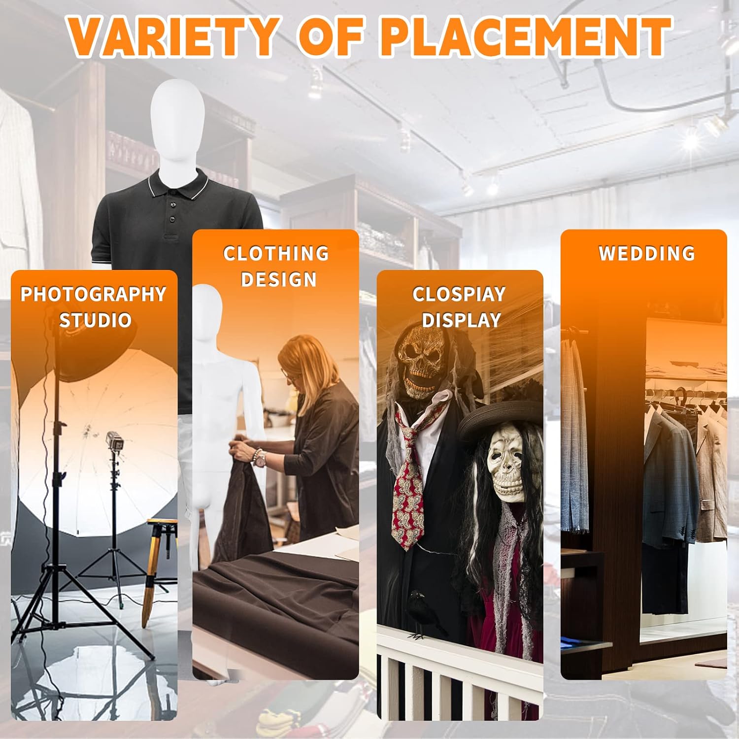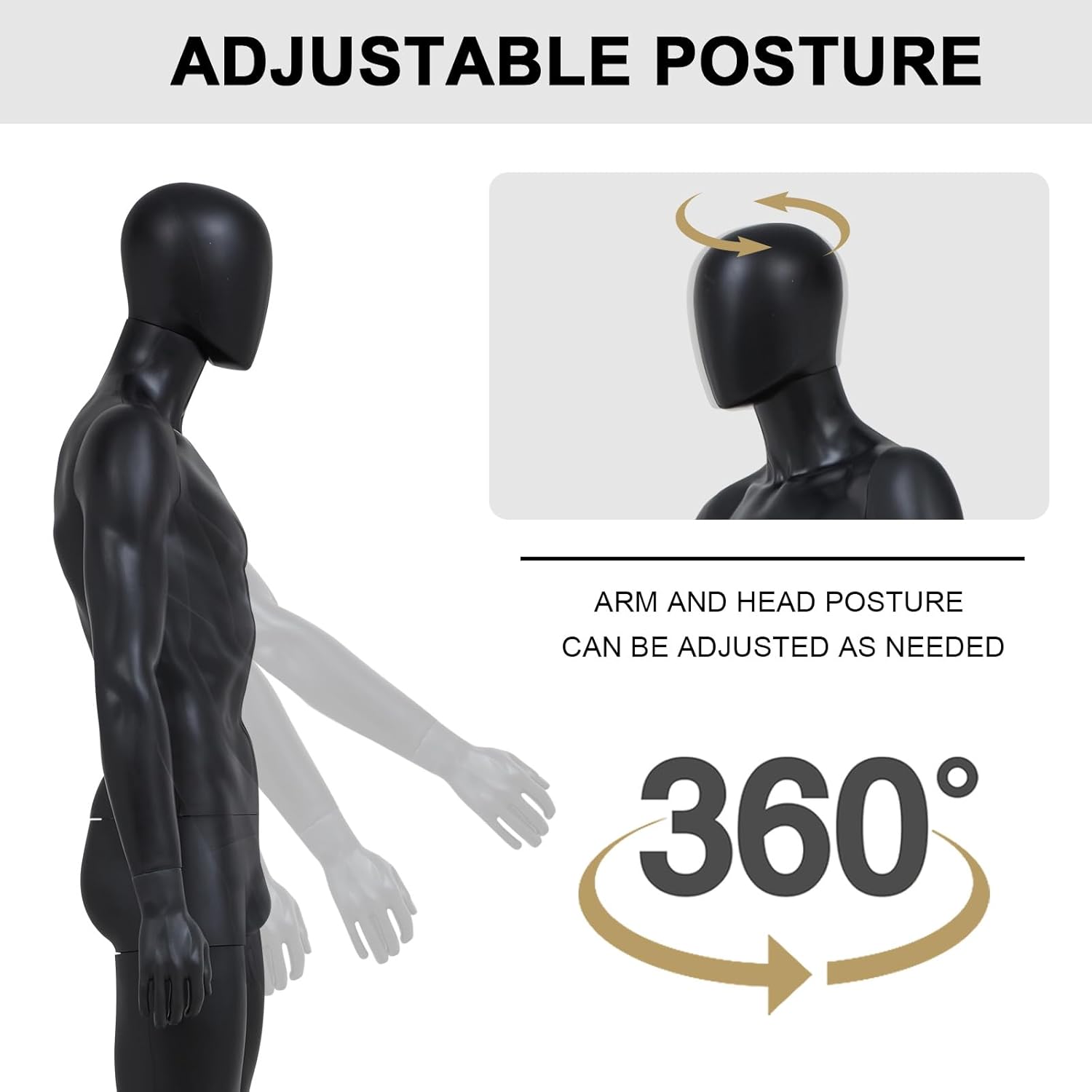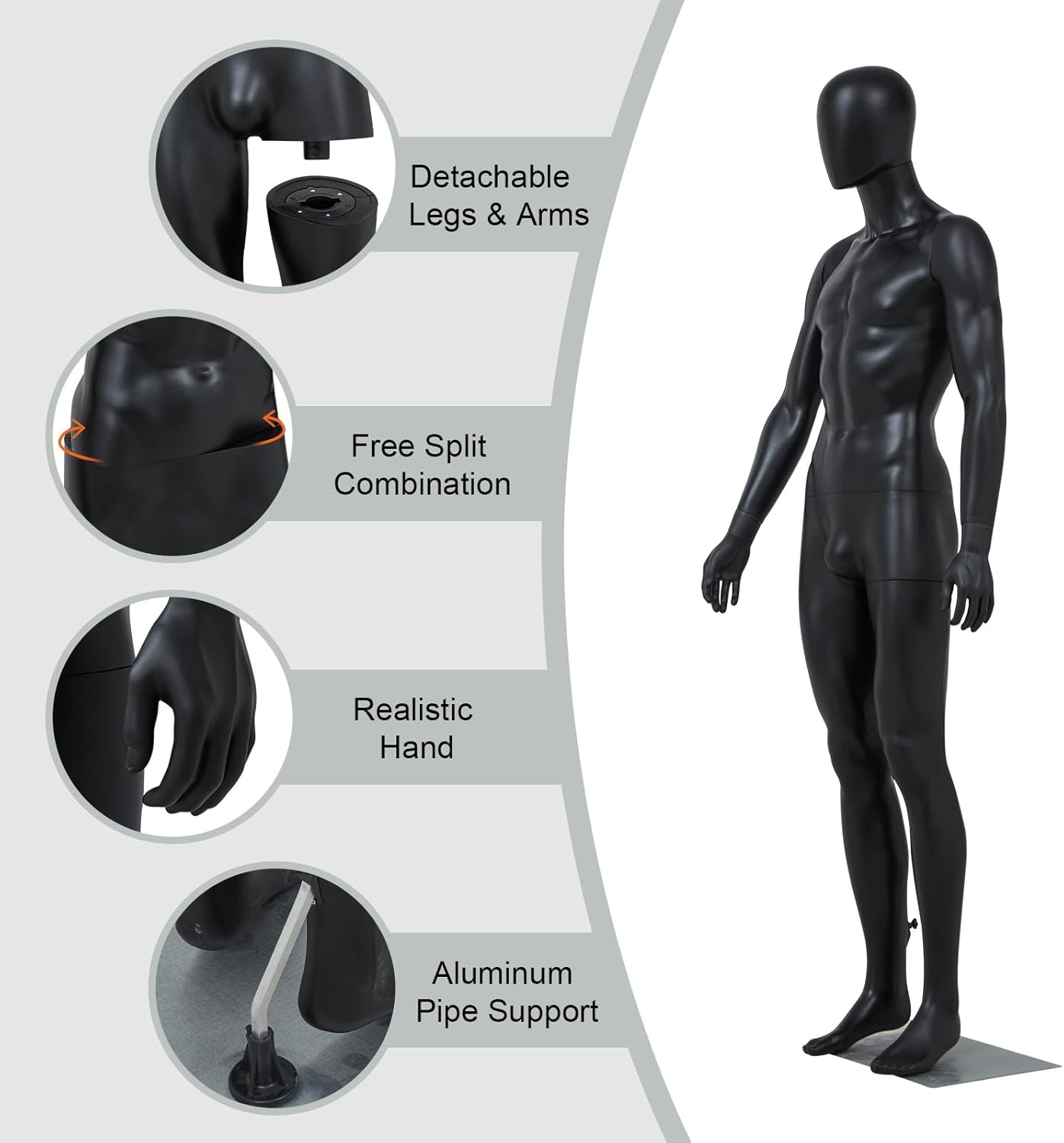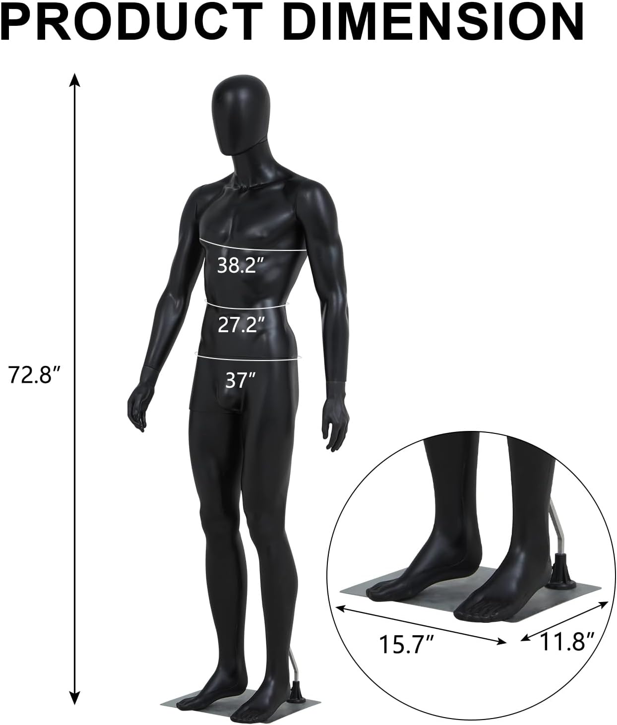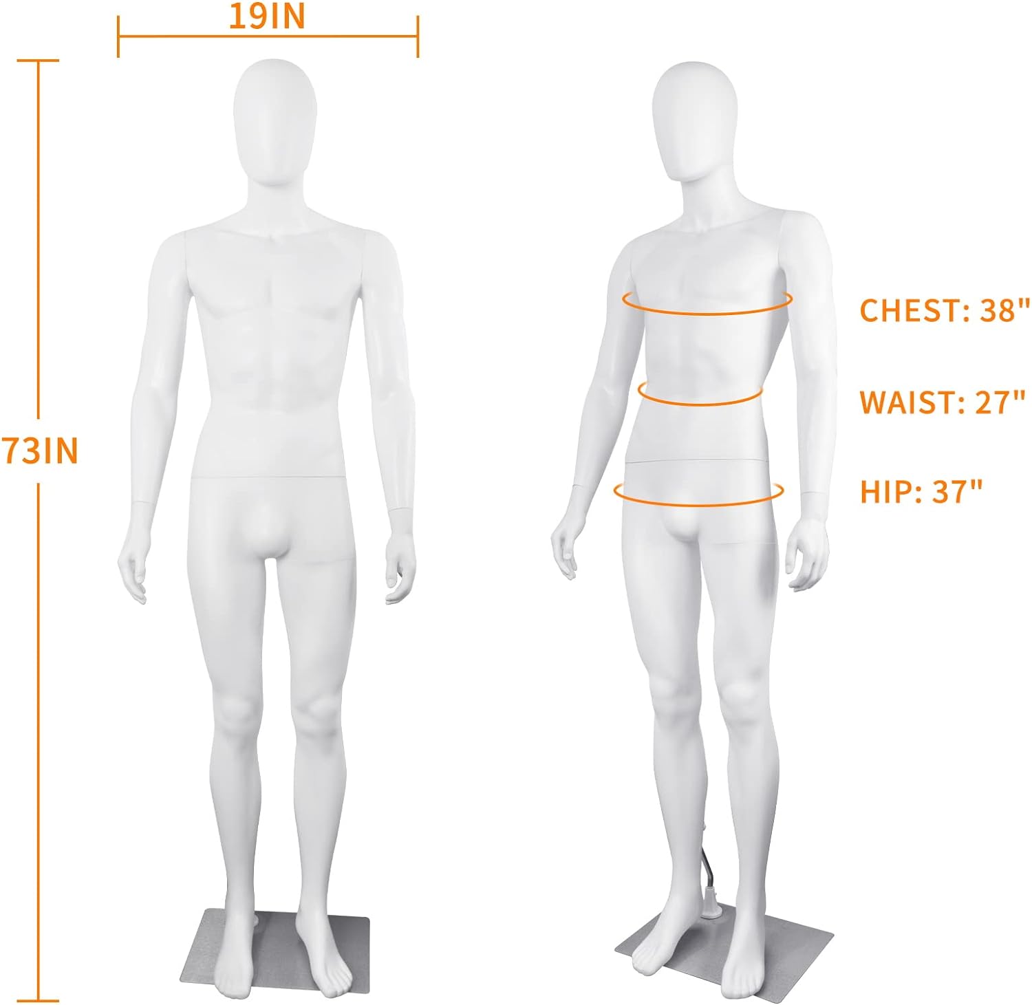 KINTNESS 73''H Male Mannequin Full Body - Torso Dress Form Mannequin Body Adjustable Detachable Manikin Full Body with Head Metal Base for Sewing, Clothing Store, Design Office (Male-B)