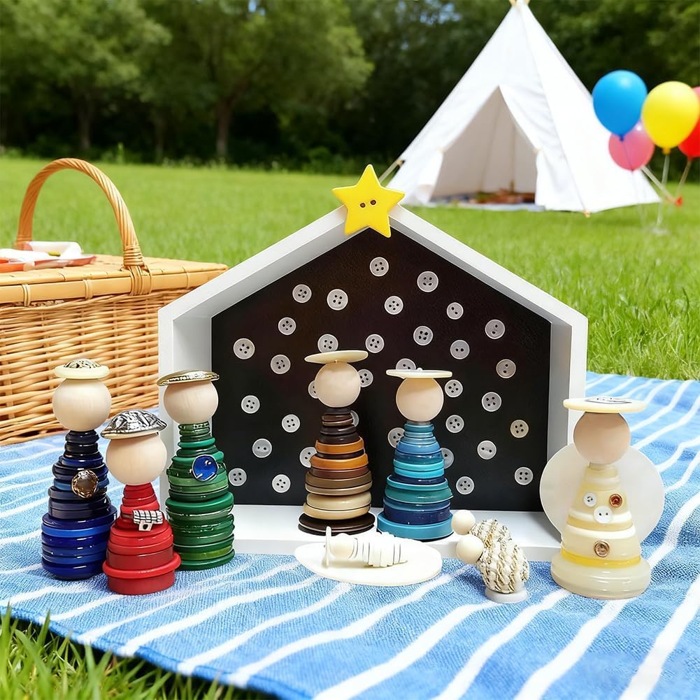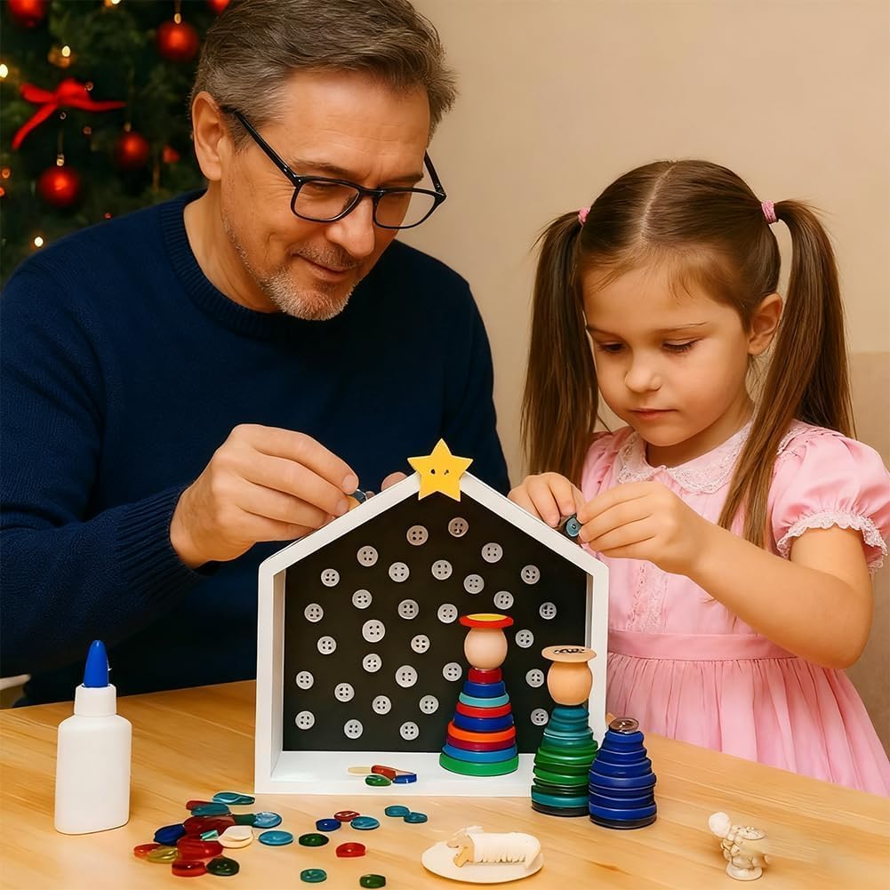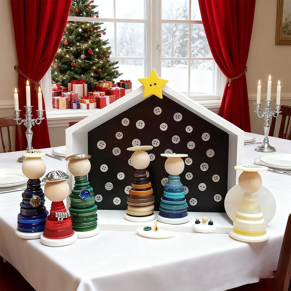 DIY Christmas Button Ornament Making Set - Snowman/Santa/Angel, Fun Holiday Craft Kit for All Ages, Ideal Xmas Tree Hanging Decor & Festive Gifts (30 pcs-C)