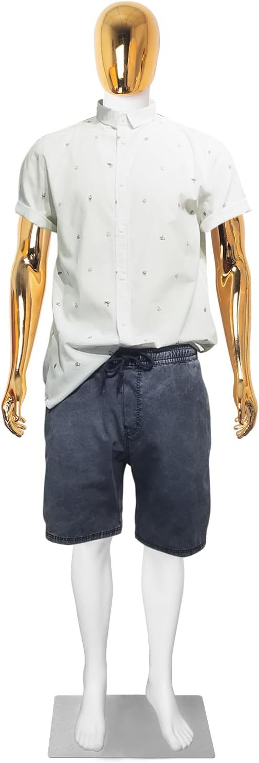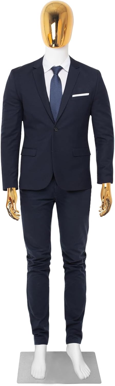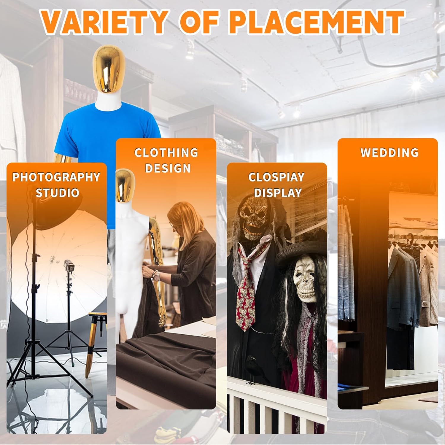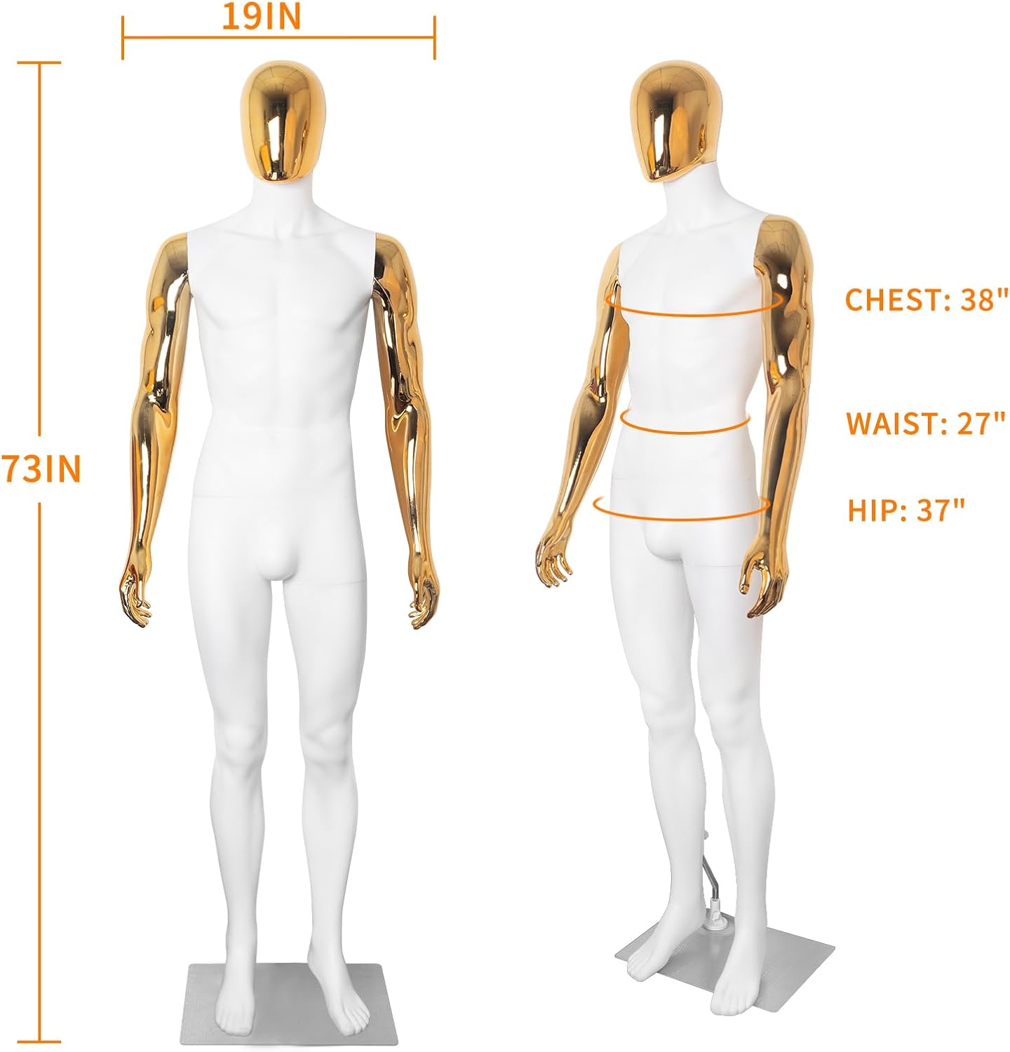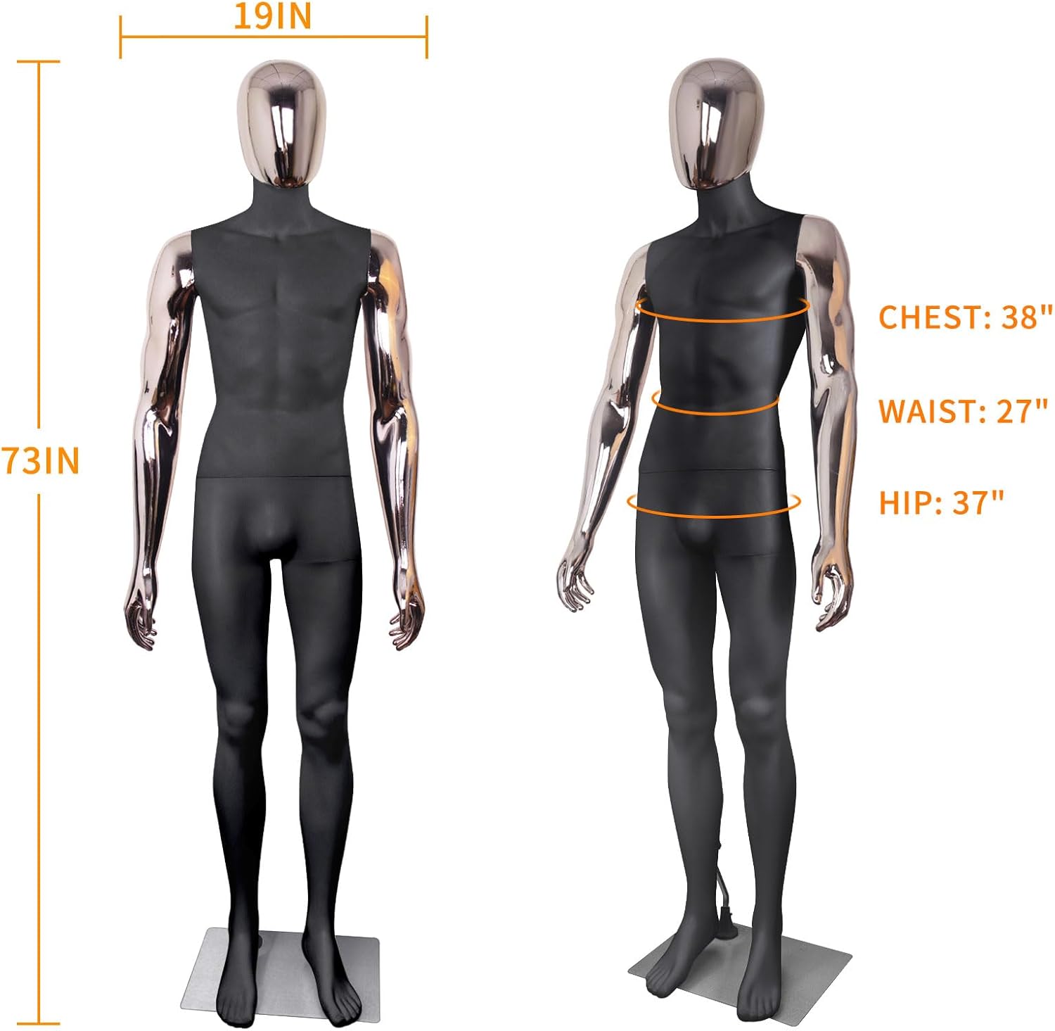 Male Mannequin Black Body Rose Gold Head Gold Hands Dress Form Full Body Sewing Manikin 73 Inch Poseable Mannequin with Stand Realistic Mannequin Clothing Form Metal Base Connector