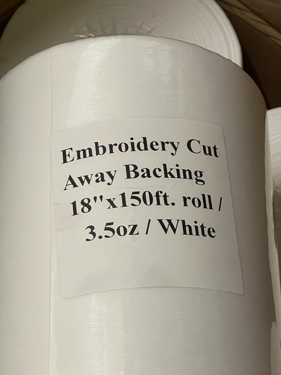 White Cut Away Machine Embroidery Stabilizer Backing 18 in x 150ft / roll ,3.5 oz, Cut into Variable Sizes,for Machine Embro