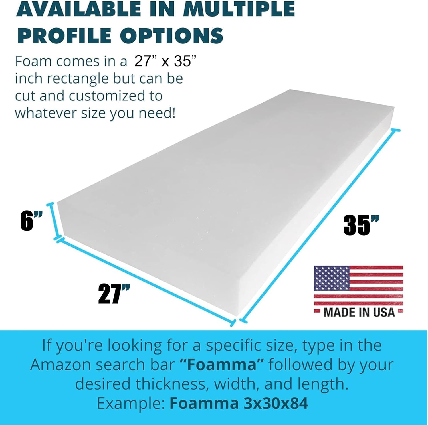 FOAMMA 6" x 27" x 35" High Density Upholstery Foam Cushion (Seat Replacement, Upholstery Sheet, Foam Padding) Made in USA!