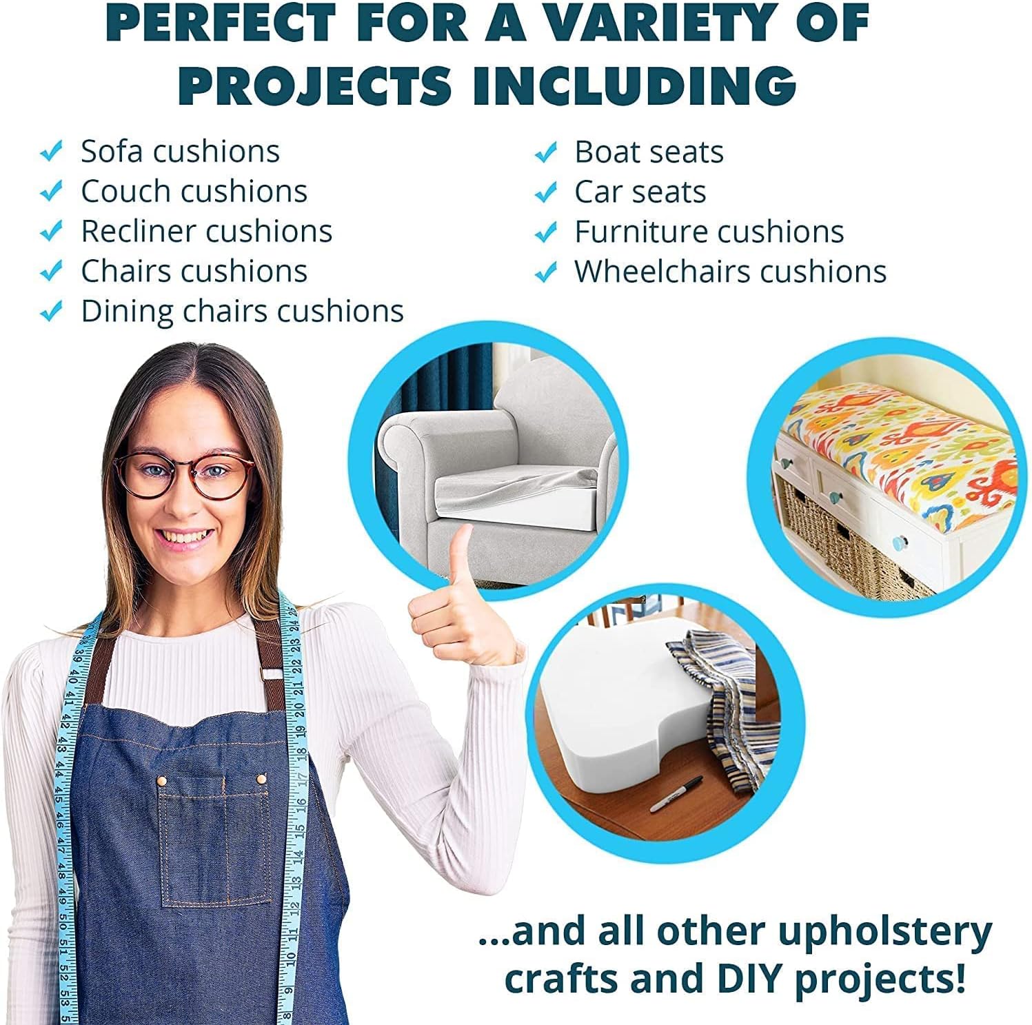 Foamma 6" x 22" x 22" High Density Upholstery Foam Padding for Cushions and Seat Repair, Thick Custom Pillow, Chair, Couch Cushion Replacement Foam, and Craft Upholstery Supplies, 2 Pack