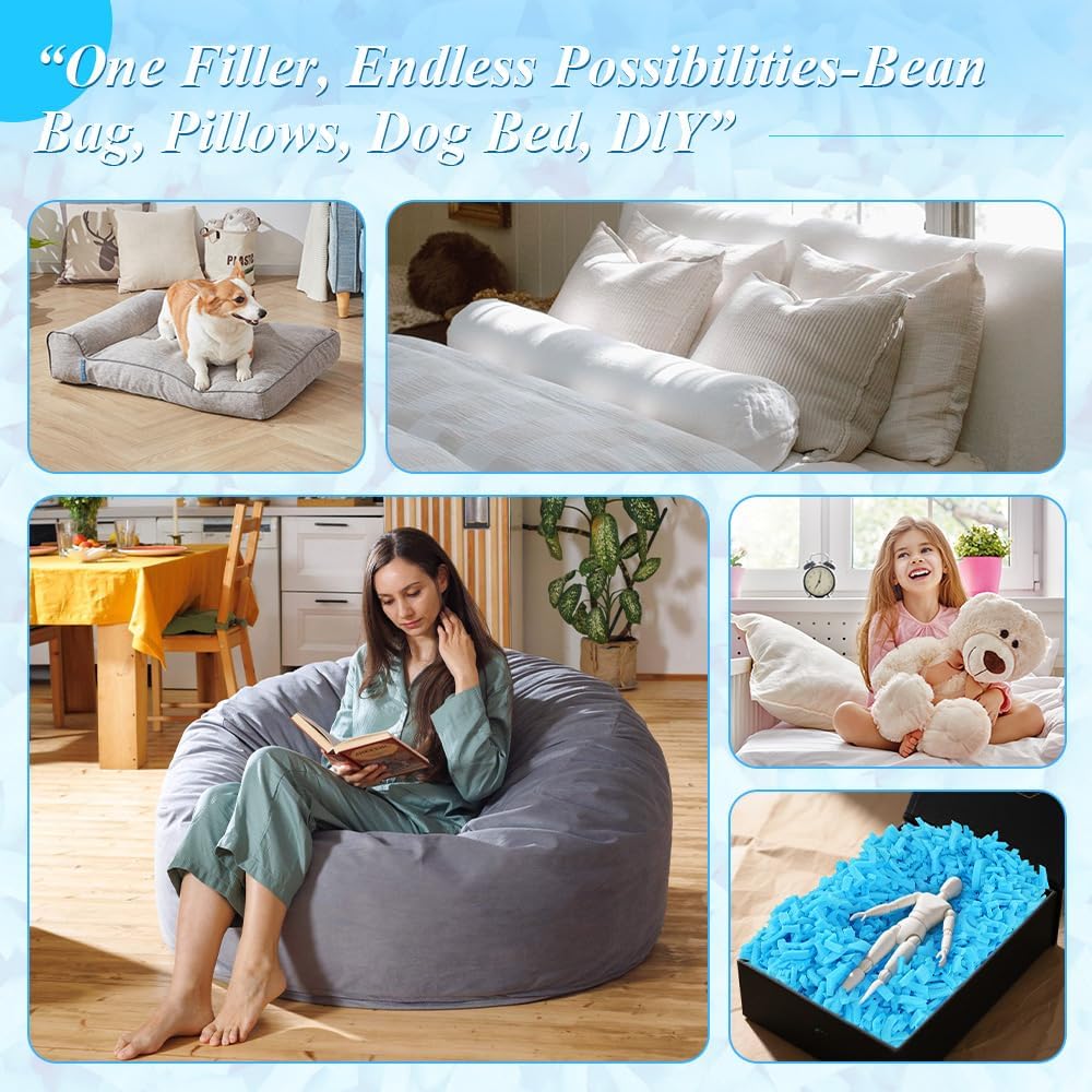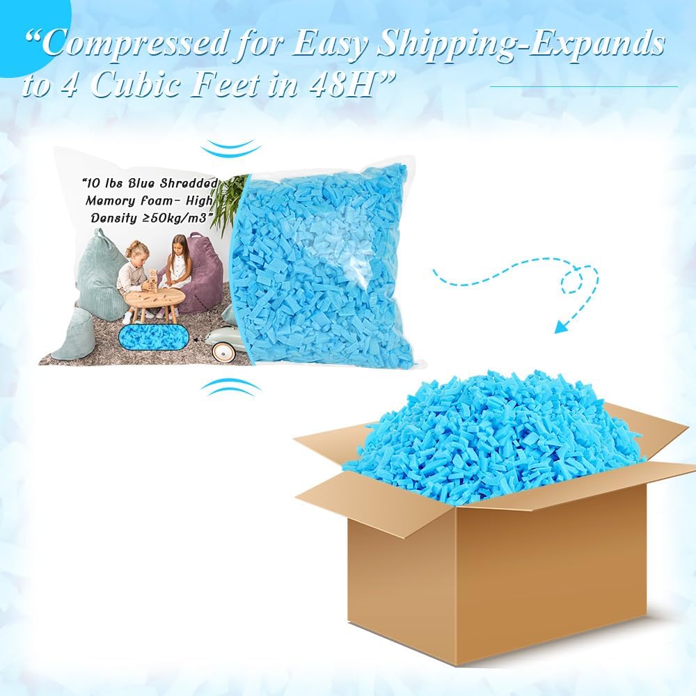 Bean Bag Filler - 20lbs Shredded Memory Foam Filling, High Density ≥3.12 lb/ft³, Blue Pillow Stuffing for Bean Bag Chair, Couch Cushion, Dog Bed, Stuffed Animals, DIY, Non-Toxic & Hypoallergenic