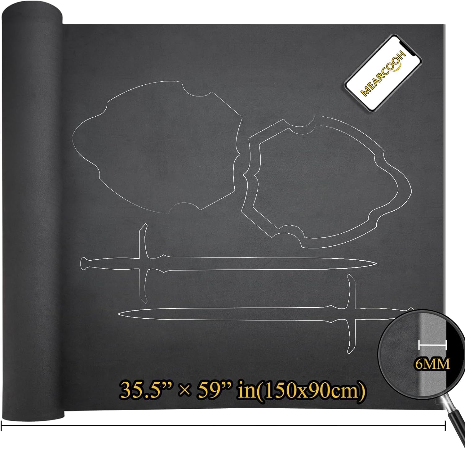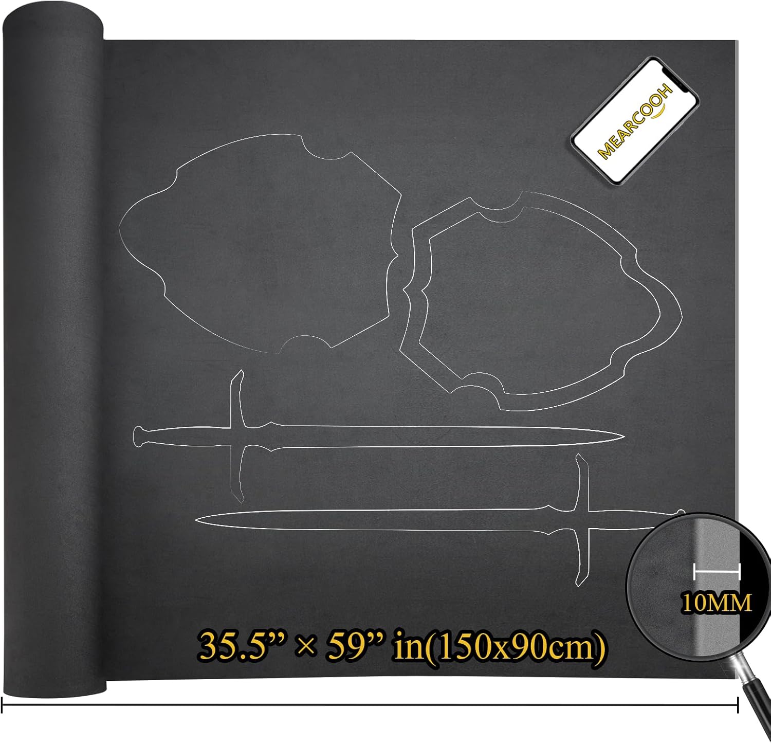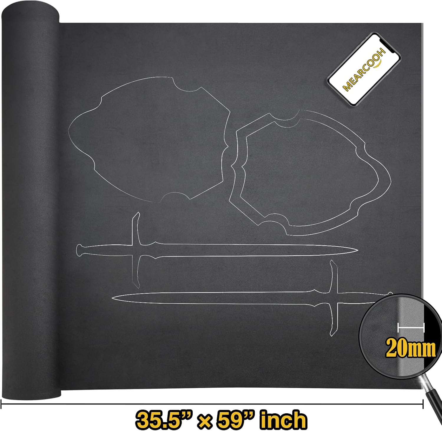MEARCOOH EVA Foam Cosplay Black 20mm Thick (1mm to 20mm) Large 35.5" x 59" Sheet Premium High Density 86 kg/m3 for Cosplay, Crafts Projects