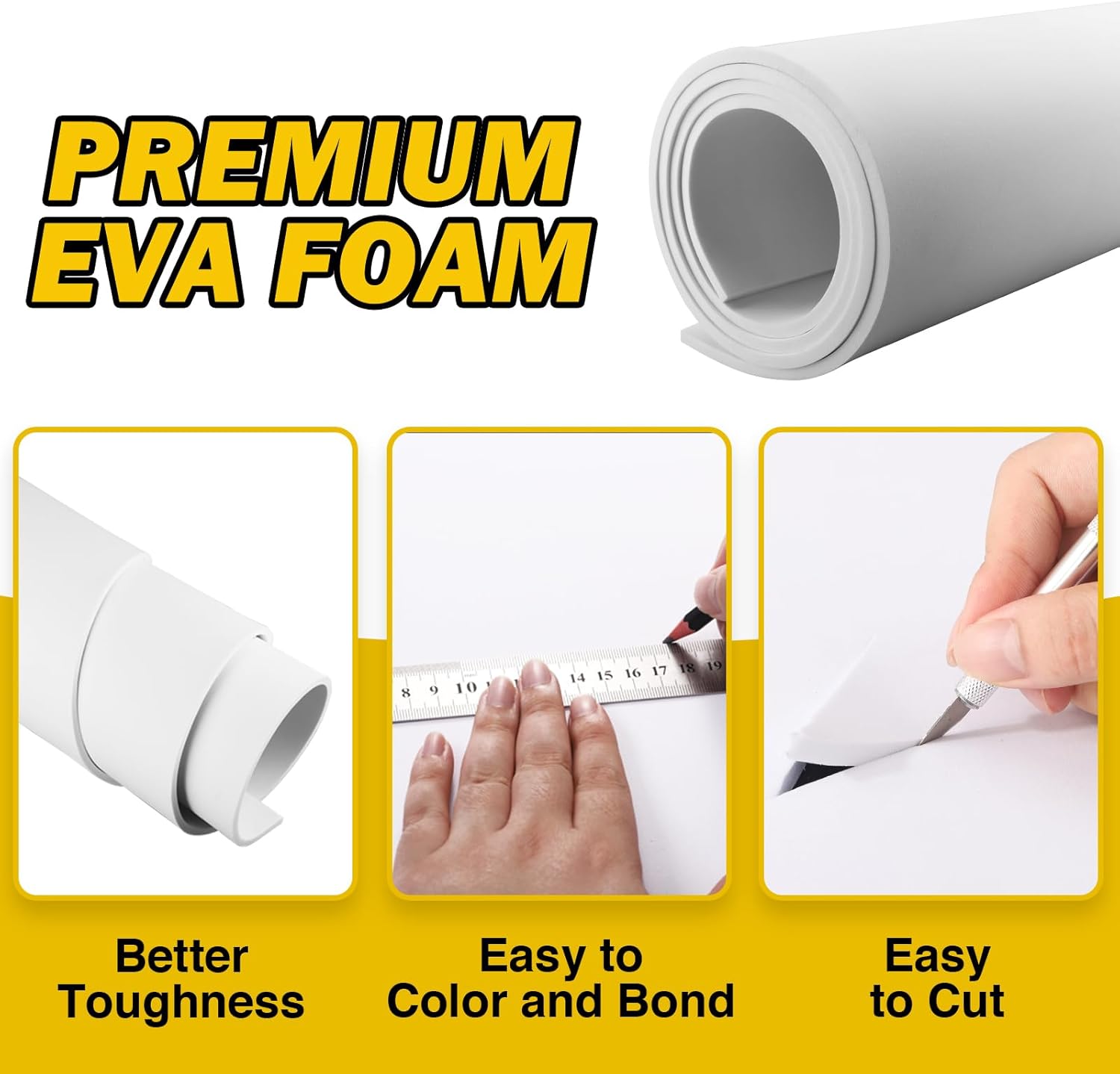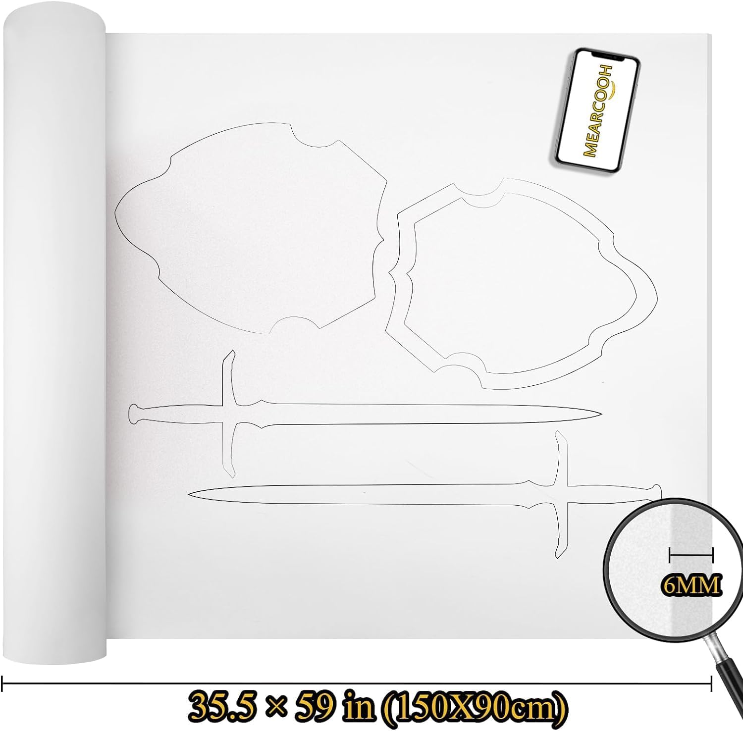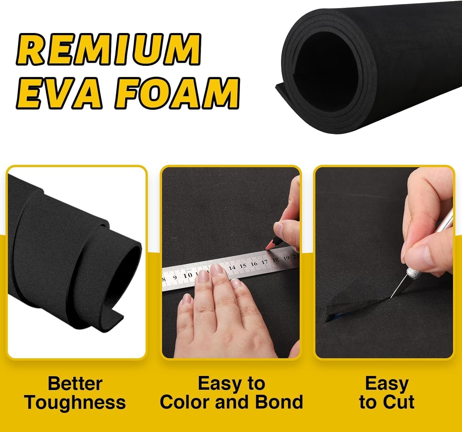 MEARCOOH EVA Foam Cosplay Black 20mm Thick (1mm to 20mm) Large 35.5" x 59" Sheet Premium High Density 86 kg/m3 for Cosplay, Crafts Projects