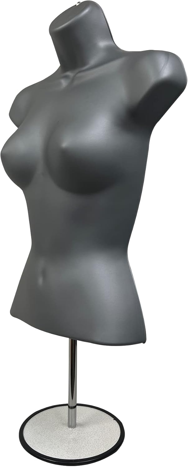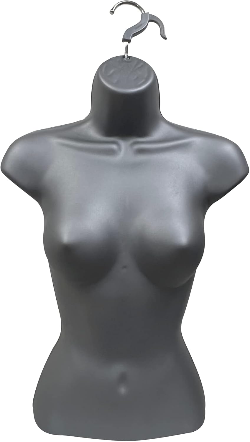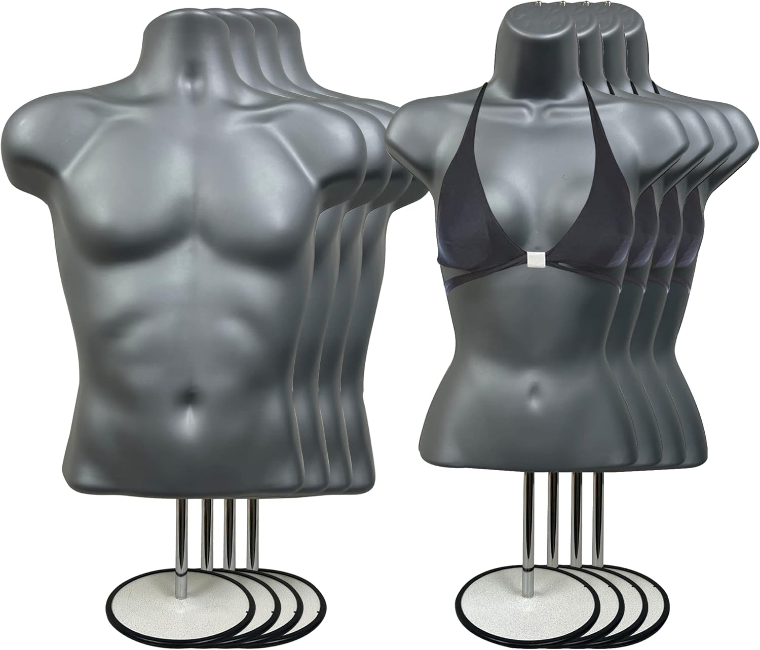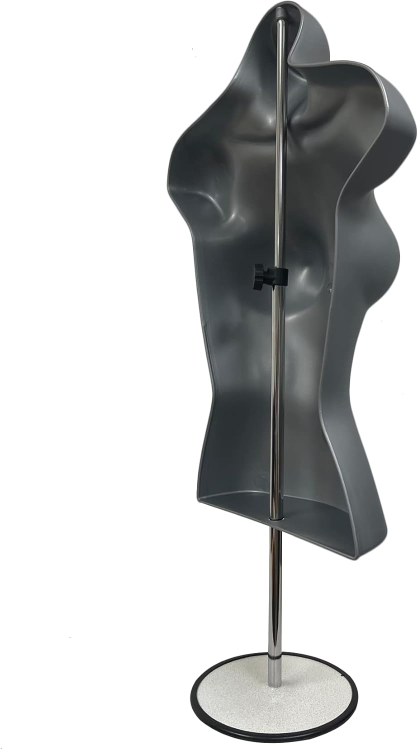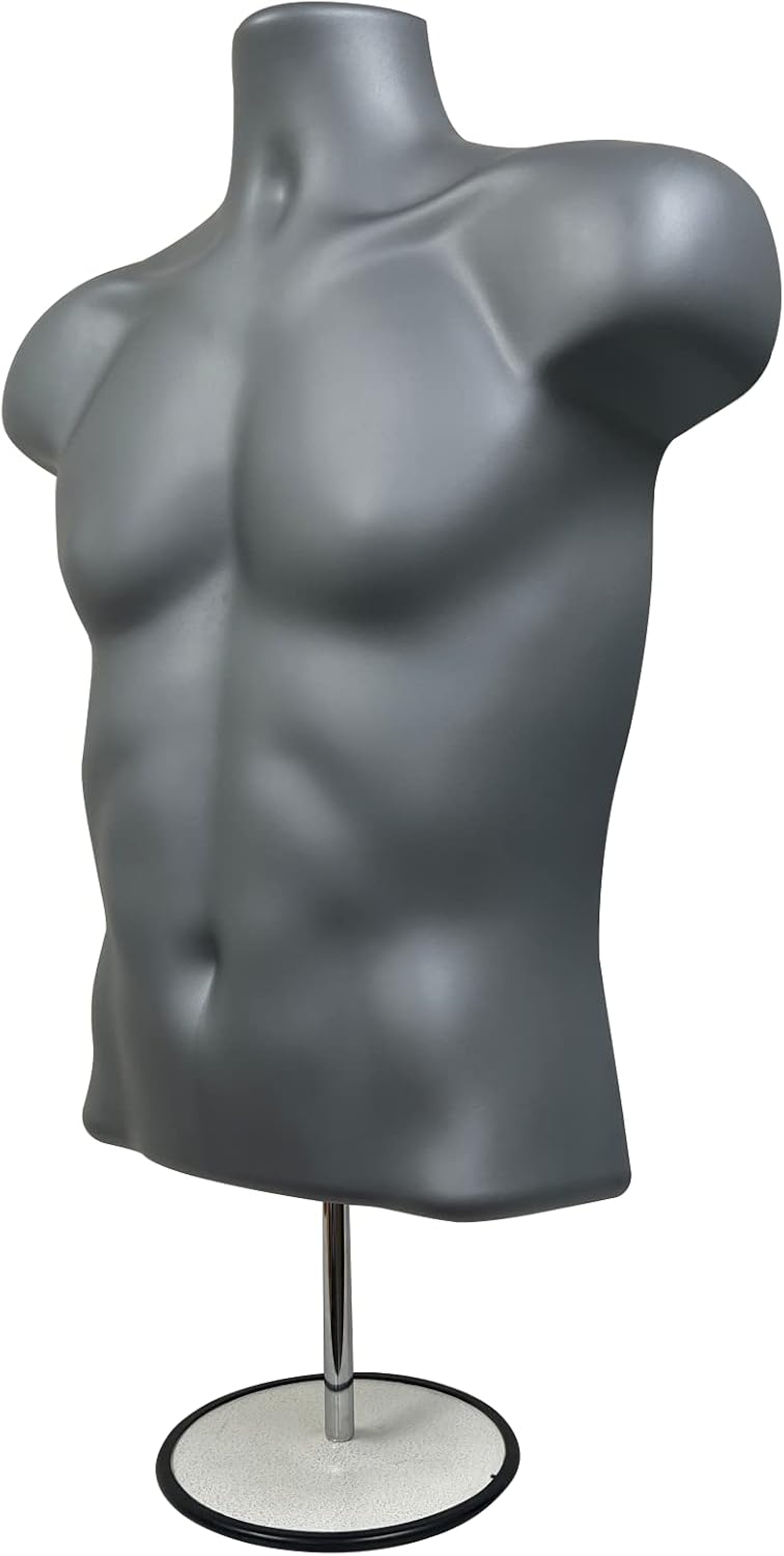 DisplayTown Male and Female Mannequin Torso with Metal Stand Hollow Back Body Stackable Dress Form for Tshirt Display, Countertop, Craft Shows, S-M Size (Gray, Set of 1)