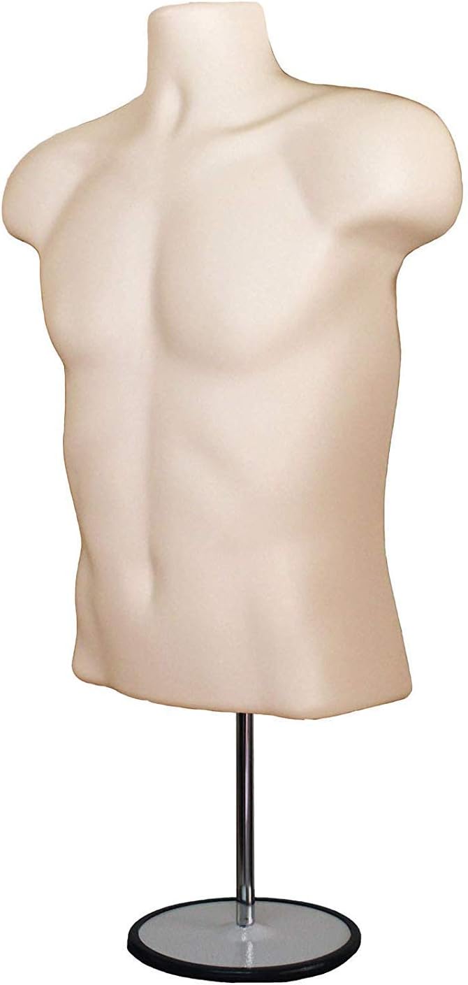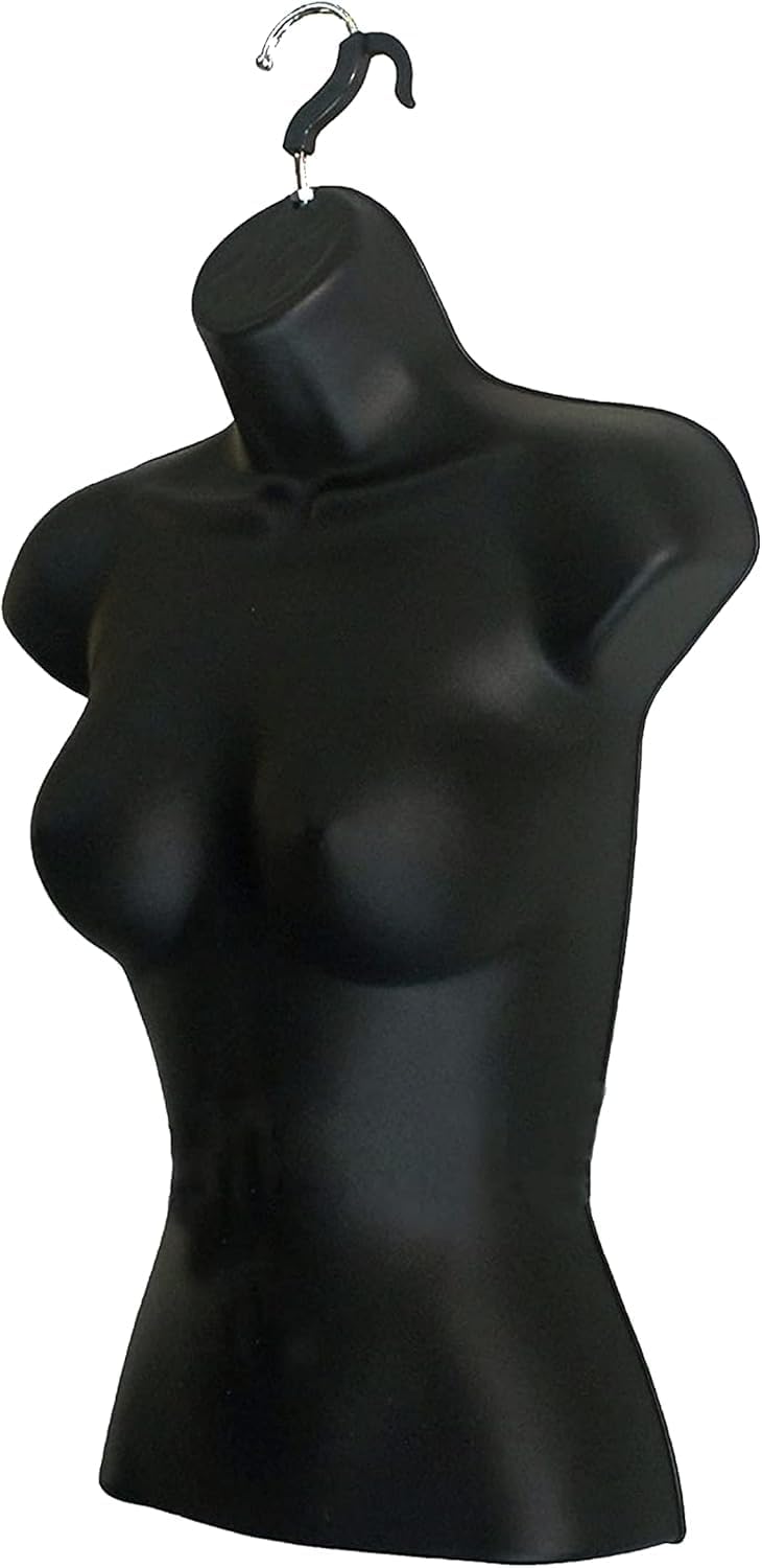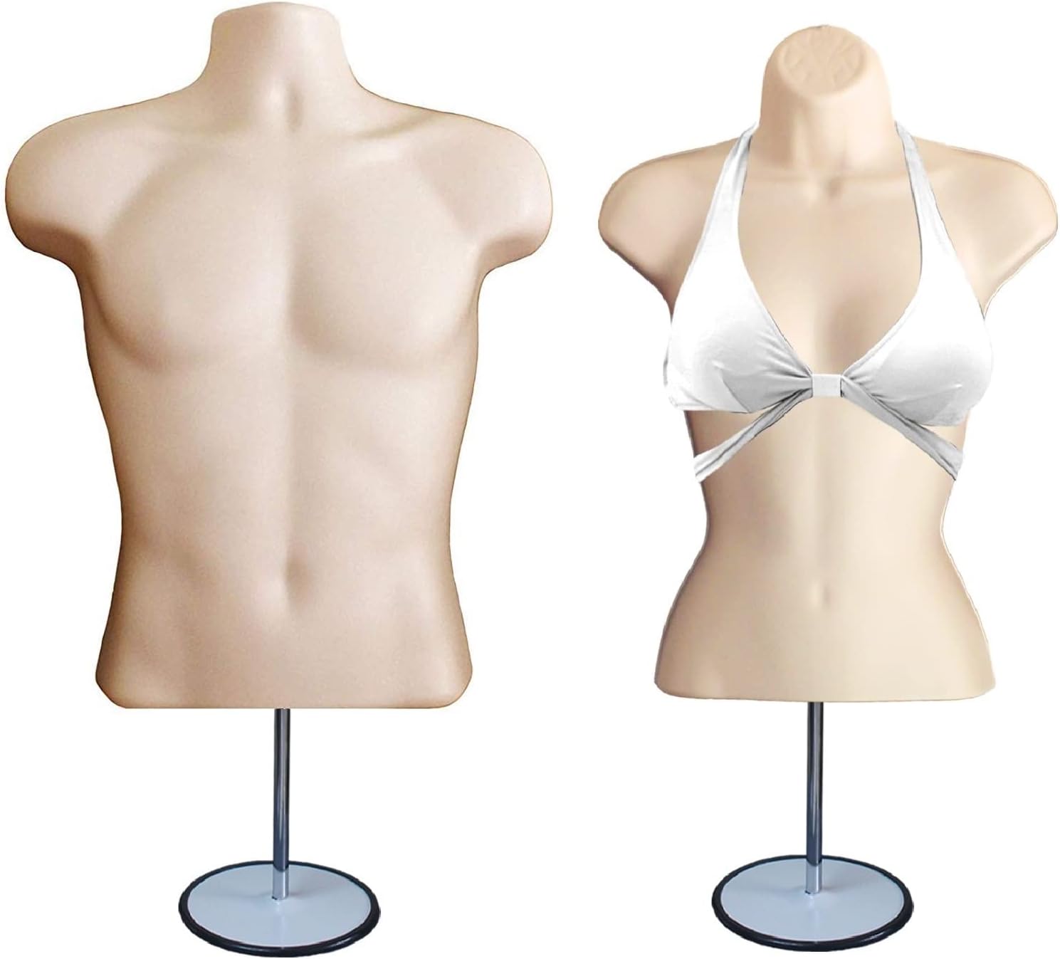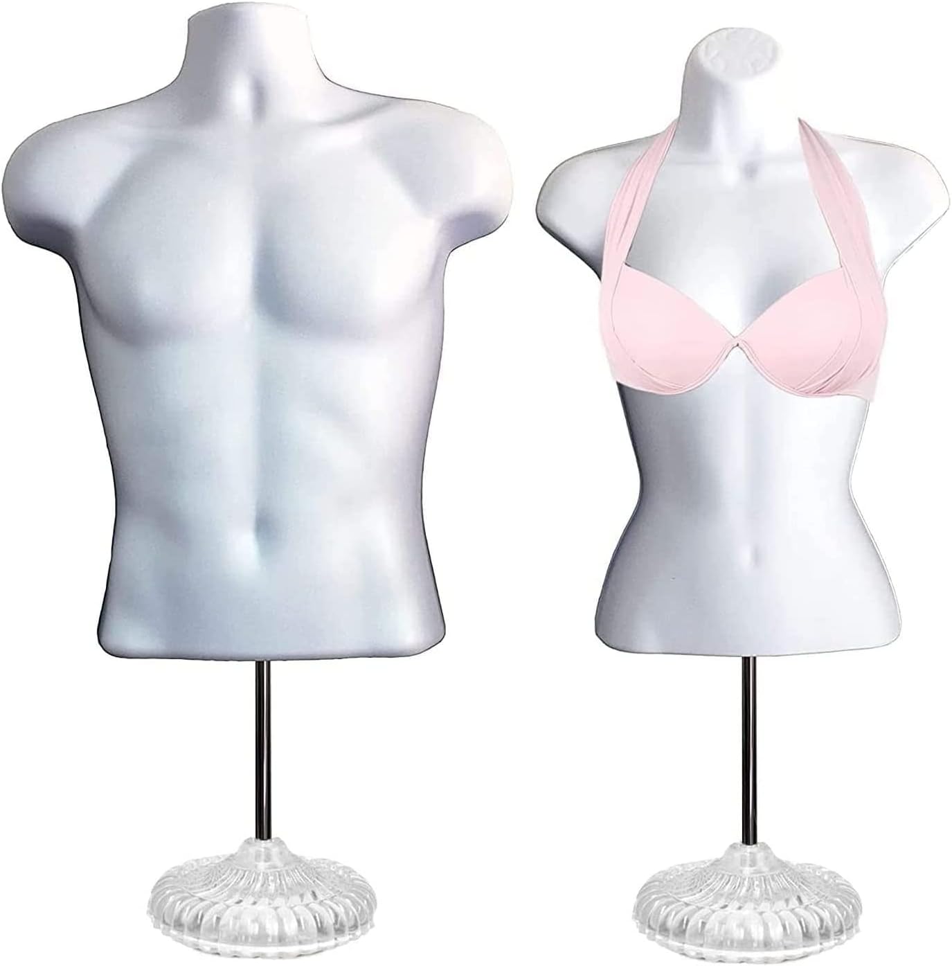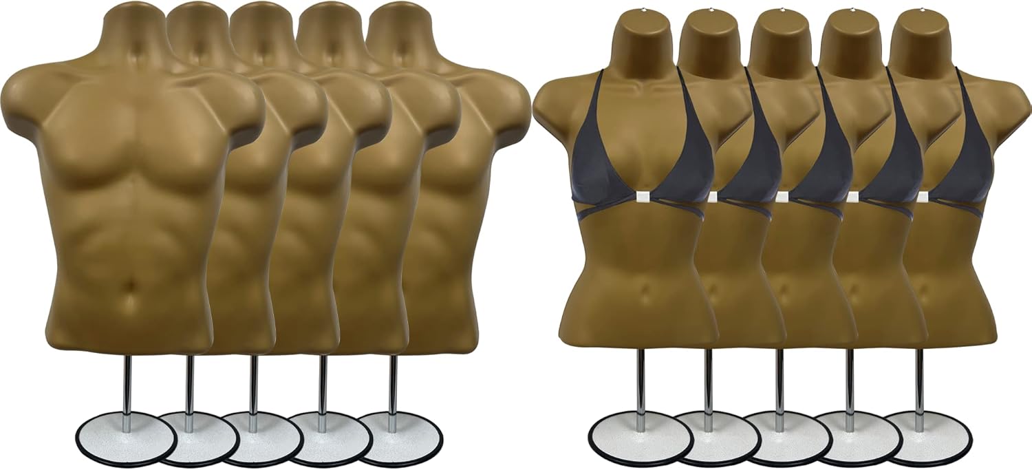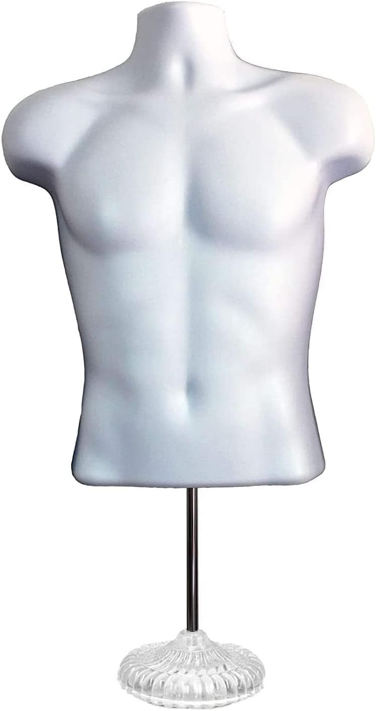 DisplayTown Male and Female Mannequin Torso with Metal Stand Hollow Back Body Stackable Dress Form for Tshirt Display, Countertop, Craft Shows, S-M Size (Gray, Set of 1)