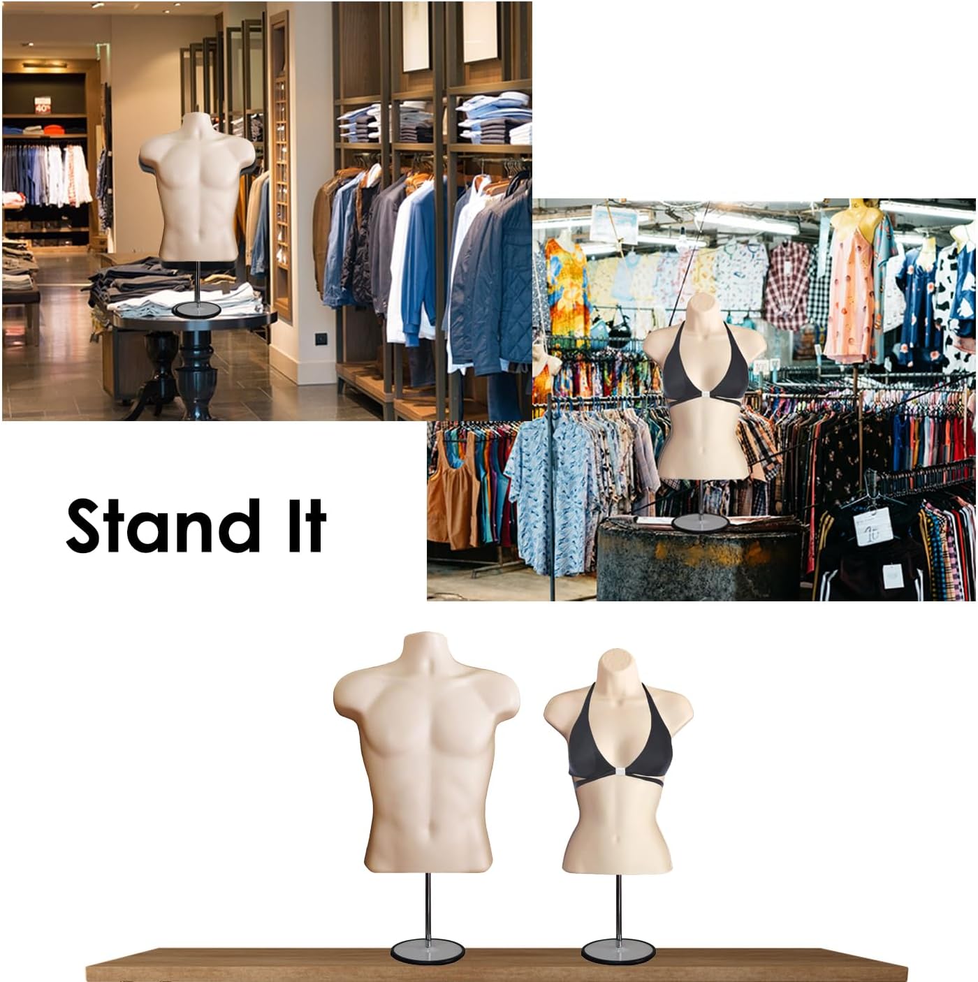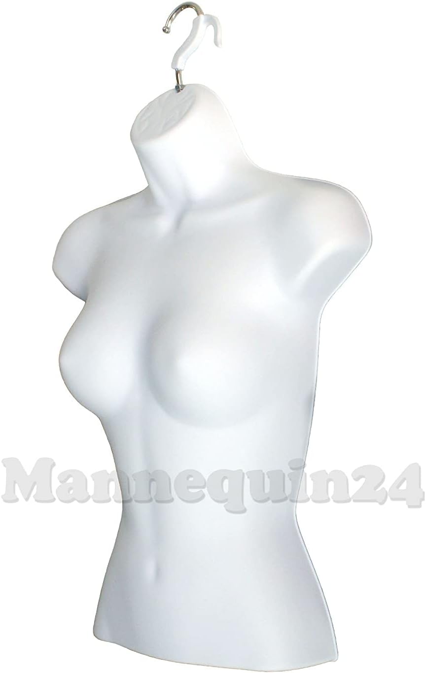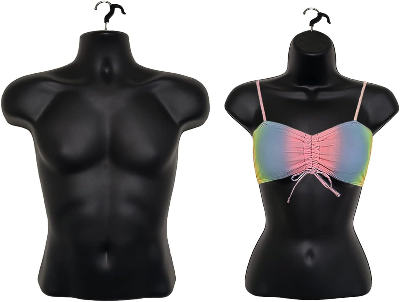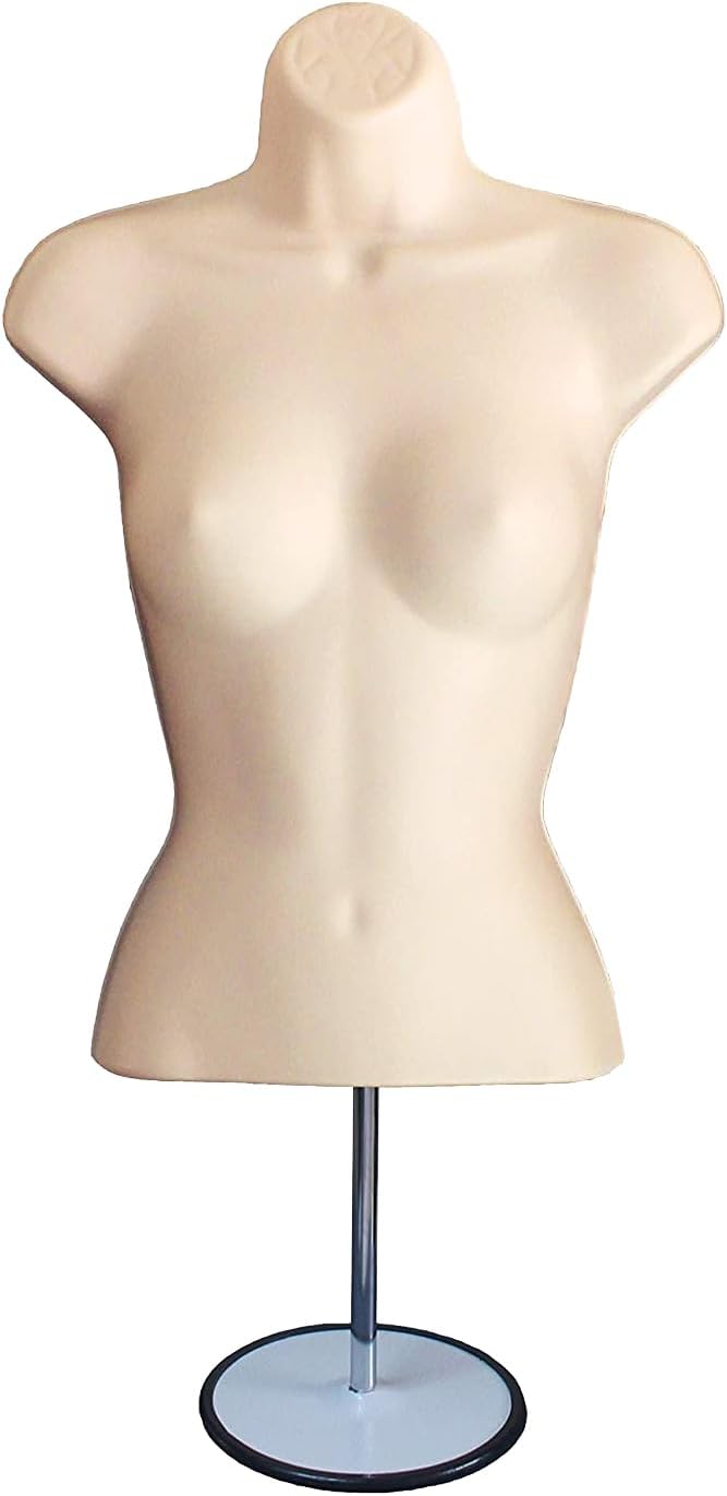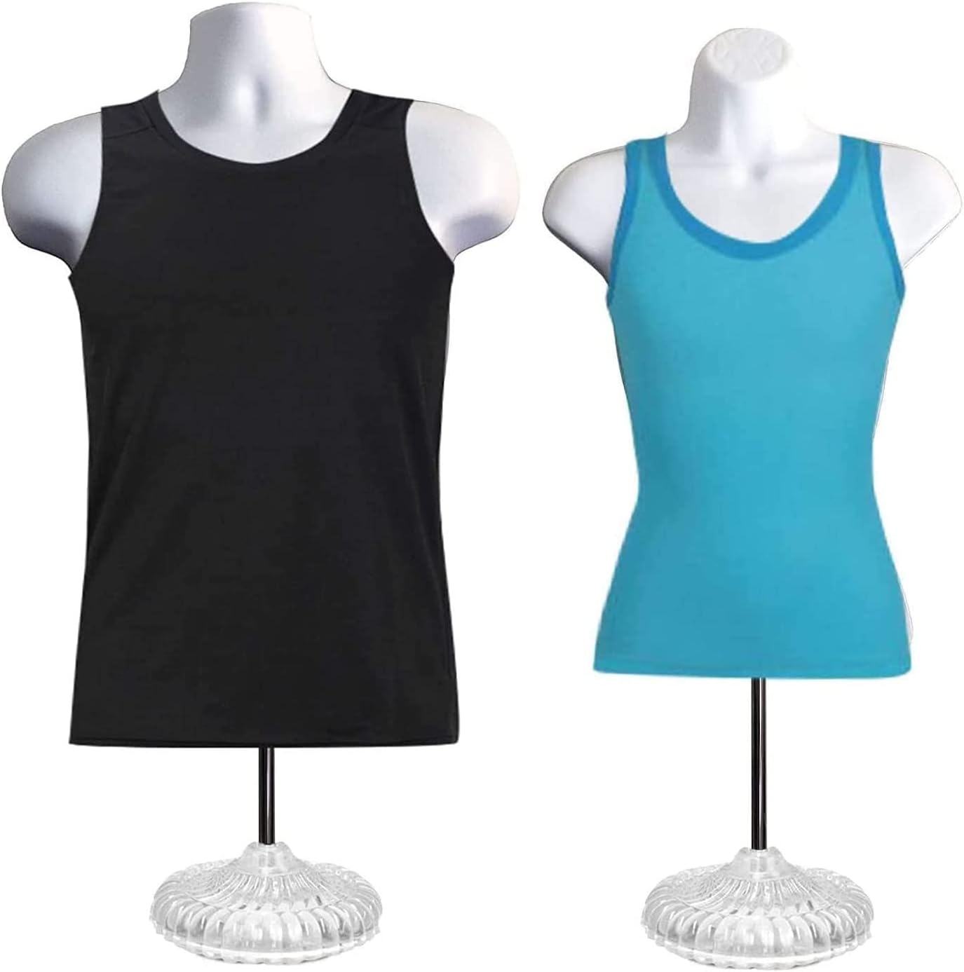 DisplayTown Male and Female Mannequin Torso with Metal Stand Hollow Back Body Stackable Dress Form for Tshirt Display, Countertop, Craft Shows, S-M Size (Gray, Set of 1)