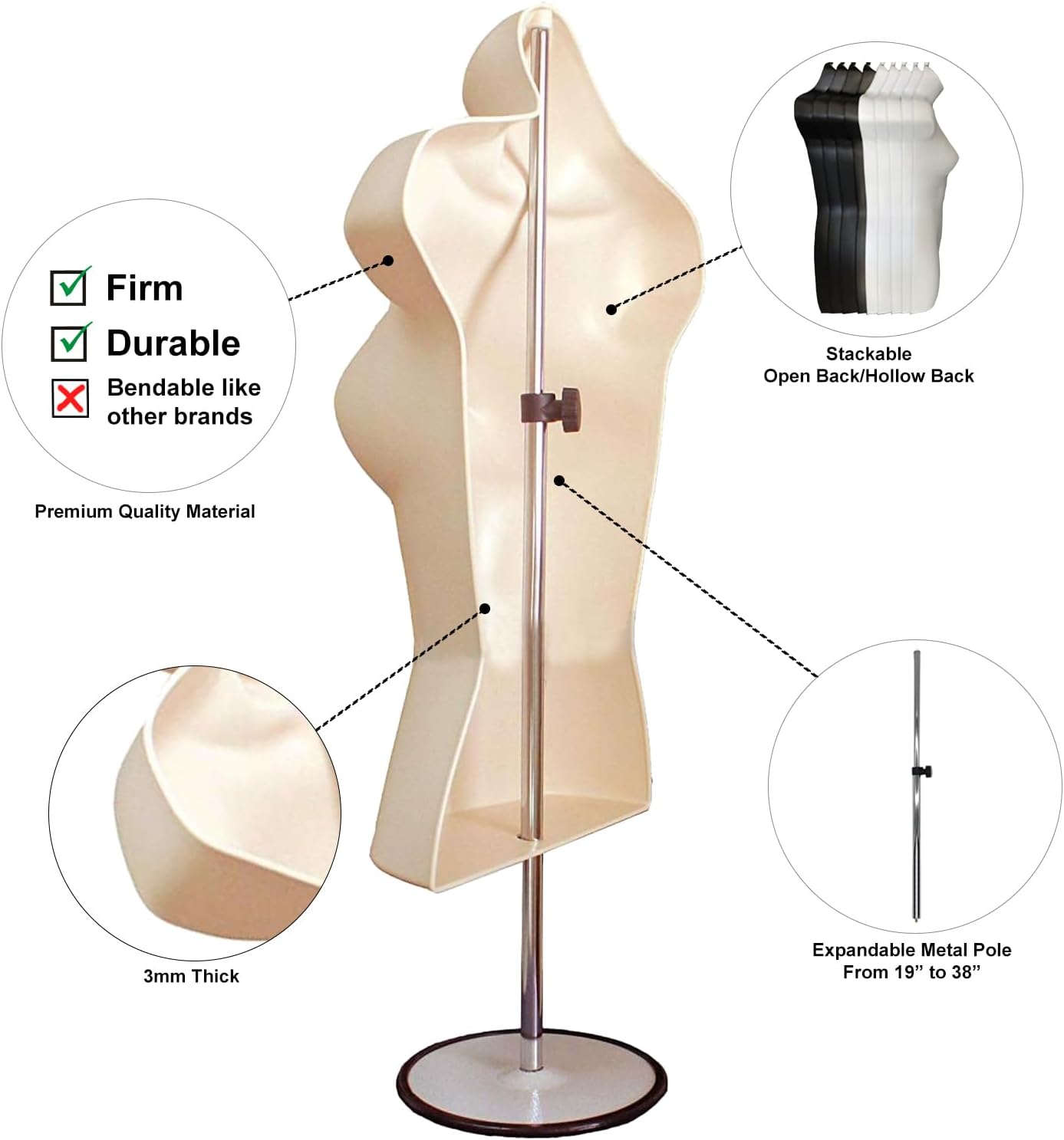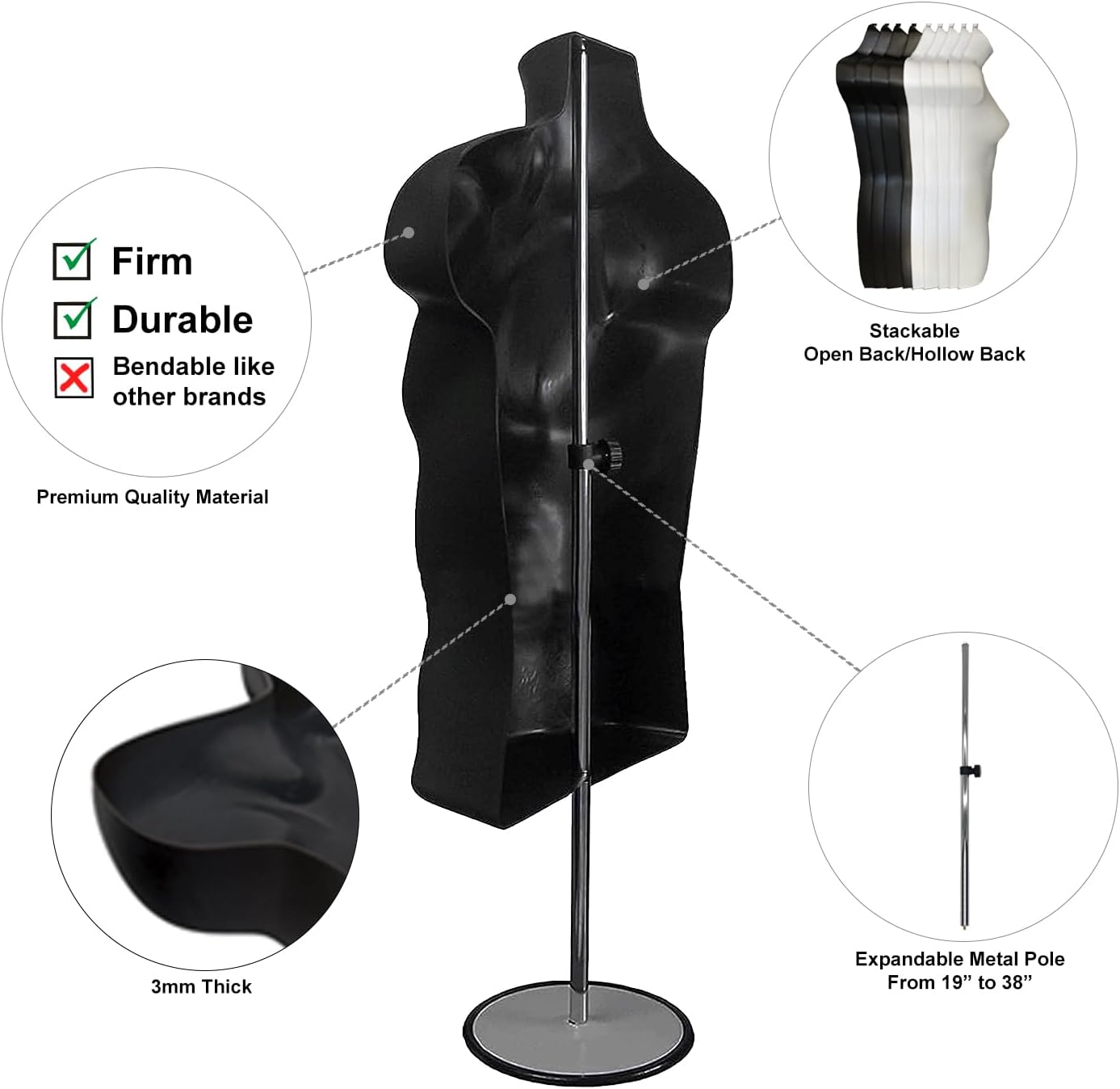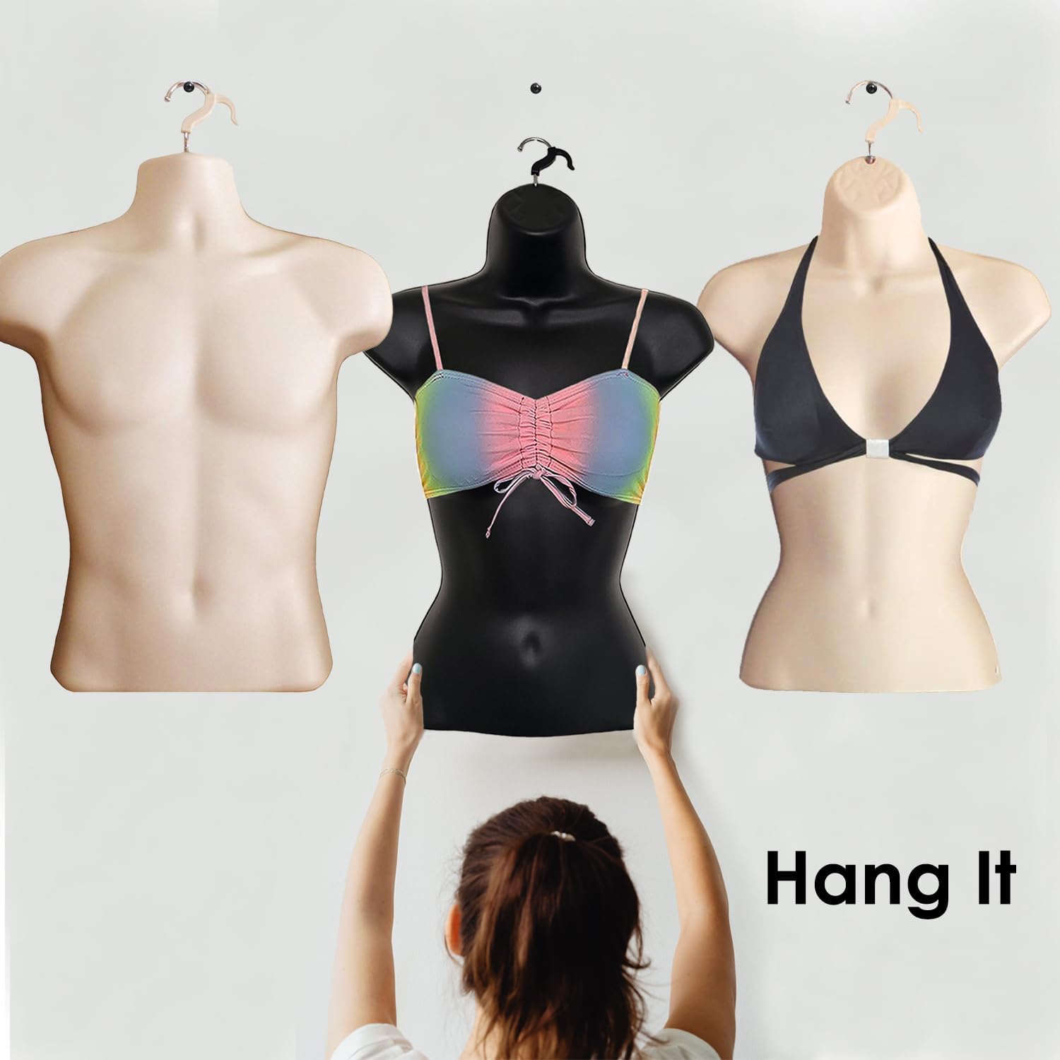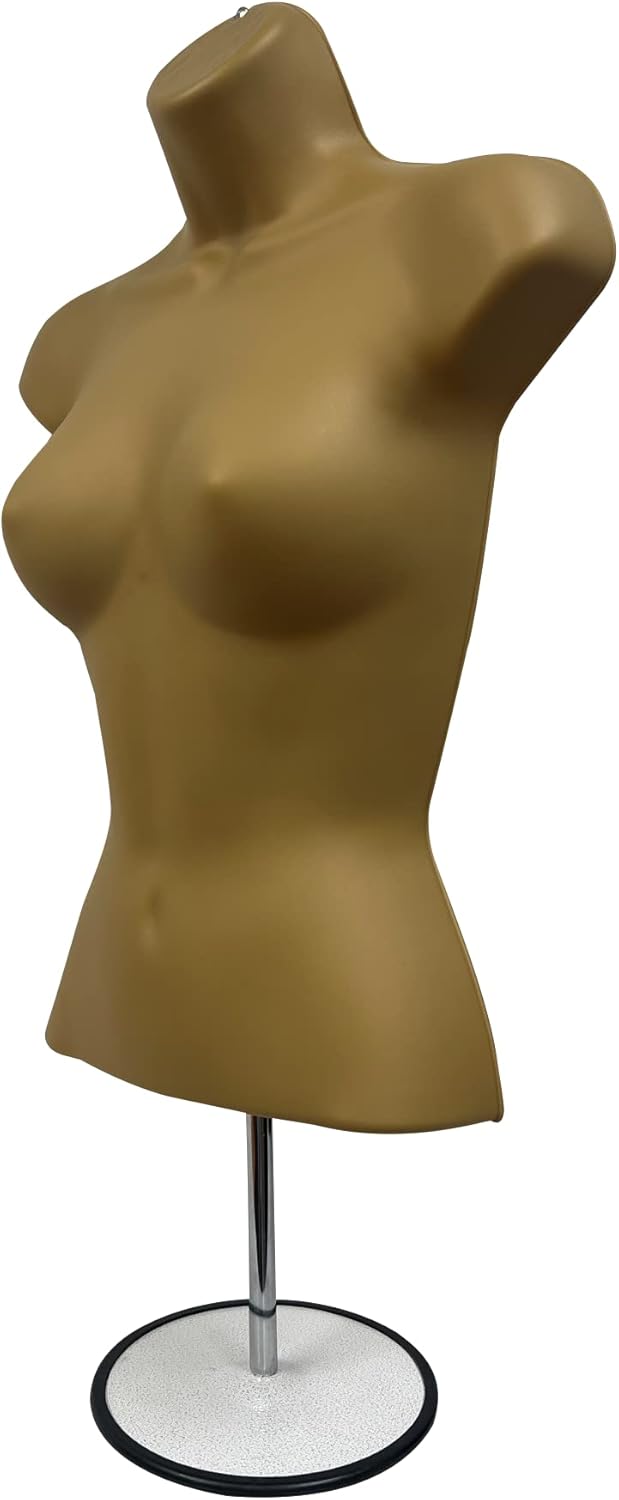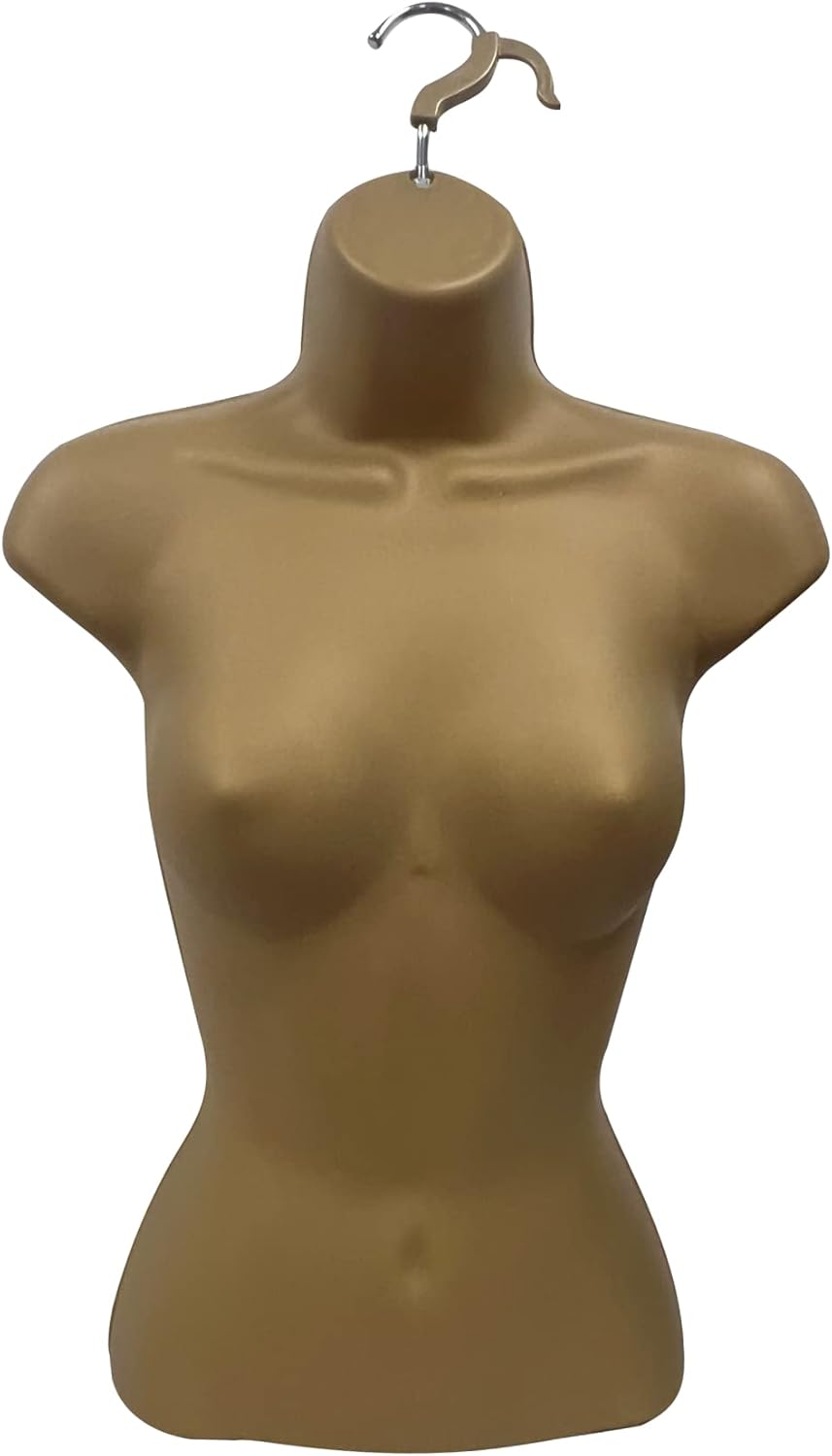 DisplayTown Male and Female Mannequin Torso with Metal Stand Hollow Back Body Stackable Dress Form for Tshirt Display, Countertop, Craft Shows, S-M Size (Gray, Set of 1)