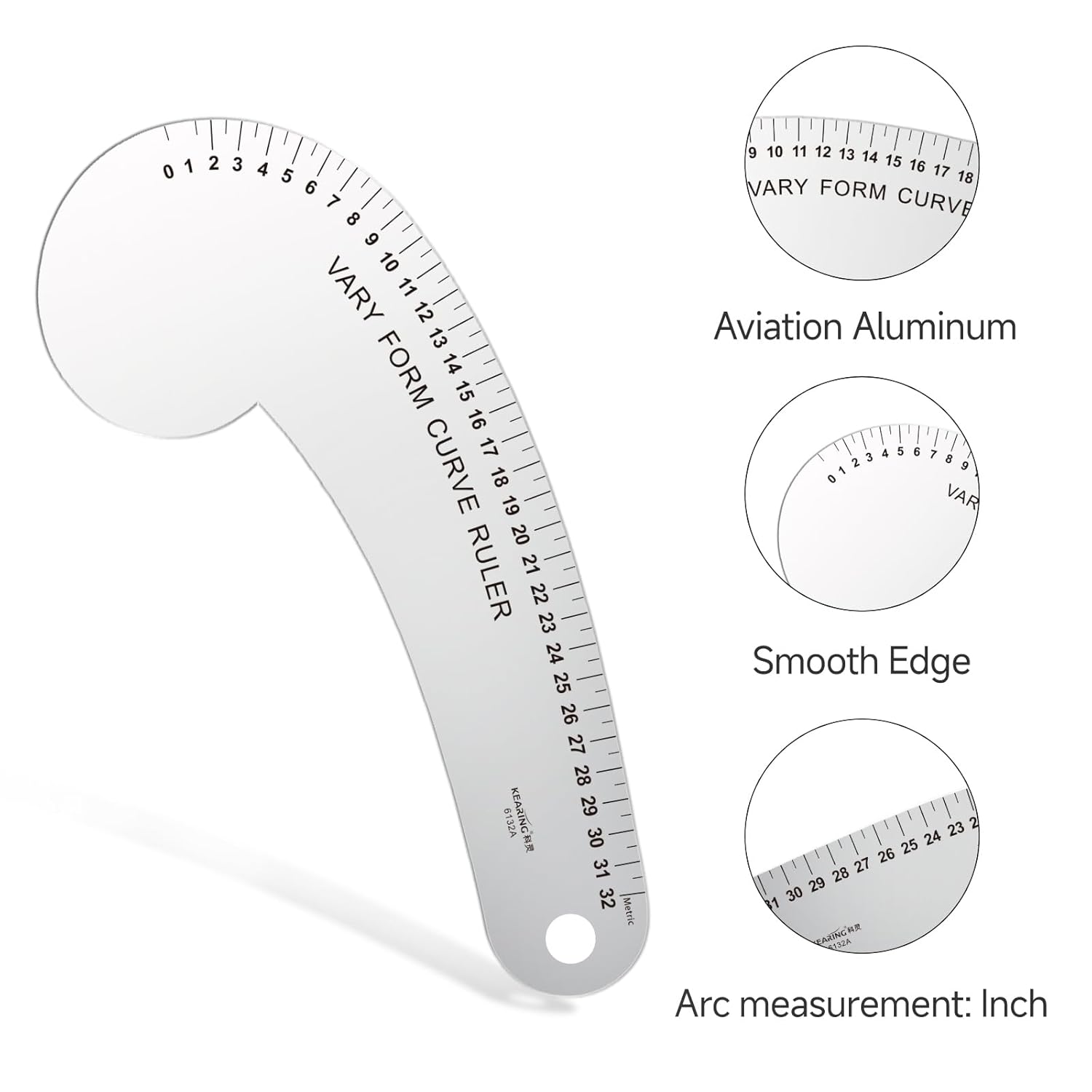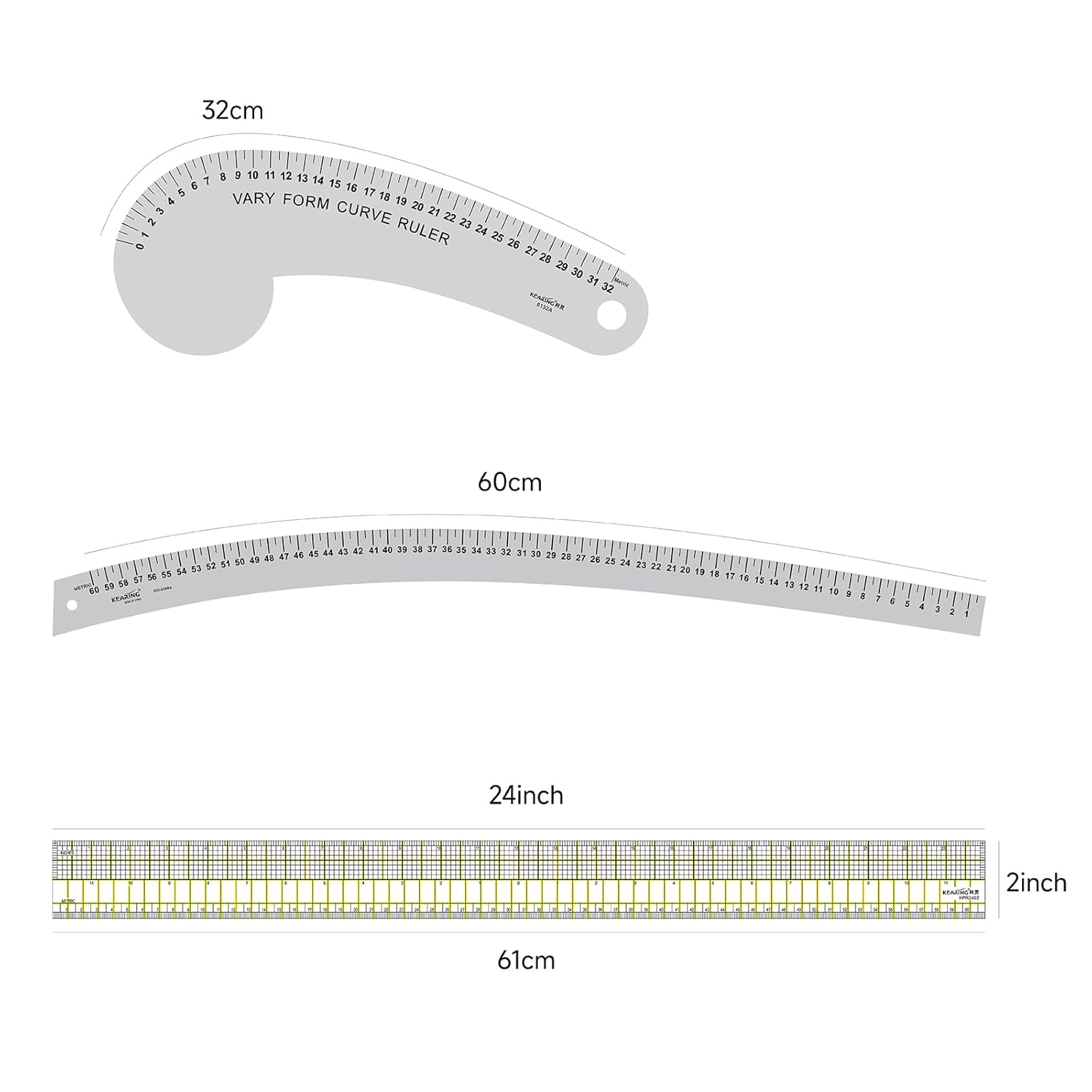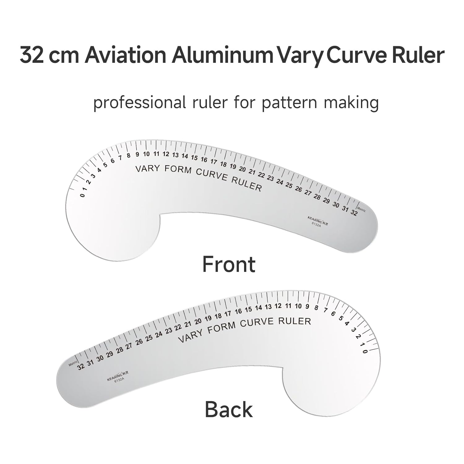 KEARING Fashion Designer's Ruler Kit, French Curve Ruler for Pattern Making, Light Aviation Aluminum Hip Curve Ruler, L-Square Ruler, Vary Form Curve Ruler for Pattern Making Sewing,Quilting