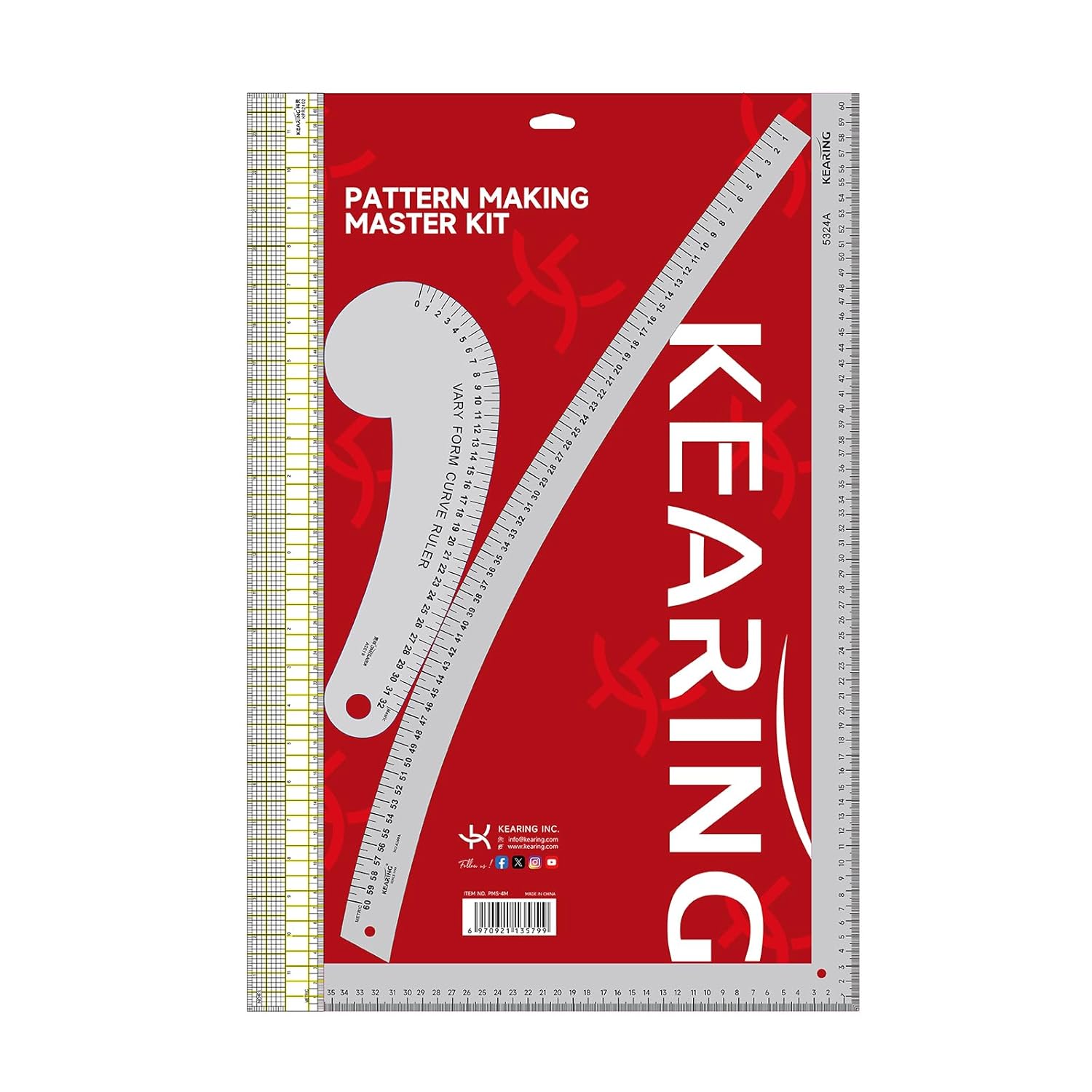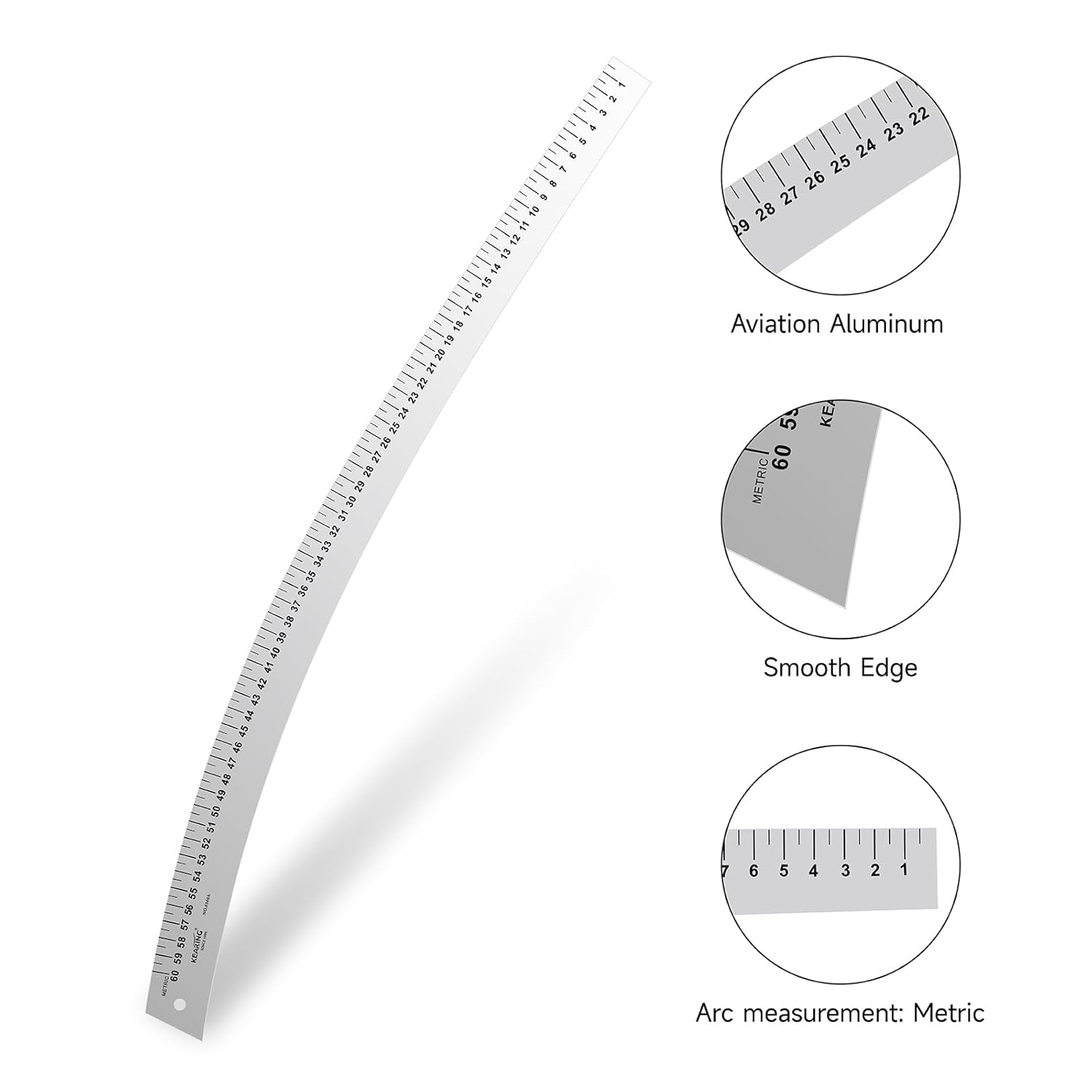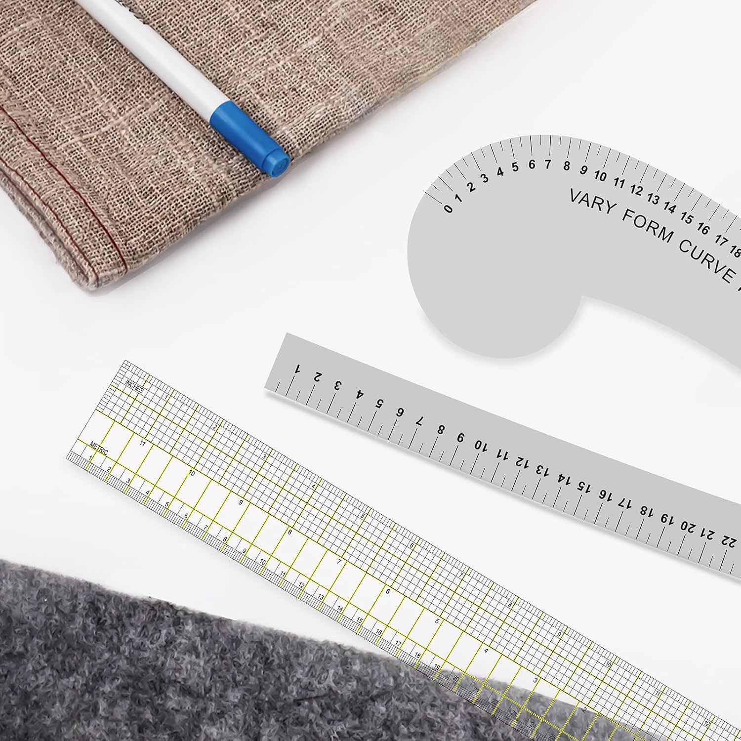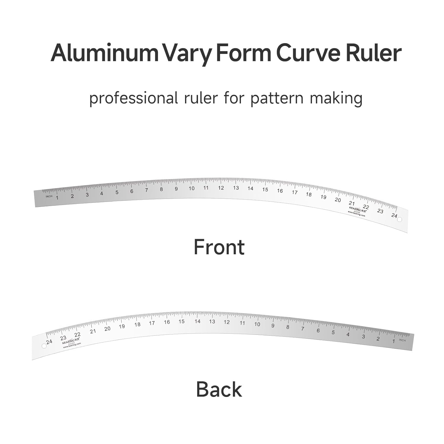 KEARING Fashion Designer's Ruler Kit, French Curve Ruler for Pattern Making, Light Aviation Aluminum Hip Curve Ruler, L-Square Ruler, Vary Form Curve Ruler for Pattern Making Sewing,Quilting